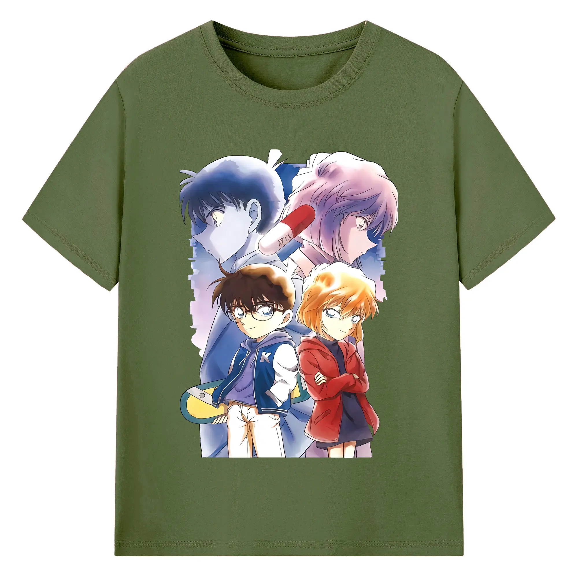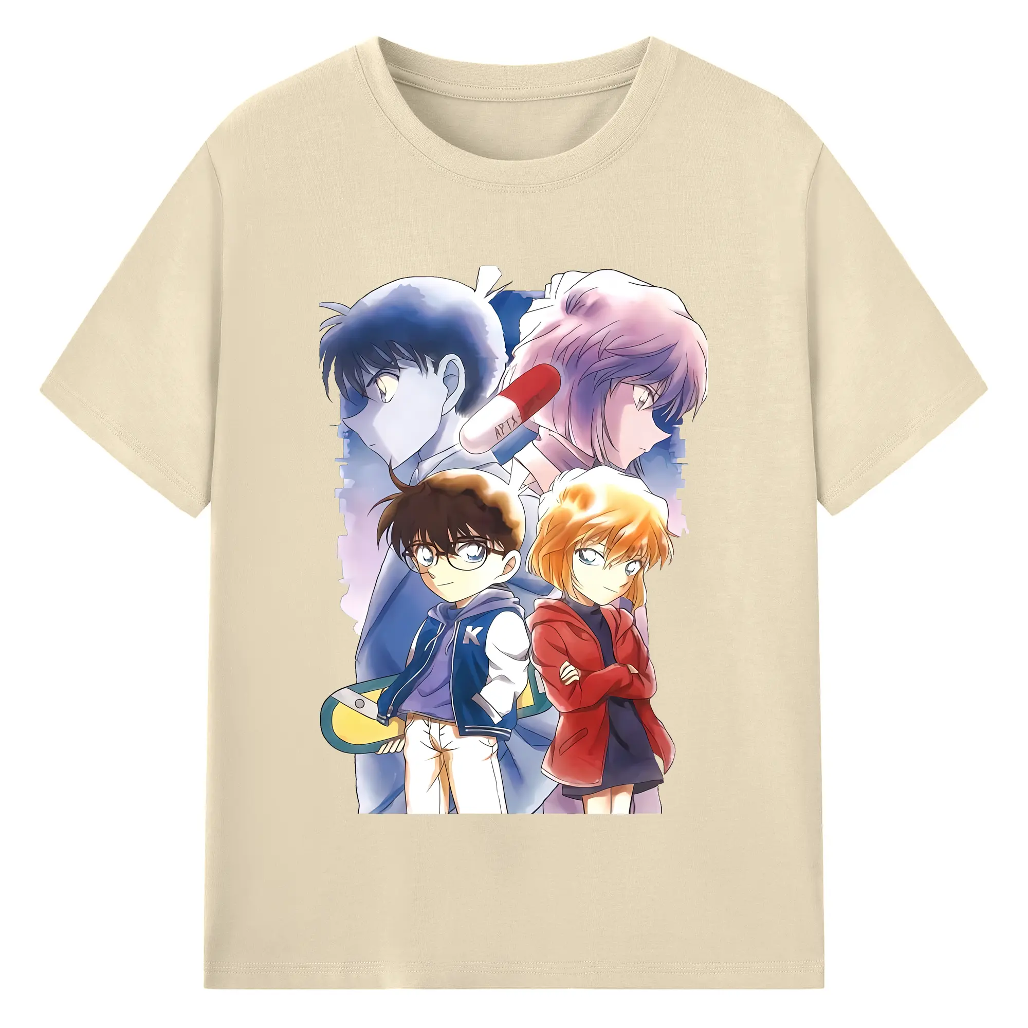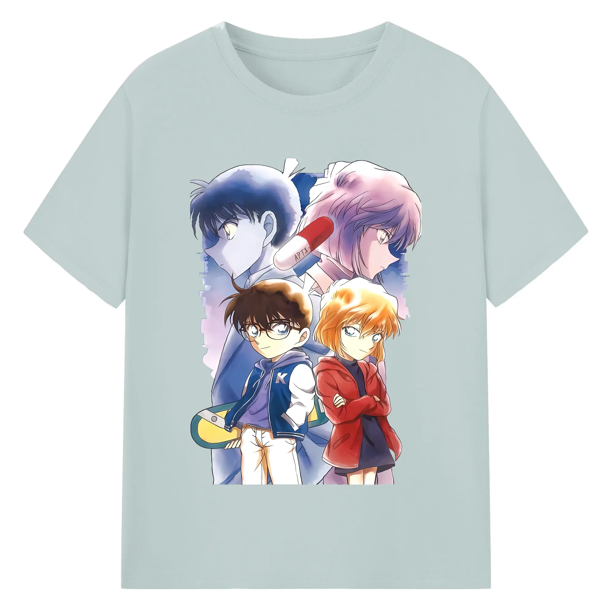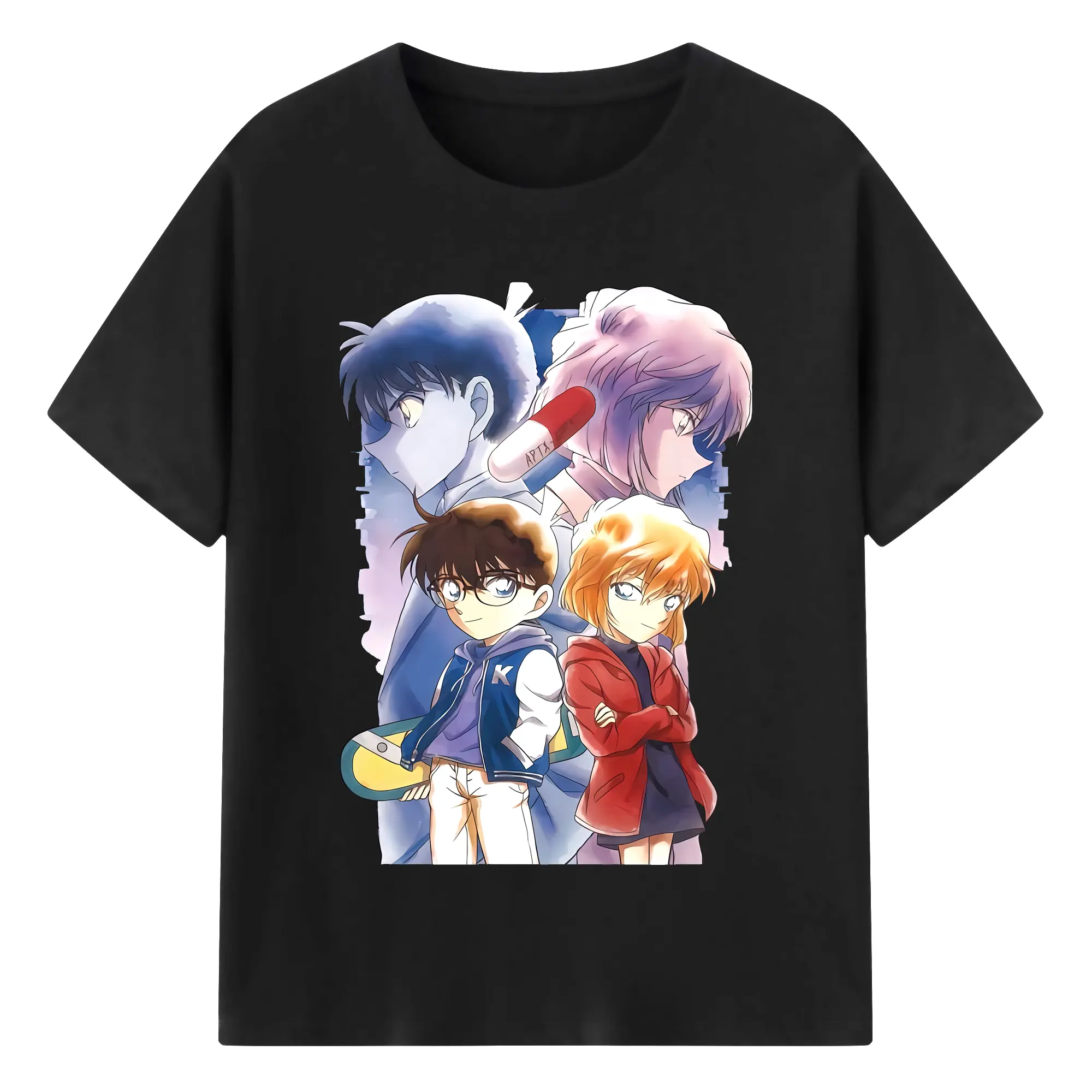 名探偵コナン グッズ 江戸川 コナン - 綿100% 半袖Tシャツ ・ バックプリント ・ 快適 通気性 ・ 日常使い 散歩 スポーツ用