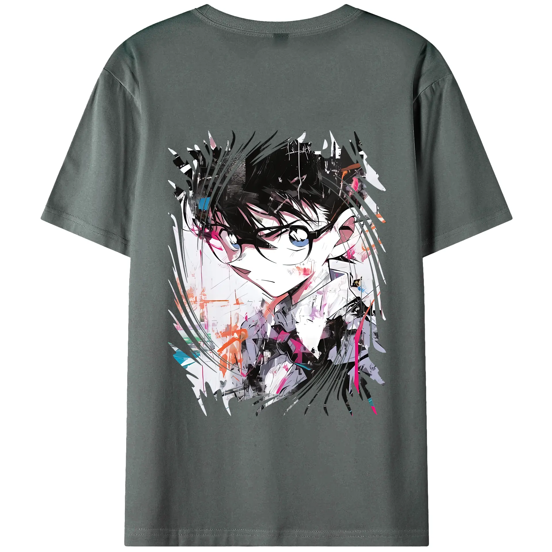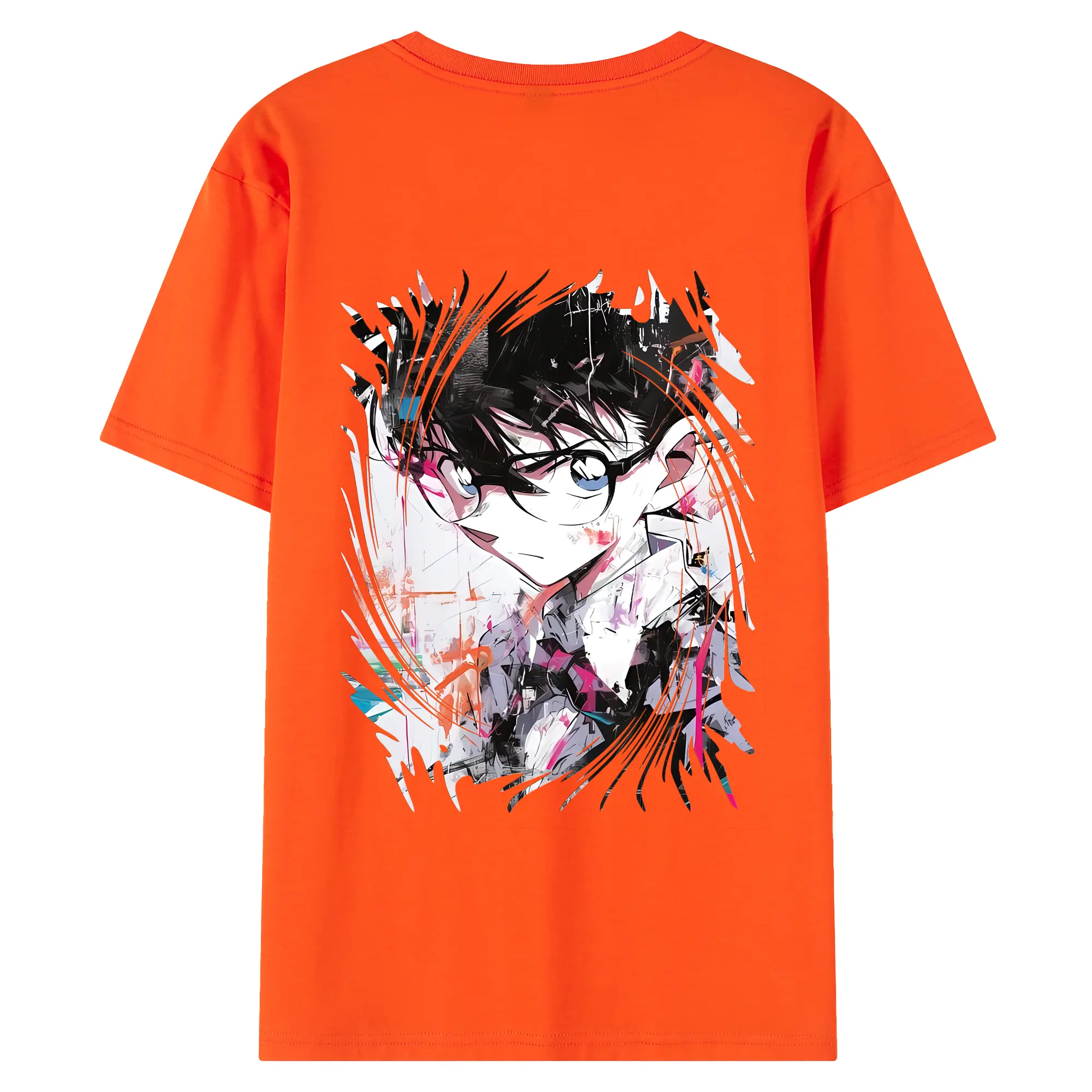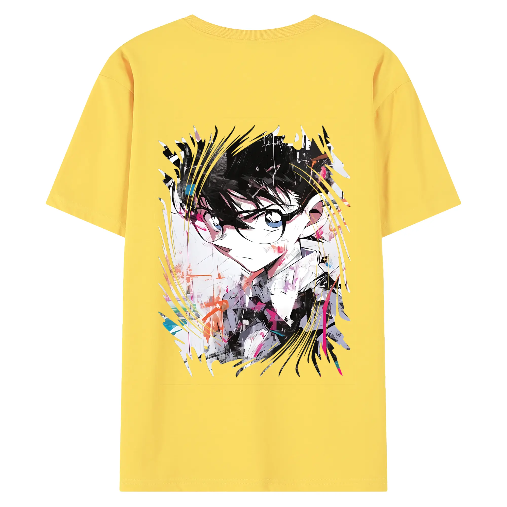 名探偵コナン グッズ 江戸川 コナン - 綿100% ヴィンテージ風 半袖Tシャツ ・ 背面プリント ・ 柔らか肌触り ・ 通気性 快適 ・ スポーツ カジュアル 外出用