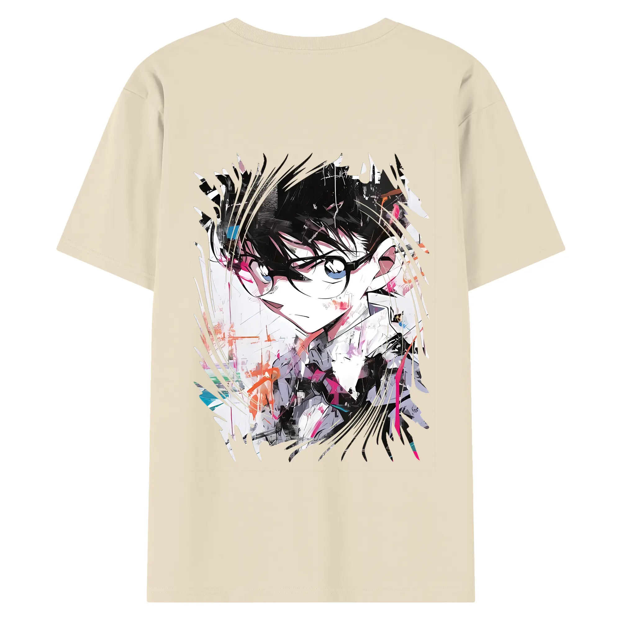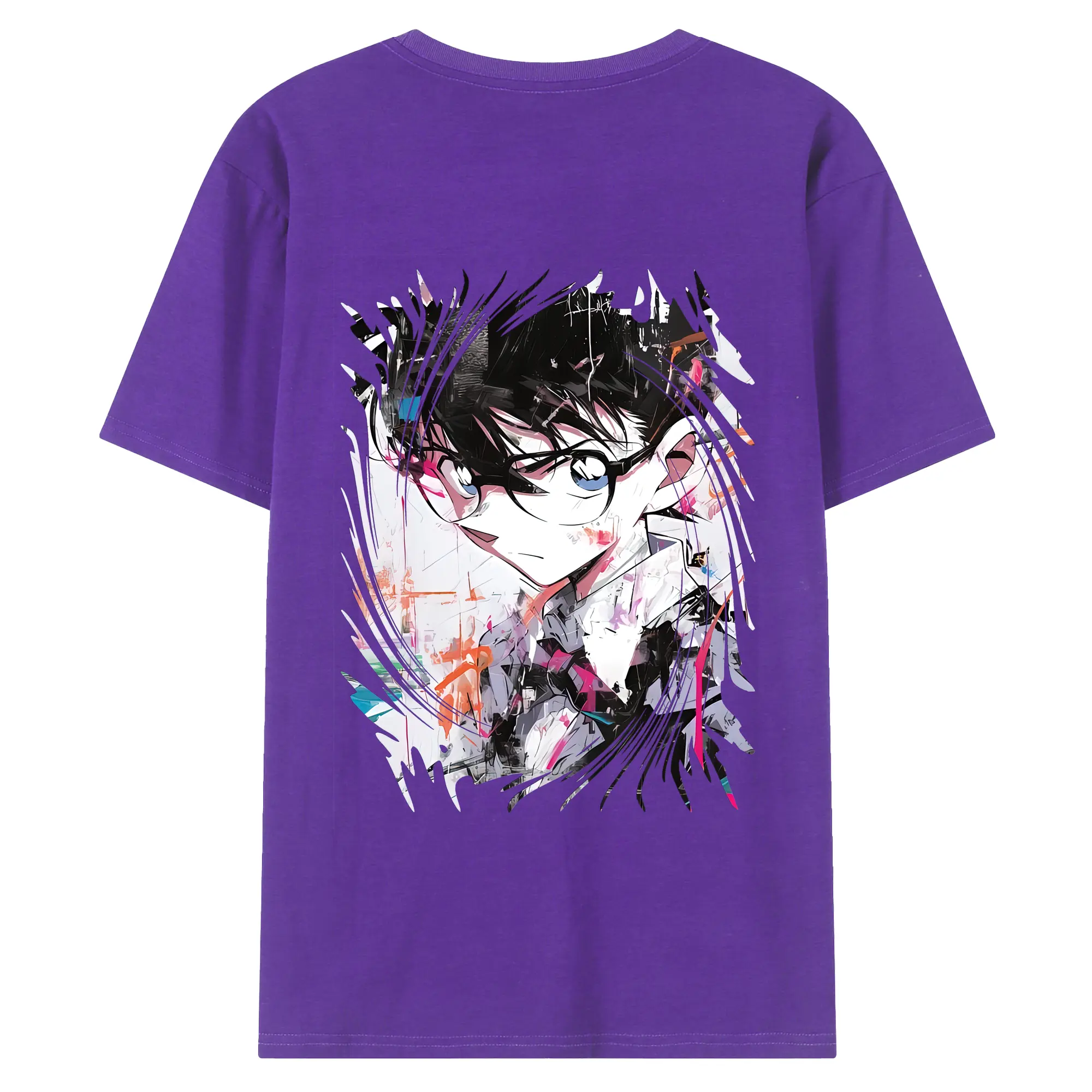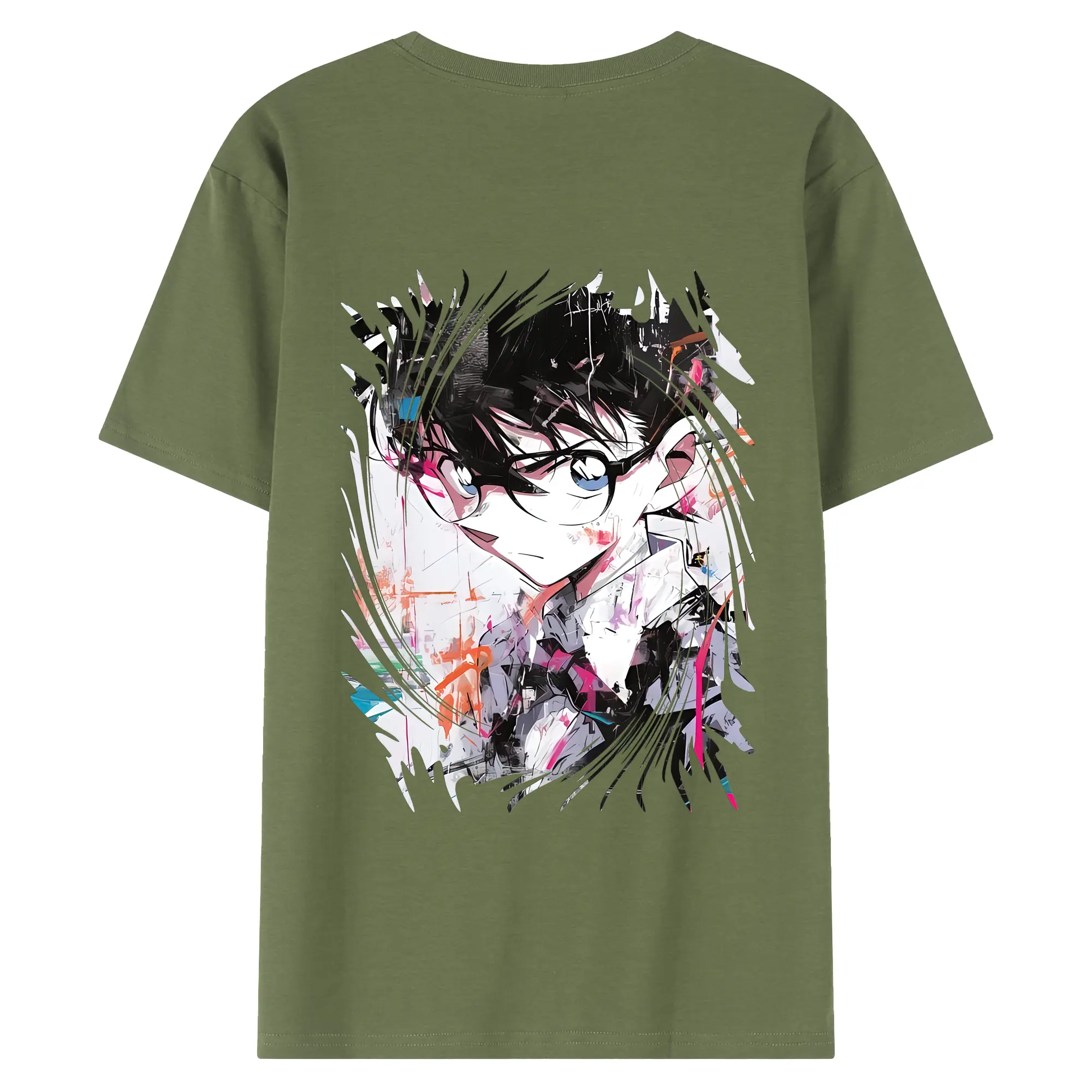 名探偵コナン グッズ 江戸川 コナン - 綿100% ヴィンテージ風 半袖Tシャツ ・ 背面プリント ・ 柔らか肌触り ・ 通気性 快適 ・ スポーツ カジュアル 外出用
