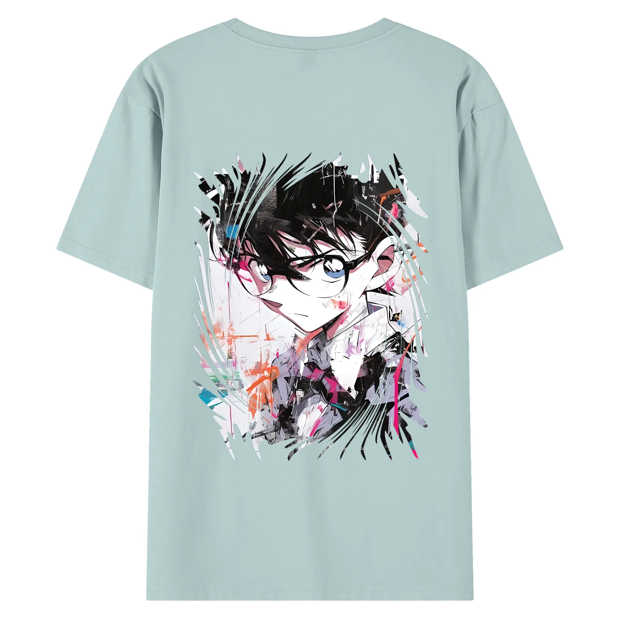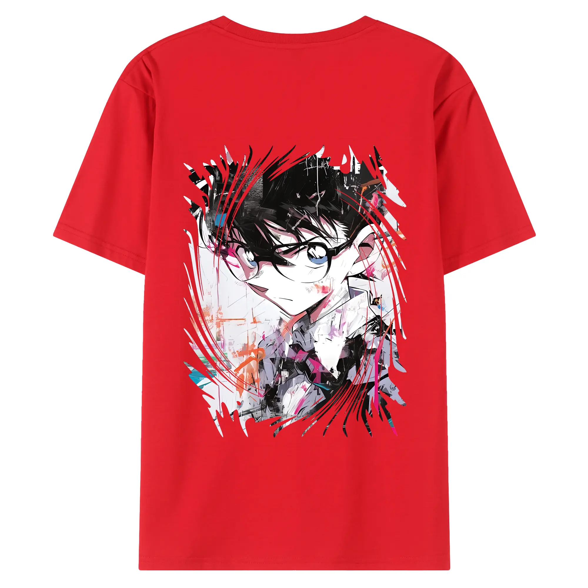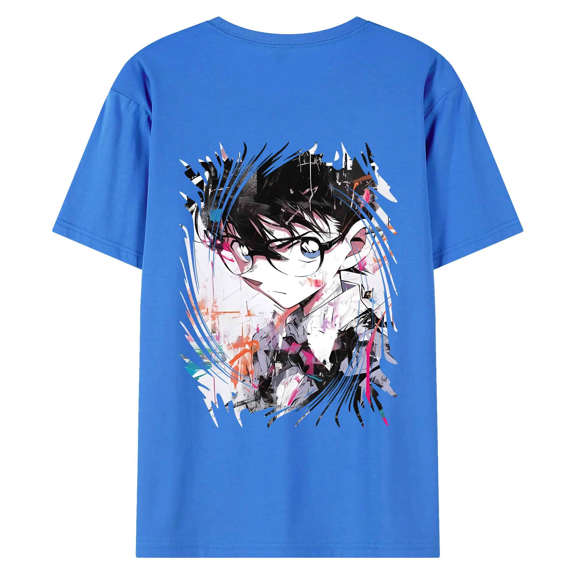 名探偵コナン グッズ 江戸川 コナン - 綿100% 半袖Tシャツ ・ フロントプリント ・ 快適 通気性 ・ 日常使い 散歩 スポーツ用
