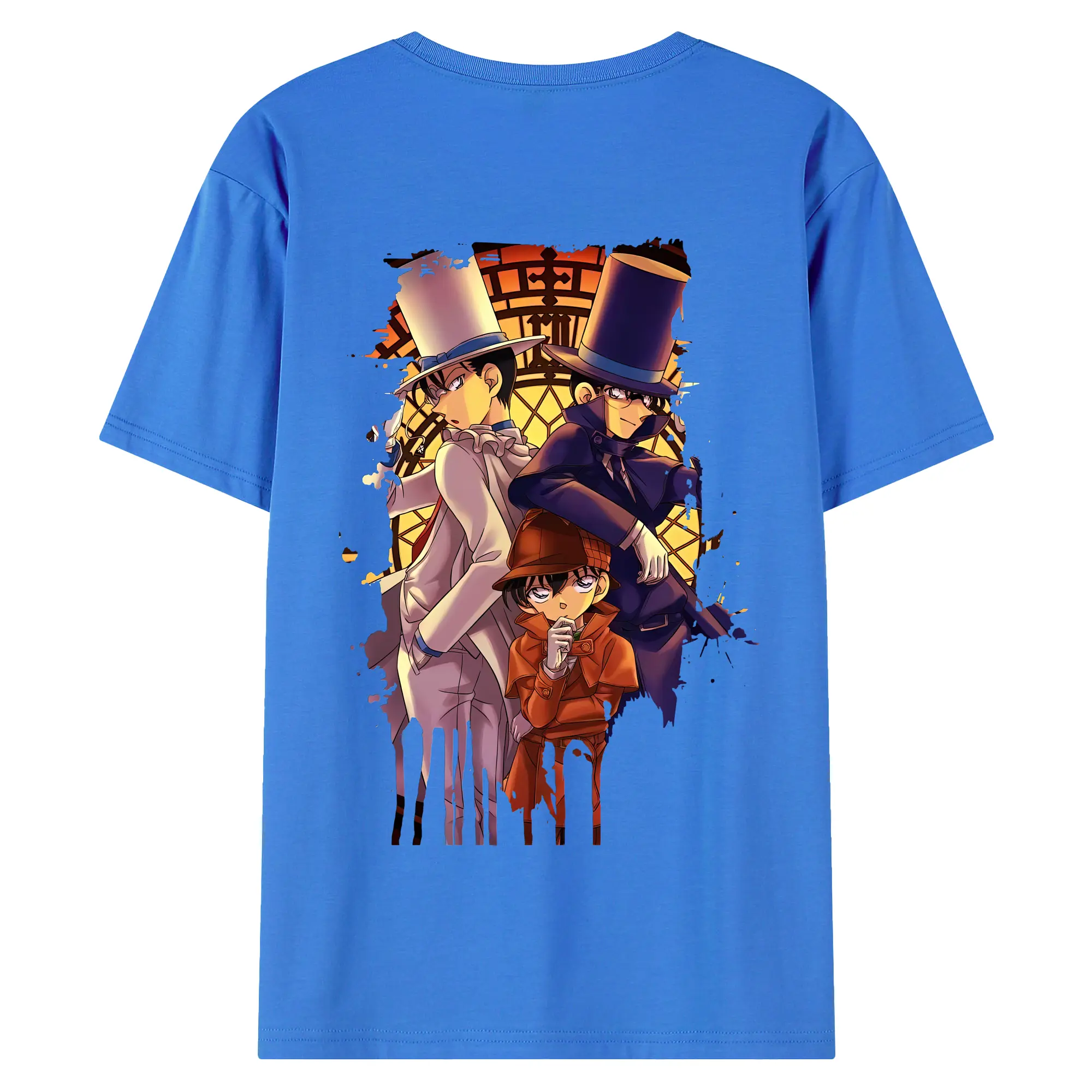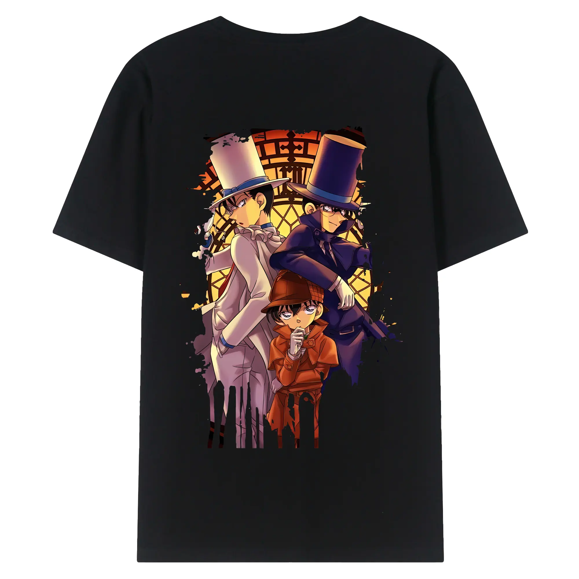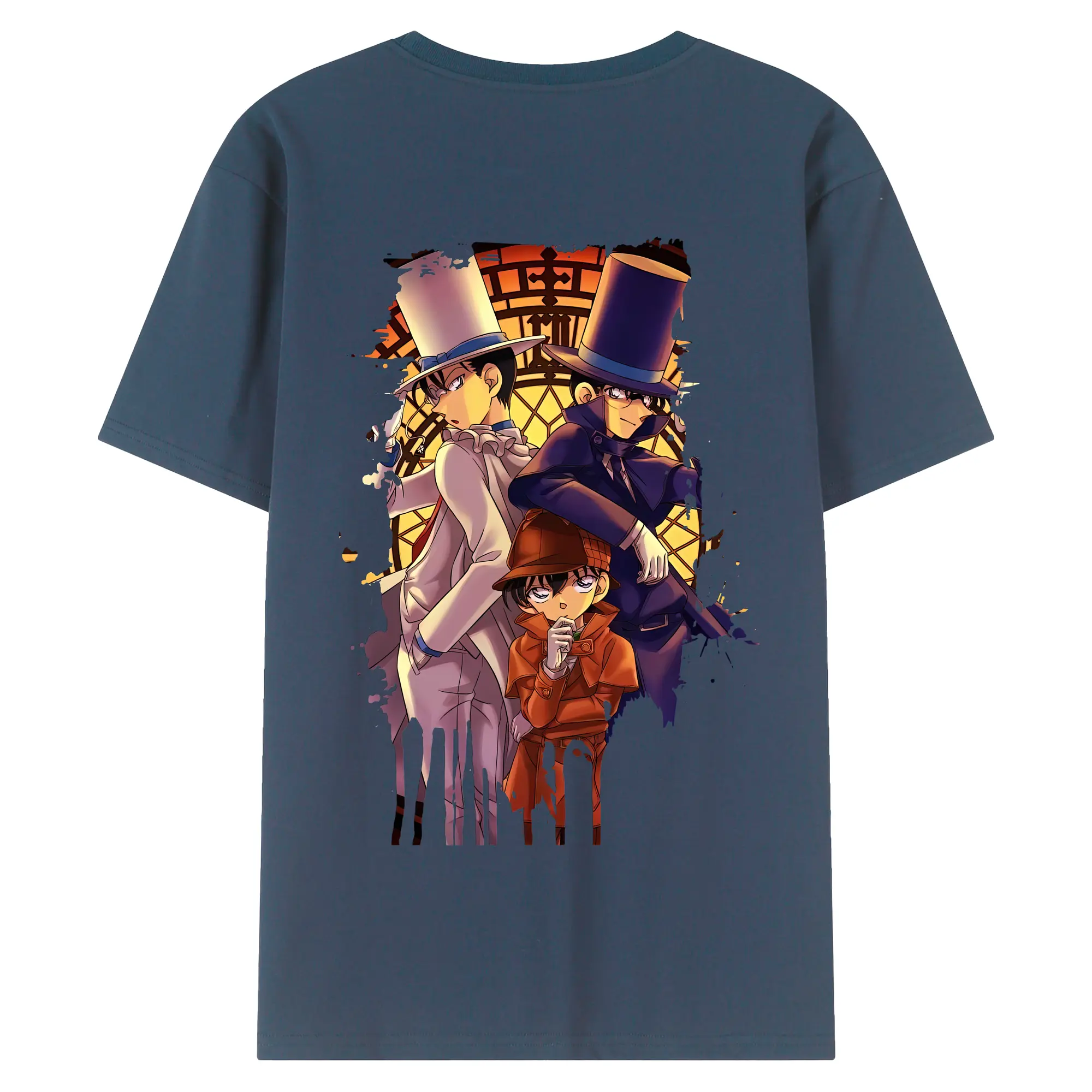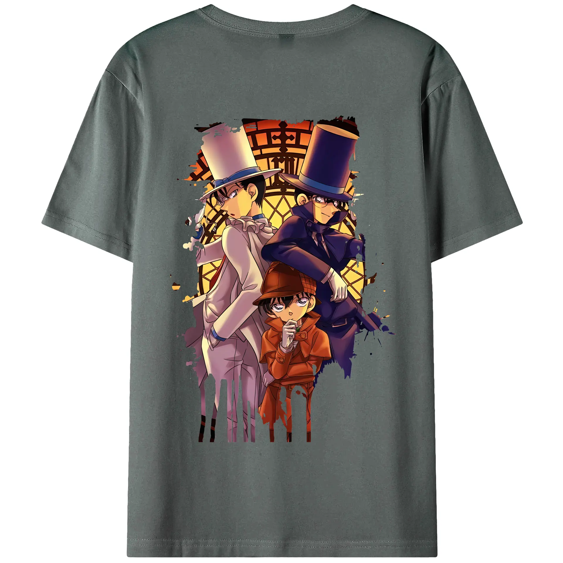名探偵コナン グッズ 江戸川 コナン - 綿100% ヴィンテージ風 半袖Tシャツ ・ 背面プリント ・ 柔らか肌触り ・ 通気性 快適 ・ スポーツ カジュアル 外出用