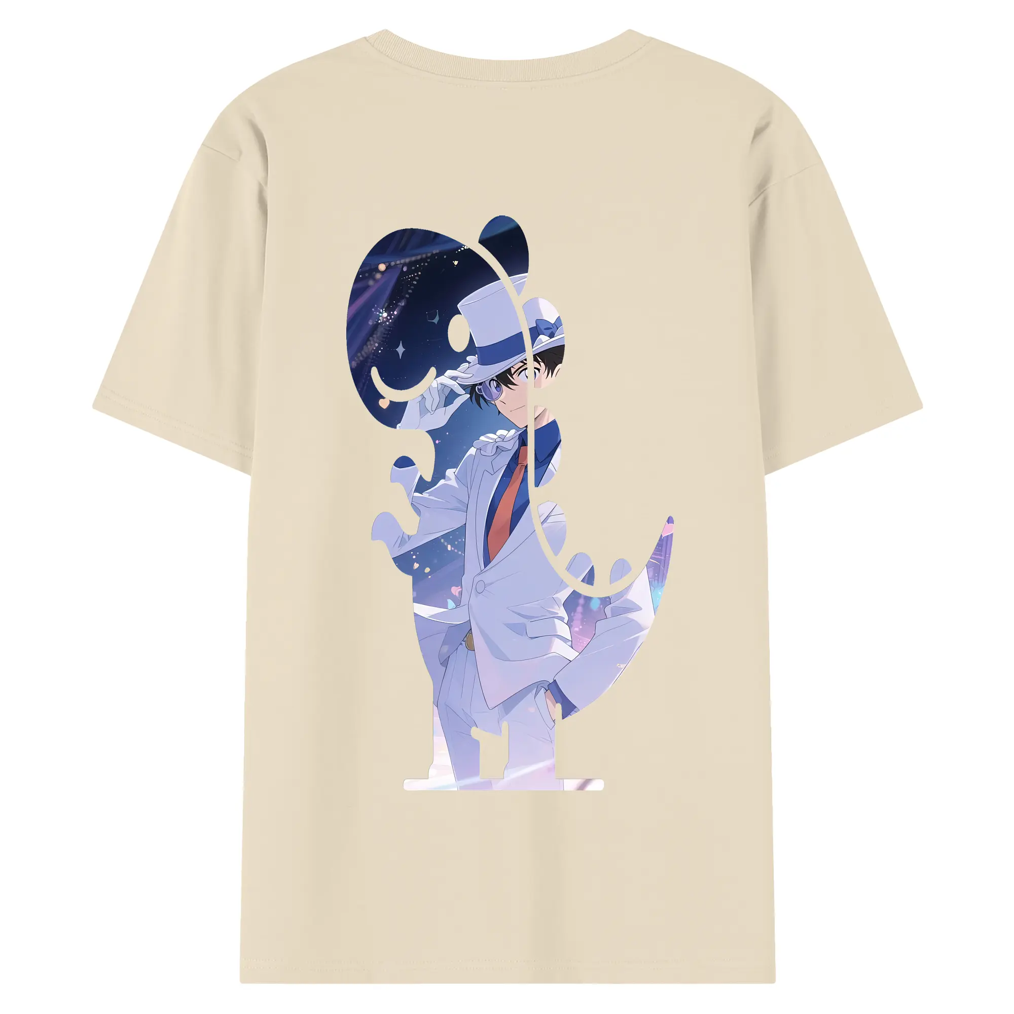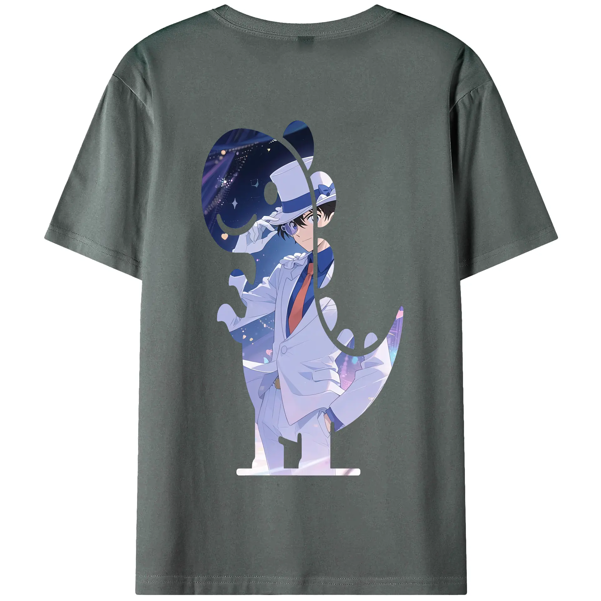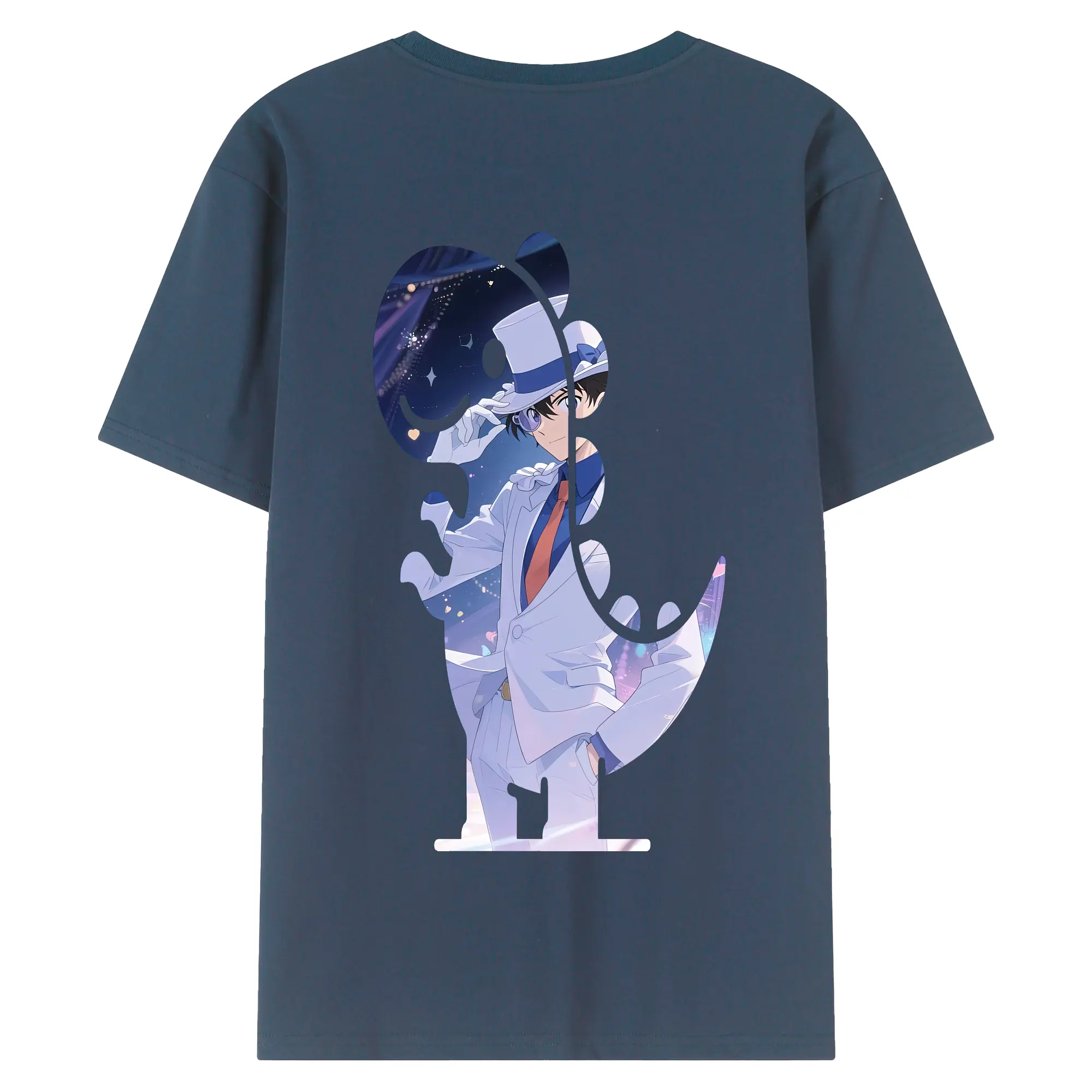 名探偵コナン グッズ 江戸川 コナン - 綿100% ヴィンテージ風 半袖Tシャツ ・ 背面プリント ・ 柔らか肌触り ・ 通気性 快適 ・ スポーツ カジュアル 外出用