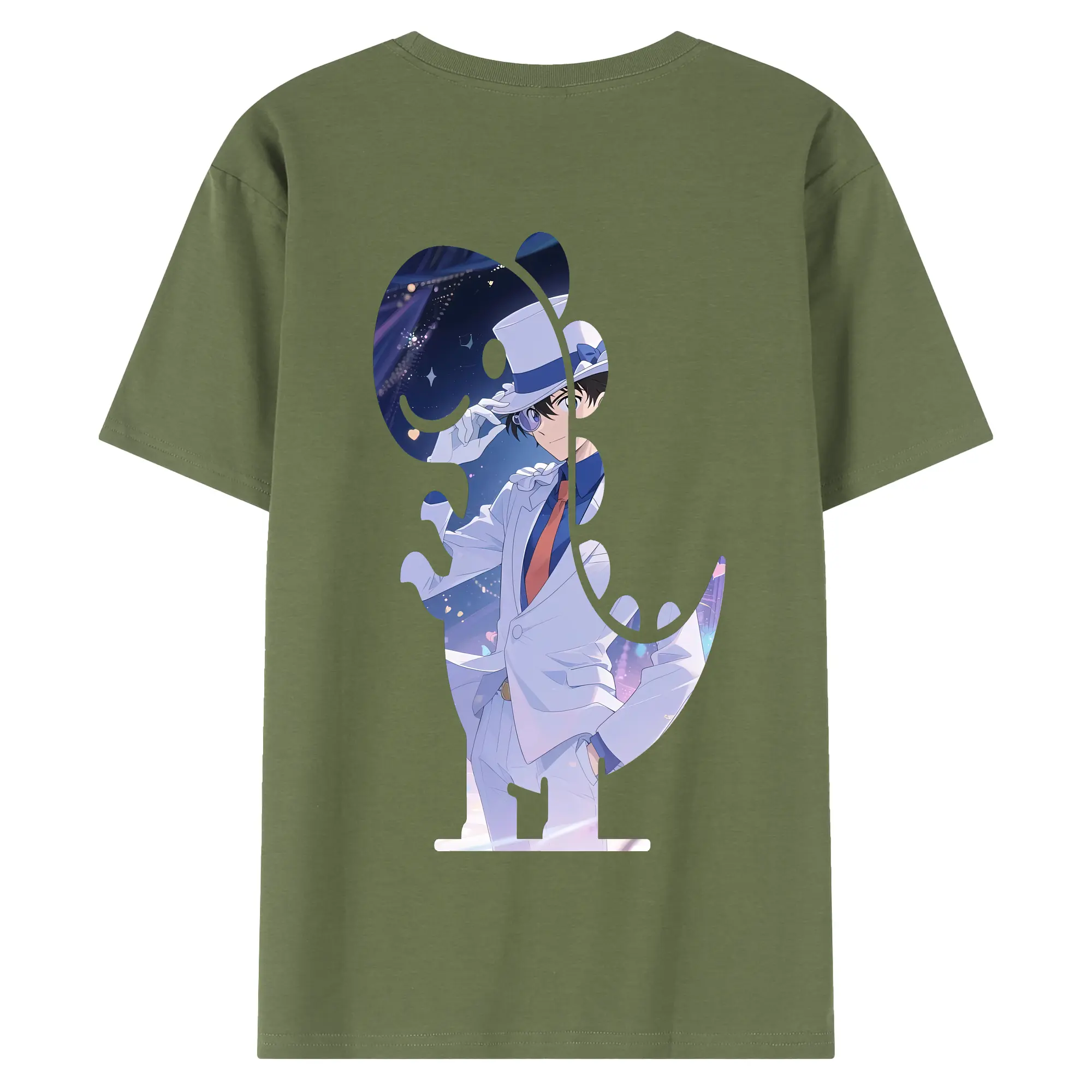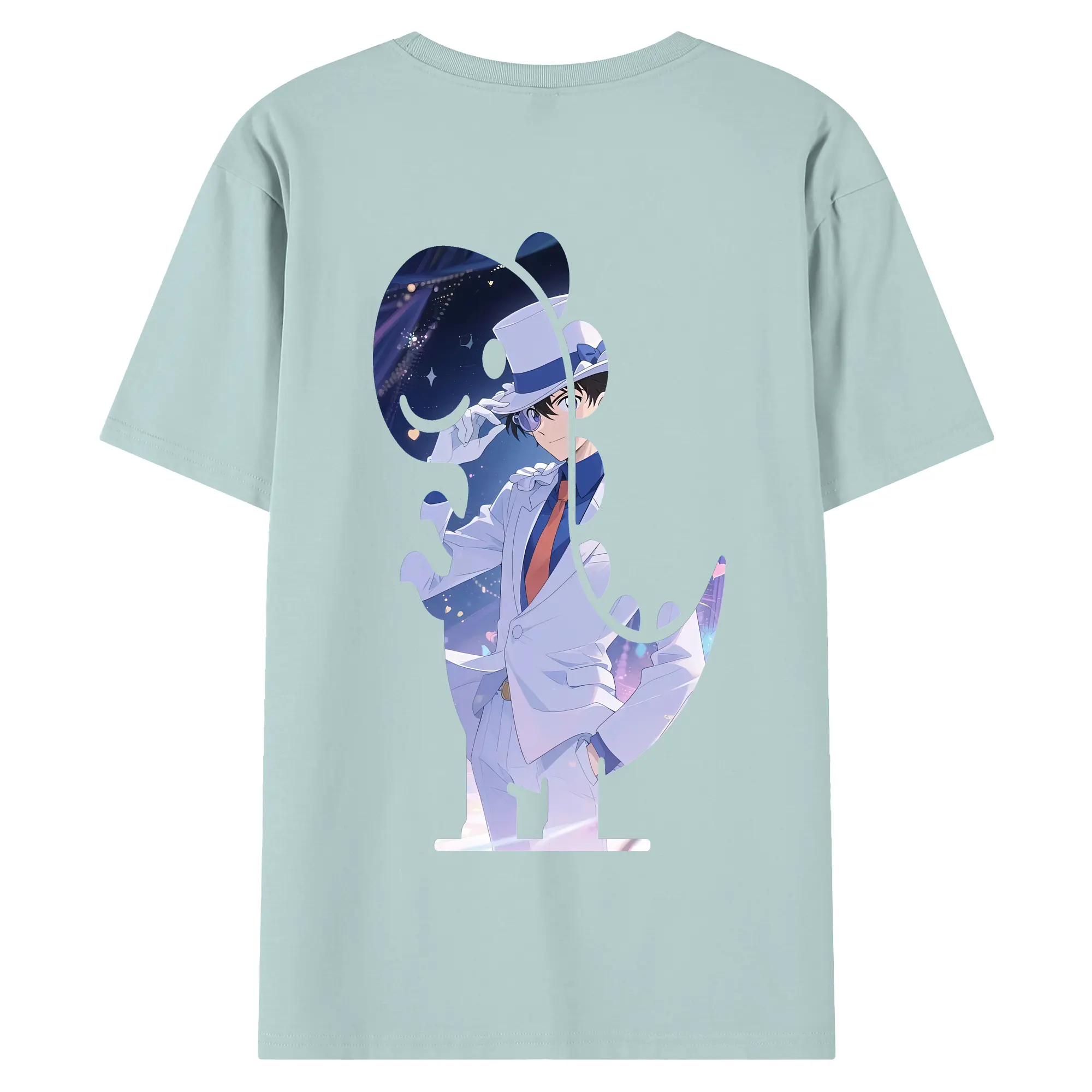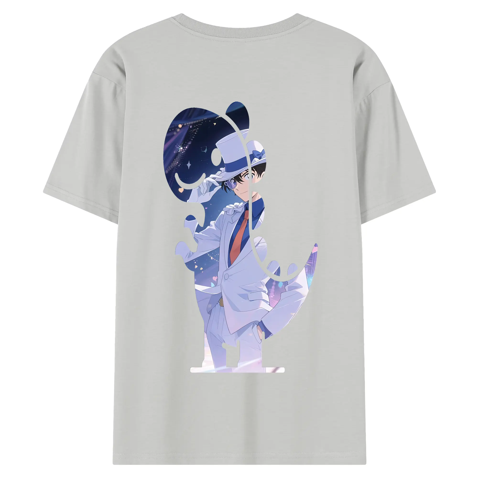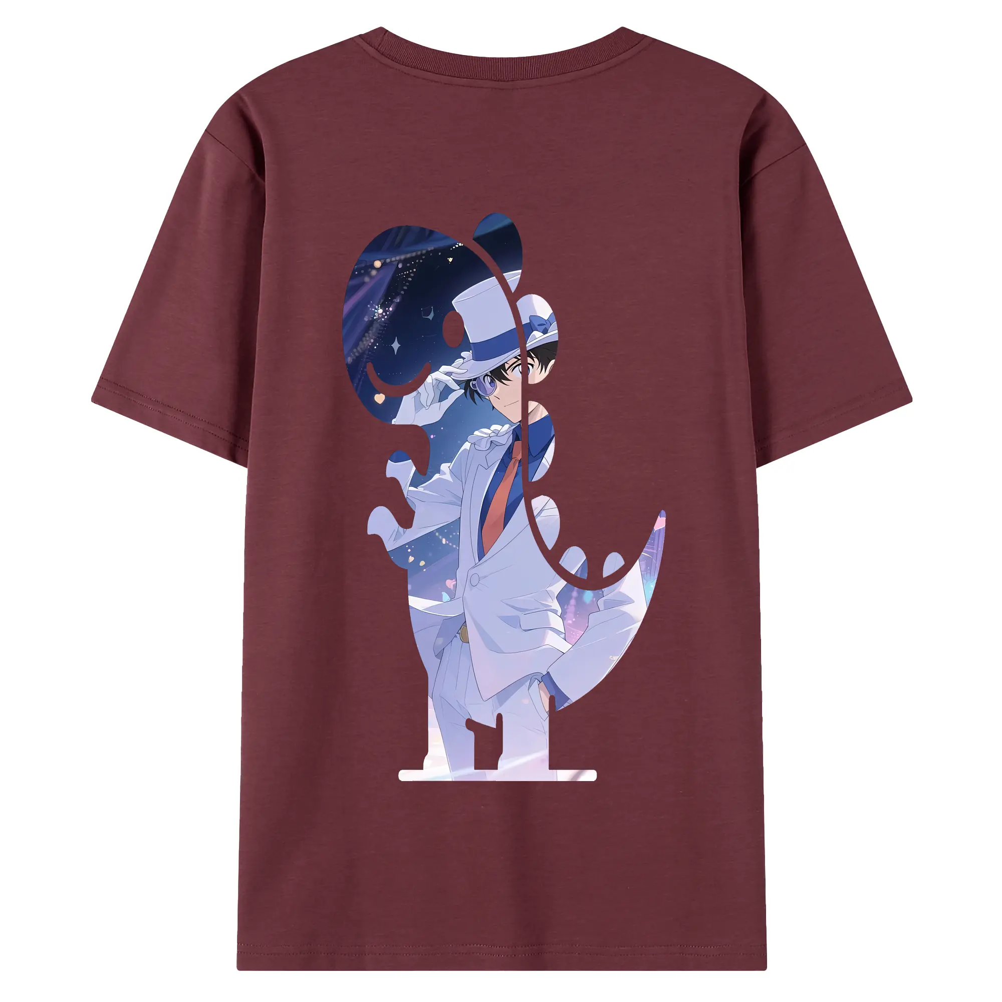 名探偵コナン グッズ 江戸川 コナン - 綿100% ヴィンテージ風 半袖Tシャツ ・ 背面プリント ・ 柔らか肌触り ・ 通気性 快適 ・ スポーツ カジュアル 外出用