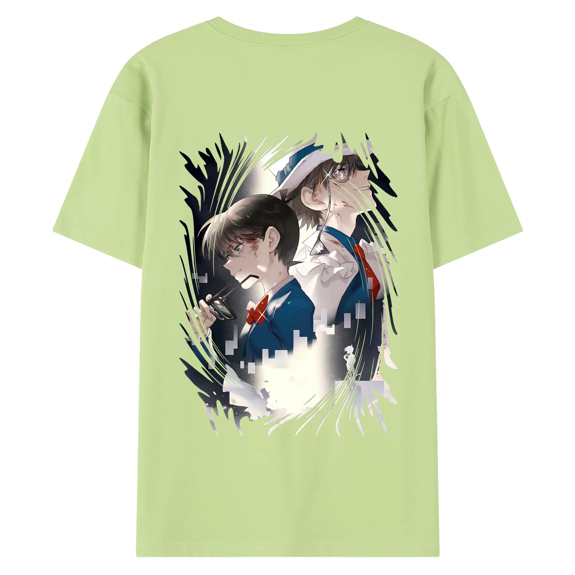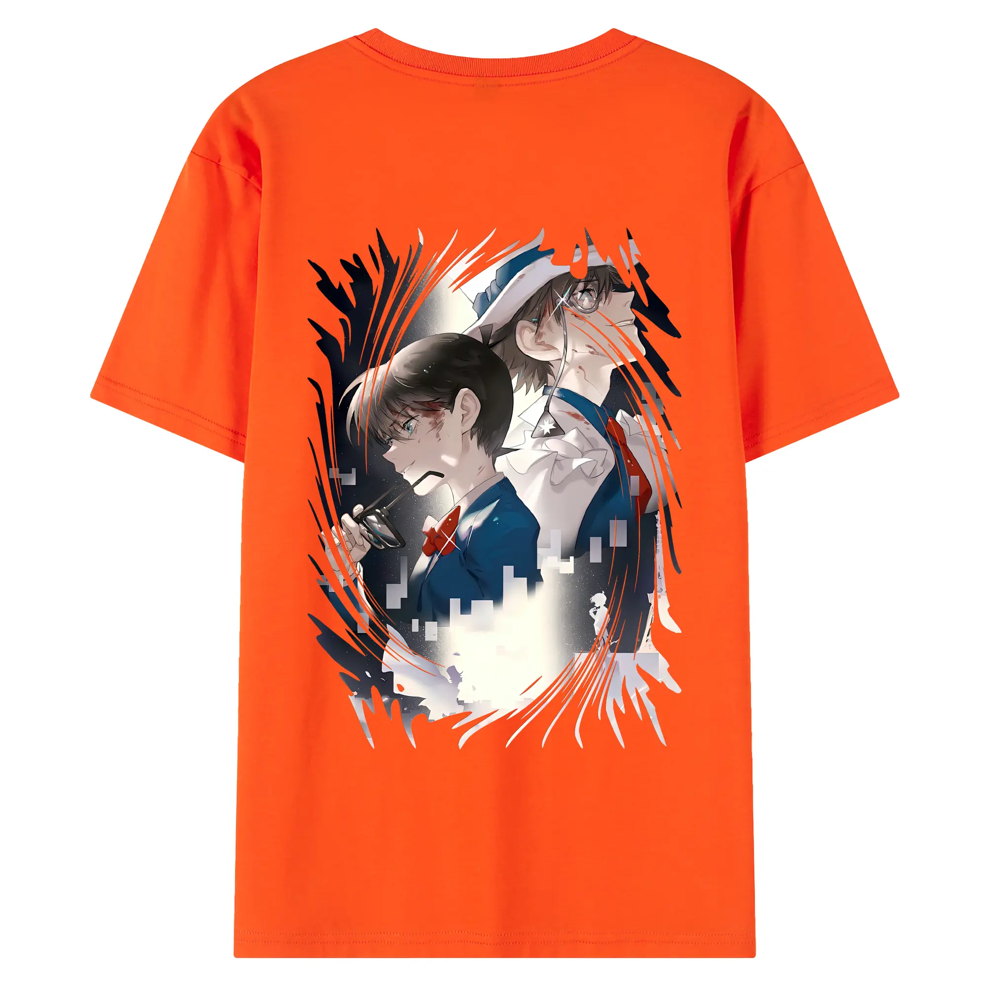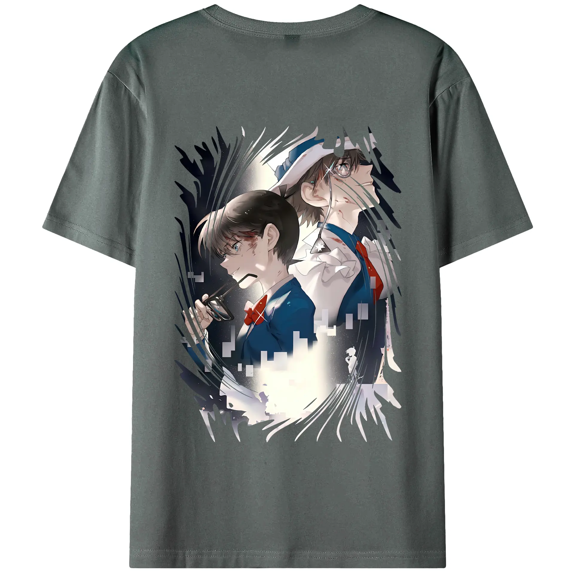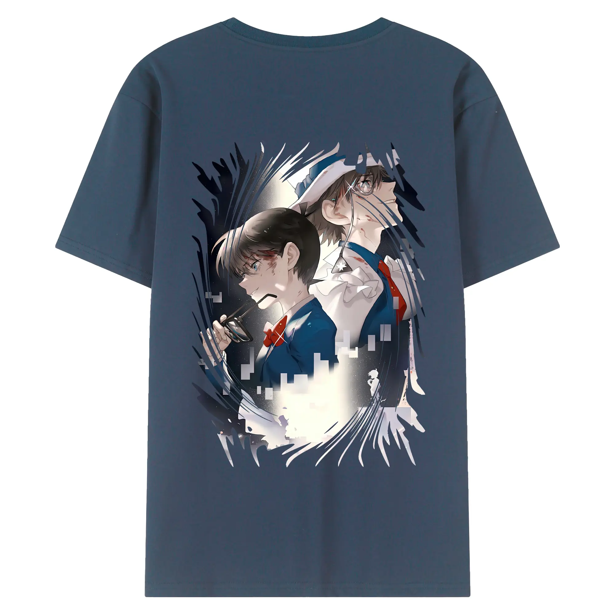 名探偵コナン グッズ 江戸川 コナン - 綿100% ヴィンテージ風 半袖Tシャツ ・ 背面プリント ・ 柔らか肌触り ・ 通気性 快適 ・ スポーツ カジュアル 外出用