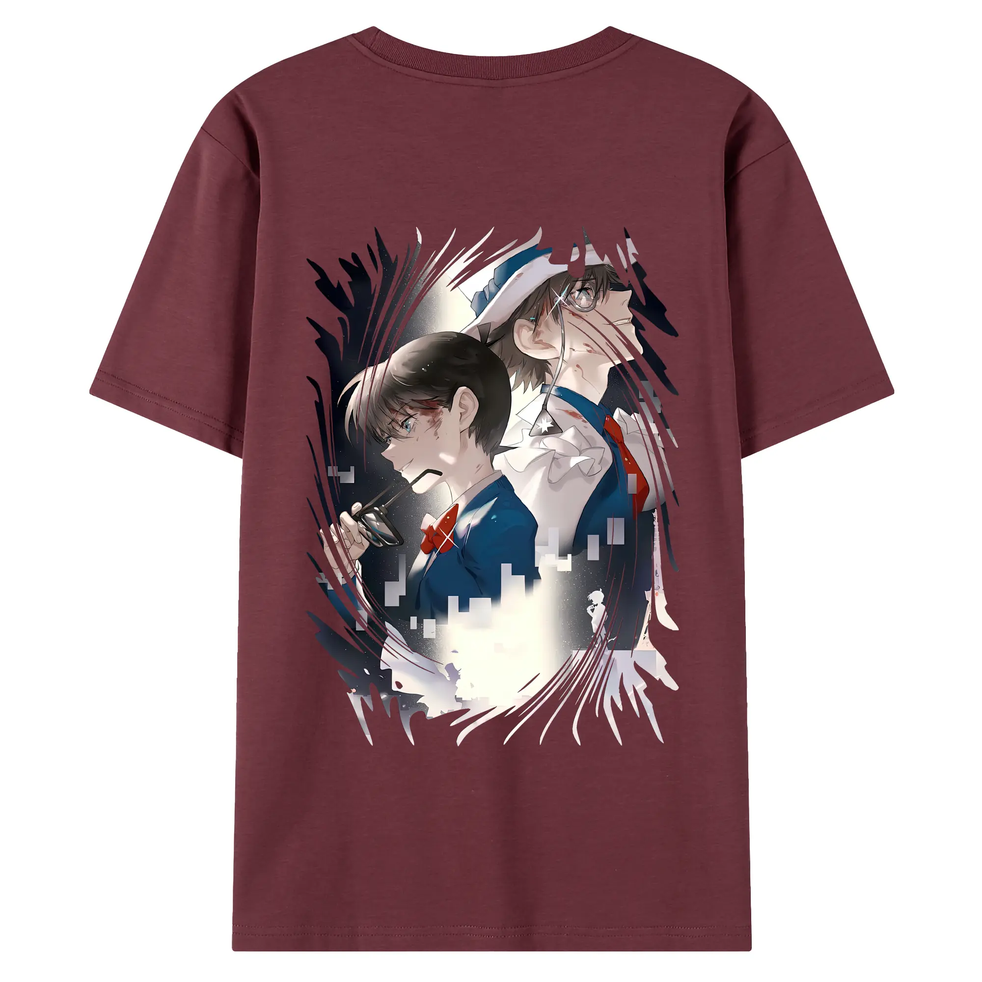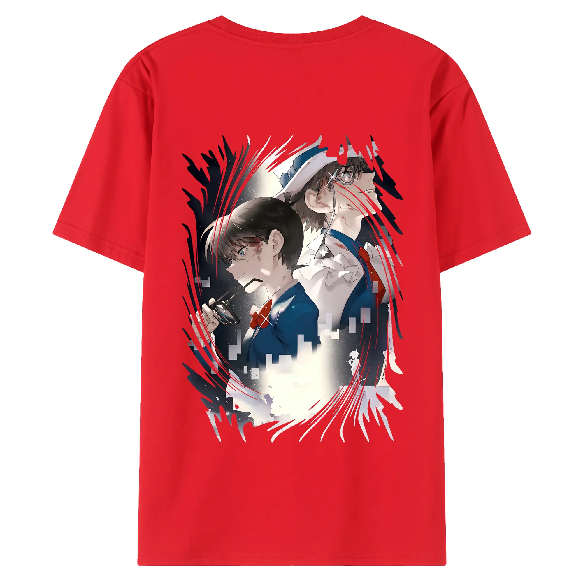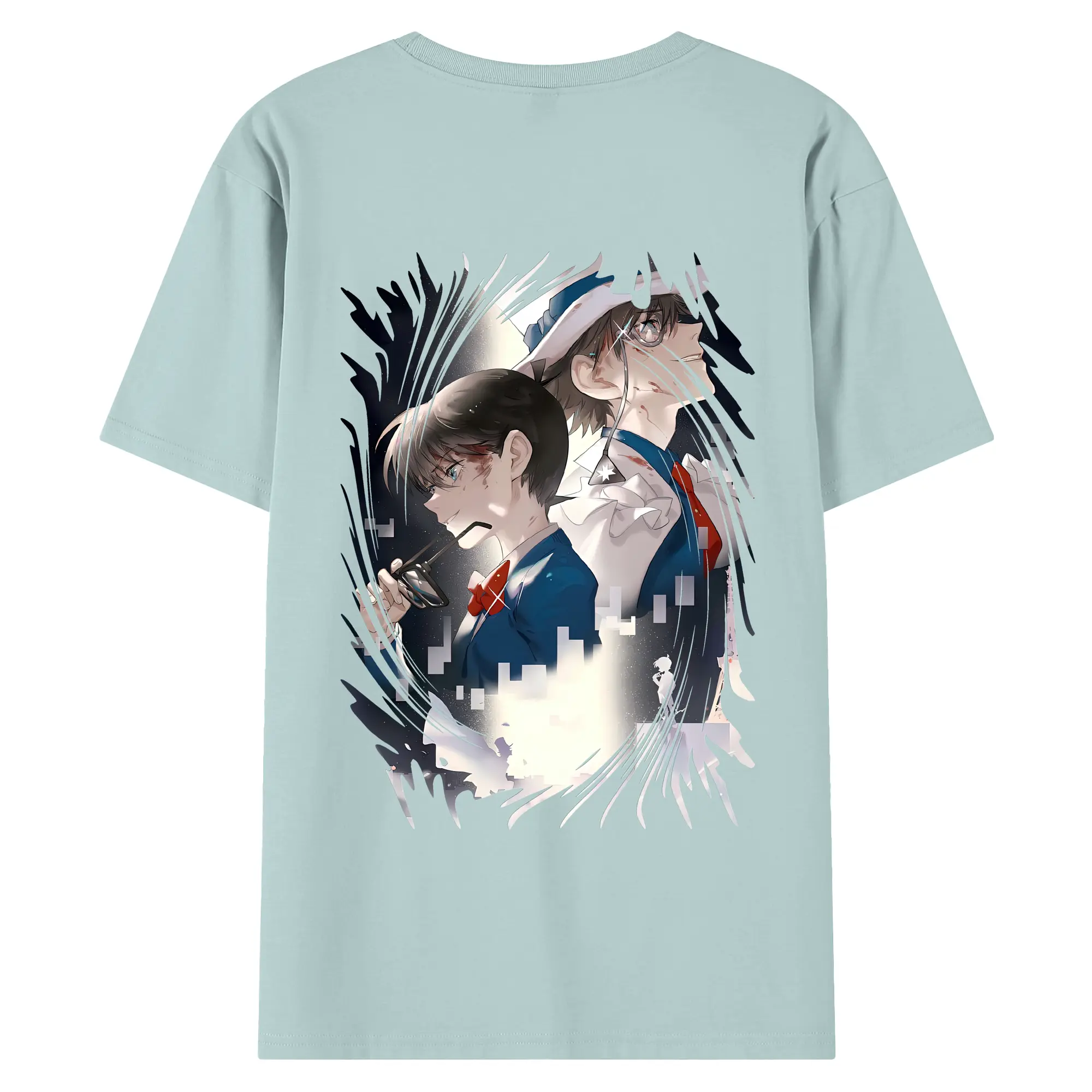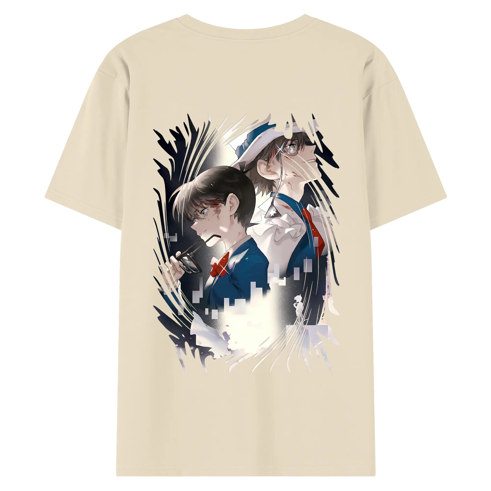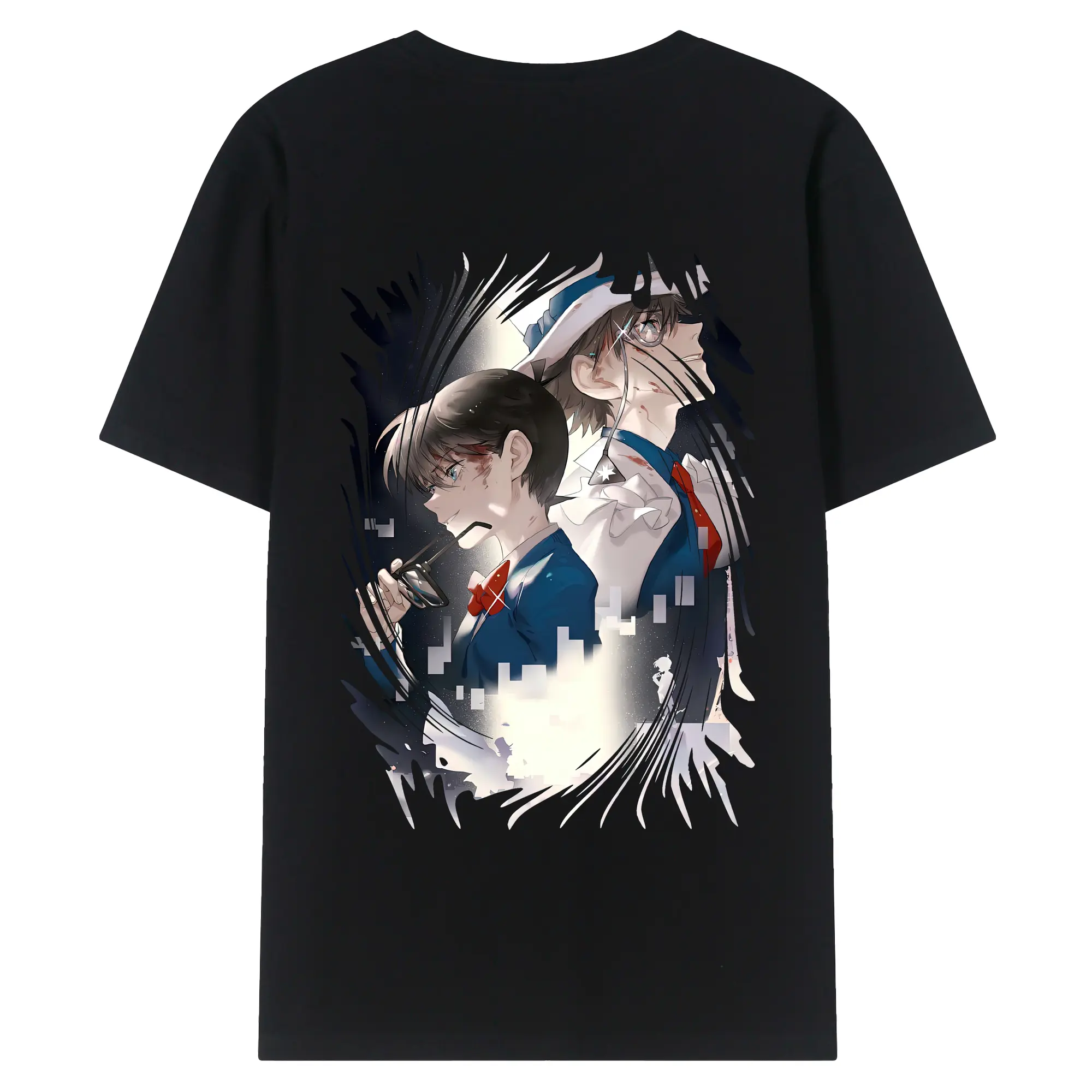 名探偵コナン グッズ 江戸川 コナン - 綿100% ヴィンテージ風 半袖Tシャツ ・ 背面プリント ・ 柔らか肌触り ・ 通気性 快適 ・ スポーツ カジュアル 外出用
