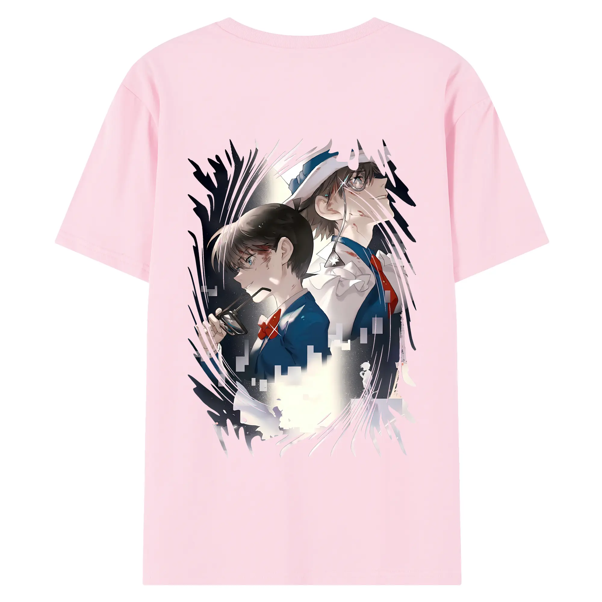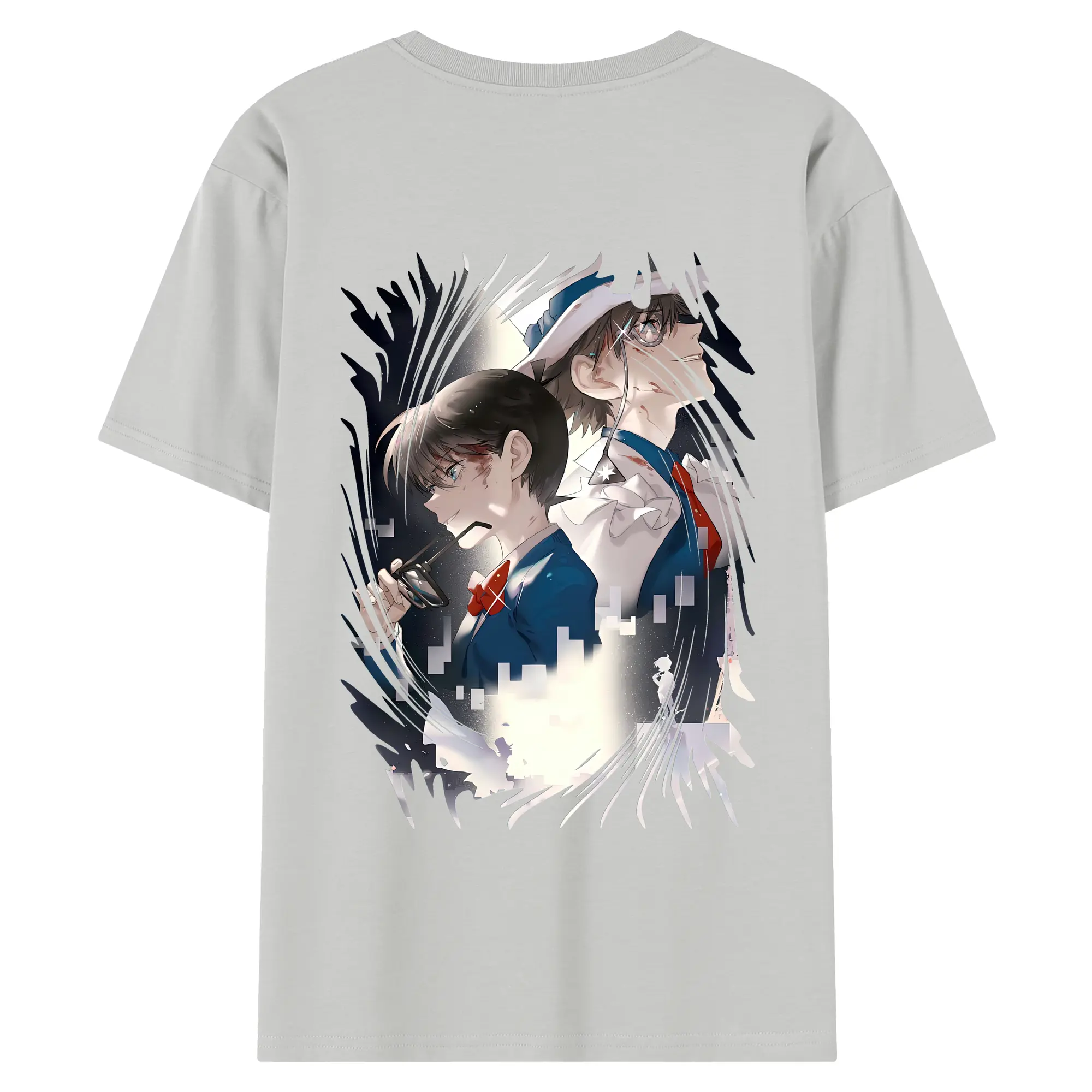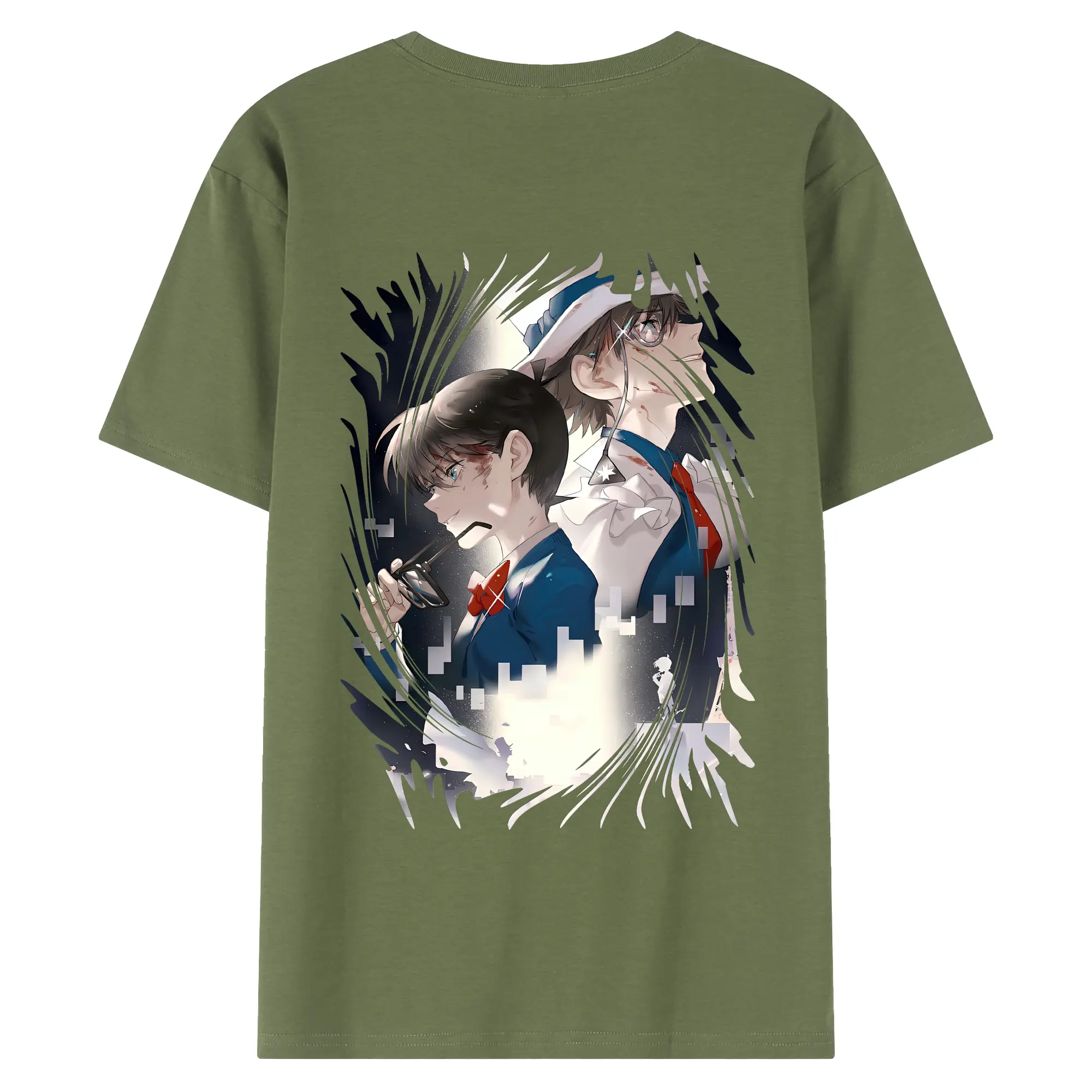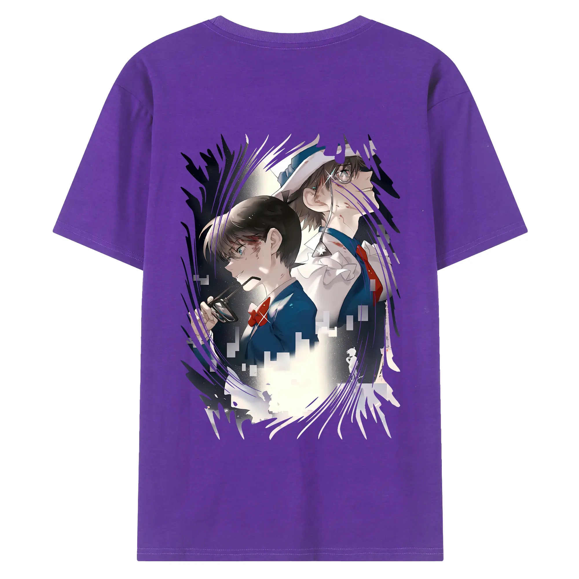 名探偵コナン グッズ 江戸川 コナン - 綿100% ヴィンテージ風 半袖Tシャツ ・ 背面プリント ・ 柔らか肌触り ・ 通気性 快適 ・ スポーツ カジュアル 外出用