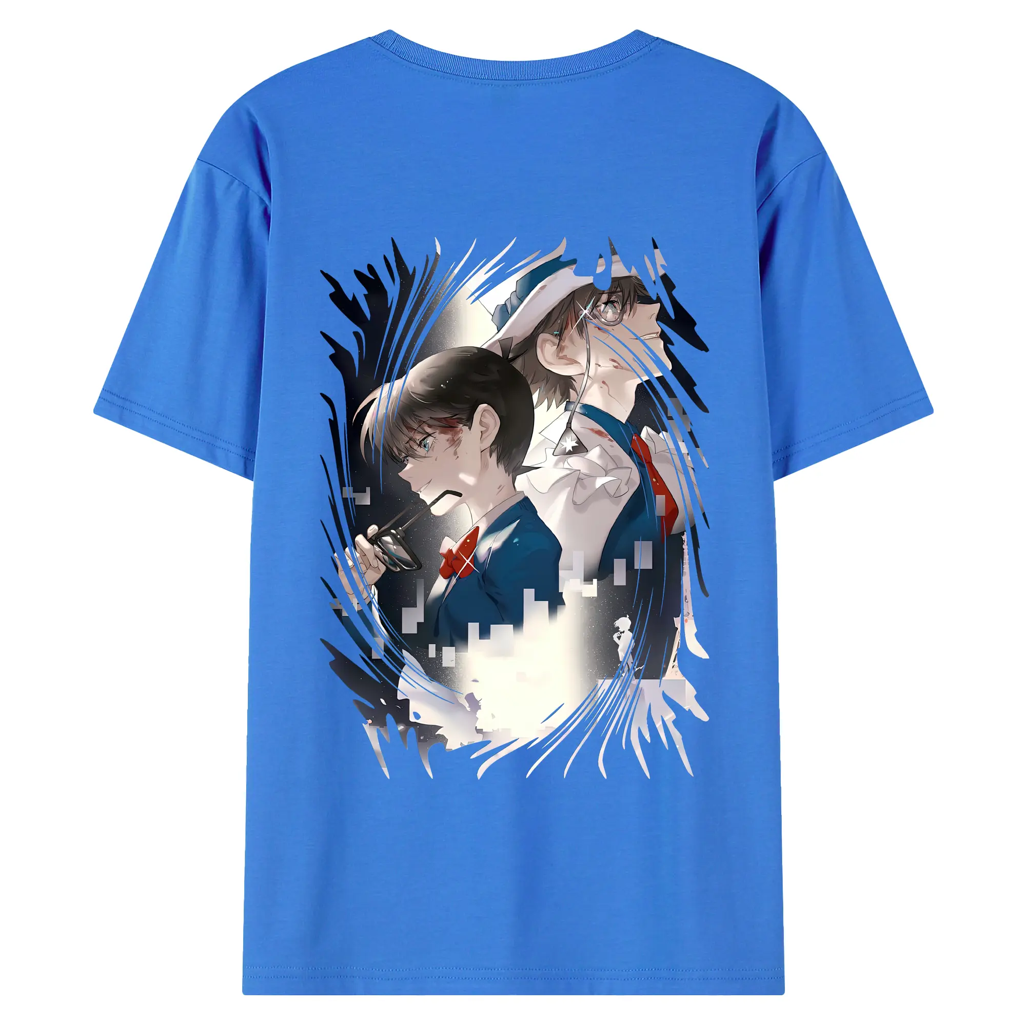 名探偵コナン グッズ 江戸川 コナン - 綿100% 半袖Tシャツ ・ フロントプリント ・ 快適 通気性 ・ 日常使い 散歩 スポーツ用