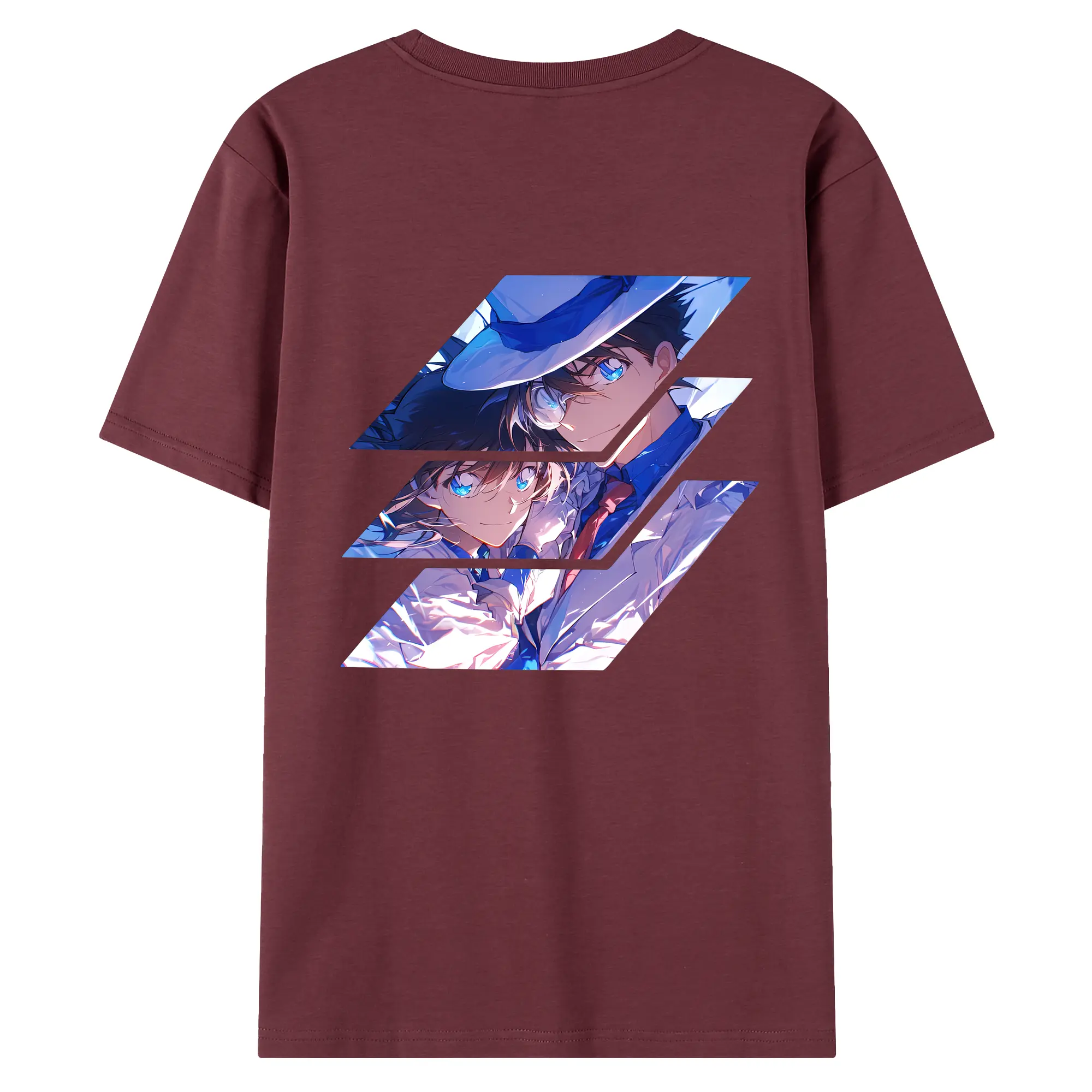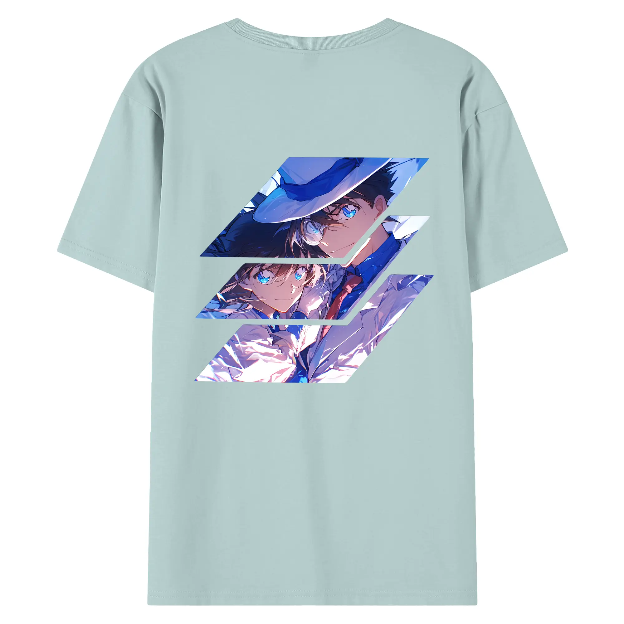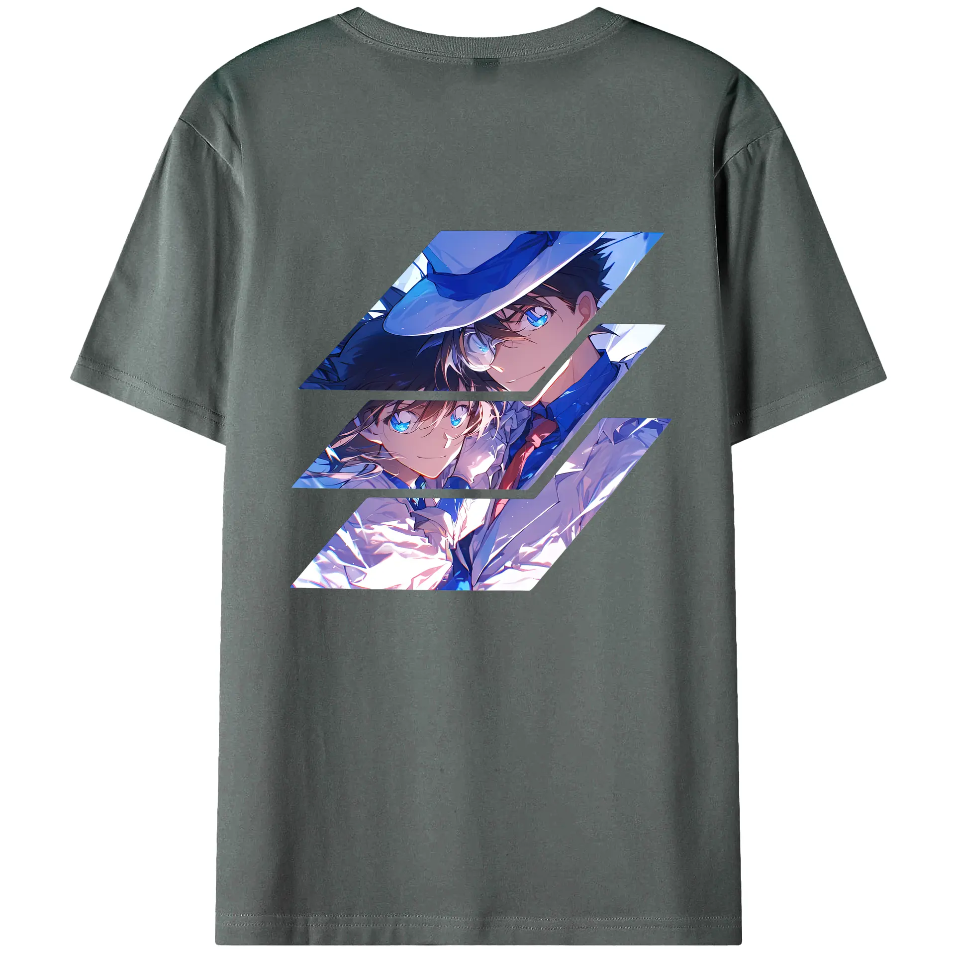 名探偵コナン グッズ 江戸川 コナン - 綿100% ヴィンテージ風 半袖Tシャツ ・ 背面プリント ・ 柔らか肌触り ・ 通気性 快適 ・ スポーツ カジュアル 外出用