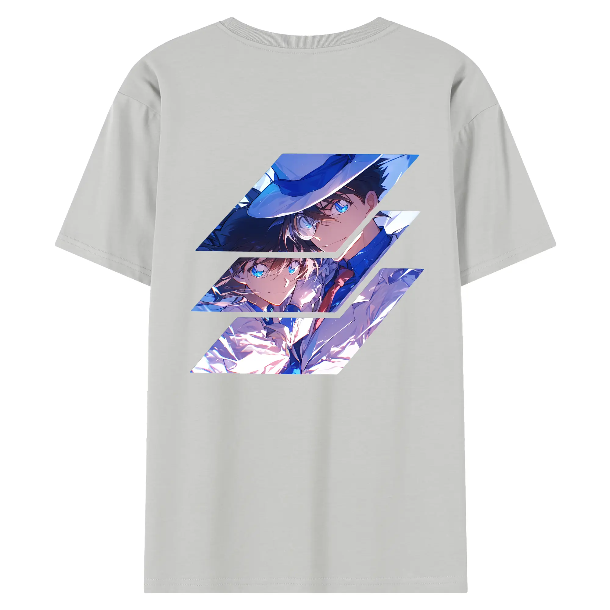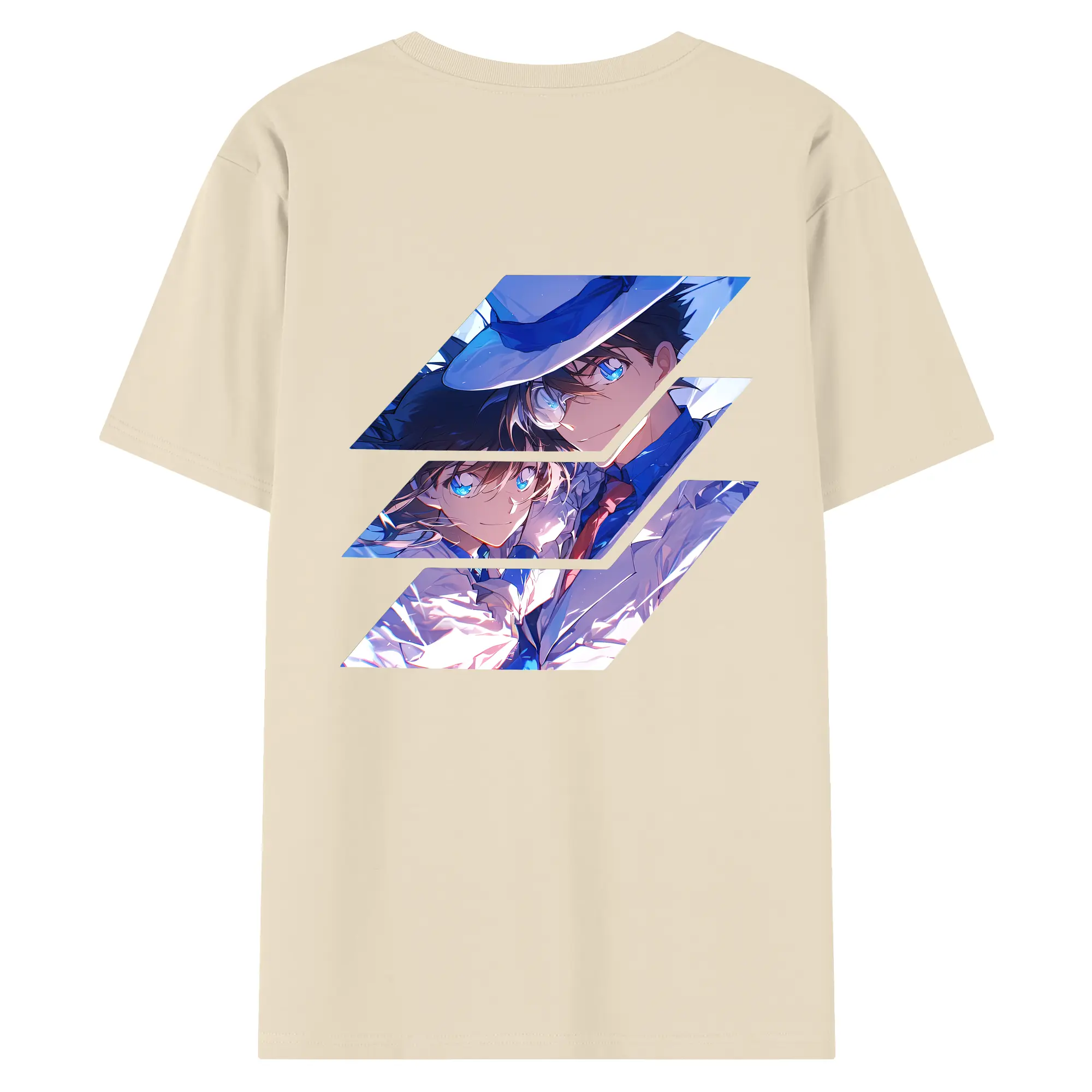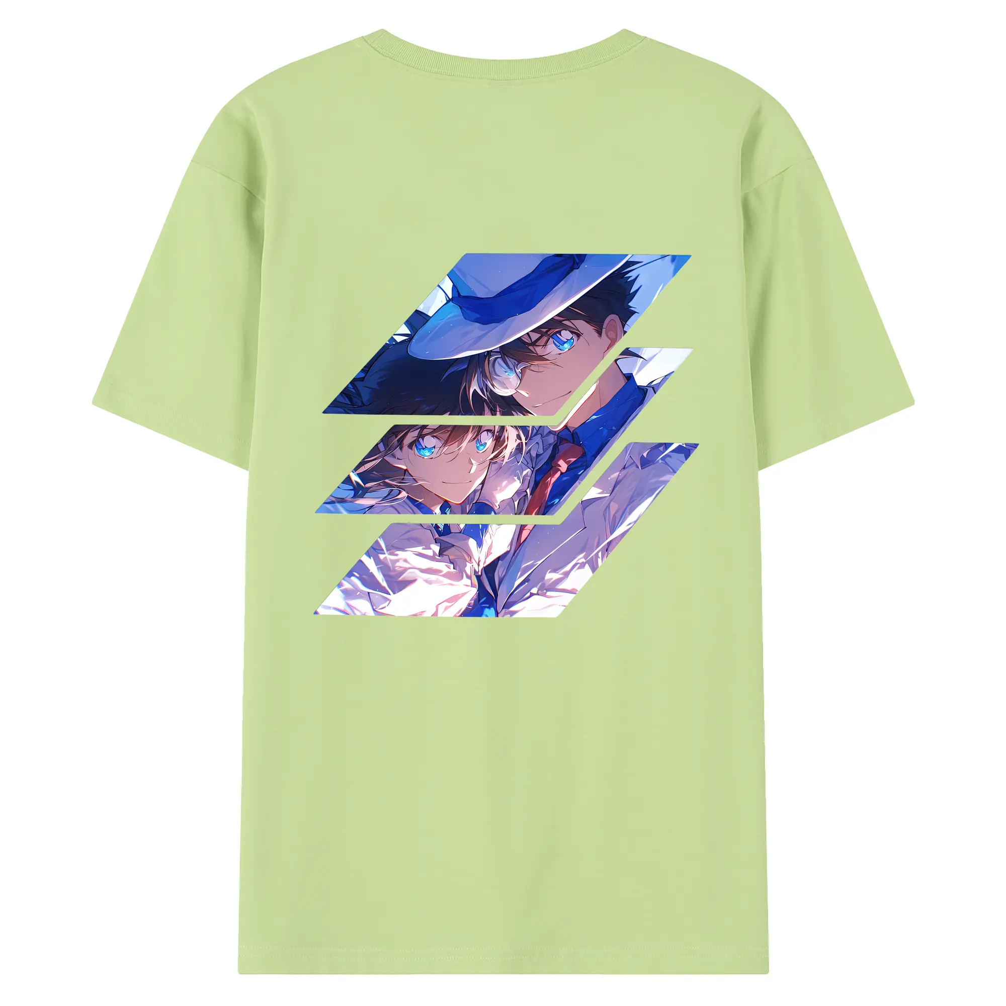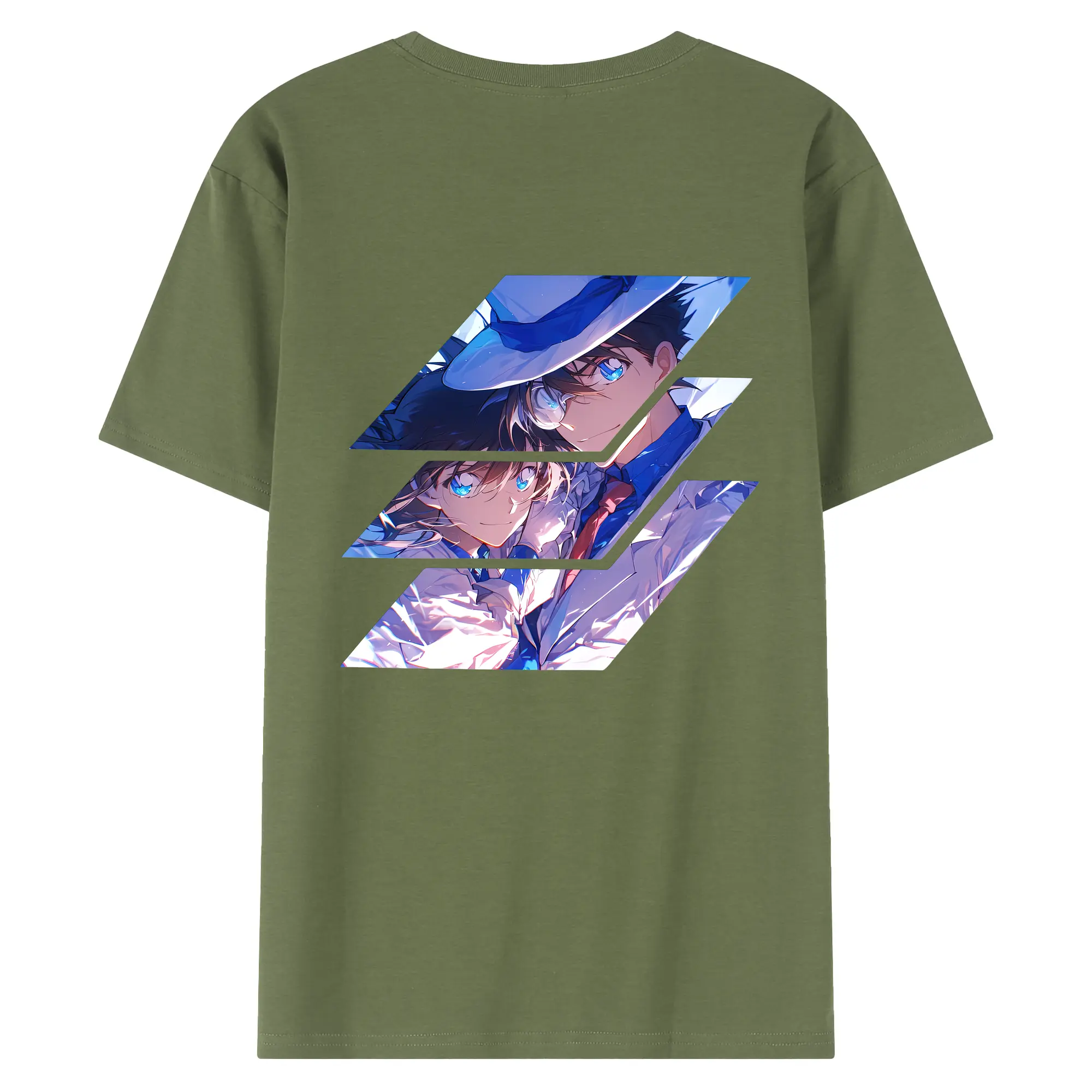 名探偵コナン グッズ 江戸川 コナン - 綿100% ヴィンテージ風 半袖Tシャツ ・ 背面プリント ・ 柔らか肌触り ・ 通気性 快適 ・ スポーツ カジュアル 外出用