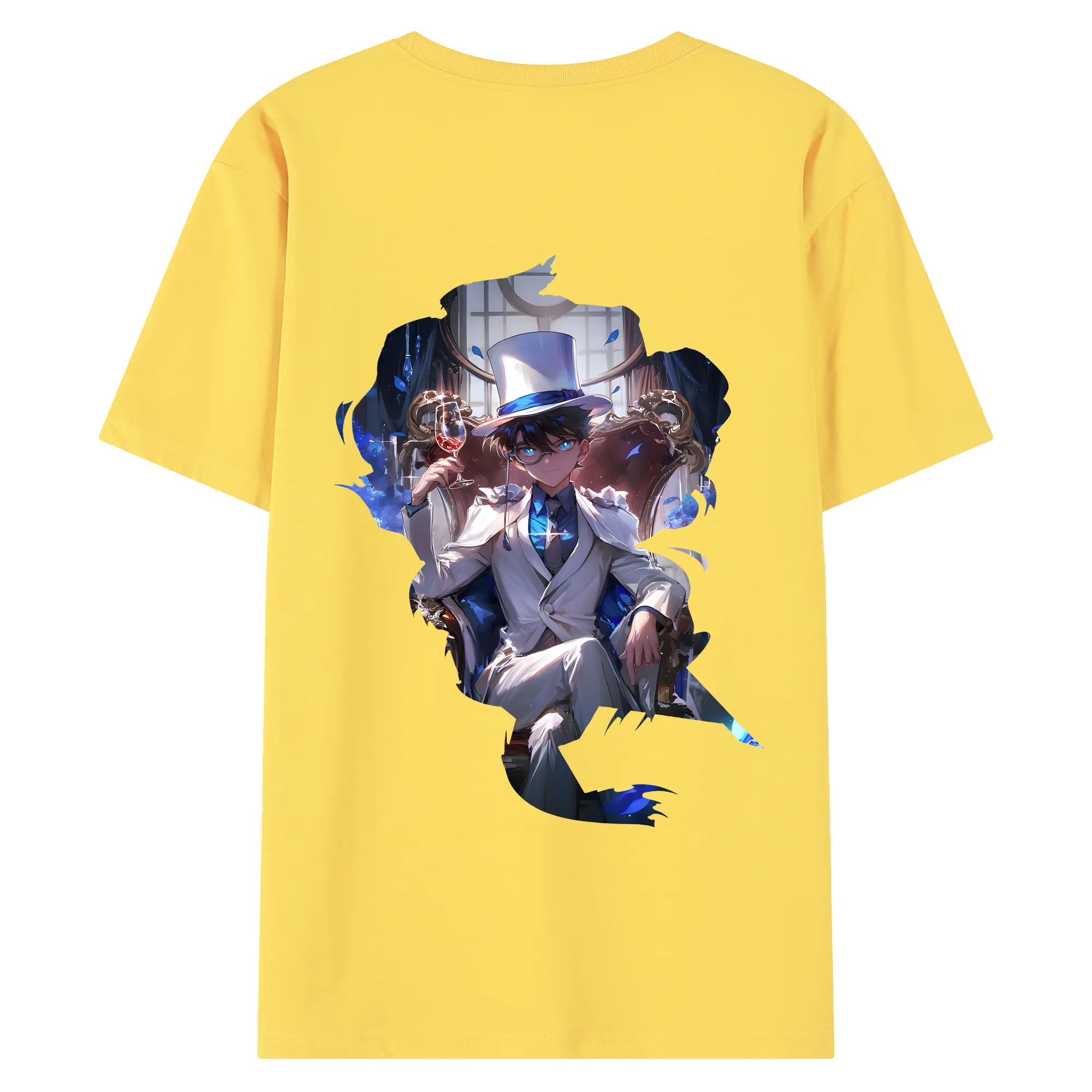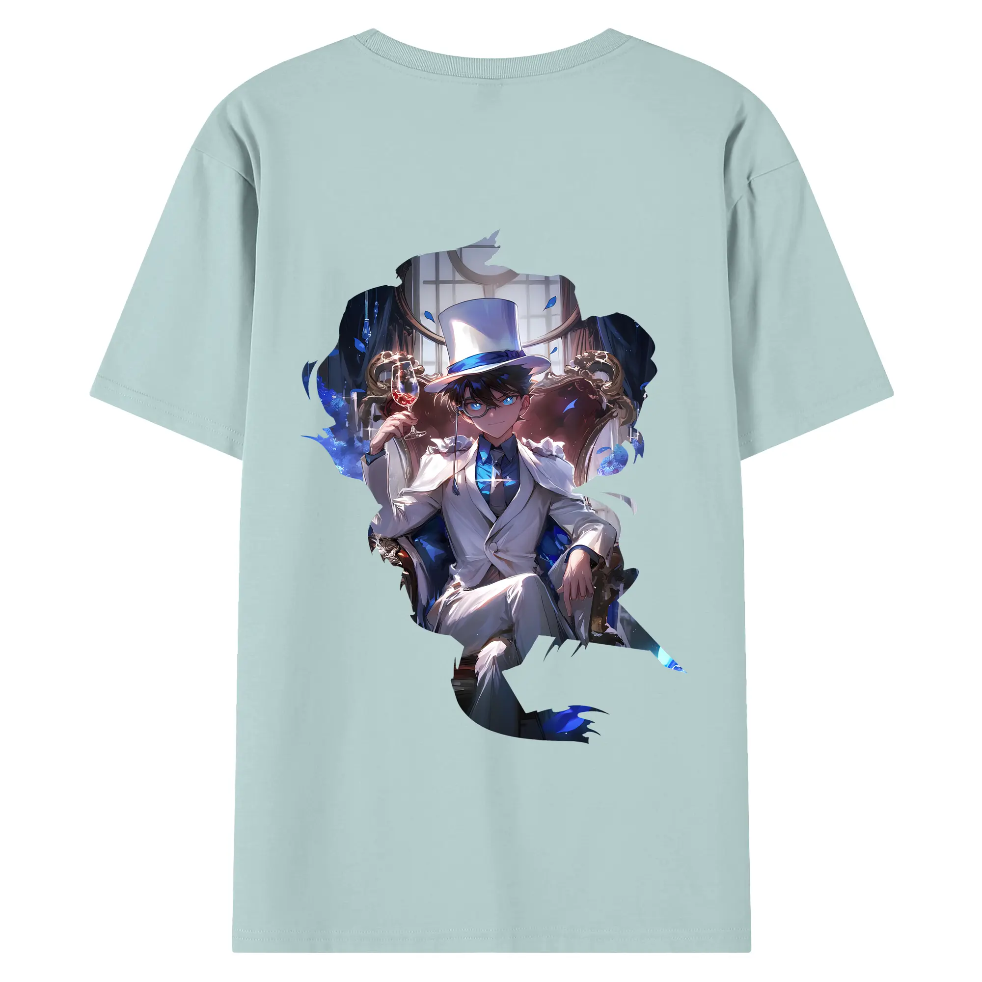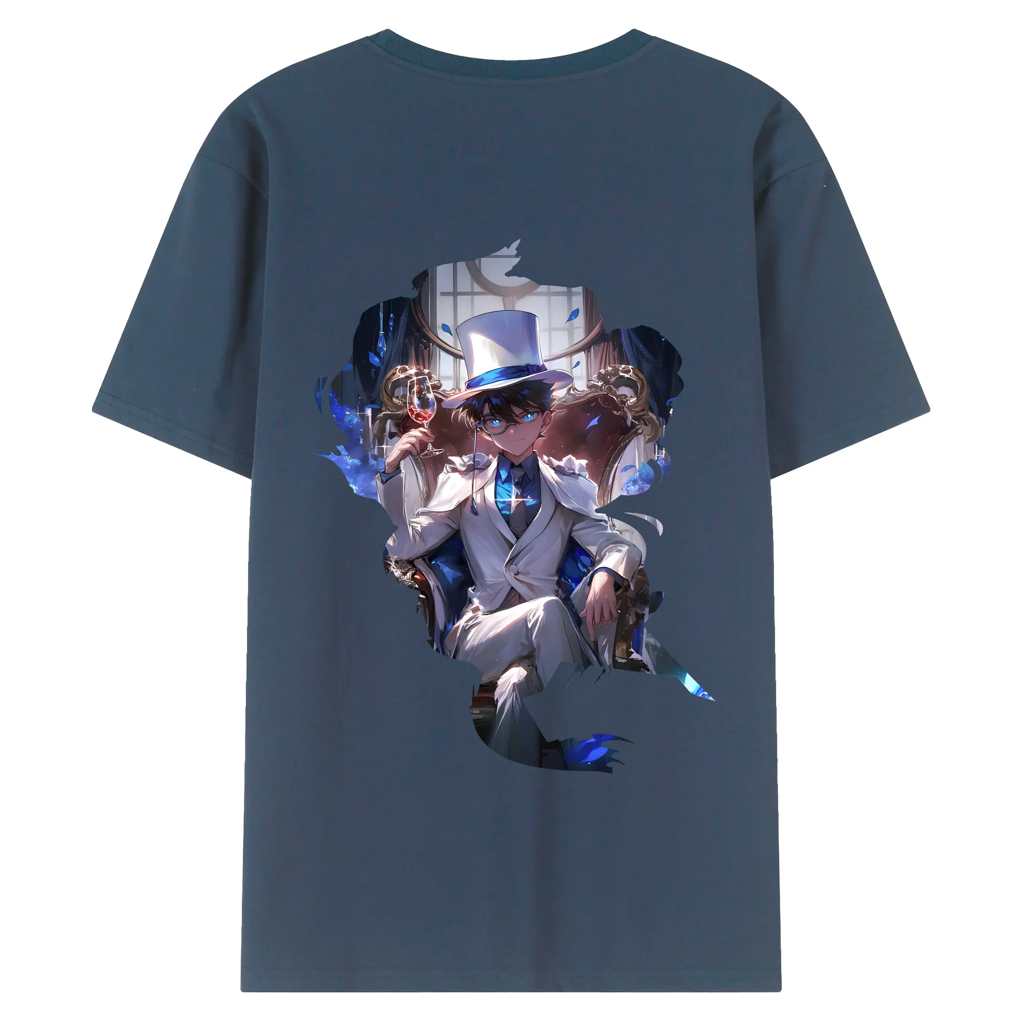 名探偵コナン グッズ 江戸川 コナン - 綿100% ヴィンテージ風 半袖Tシャツ ・ 背面プリント ・ 柔らか肌触り ・ 通気性 快適 ・ スポーツ カジュアル 外出用