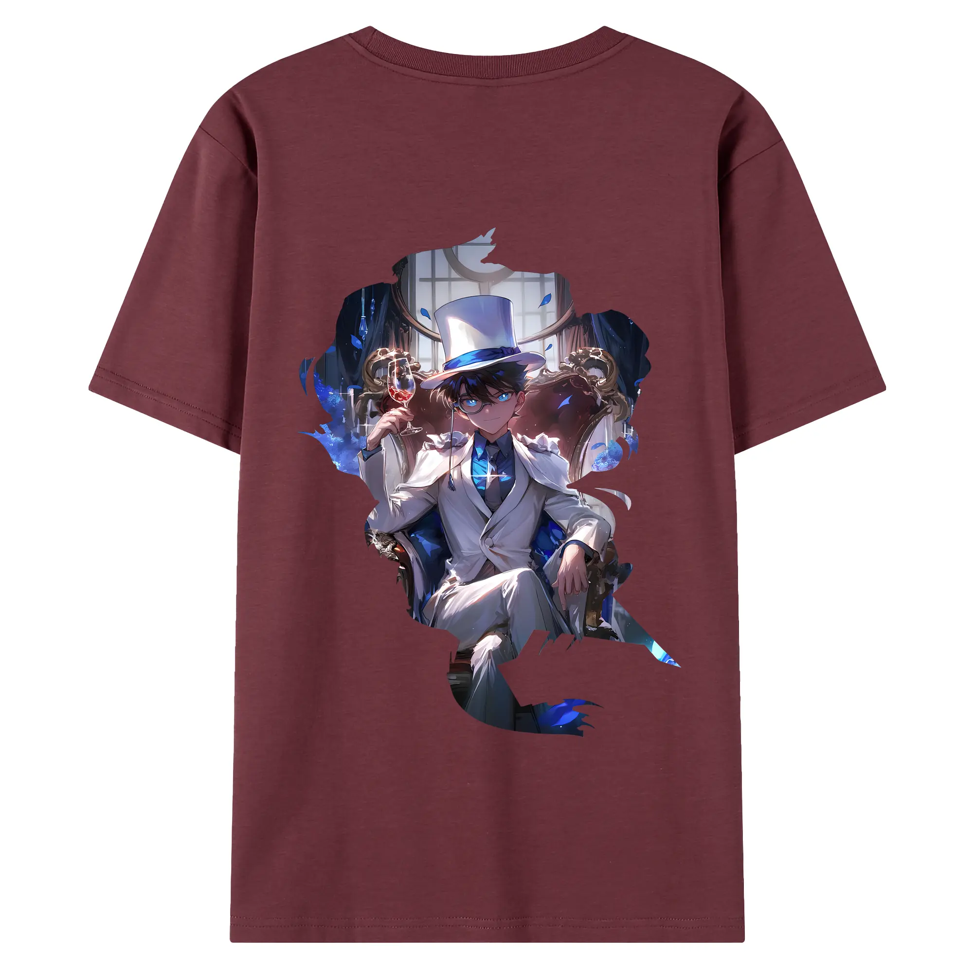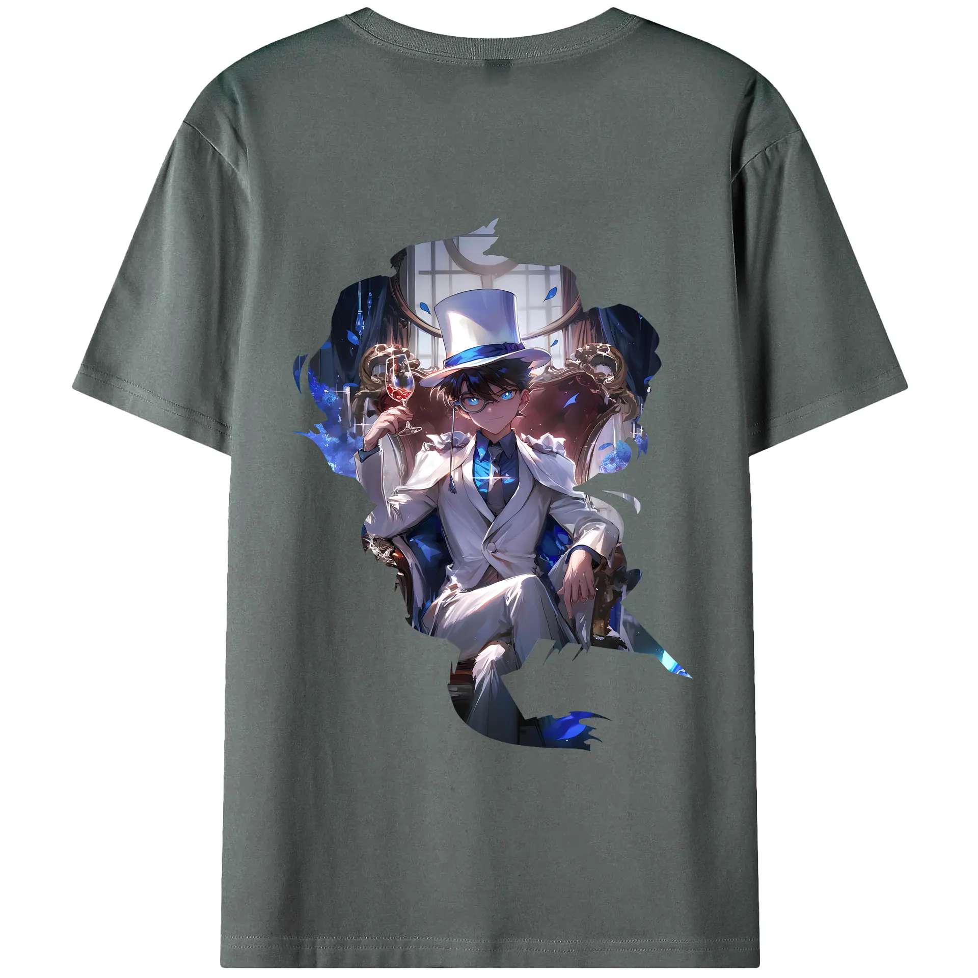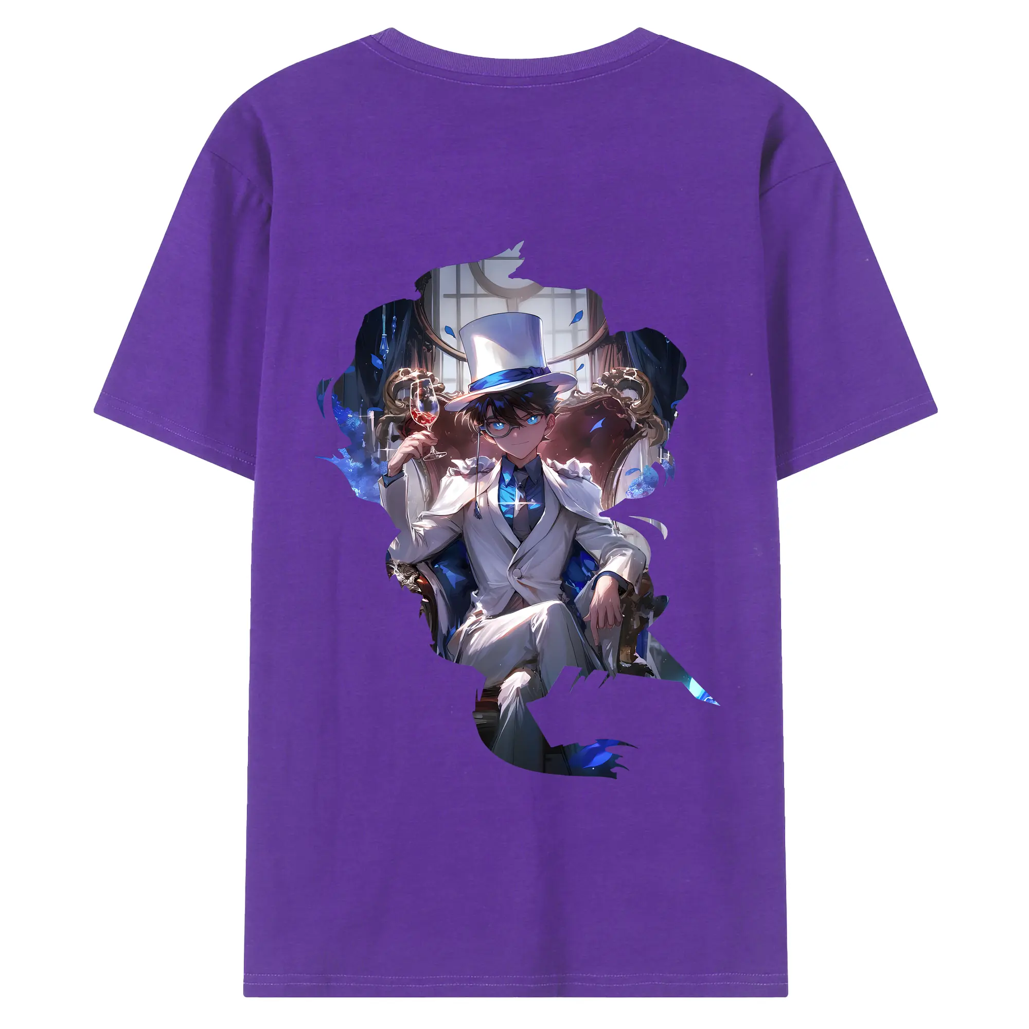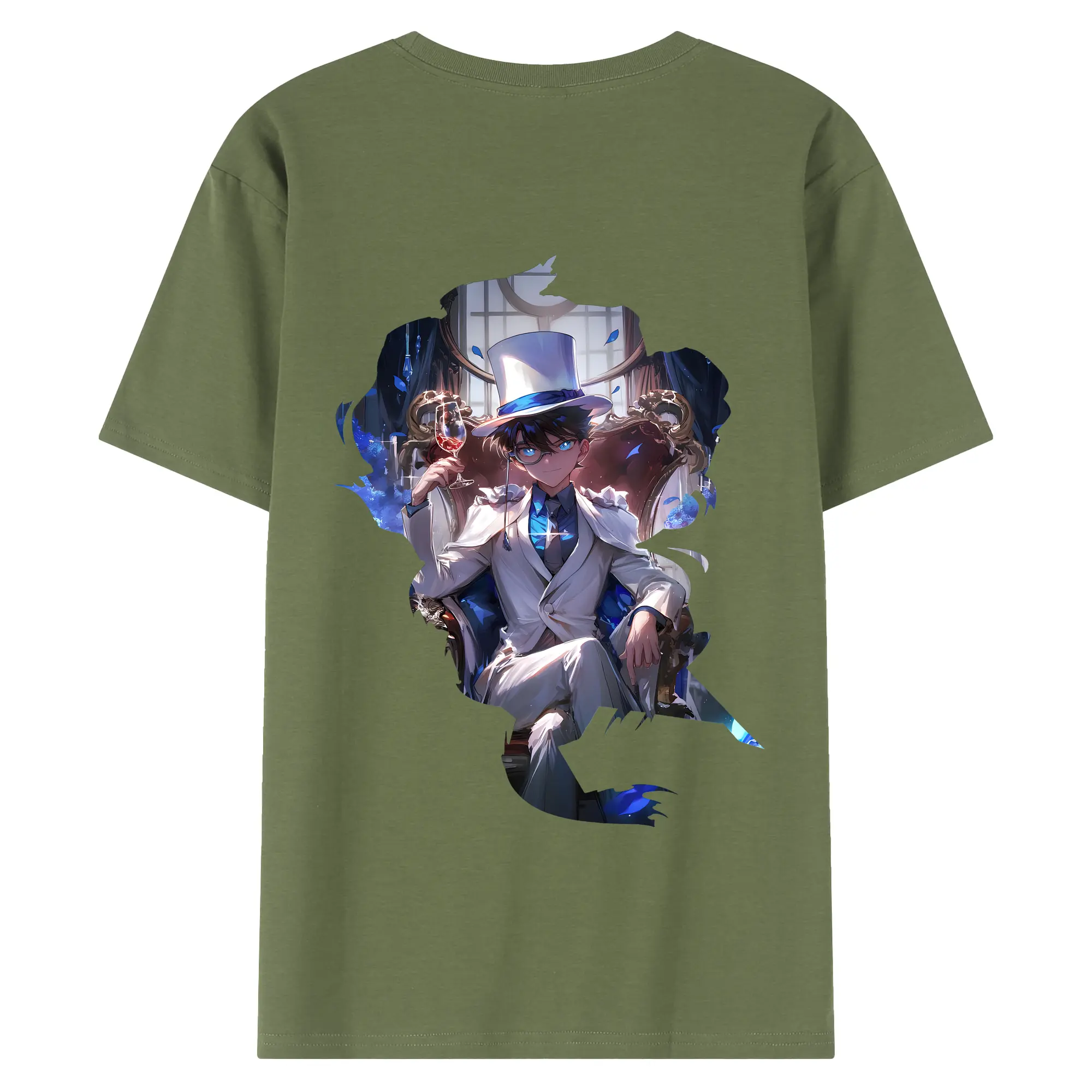 名探偵コナン グッズ 江戸川 コナン - 綿100% ヴィンテージ風 半袖Tシャツ ・ 背面プリント ・ 柔らか肌触り ・ 通気性 快適 ・ スポーツ カジュアル 外出用