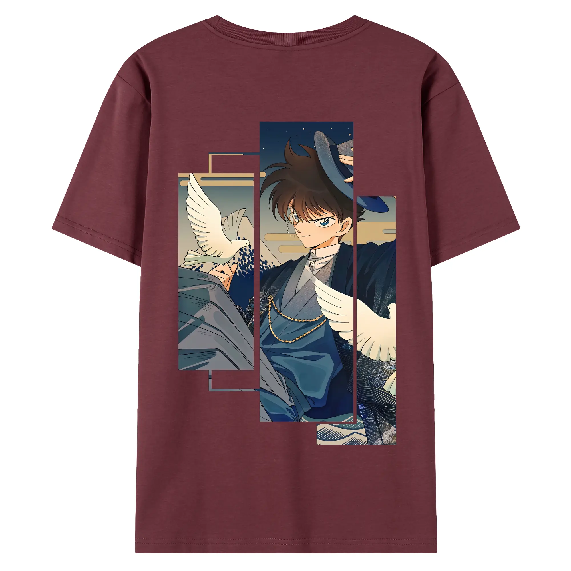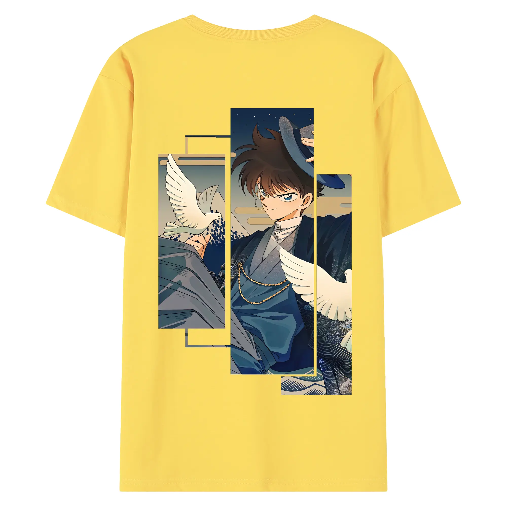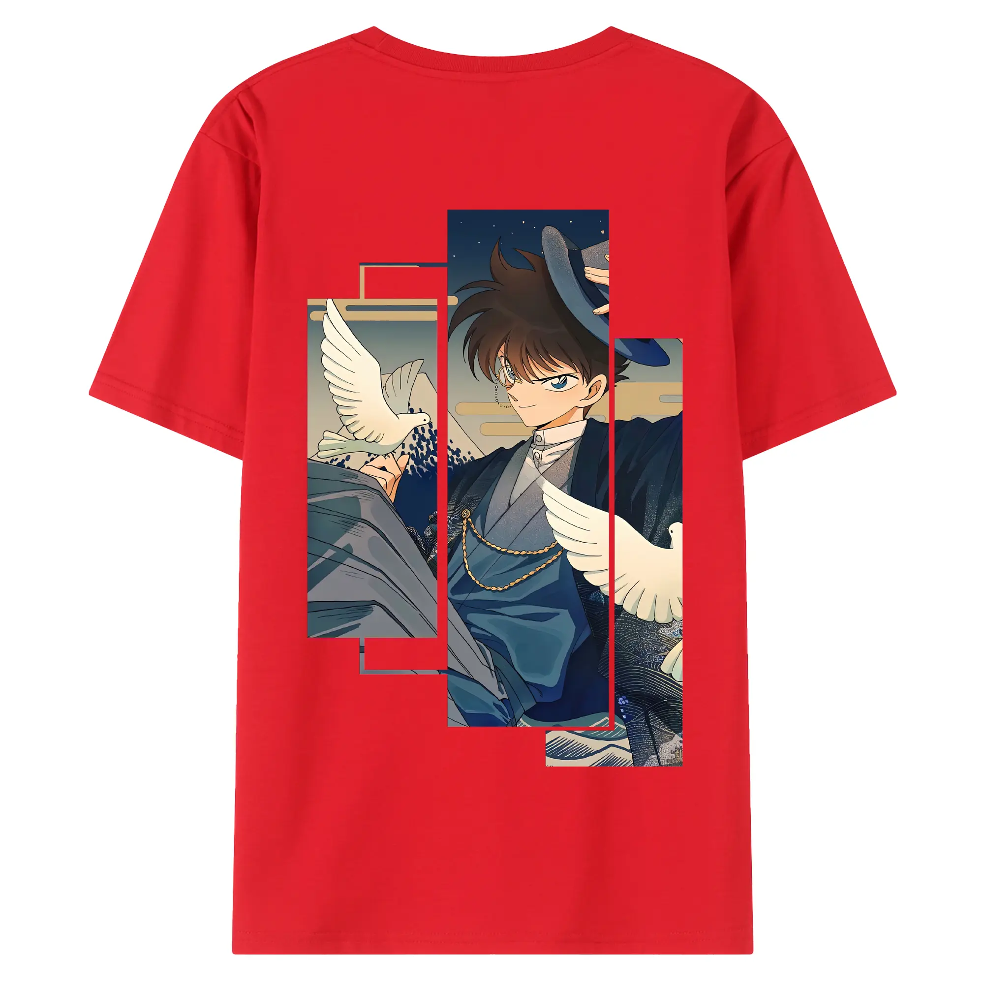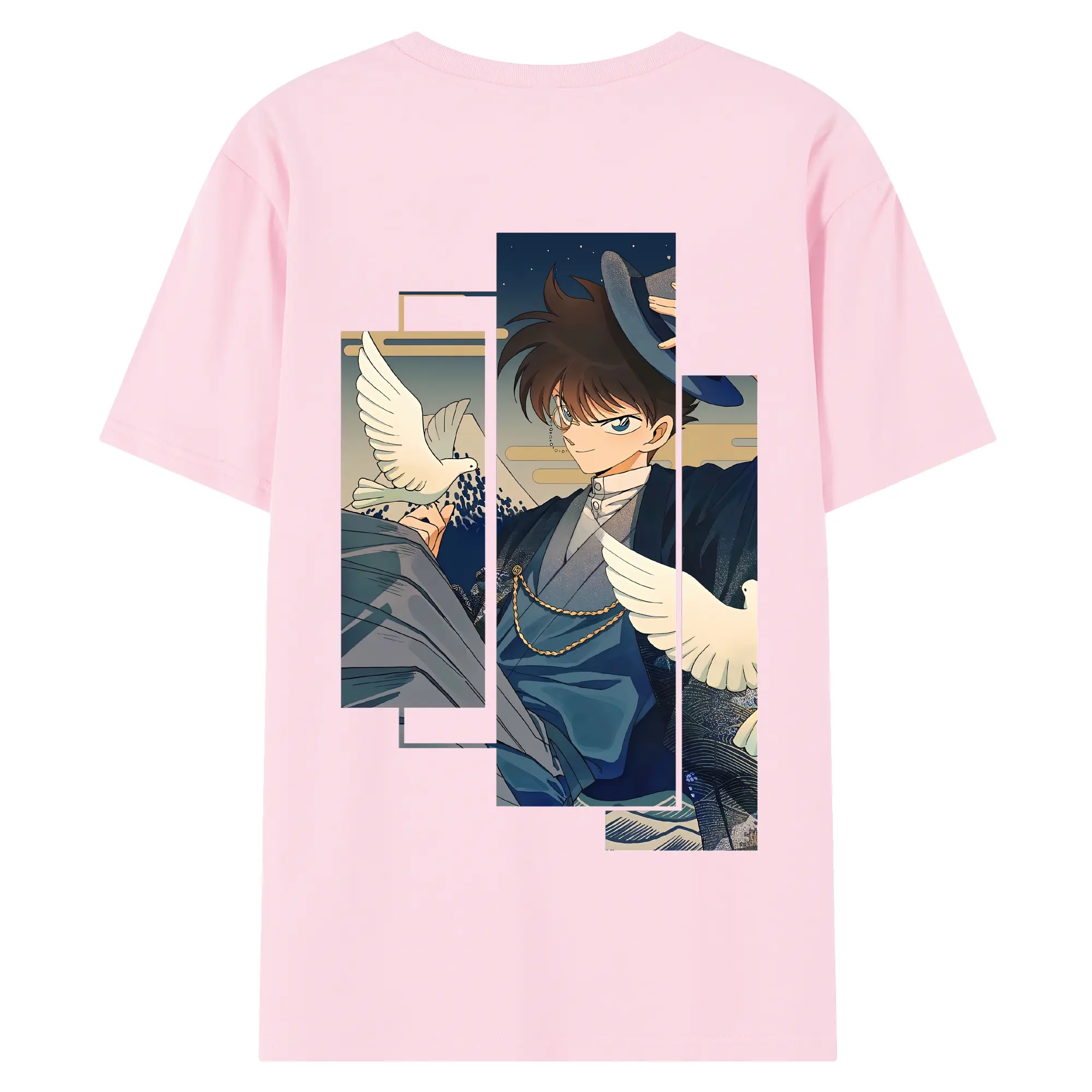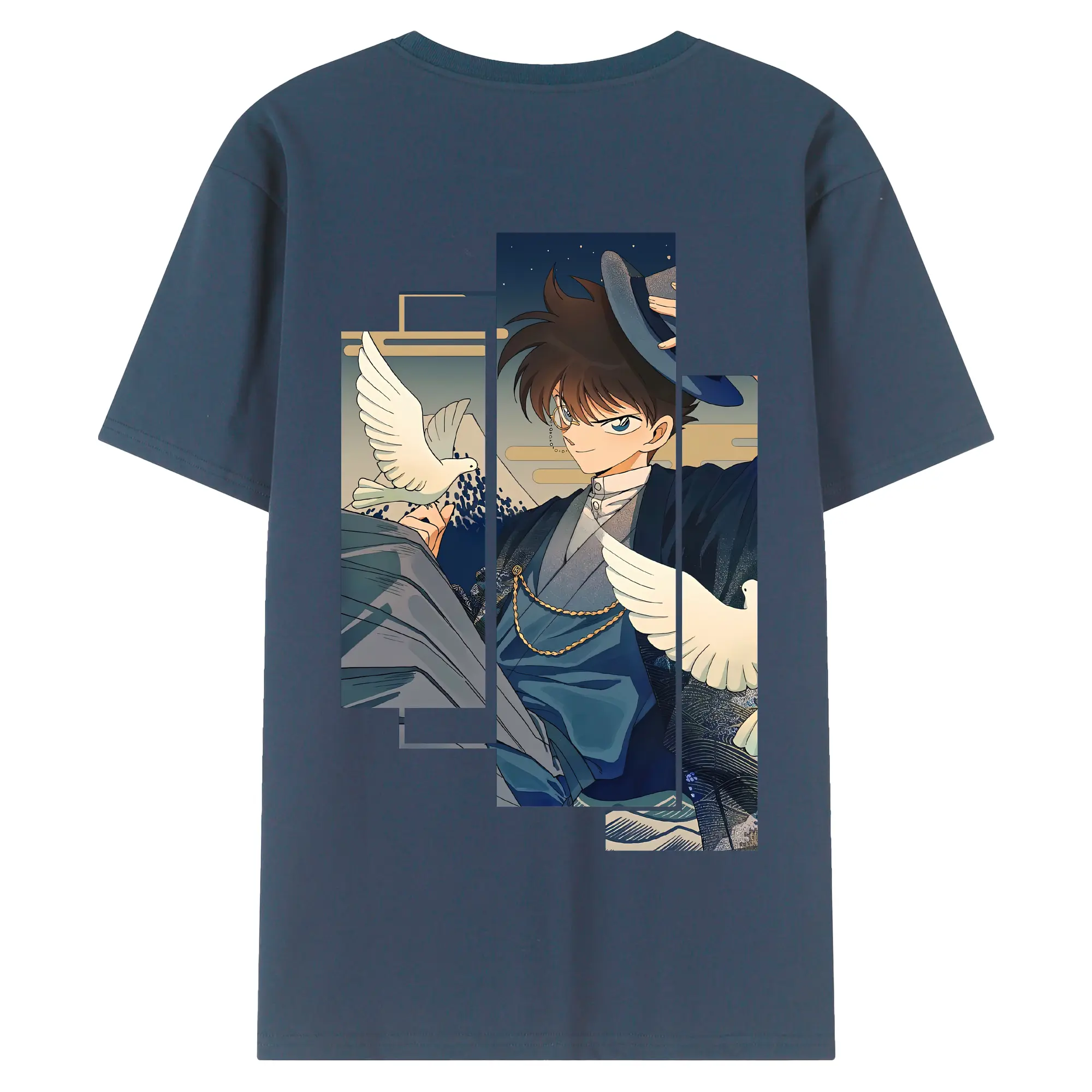名探偵コナン グッズ 江戸川 コナン - 綿100% ヴィンテージ風 半袖Tシャツ ・ 背面プリント ・ 柔らか肌触り ・ 通気性 快適 ・ スポーツ カジュアル 外出用
