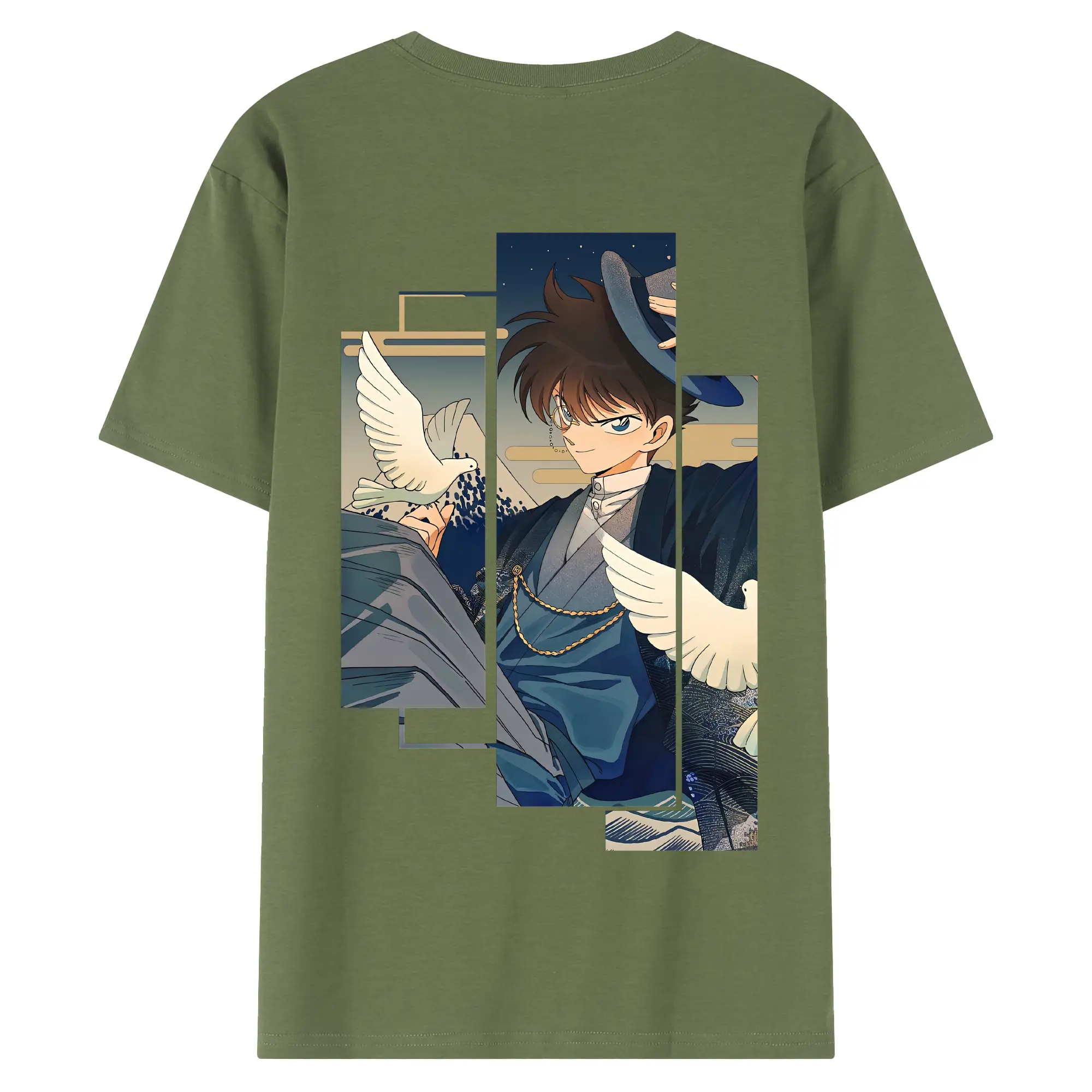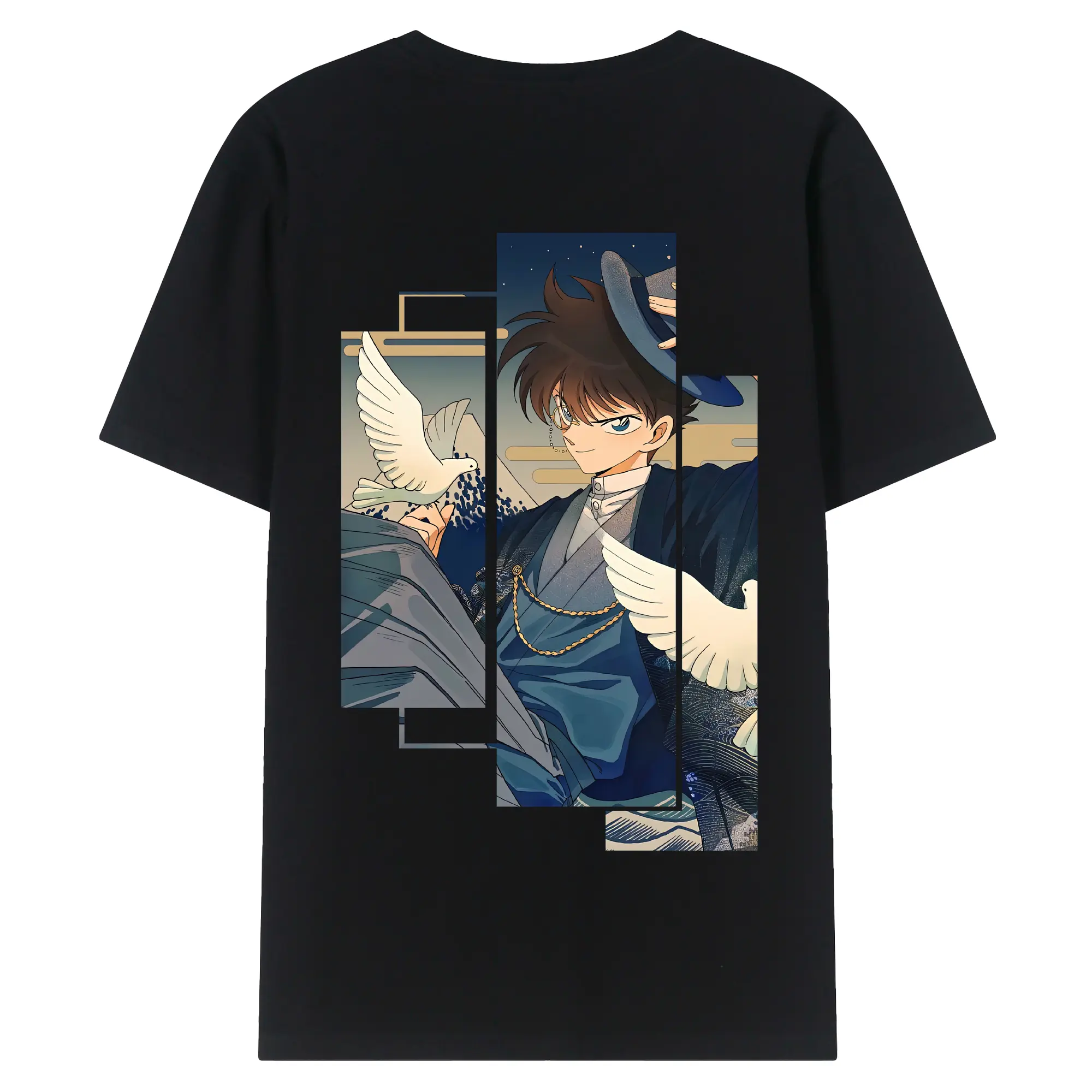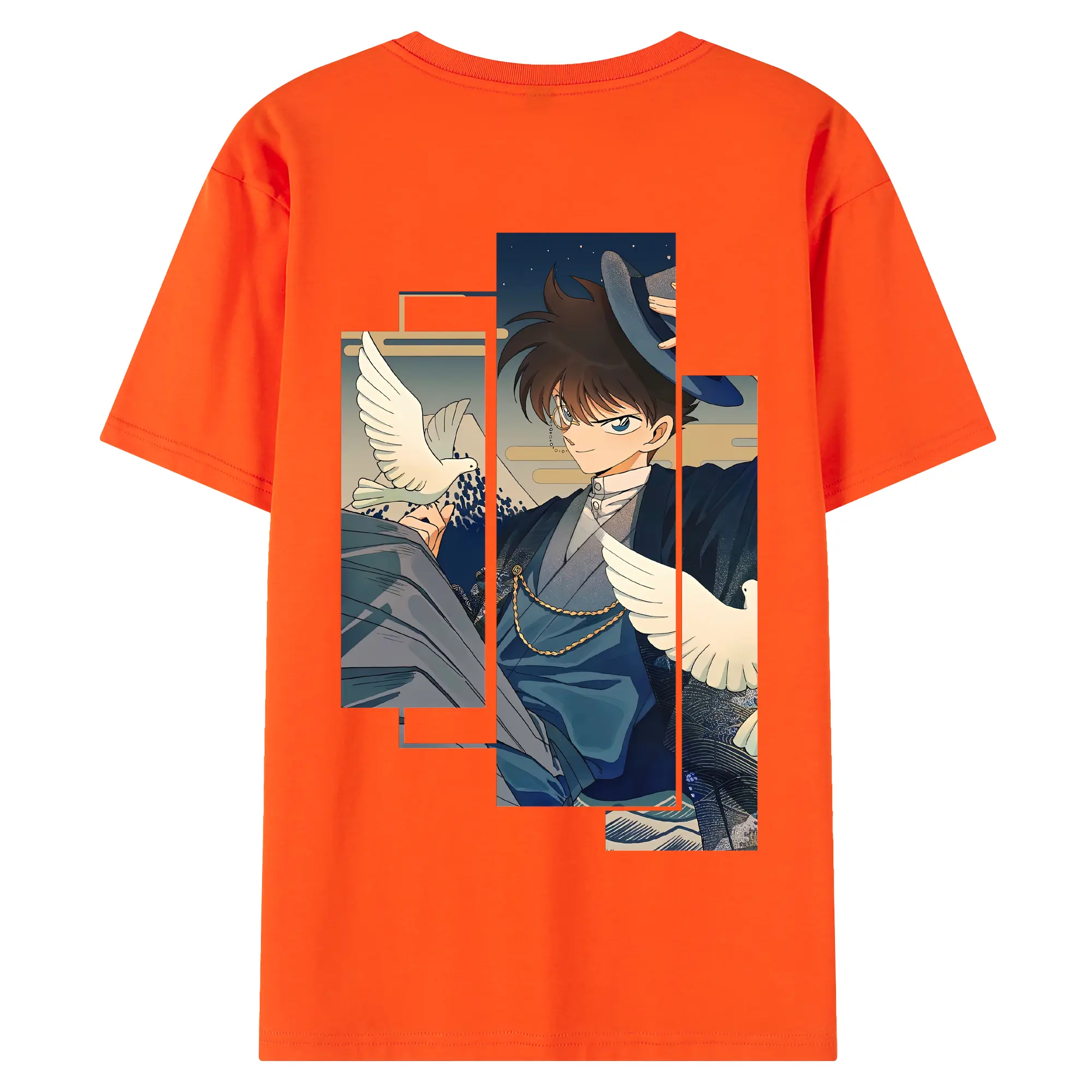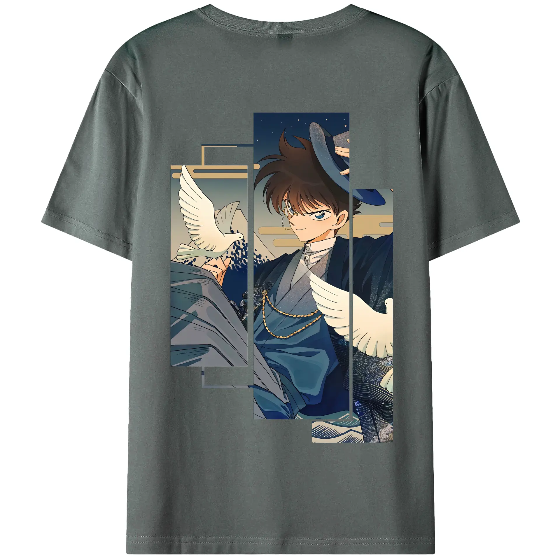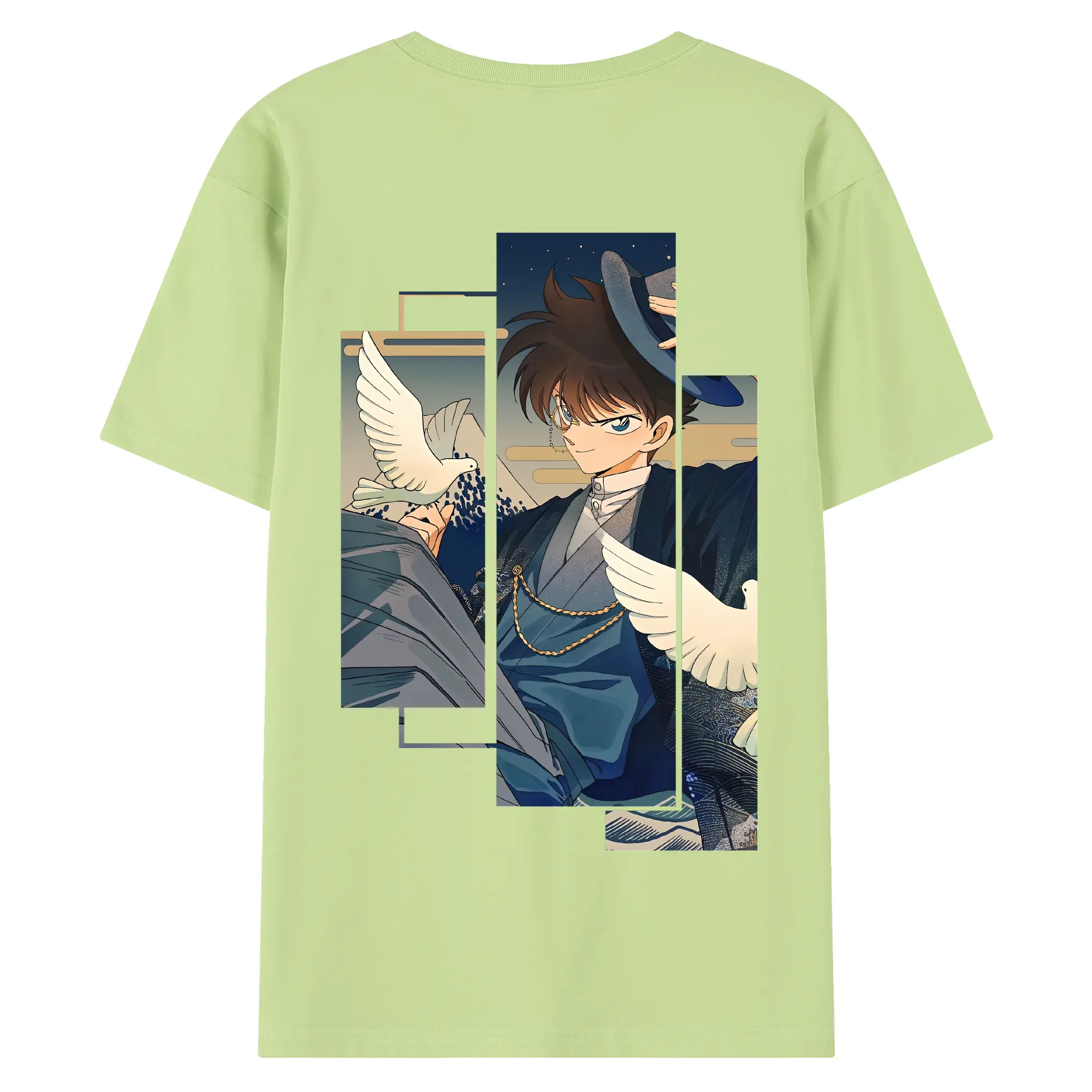 名探偵コナン グッズ 江戸川 コナン - 綿100% ヴィンテージ風 半袖Tシャツ ・ 背面プリント ・ 柔らか肌触り ・ 通気性 快適 ・ スポーツ カジュアル 外出用