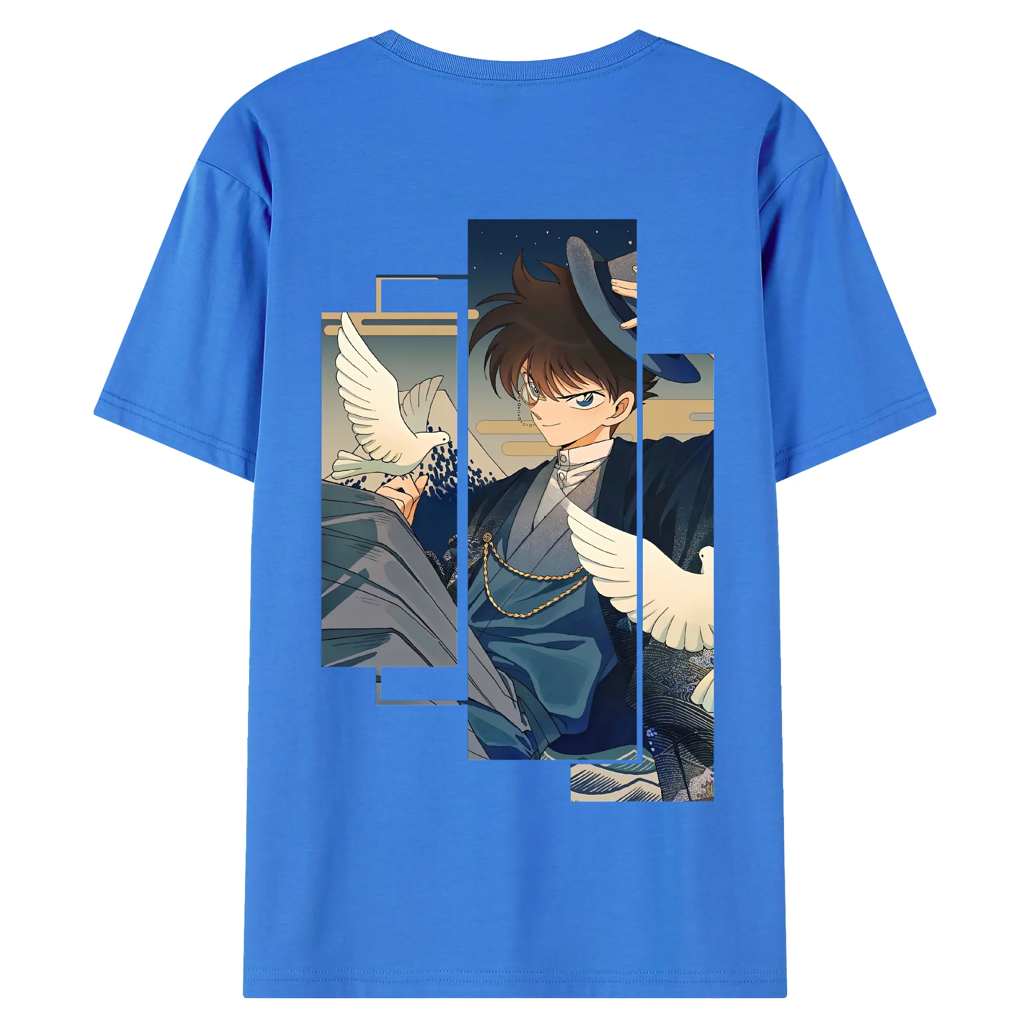 名探偵コナン グッズ 江戸川 コナン - 綿100% 半袖Tシャツ ・ フロントプリント ・ 快適 通気性 ・ 日常使い 散歩 スポーツ用