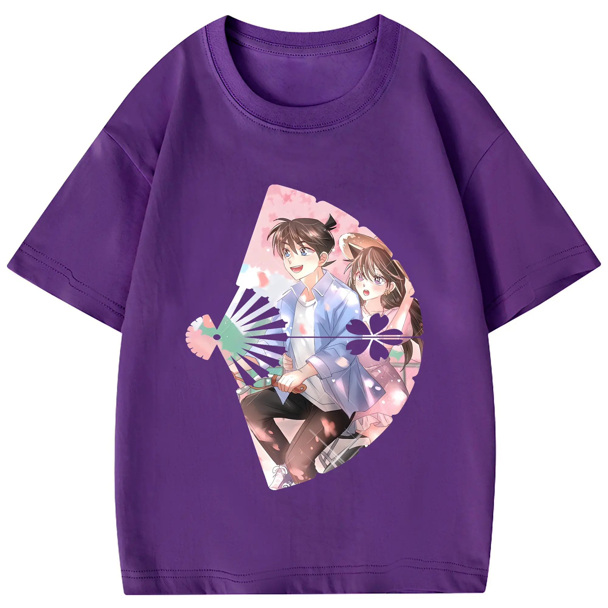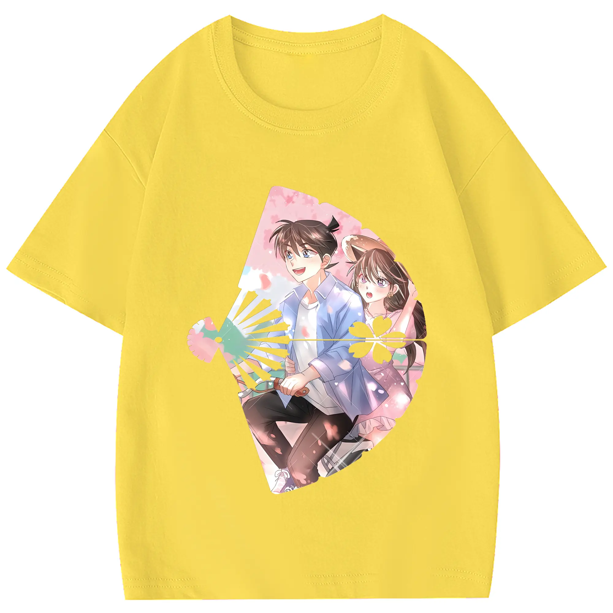 名探偵コナン グッズ 江戸川 コナン - 綿100% 半袖Tシャツ ・ フロントプリント ・ 快適 通気性 ・ 日常使い 散歩 スポーツ用