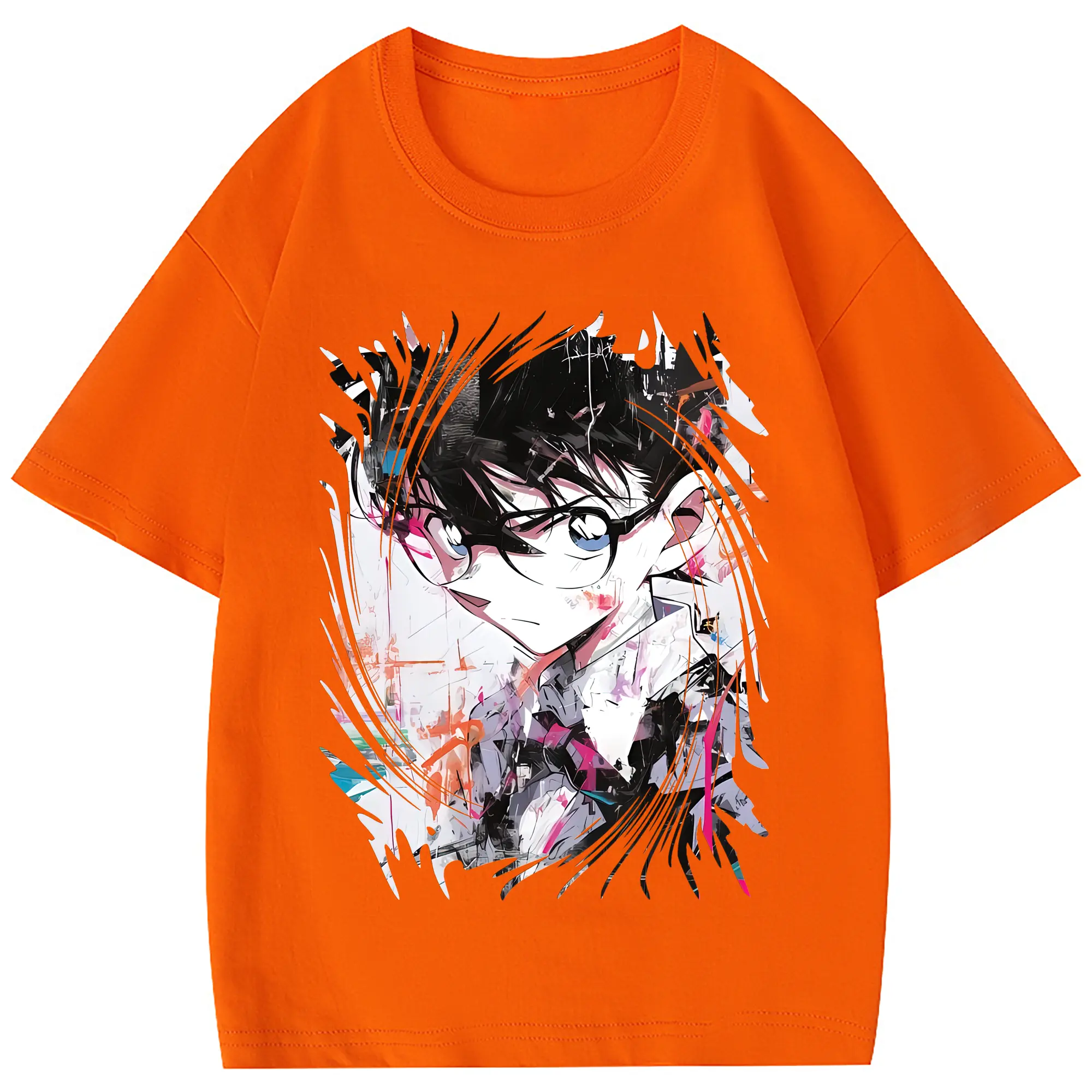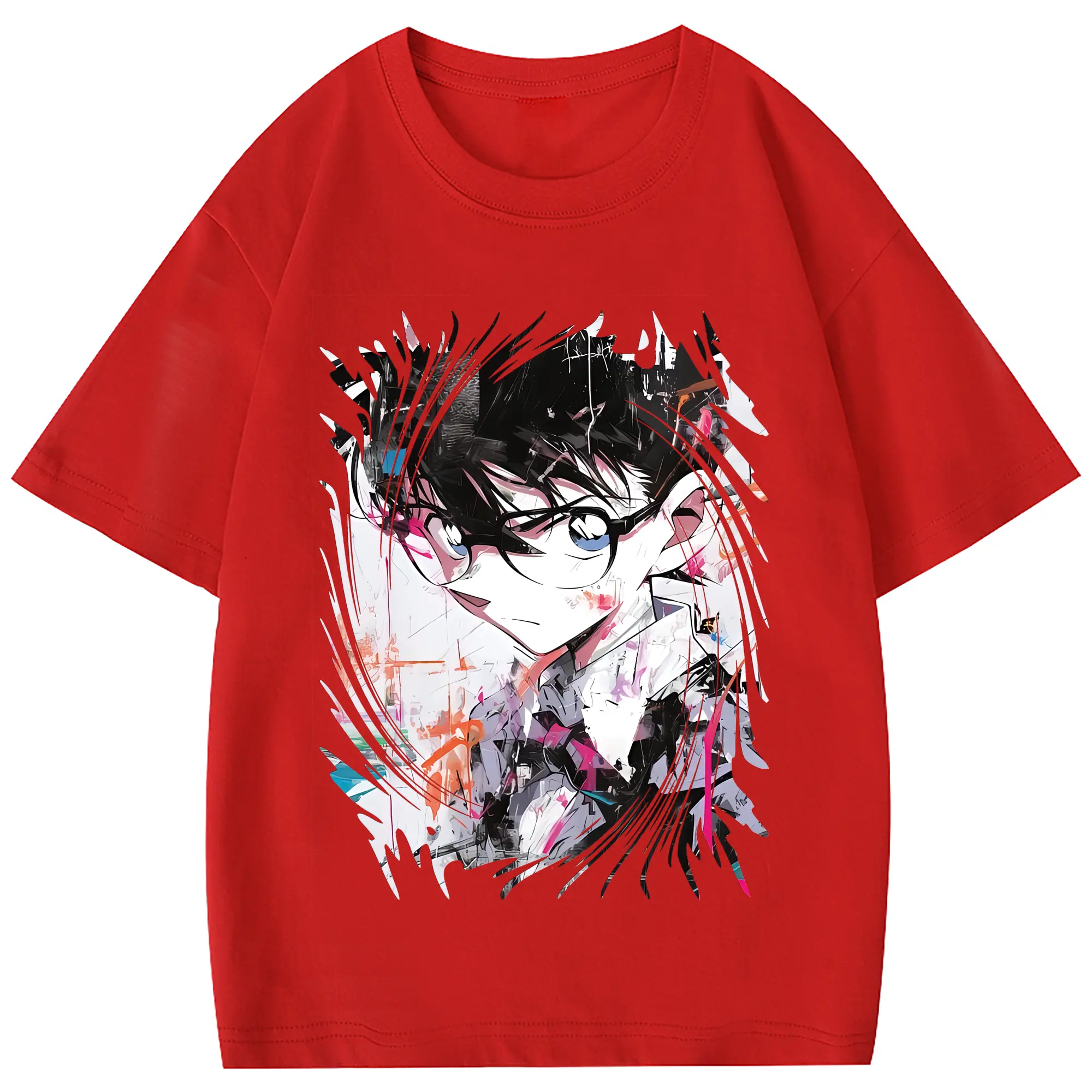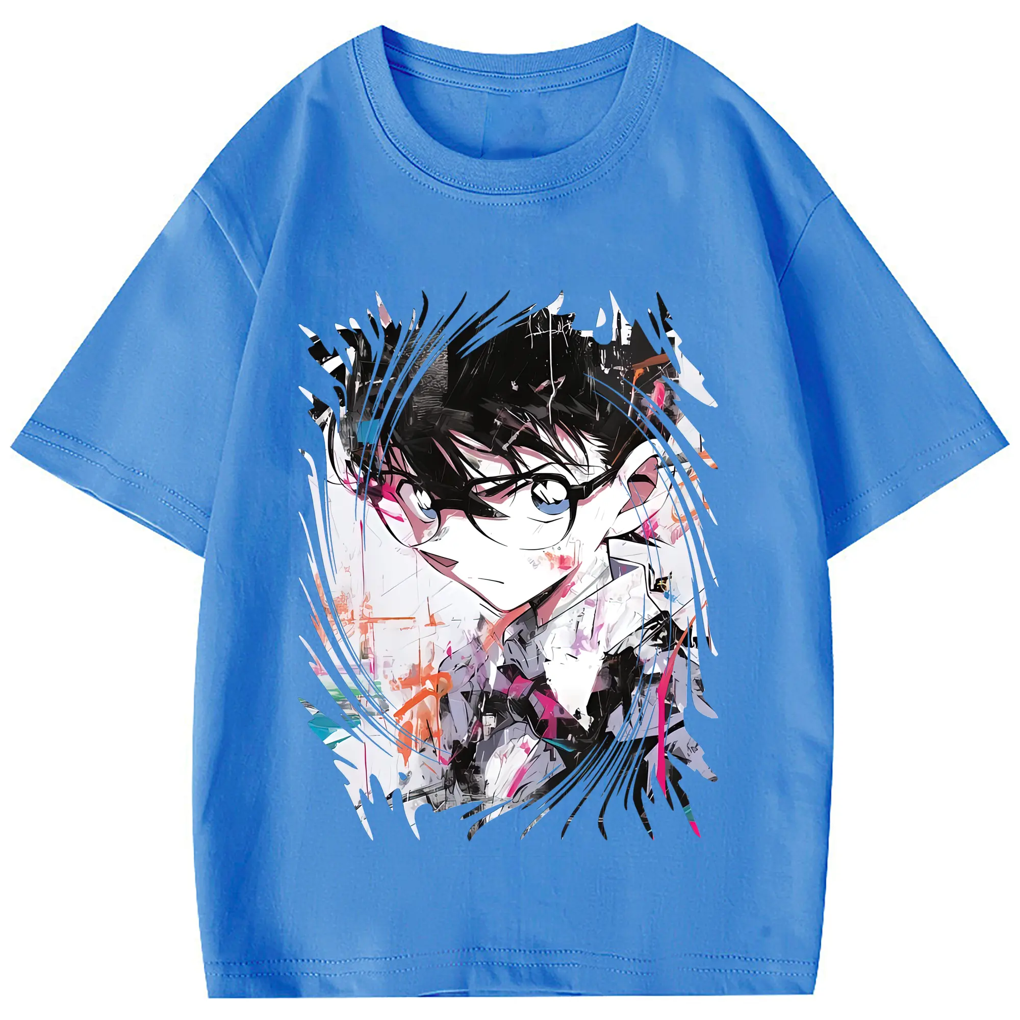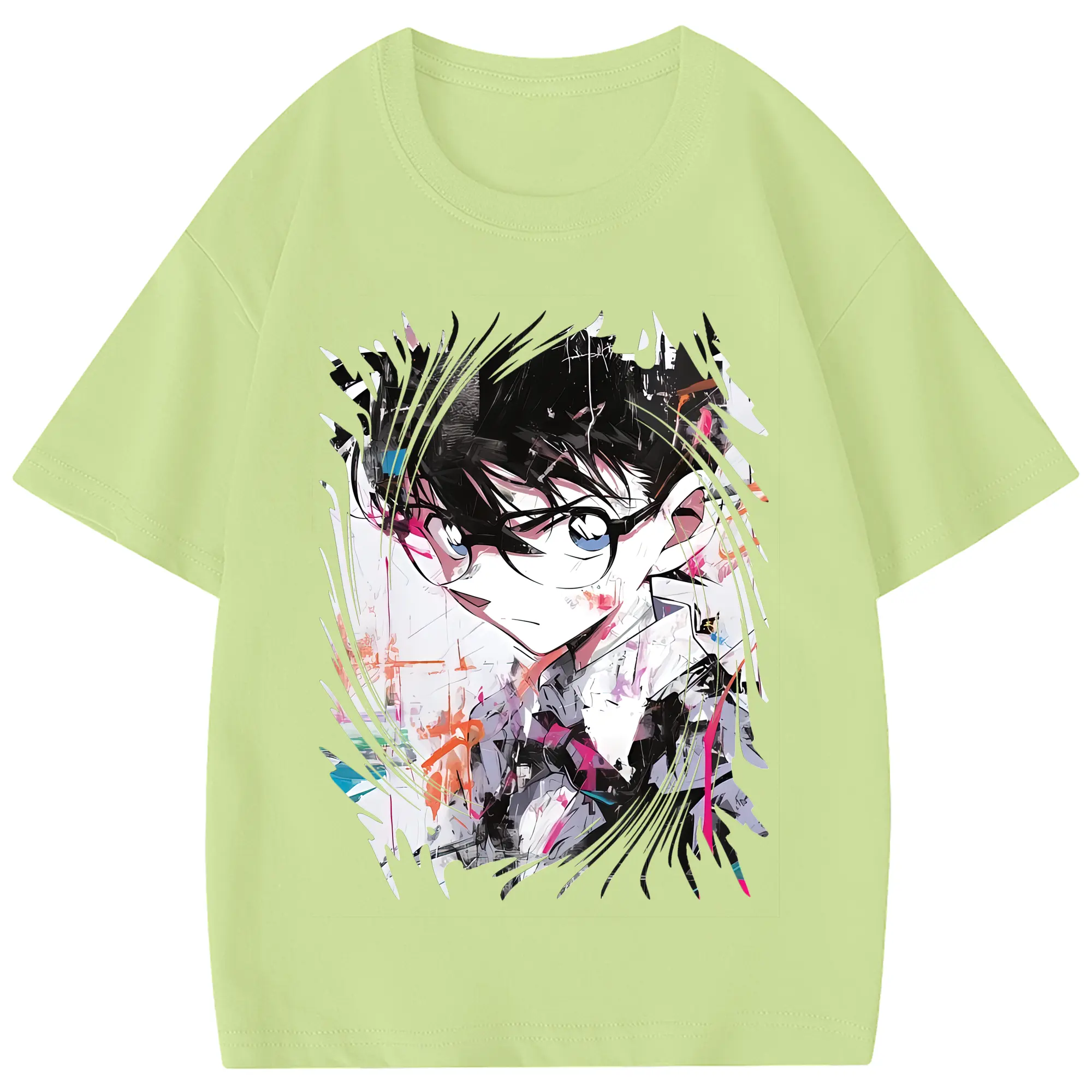 名探偵コナン グッズ 江戸川 コナン - 綿100% 半袖Tシャツ ・ フロントプリント ・ 快適 通気性 ・ 日常使い 散歩 スポーツ用