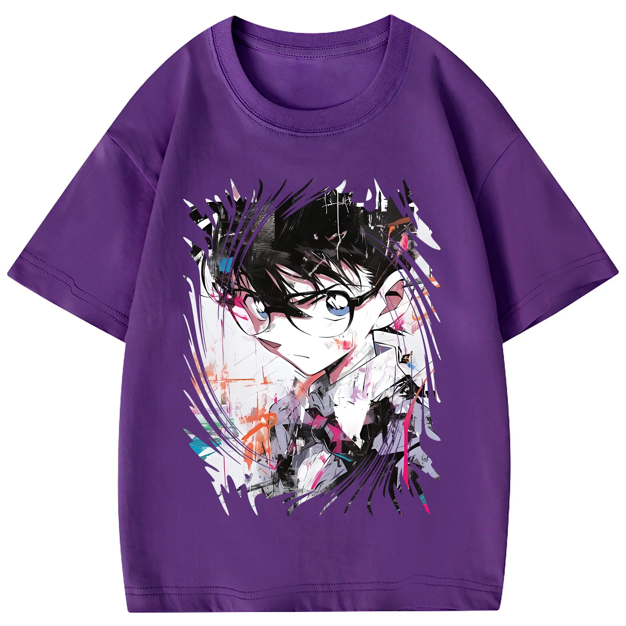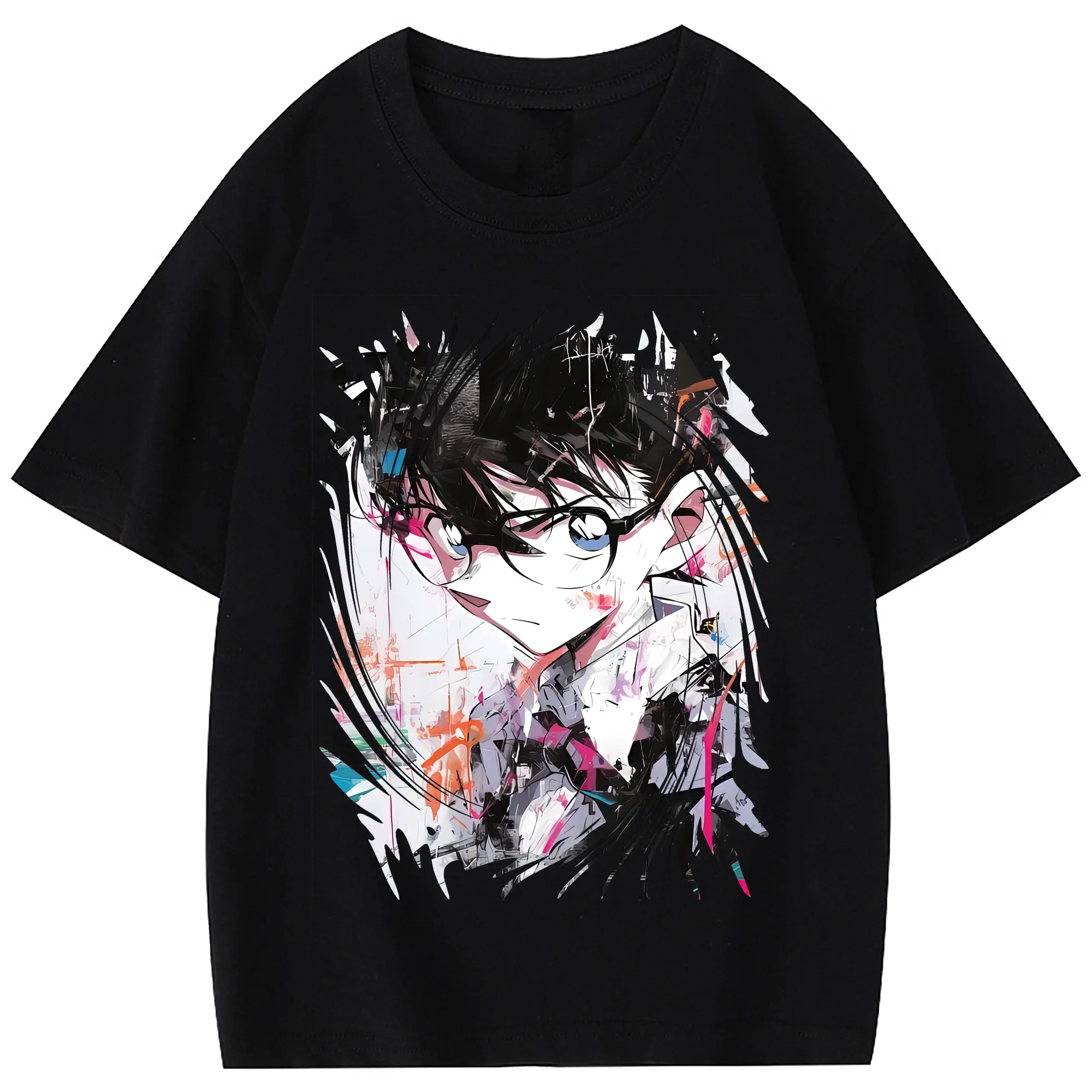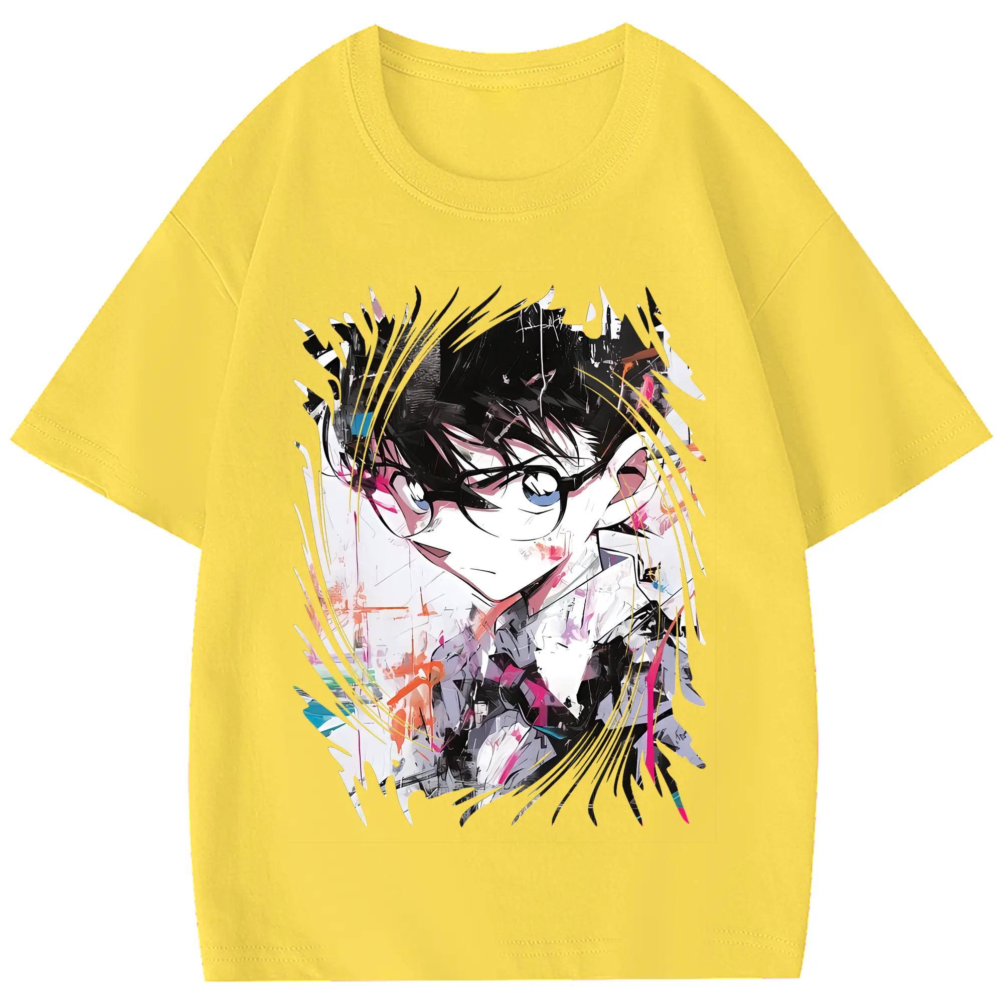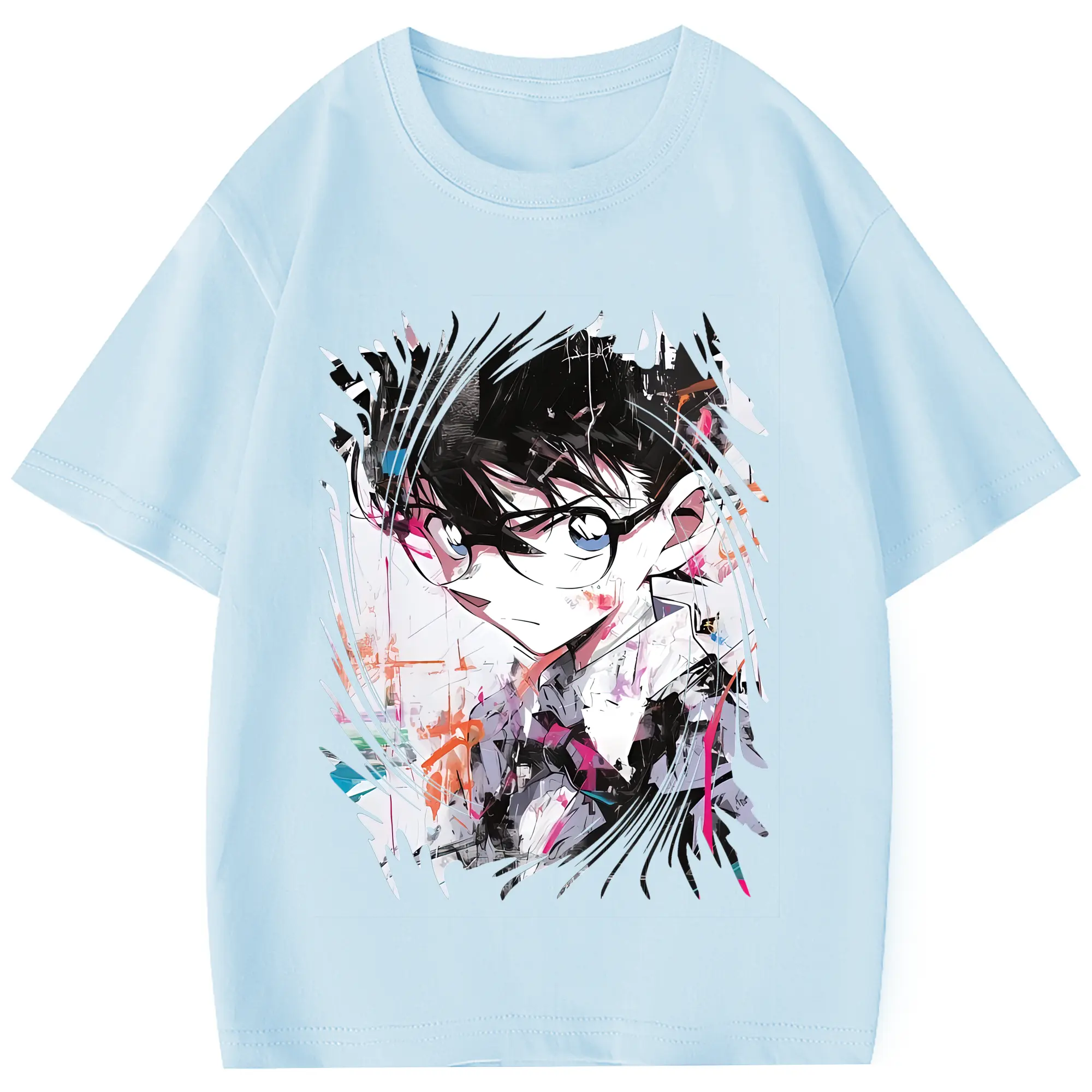 名探偵コナン グッズ 江戸川 コナン - 綿100% 半袖Tシャツ ・ フロントプリント ・ 快適 通気性 ・ 日常使い 散歩 スポーツ用