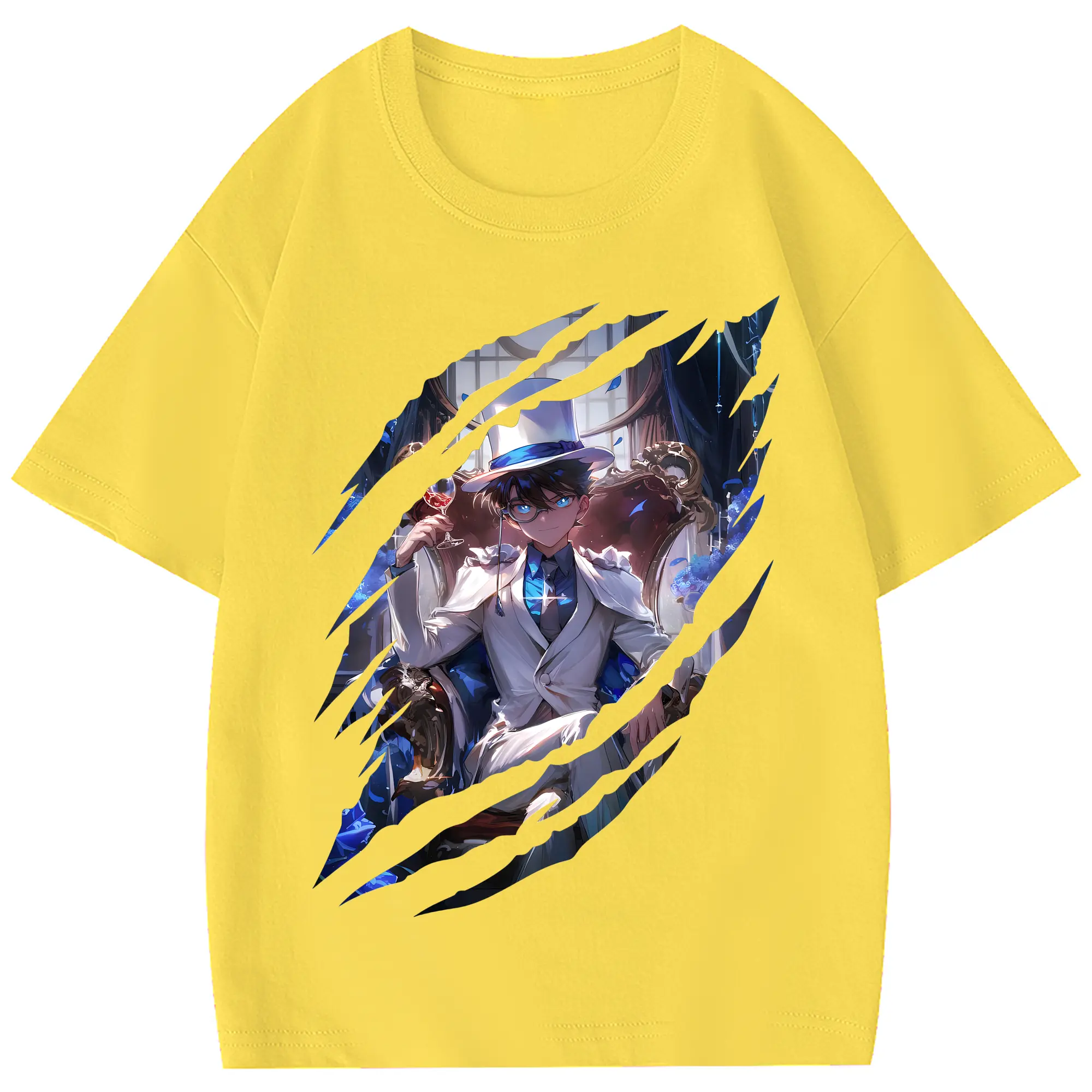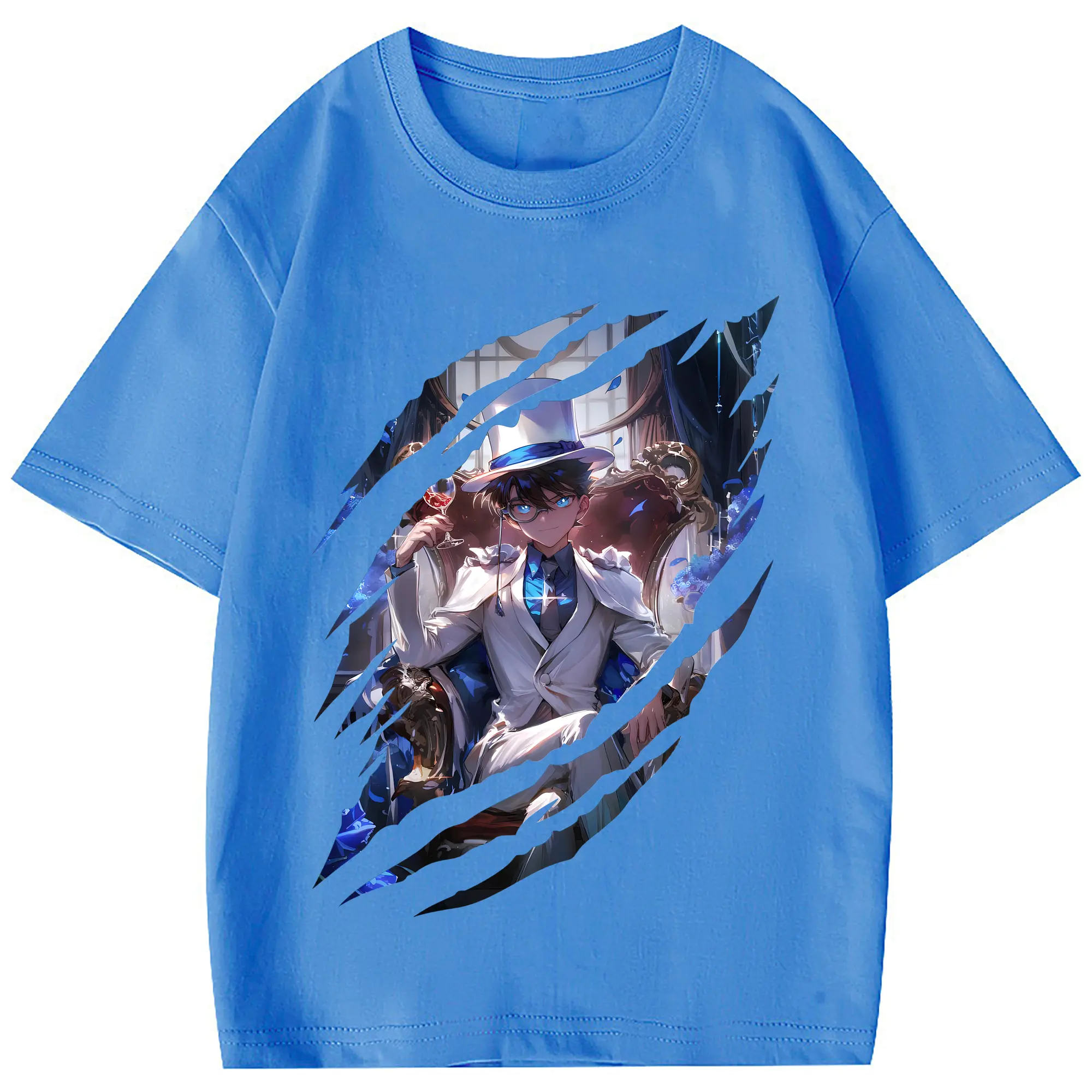 名探偵コナン グッズ 江戸川 コナン - 綿100% 半袖Tシャツ ・ フロントプリント ・ 快適 通気性 ・ 日常使い 散歩 スポーツ用