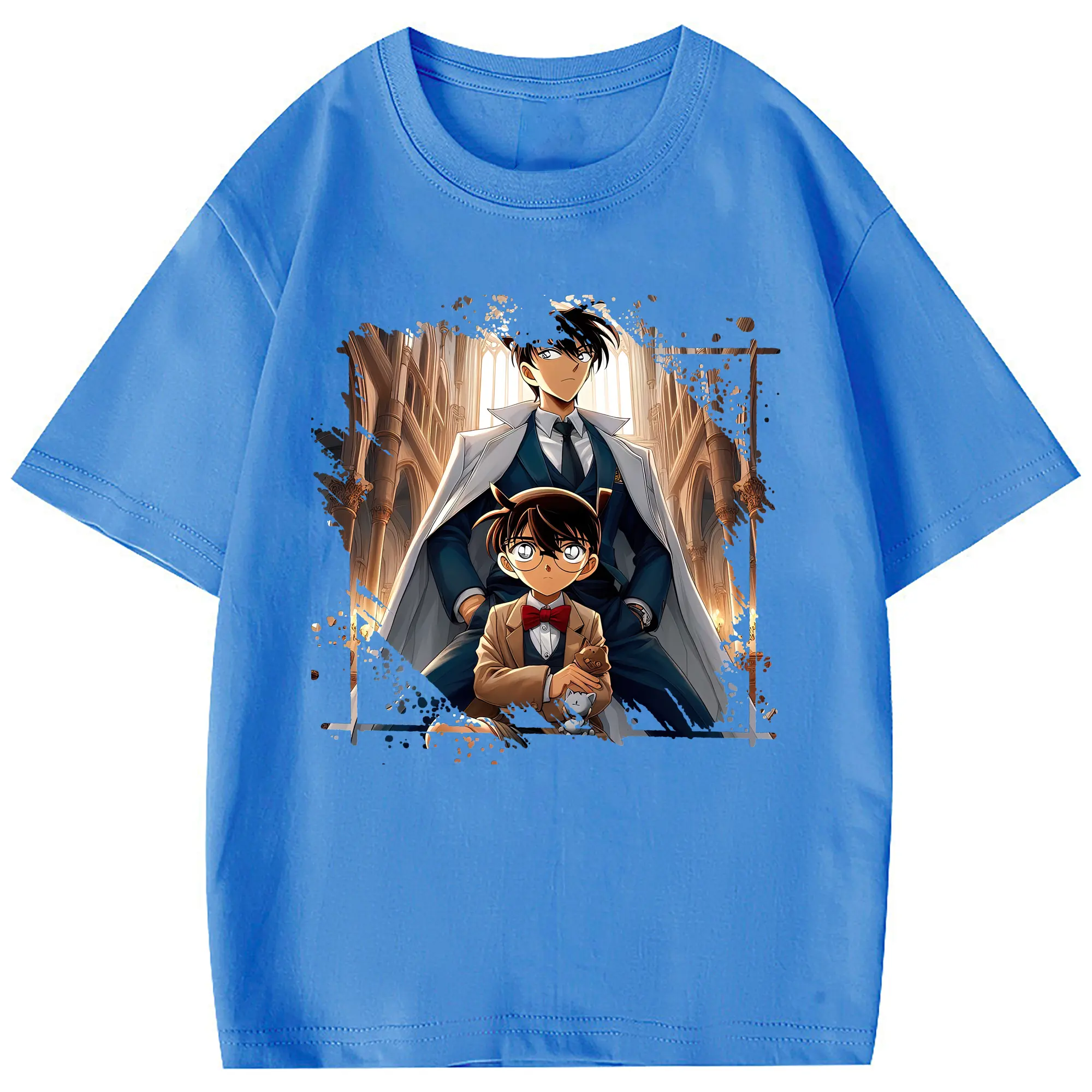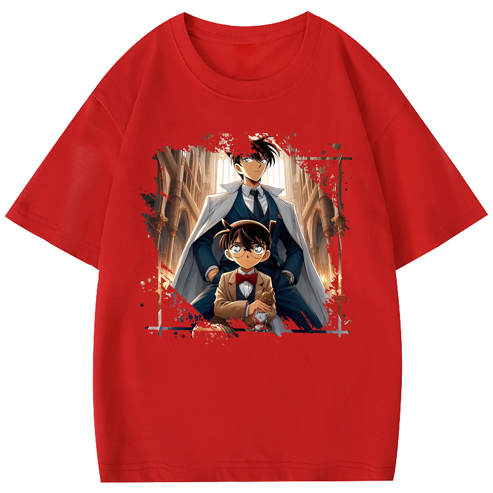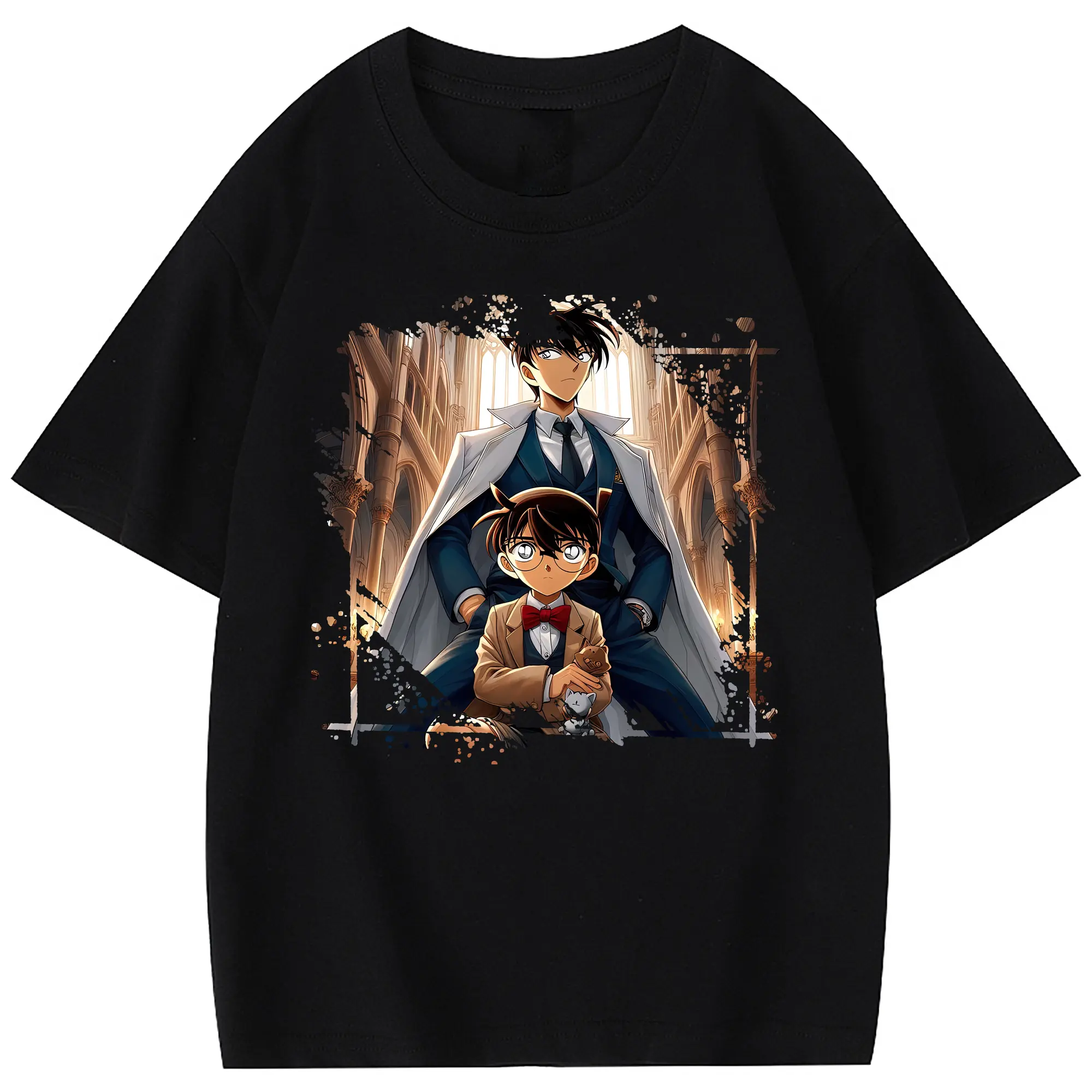 名探偵コナン グッズ 江戸川 コナン - 綿100% ヴィンテージ風 半袖Tシャツ ・ フロントプリント ・ 柔らか肌触り ・ 通気性 快適 ・ スポーツ カジュアル 外出用