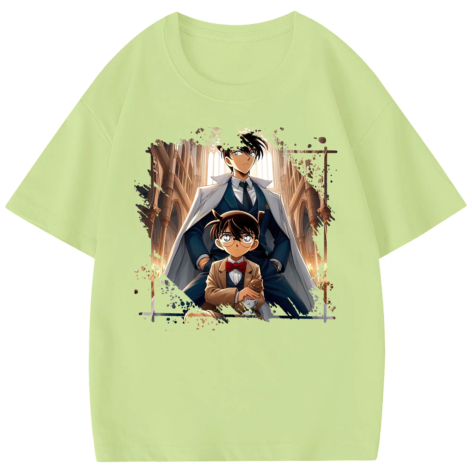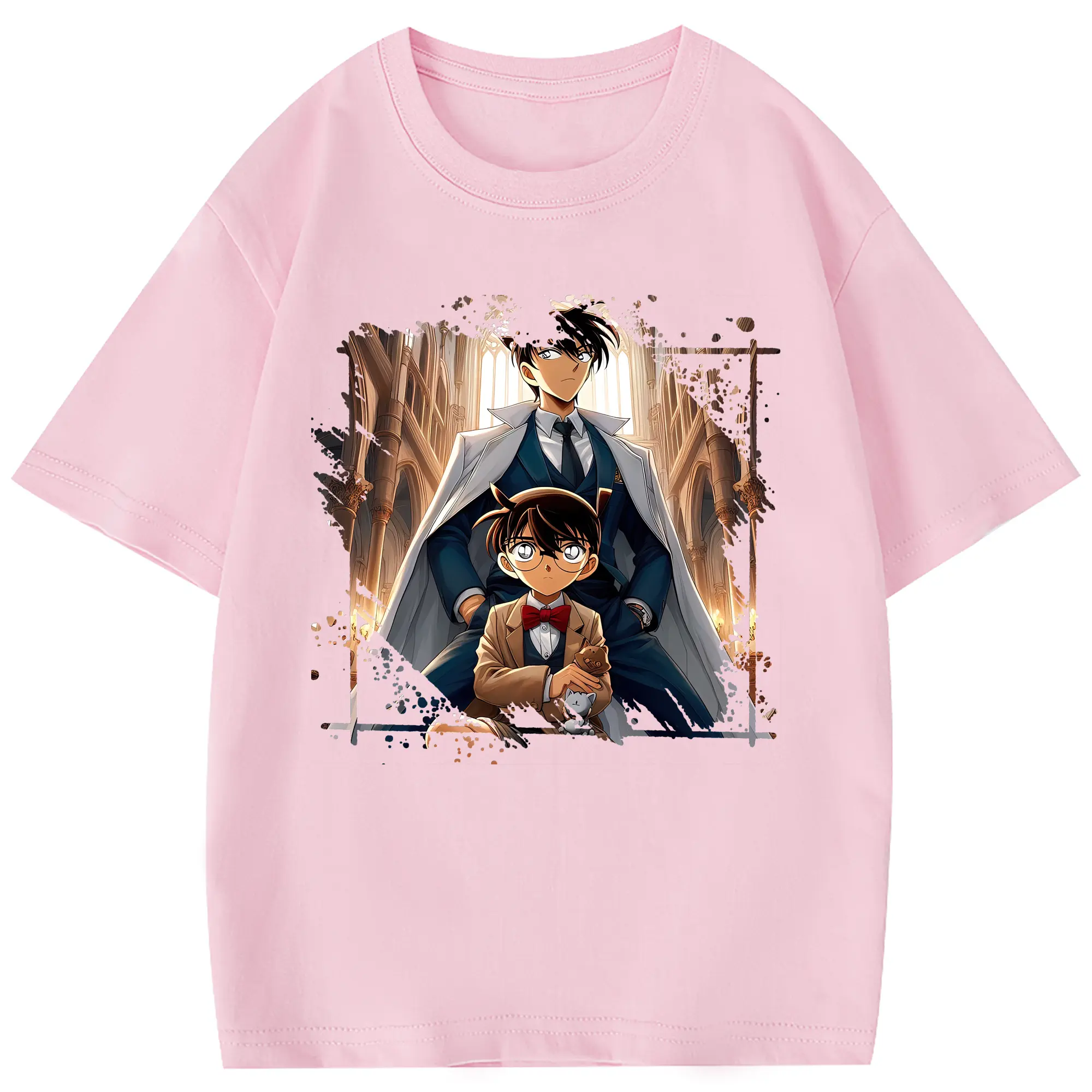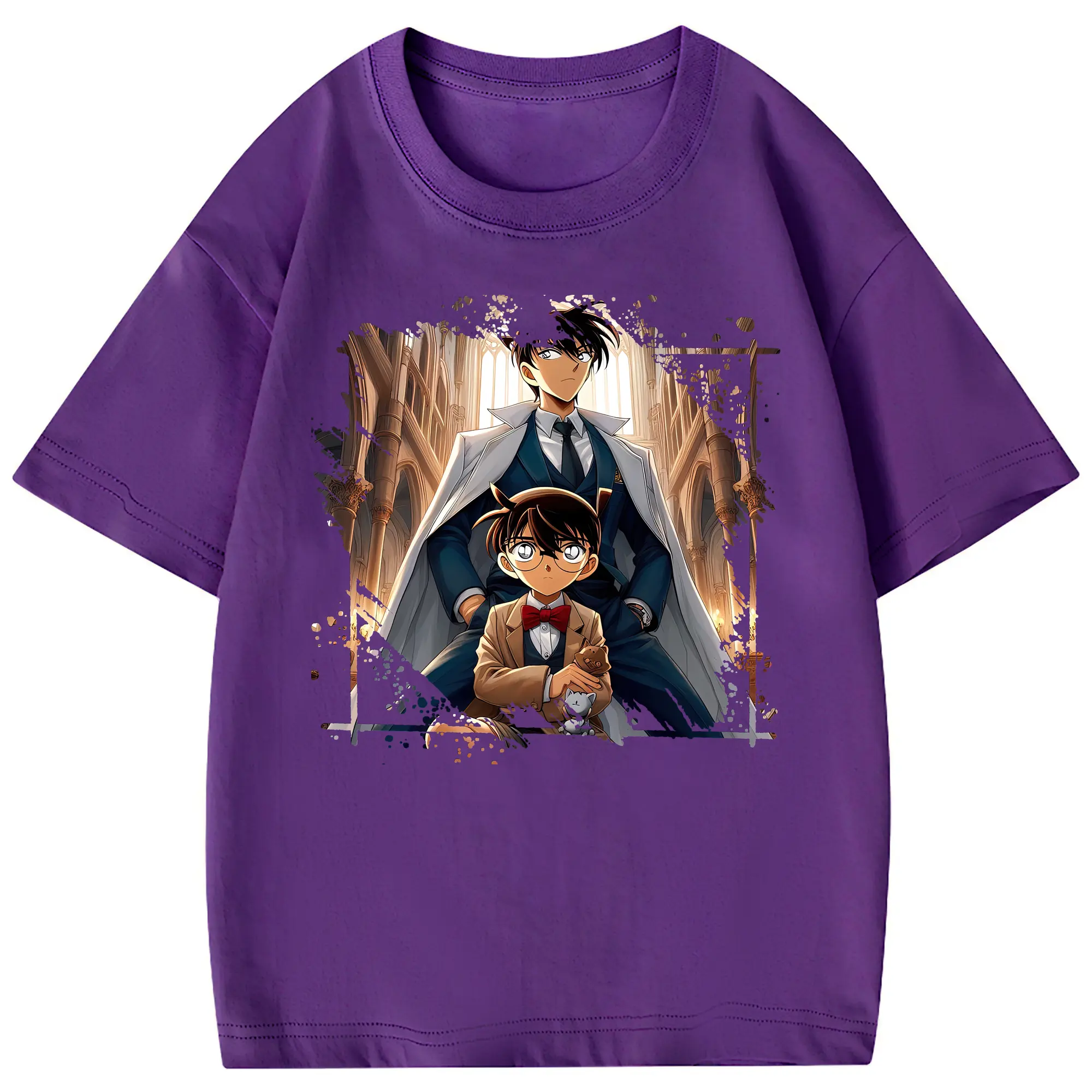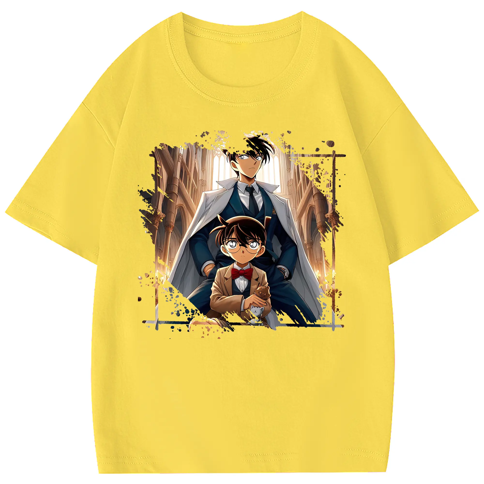 名探偵コナン グッズ 江戸川 コナン - 綿100% ヴィンテージ風 半袖Tシャツ ・ フロントプリント ・ 柔らか肌触り ・ 通気性 快適 ・ スポーツ カジュアル 外出用