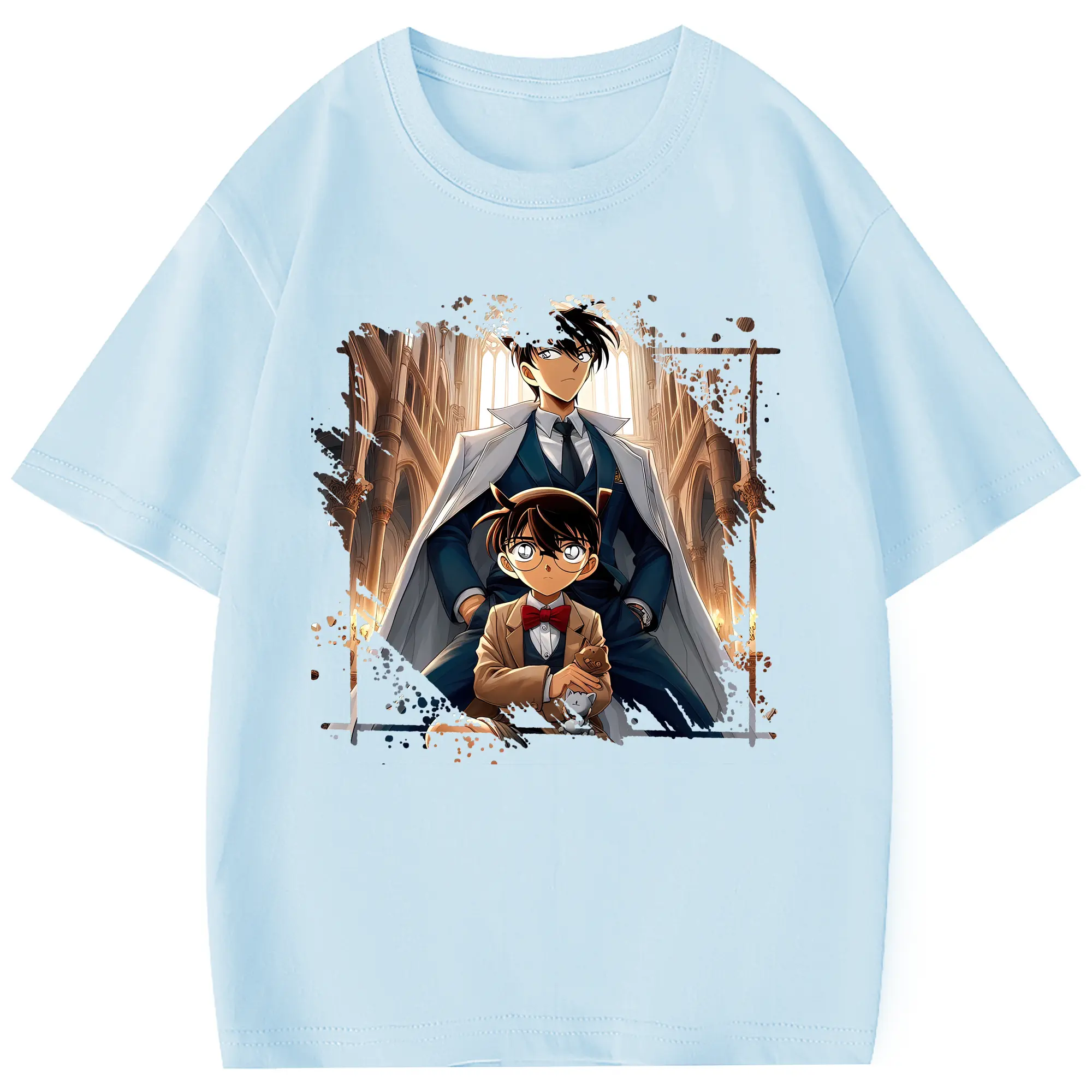名探偵コナン グッズ 江戸川 コナン - 綿100% 半袖Tシャツ ・ バックプリント ・ 快適 通気性 ・ 日常使い 散歩 スポーツ用