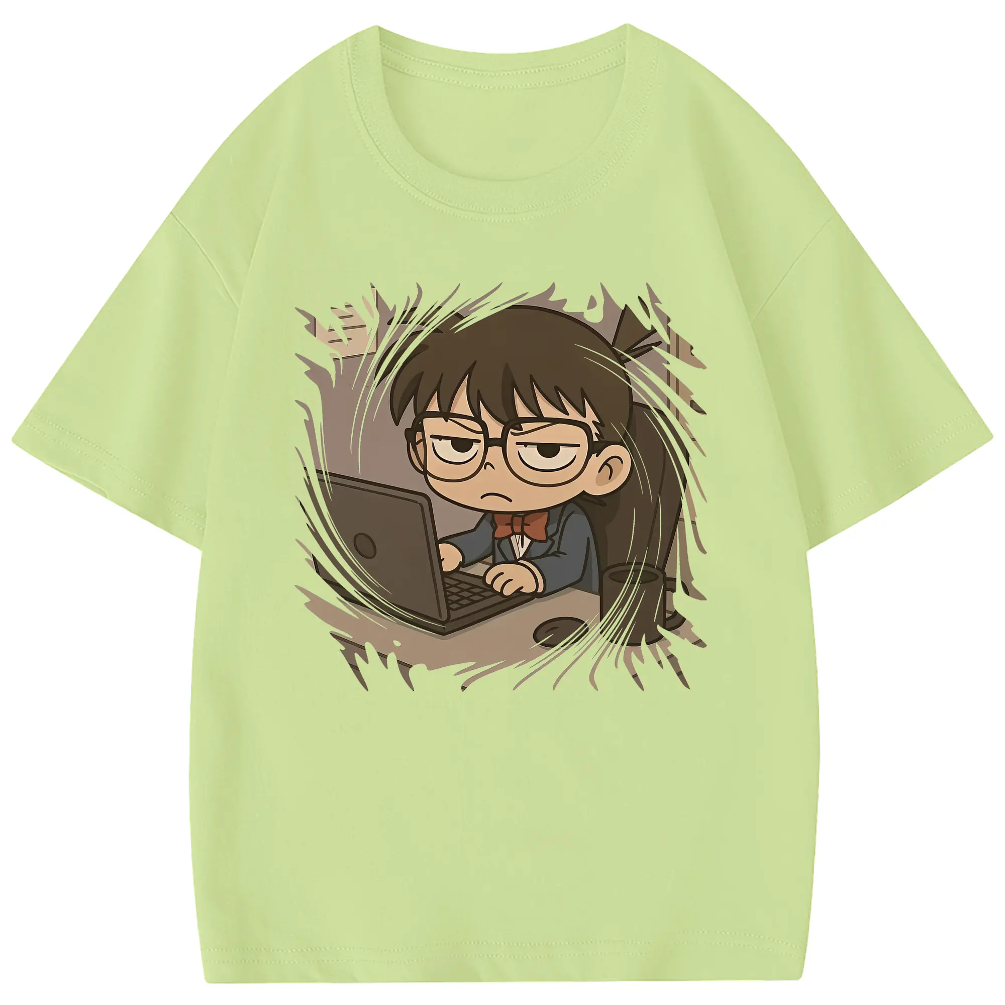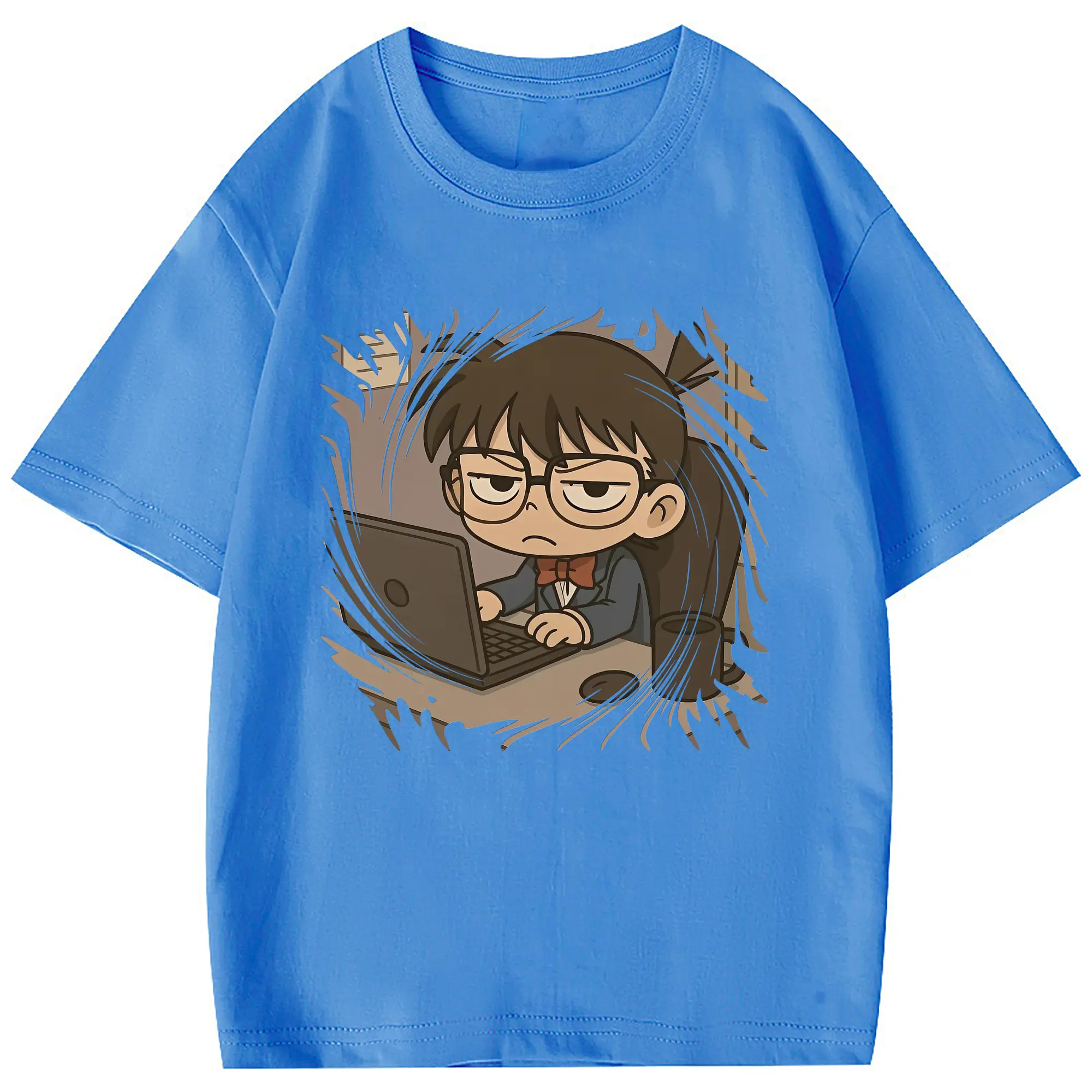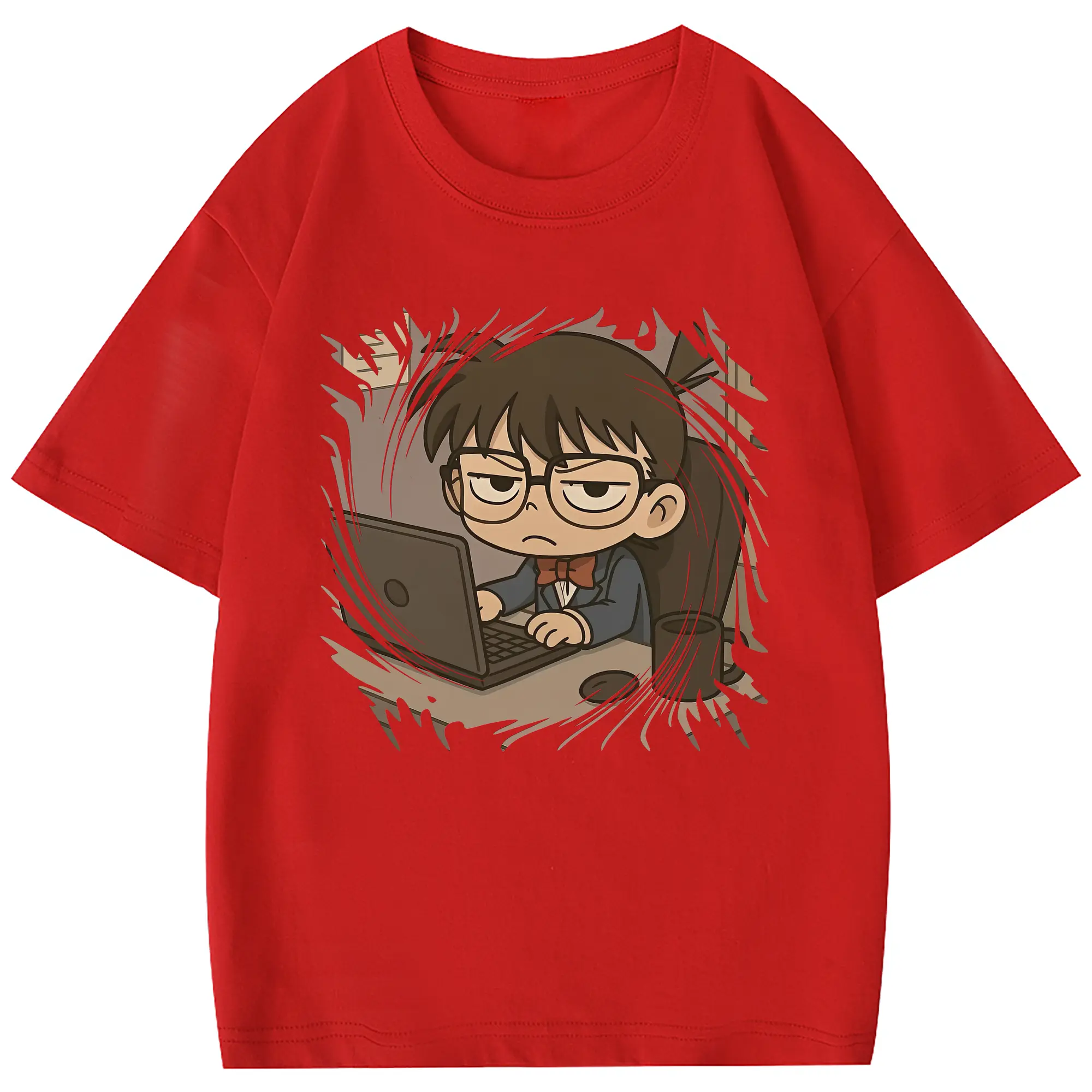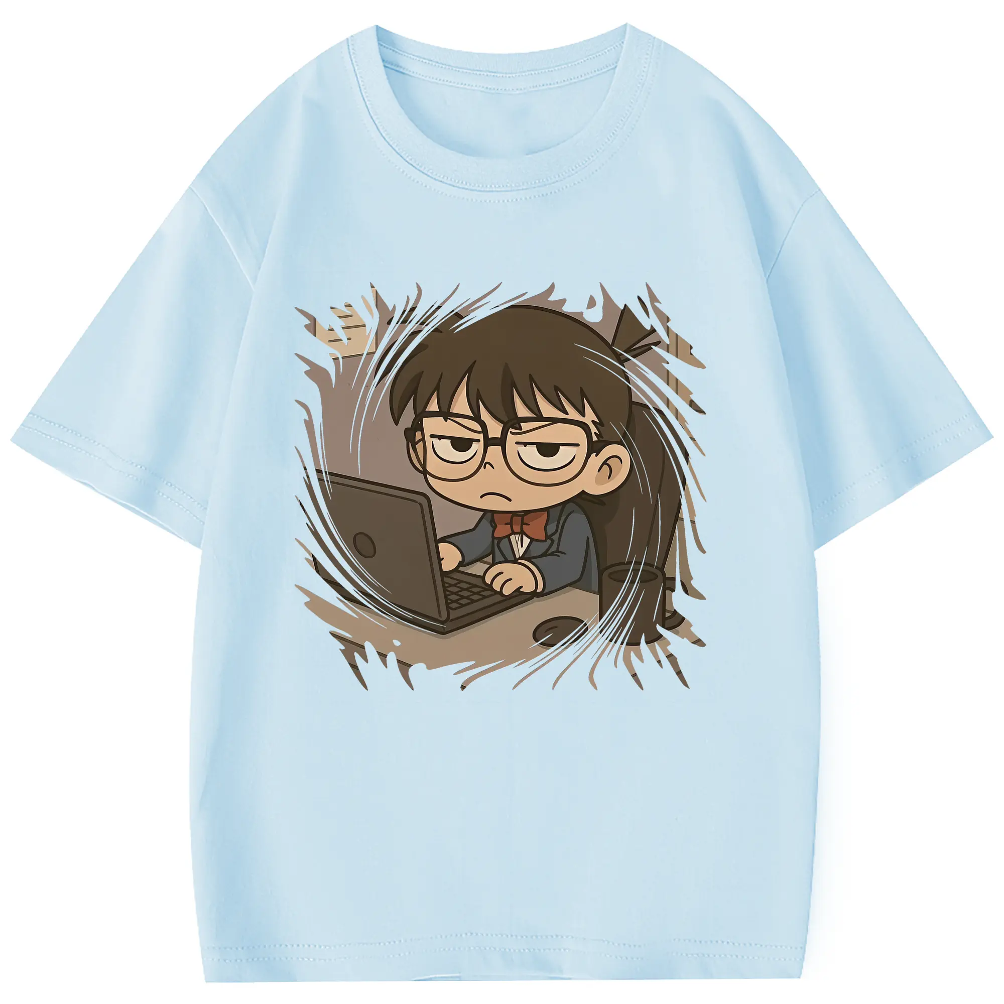 名探偵コナン グッズ 江戸川 コナン - 綿100% 半袖Tシャツ ・ フロントプリント ・ 快適 通気性 ・ 日常使い 散歩 スポーツ用