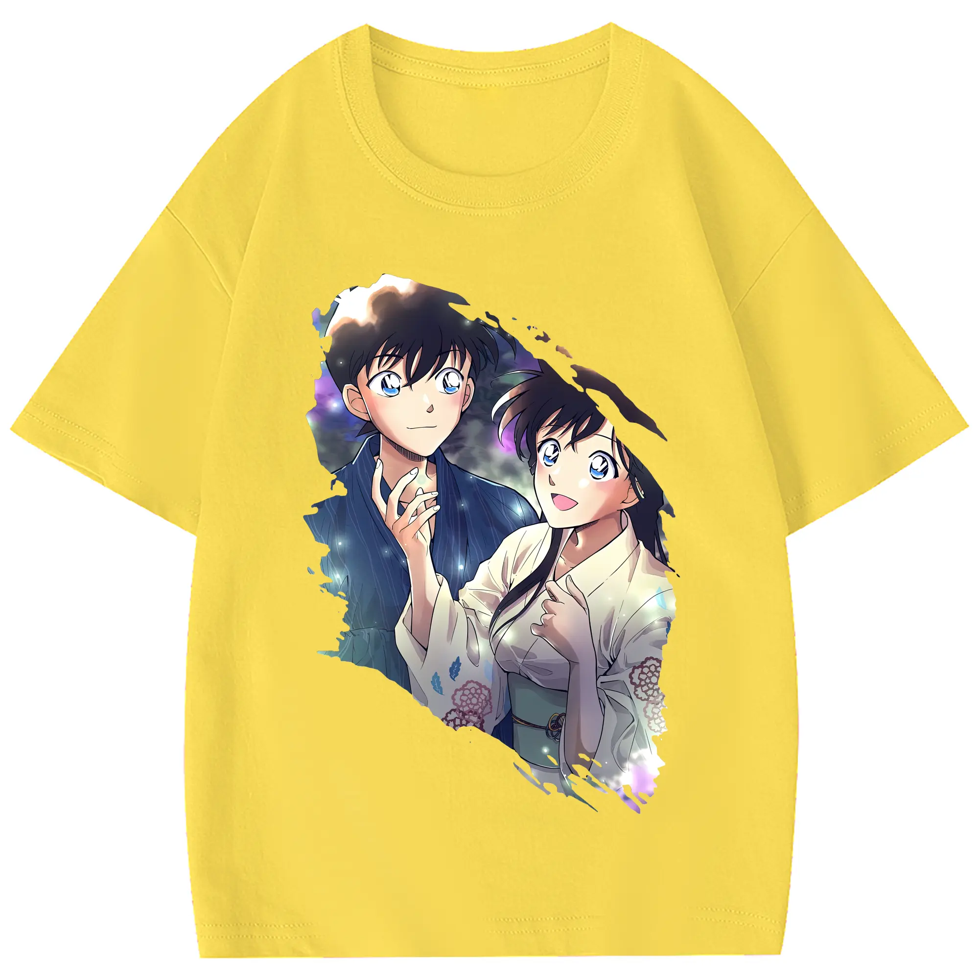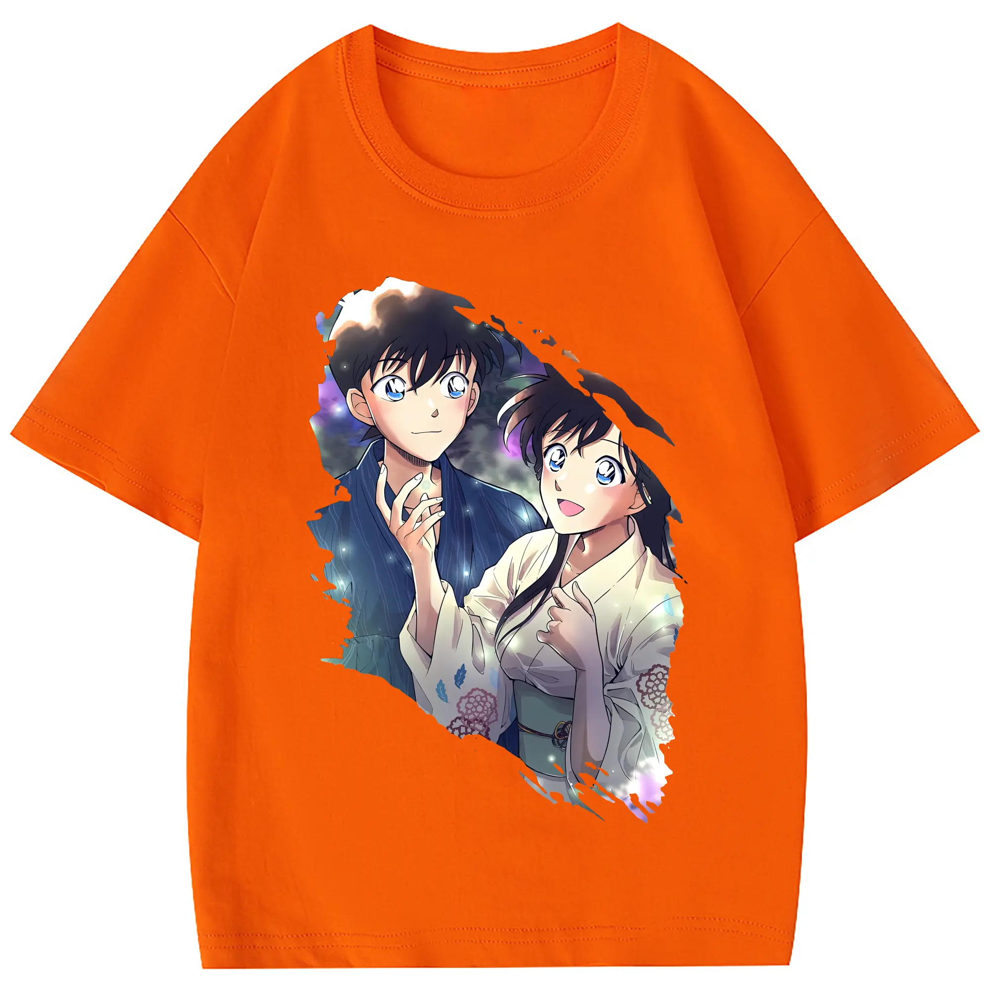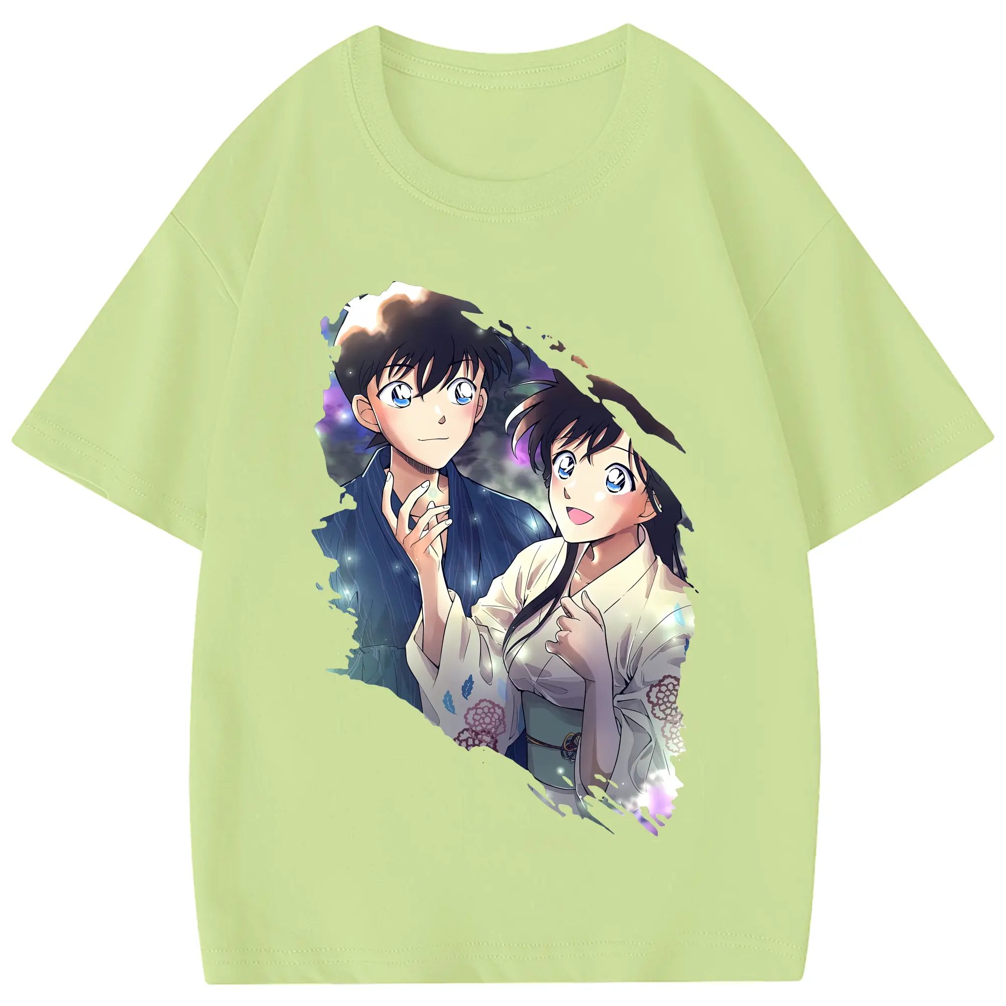 名探偵コナン グッズ 江戸川 コナン - 綿100% 半袖Tシャツ ・ フロントプリント ・ 快適 通気性 ・ 日常使い 散歩 スポーツ用