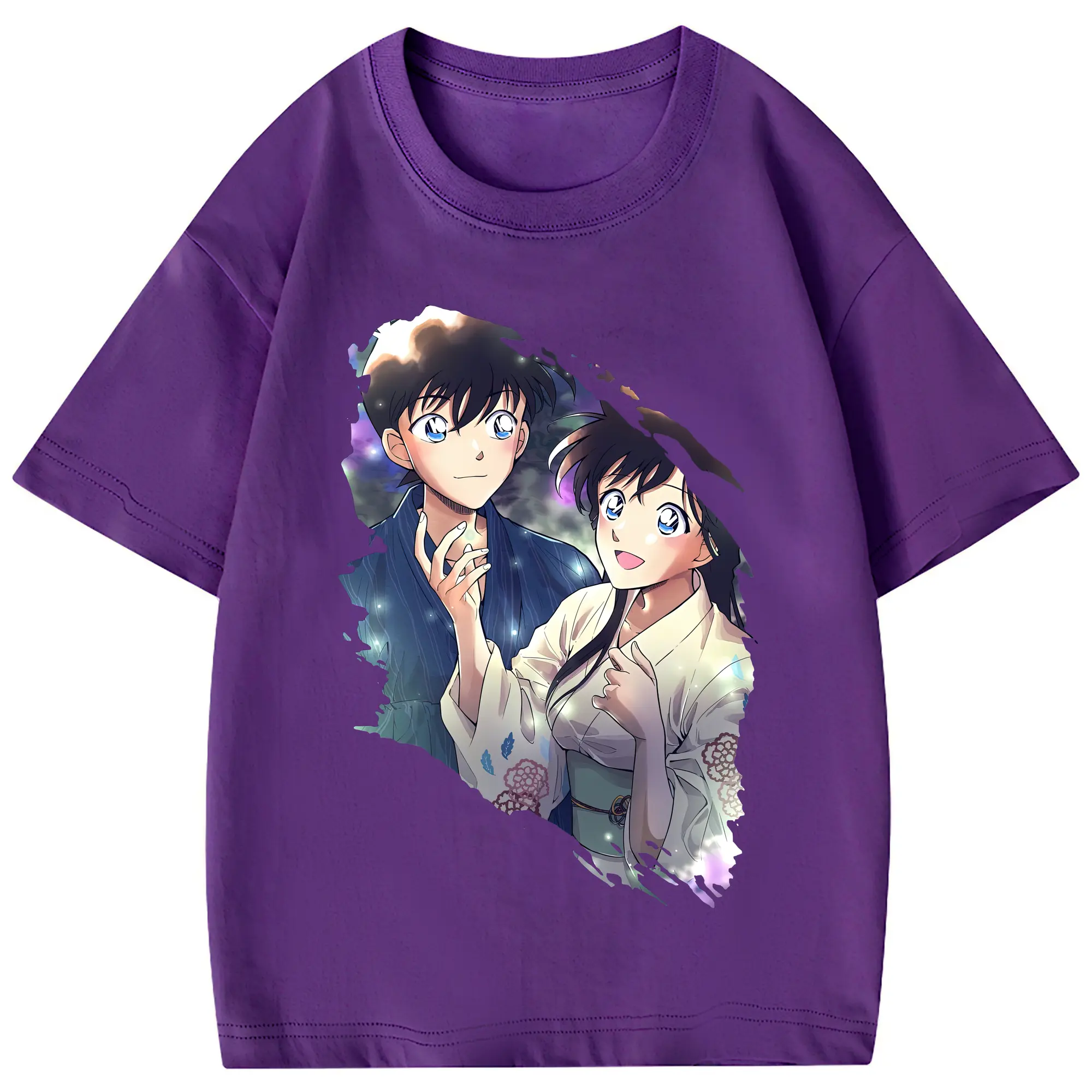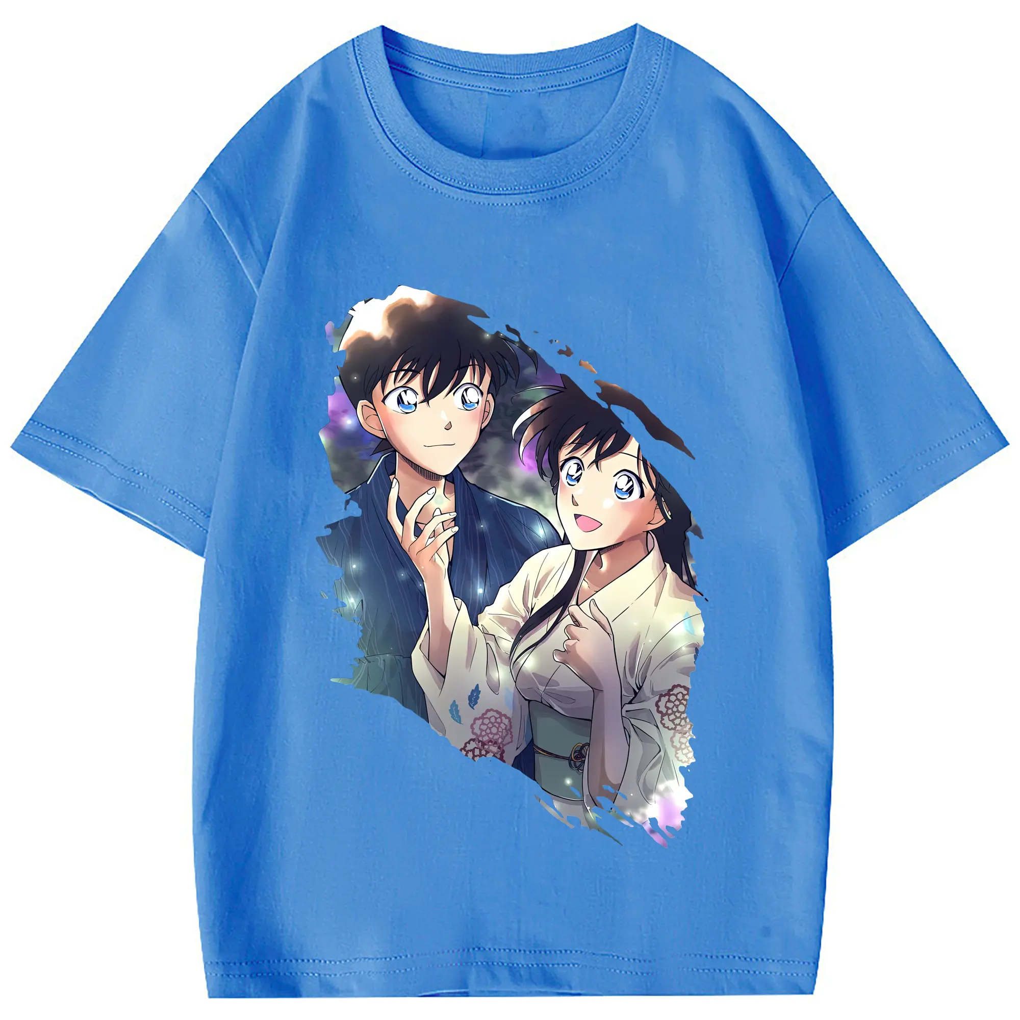 名探偵コナン グッズ 江戸川 コナン - 綿100% 半袖Tシャツ ・ バックプリント ・ 快適 通気性 ・ 日常使い 散歩 スポーツ用