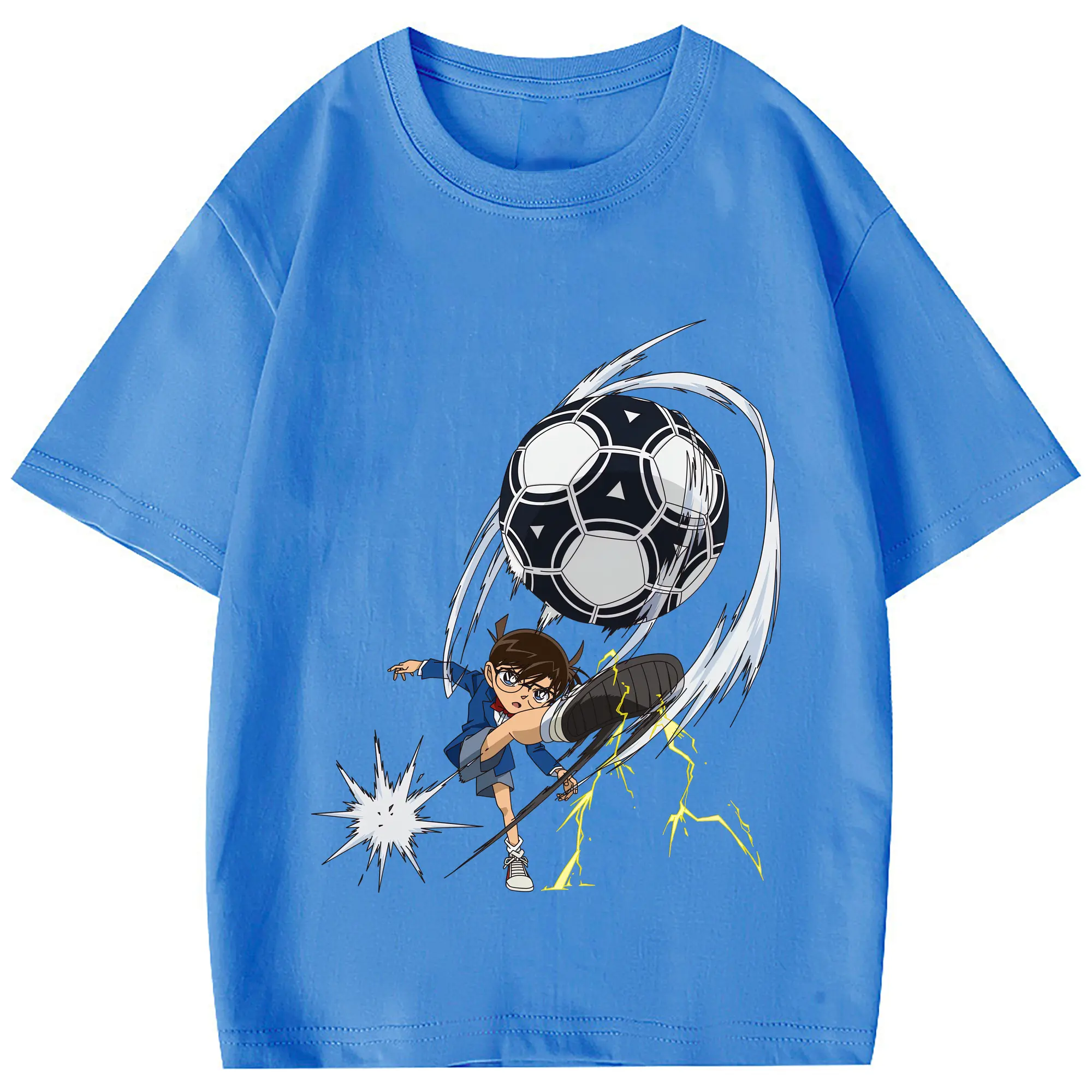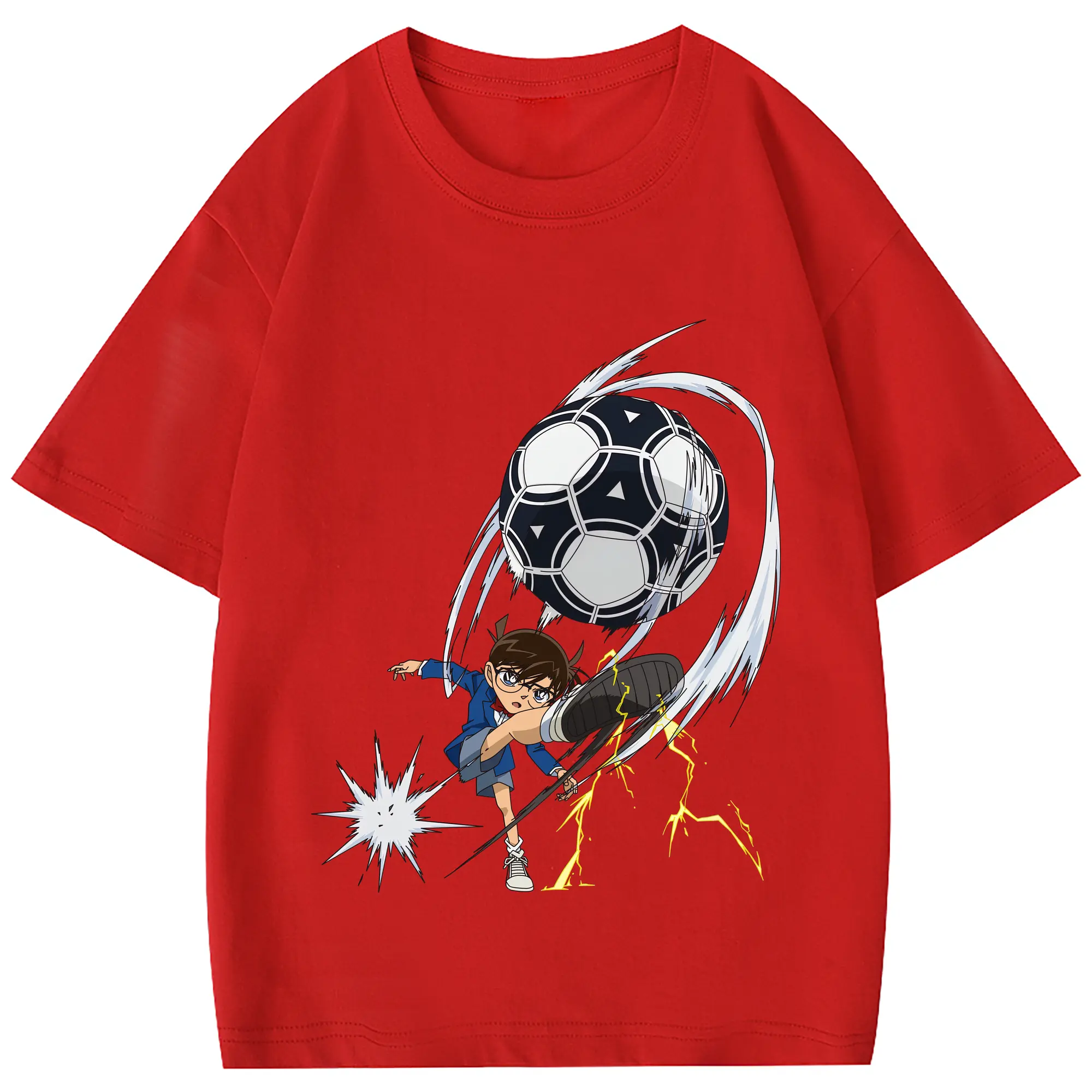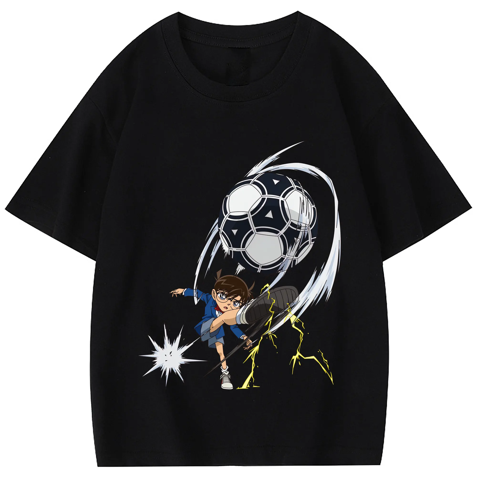 名探偵コナン グッズ 江戸川 コナン - 綿100% 半袖Tシャツ ・ フロントプリント ・ 快適 通気性 ・ 日常使い 散歩 スポーツ用