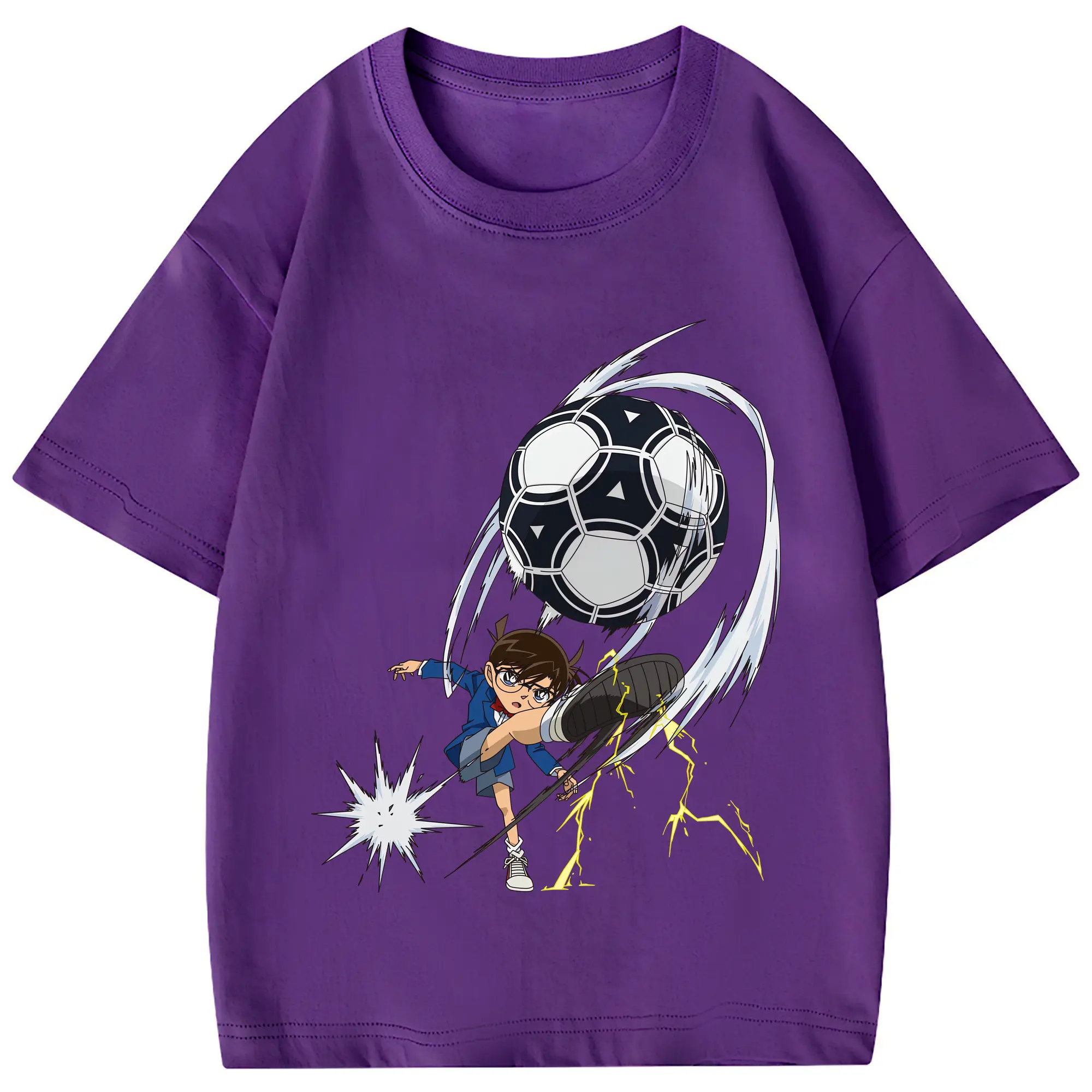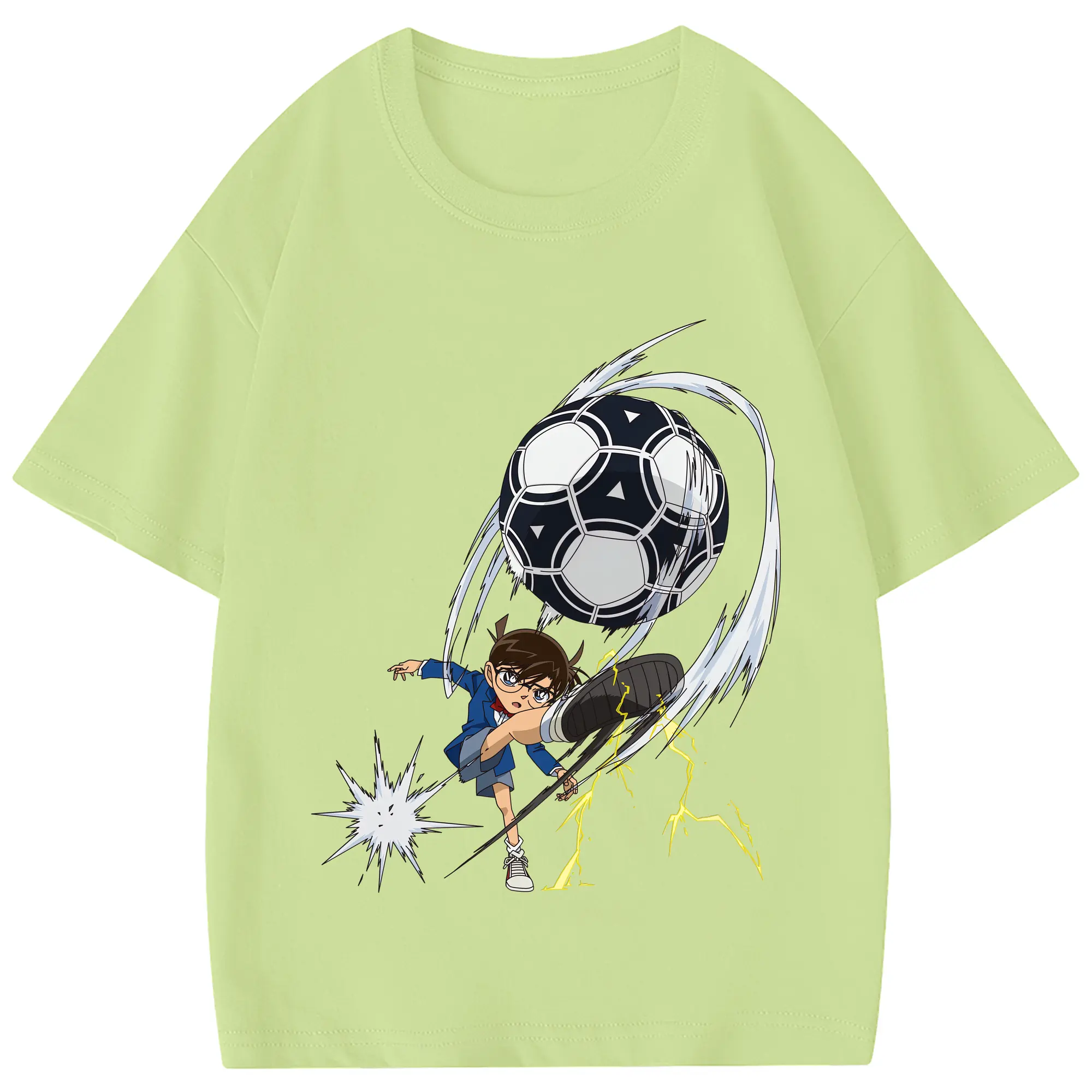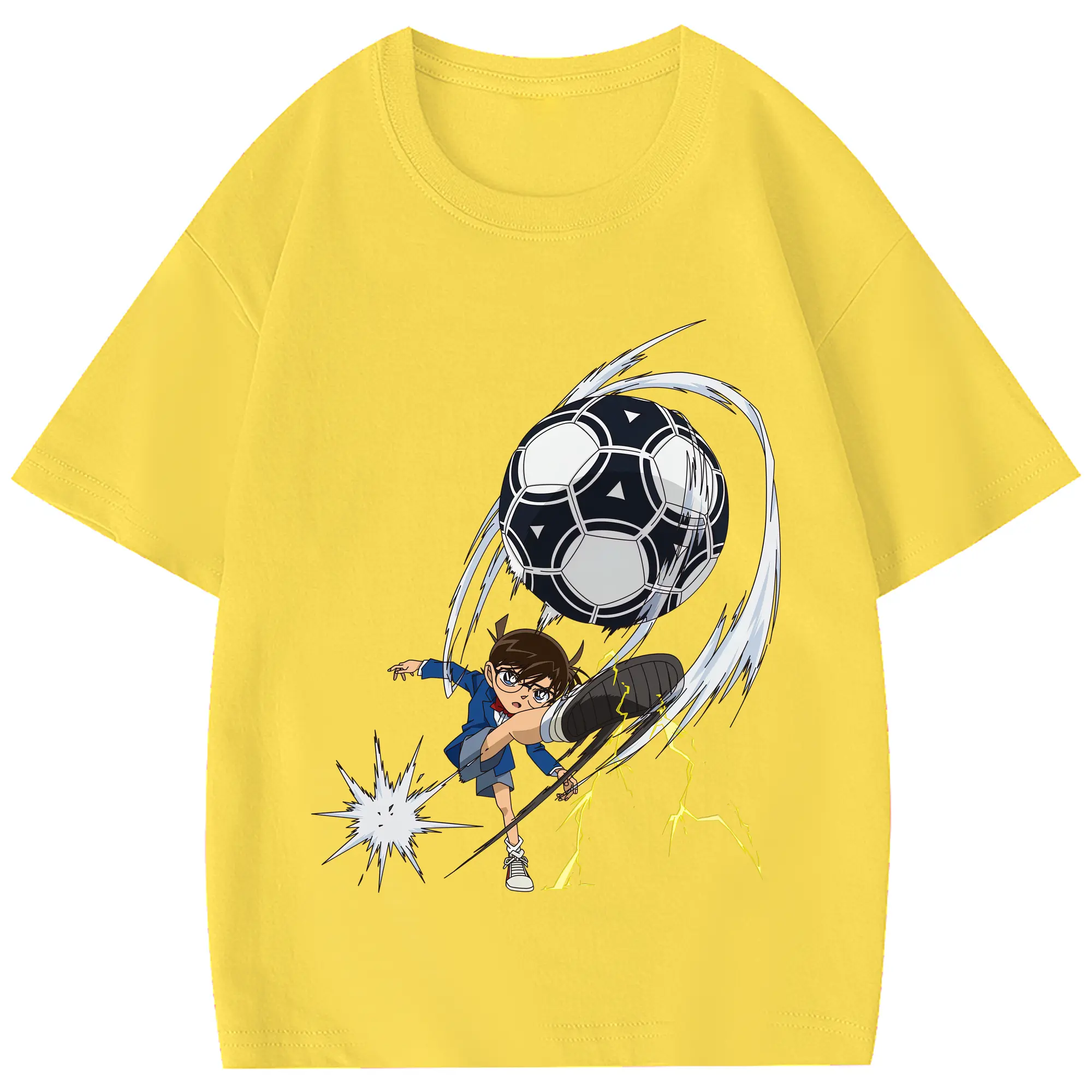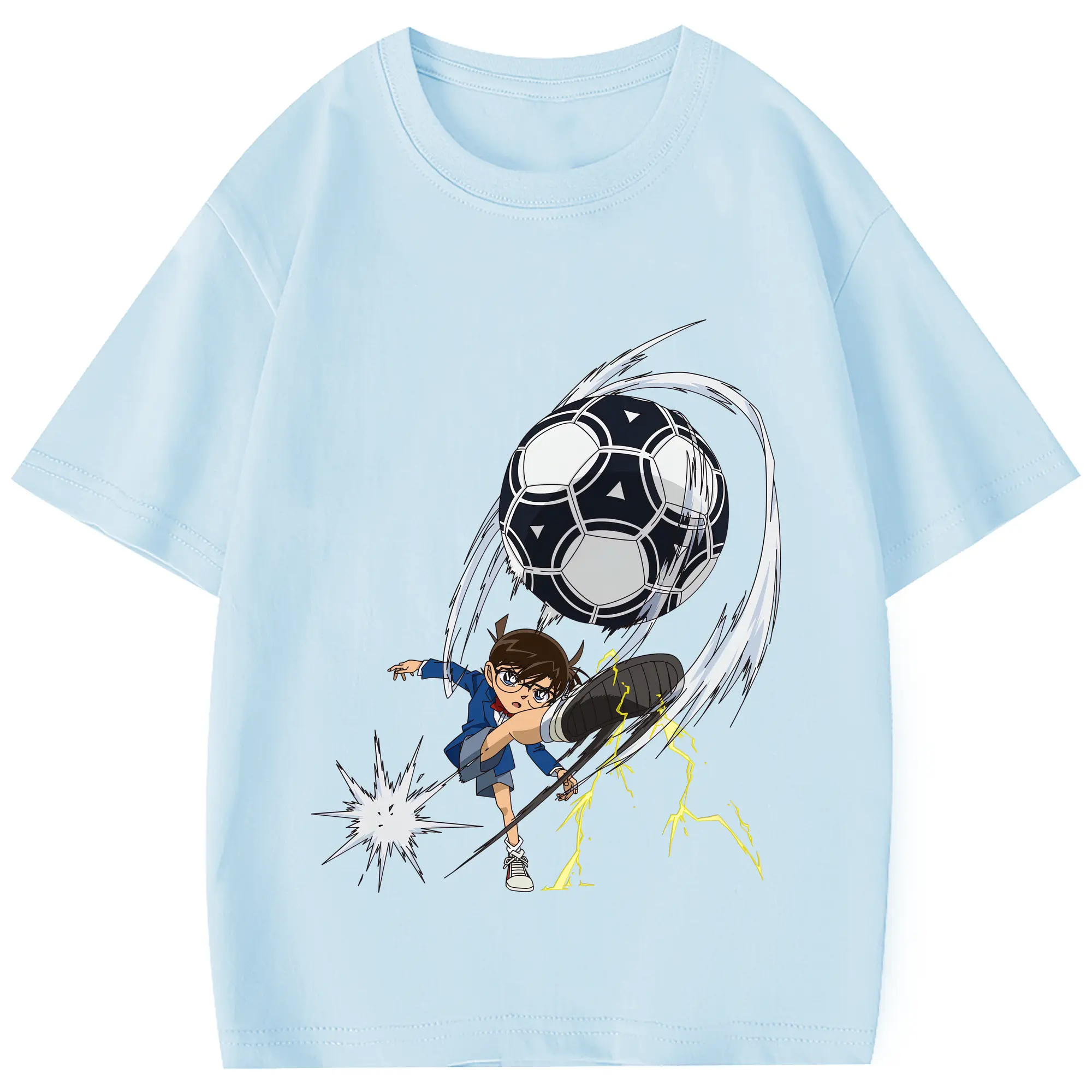 名探偵コナン グッズ 江戸川 コナン - 綿100% 半袖Tシャツ ・ フロントプリント ・ 快適 通気性 ・ 日常使い 散歩 スポーツ用