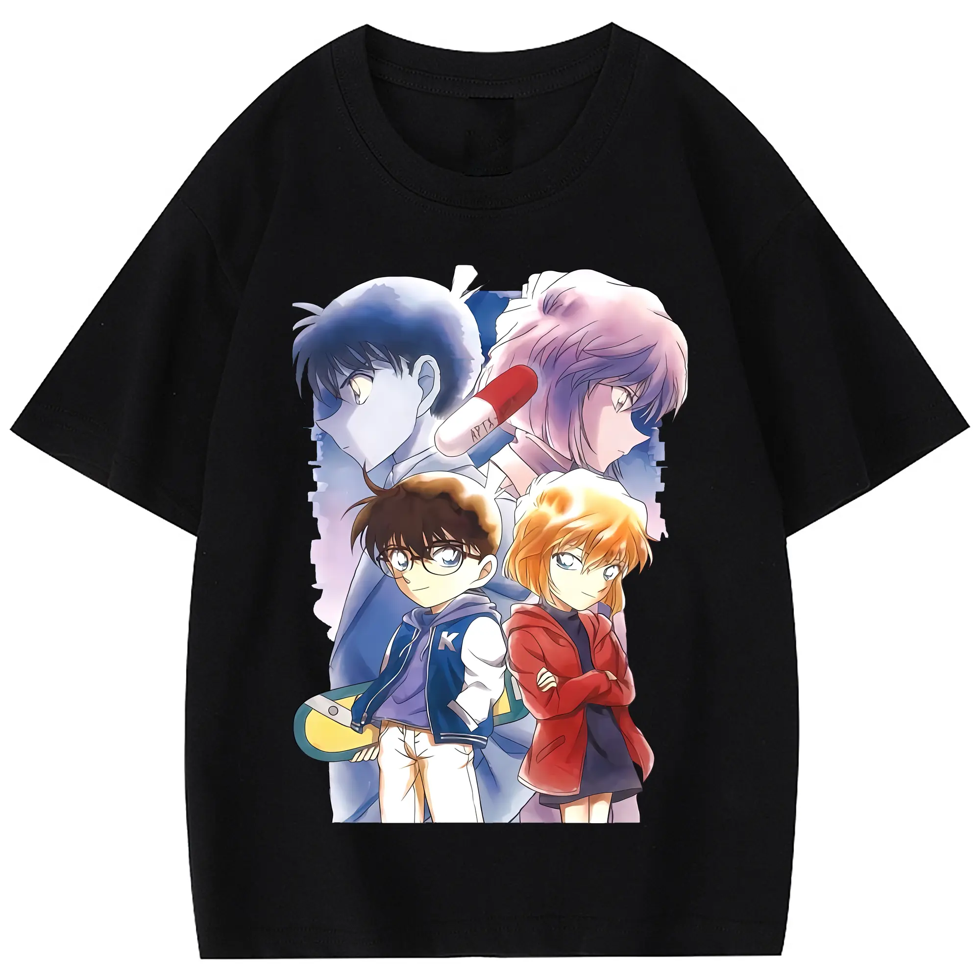 名探偵コナン グッズ 江戸川 コナン - 綿100% 半袖Tシャツ ・ バックプリント ・ 快適 通気性 ・ 日常使い 散歩 スポーツ用
