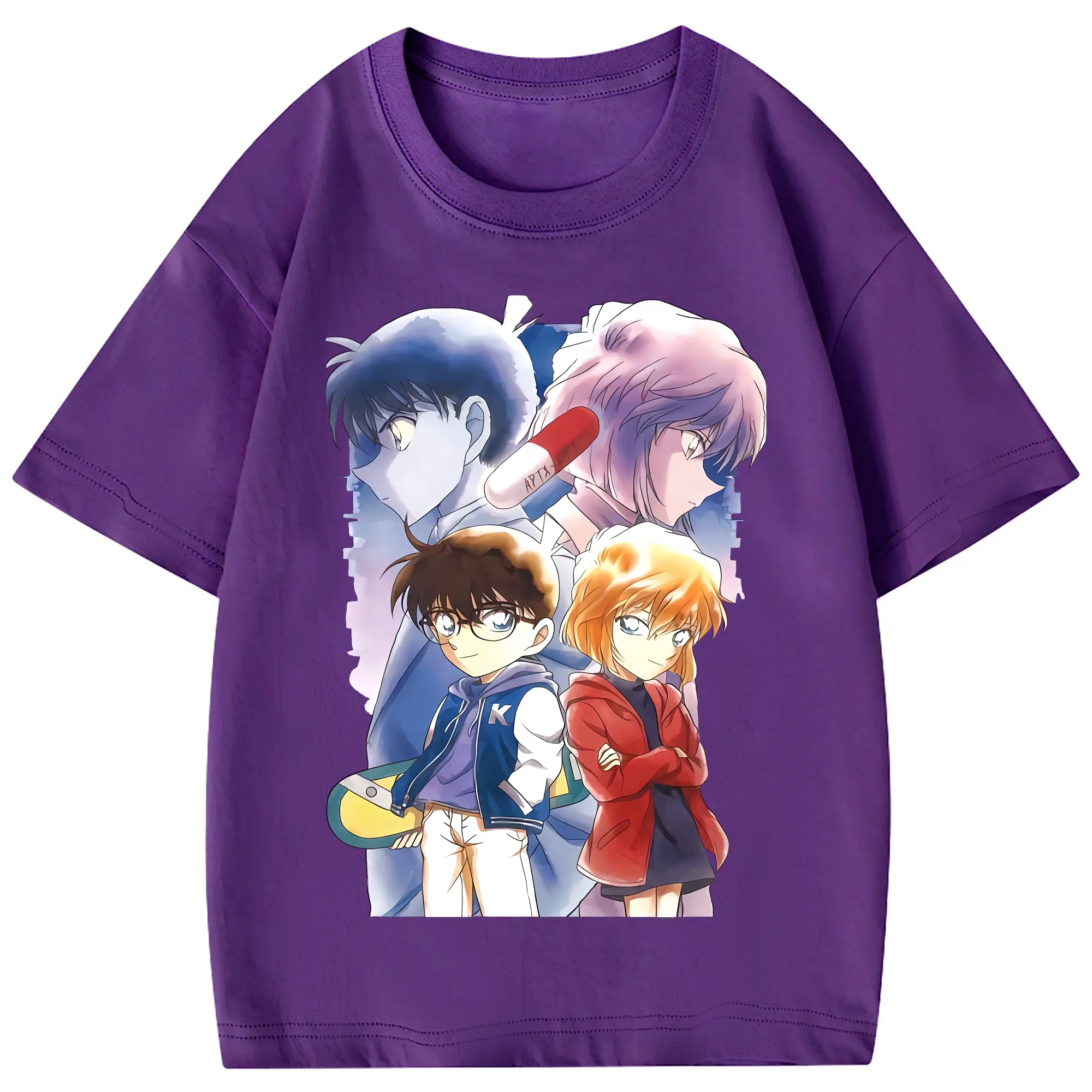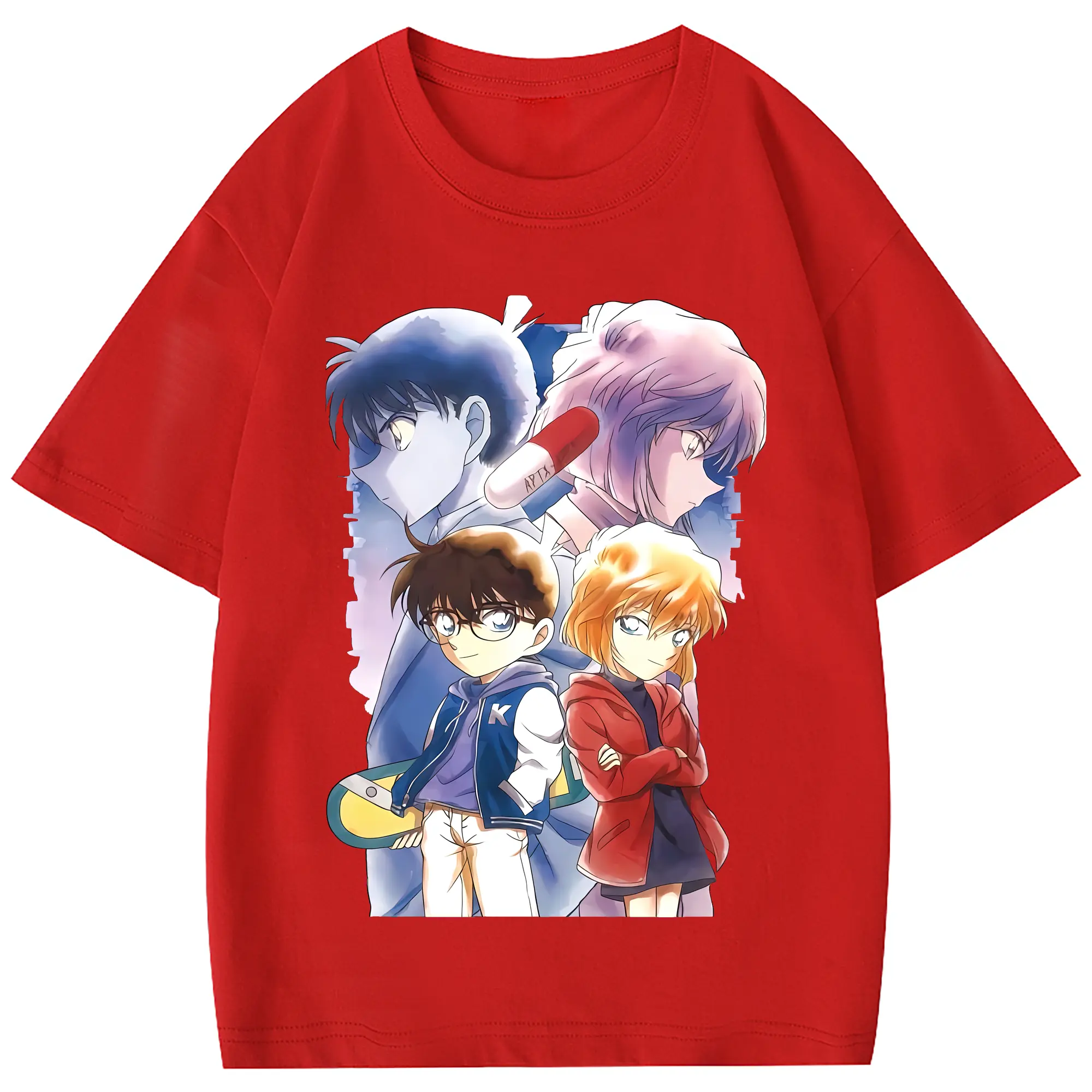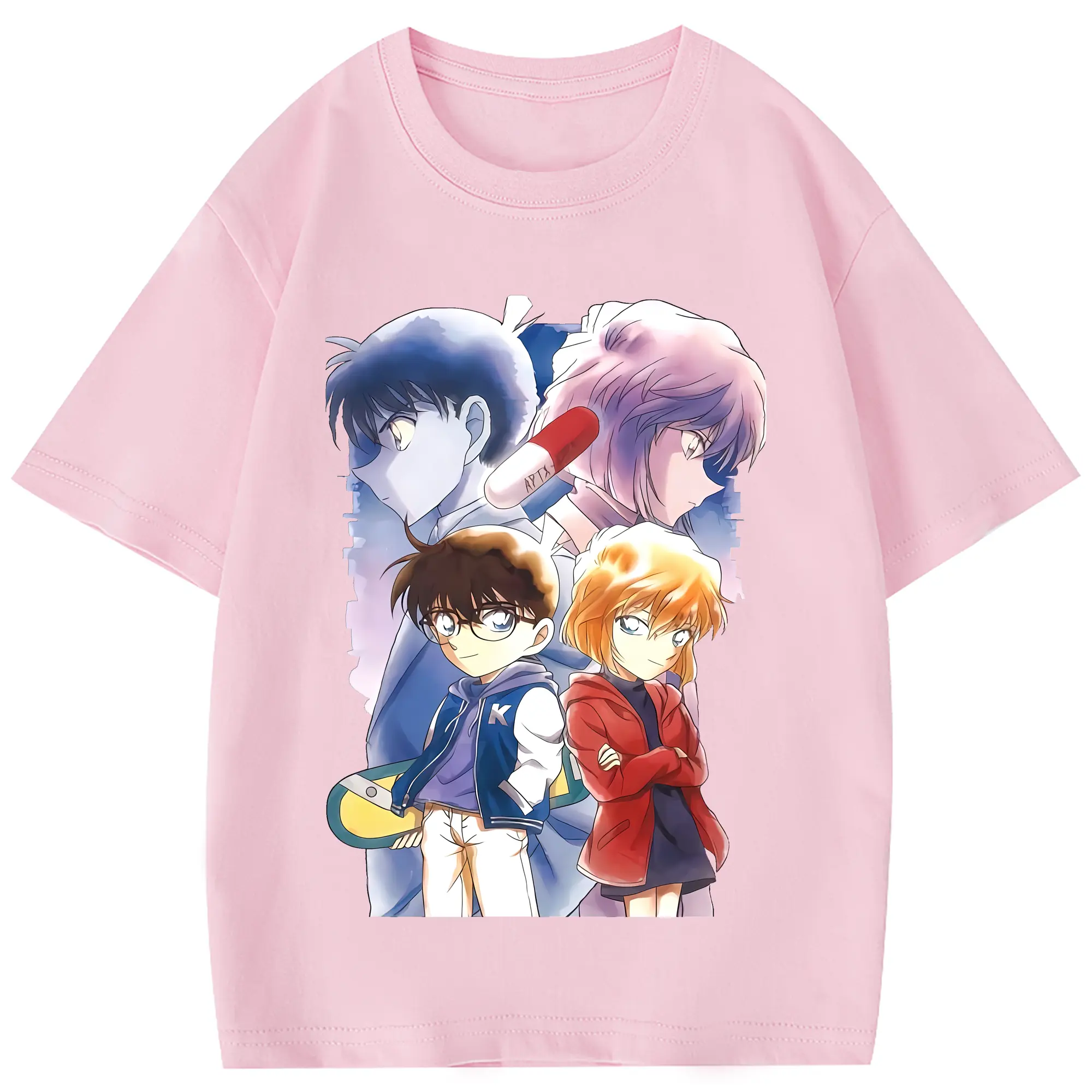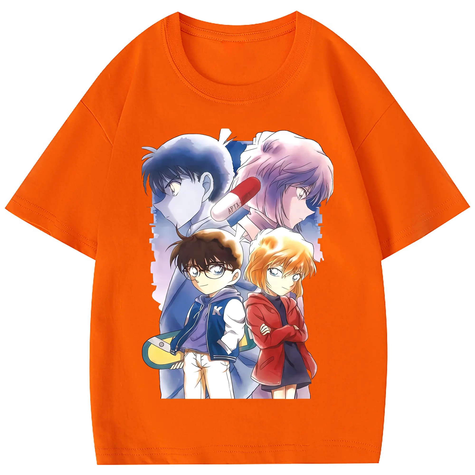 名探偵コナン グッズ 江戸川 コナン - 綿100% ヴィンテージ風 半袖Tシャツ ・ フロントプリント ・ 柔らか肌触り ・ 通気性 快適 ・ スポーツ カジュアル 外出用