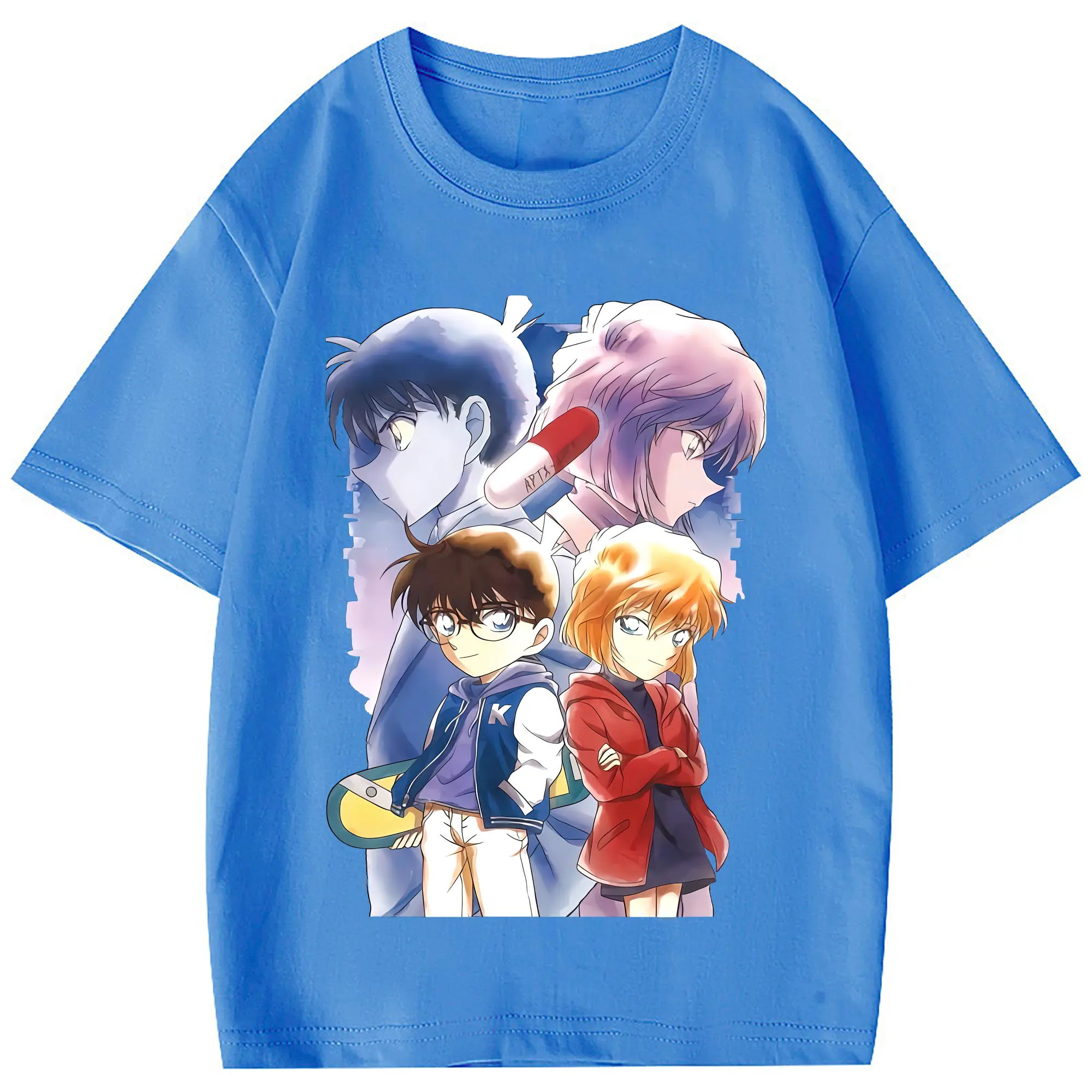 名探偵コナン グッズ 江戸川 コナン - 綿100% 半袖Tシャツ ・ フロントプリント ・ 快適 通気性 ・ 日常使い 散歩 スポーツ用
