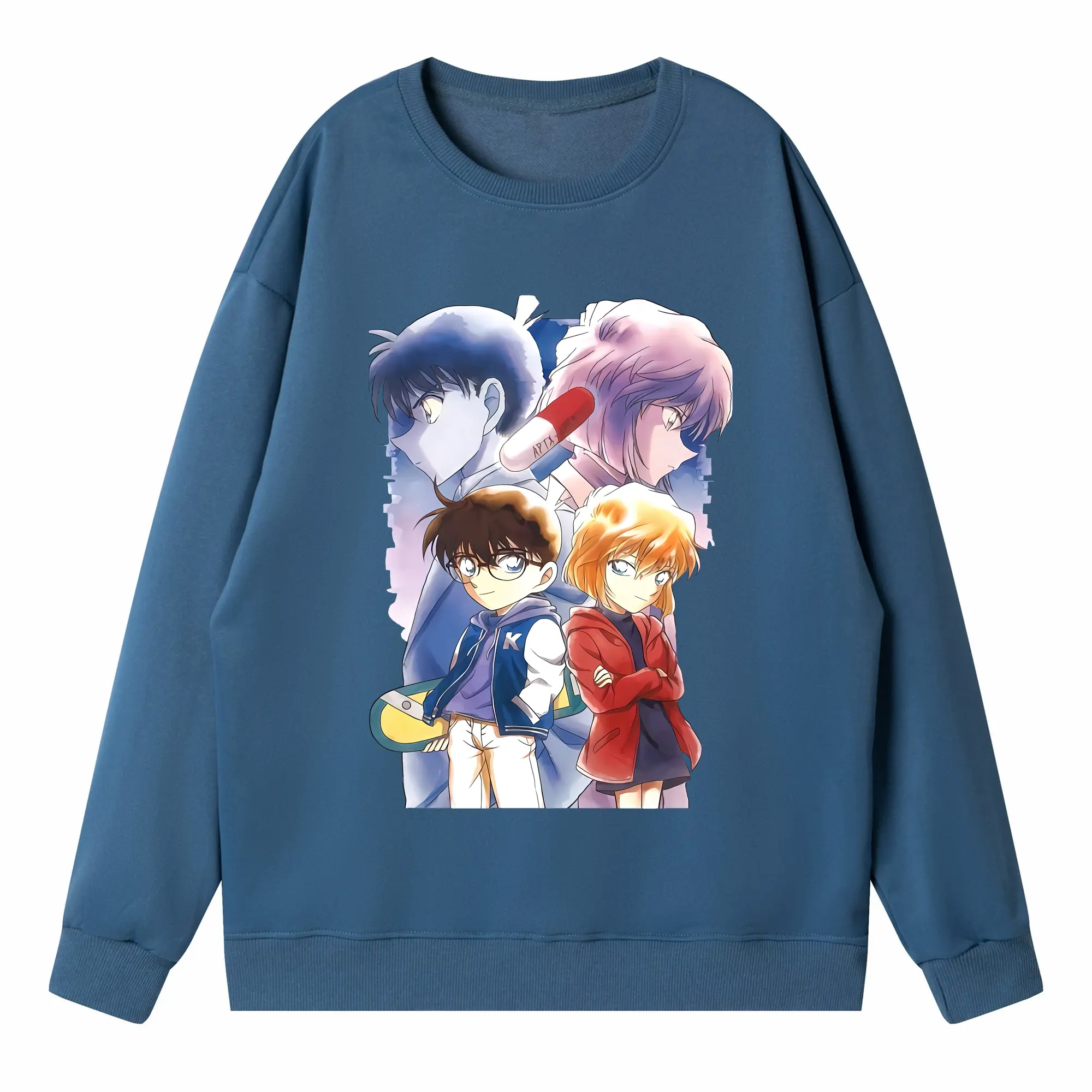 名探偵コナン グッズ 江戸川 コナン - 高品質 クルーネック スウェット ・ コットン59% ポリエステル41% ・ ユニセックス 長袖 トレーナー ・ カジュアル デイリー スポーツ 散歩用