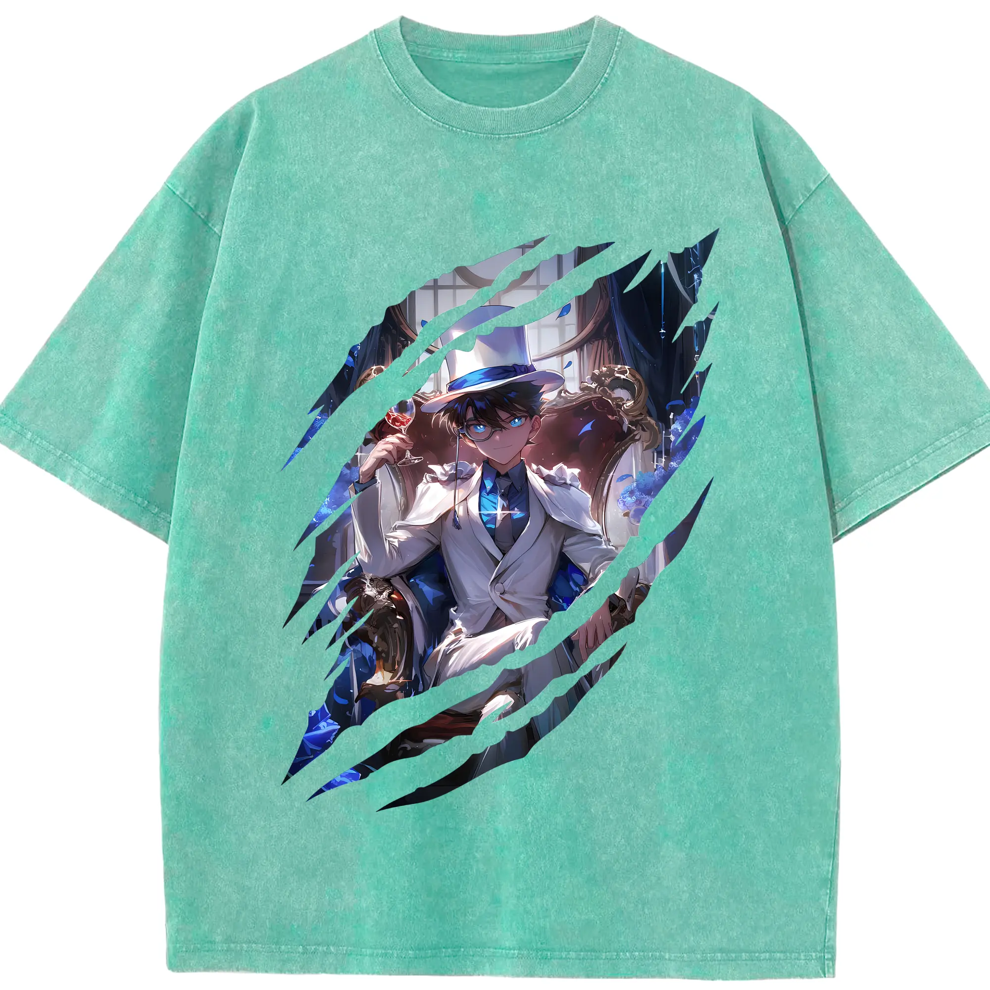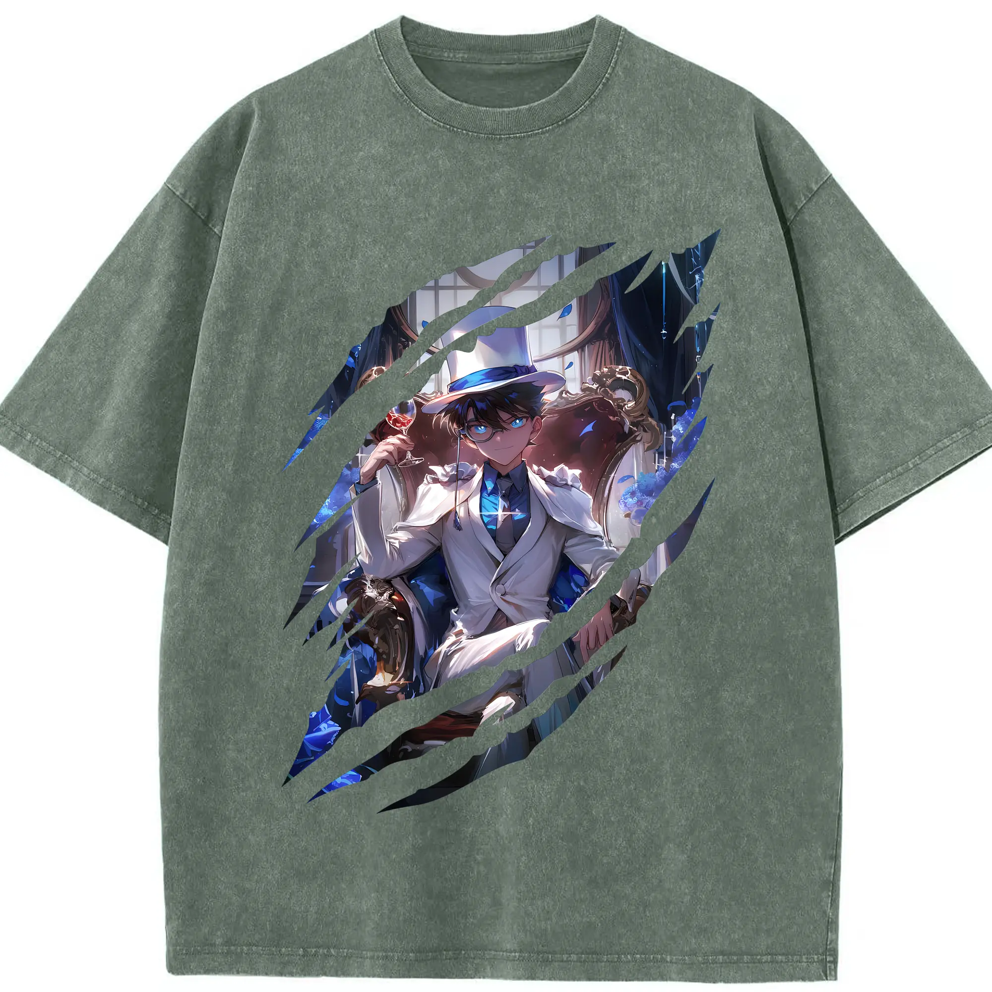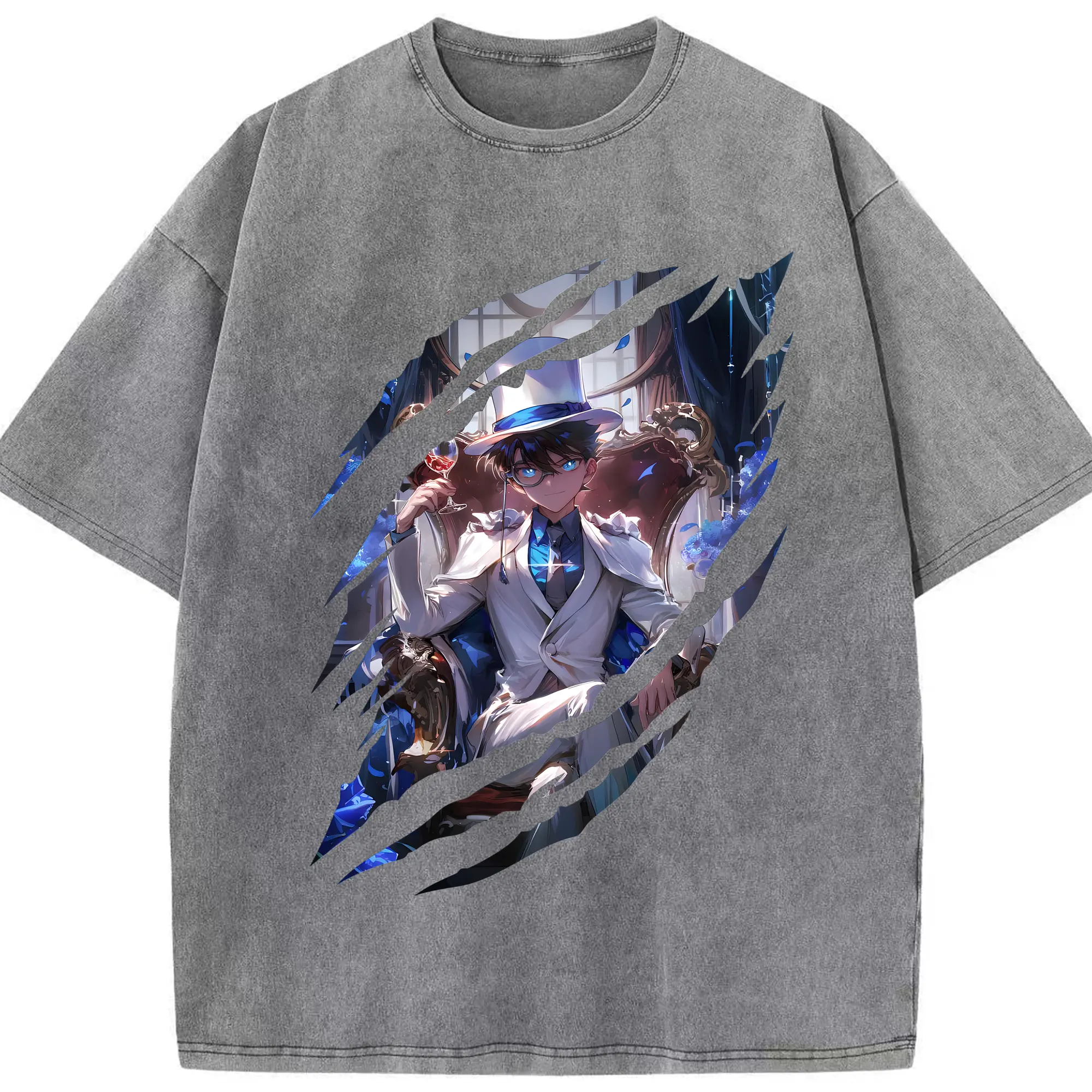 名探偵コナン グッズ 江戸川 コナン - 綿100% ヴィンテージ風 半袖Tシャツ ・ 背面プリント ・ 柔らか肌触り ・ 通気性 快適 ・ スポーツ カジュアル 外出用