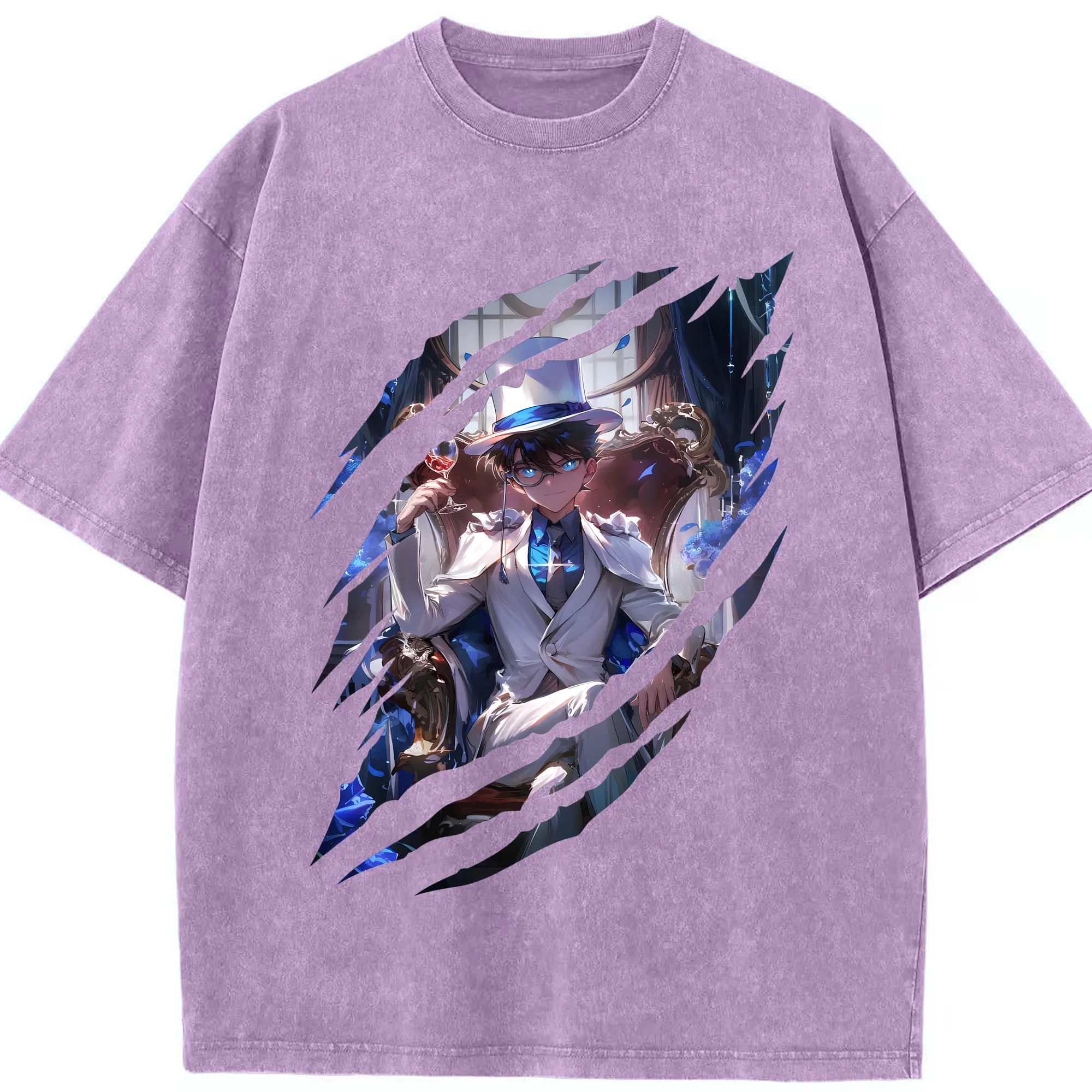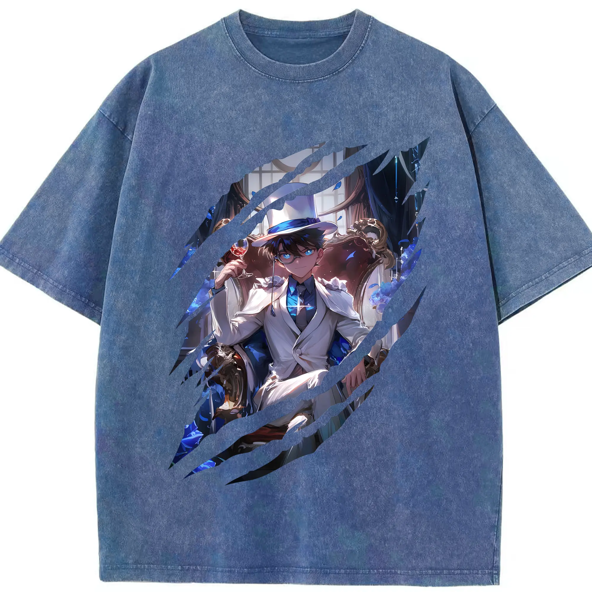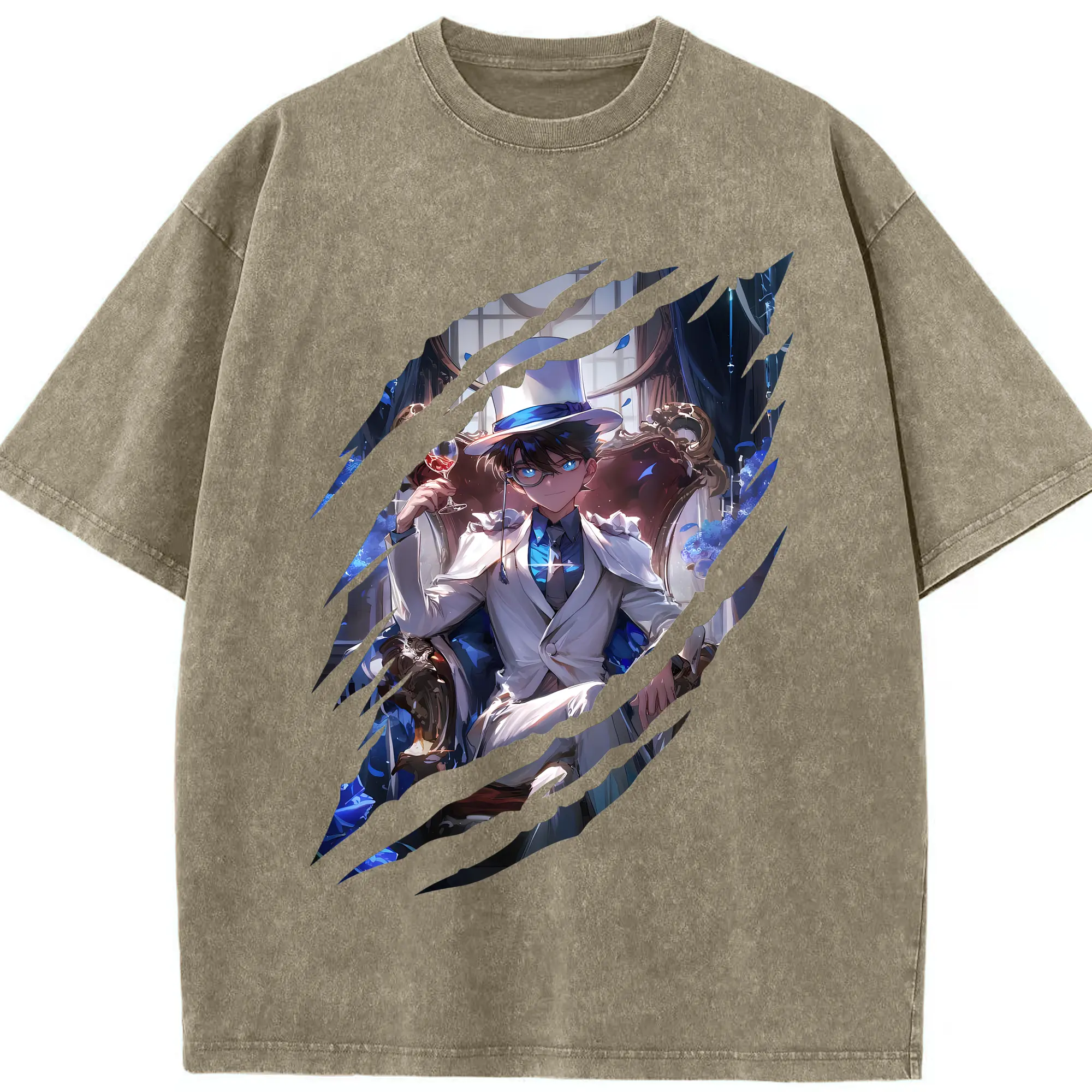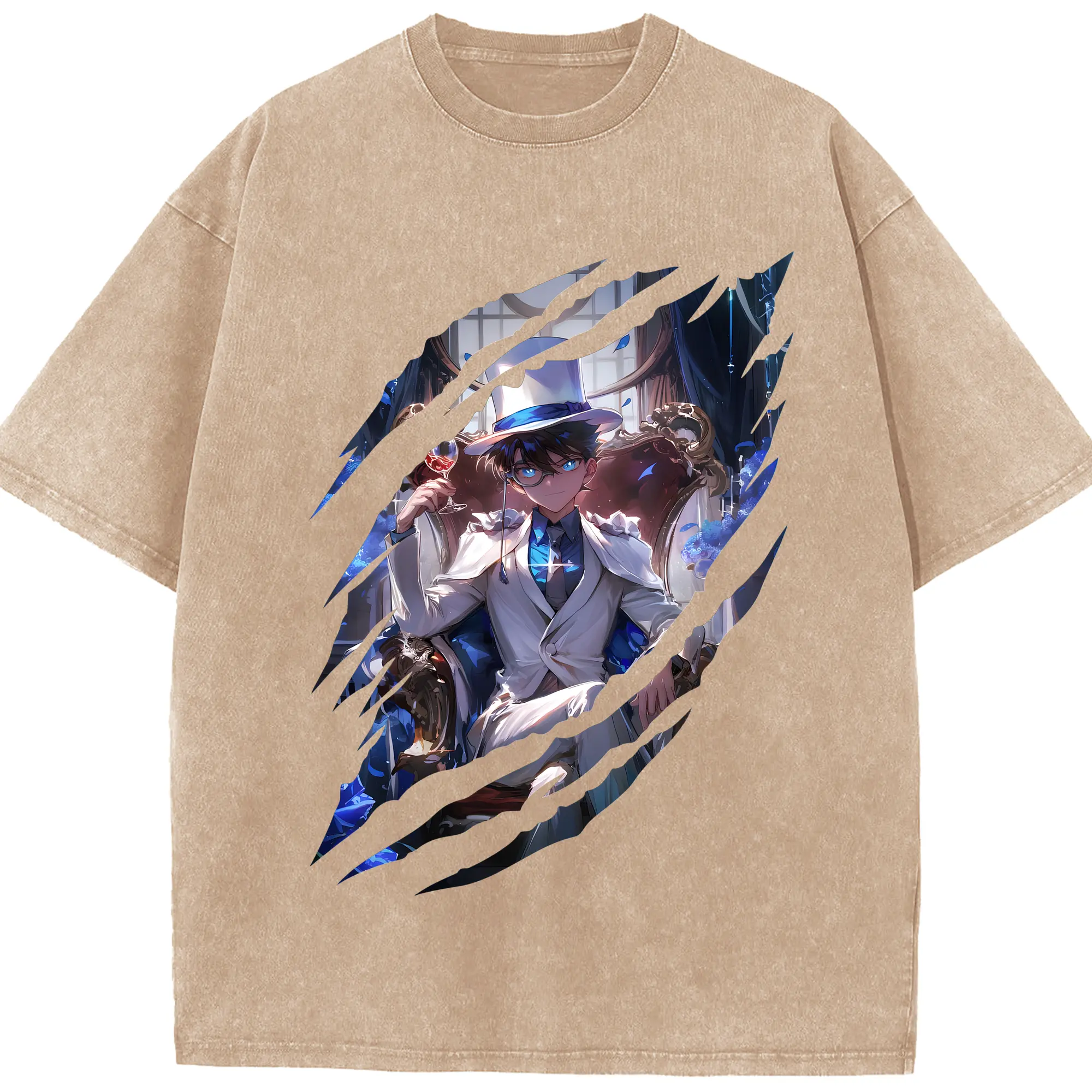 名探偵コナン グッズ 江戸川 コナン - 綿100% ヴィンテージ風 半袖Tシャツ ・ 背面プリント ・ 柔らか肌触り ・ 通気性 快適 ・ スポーツ カジュアル 外出用