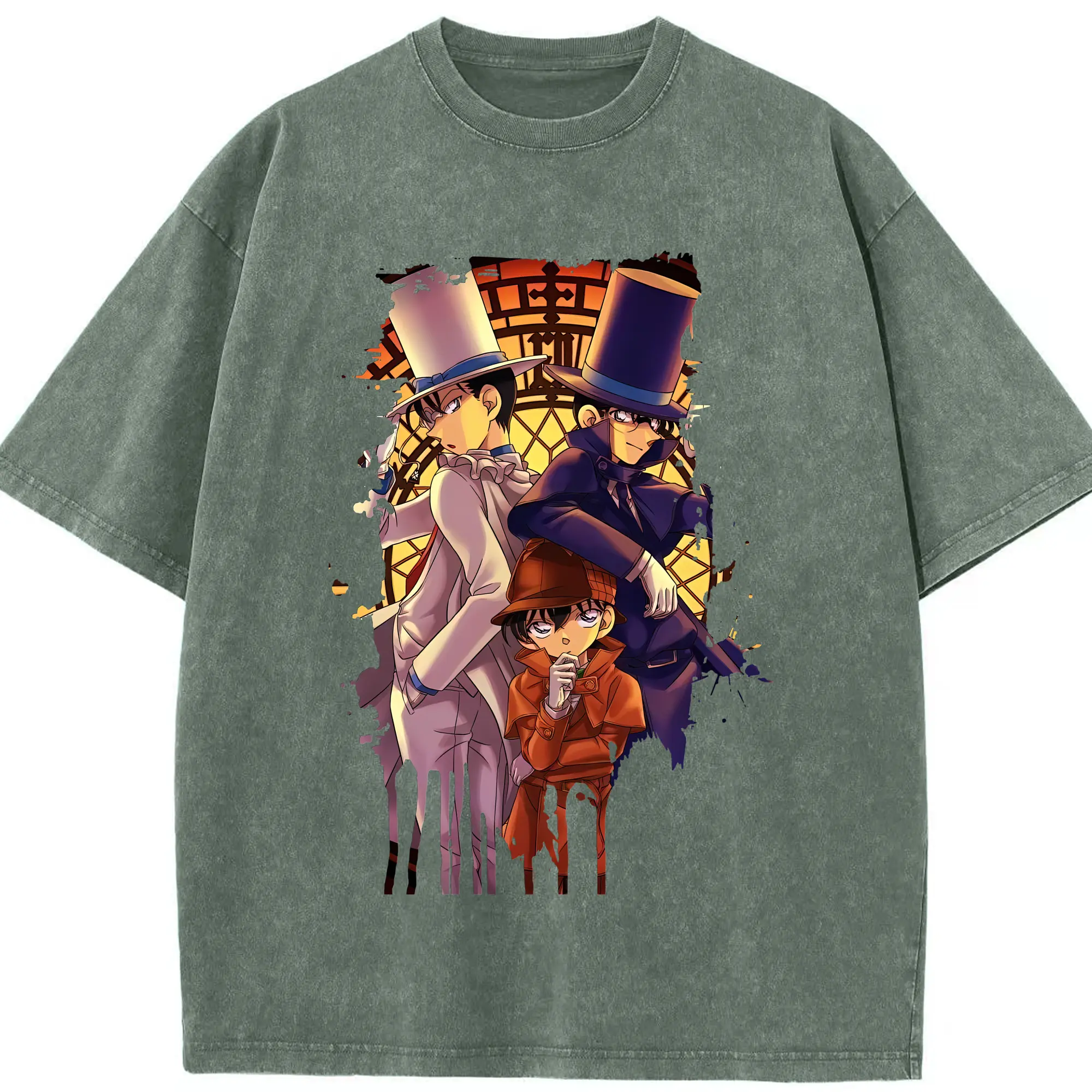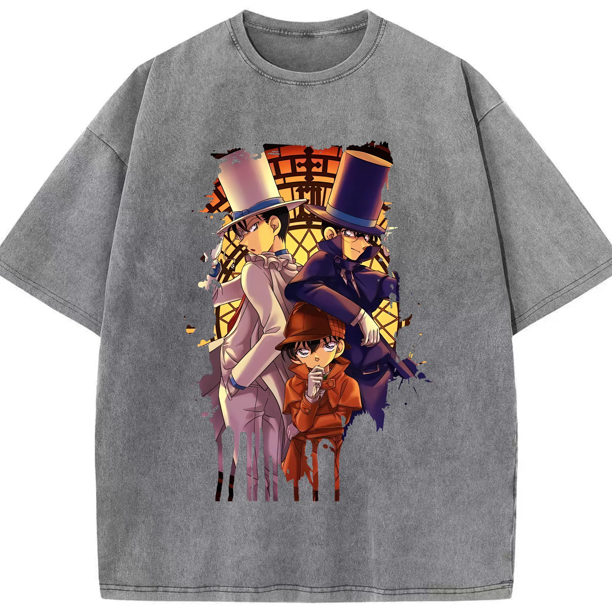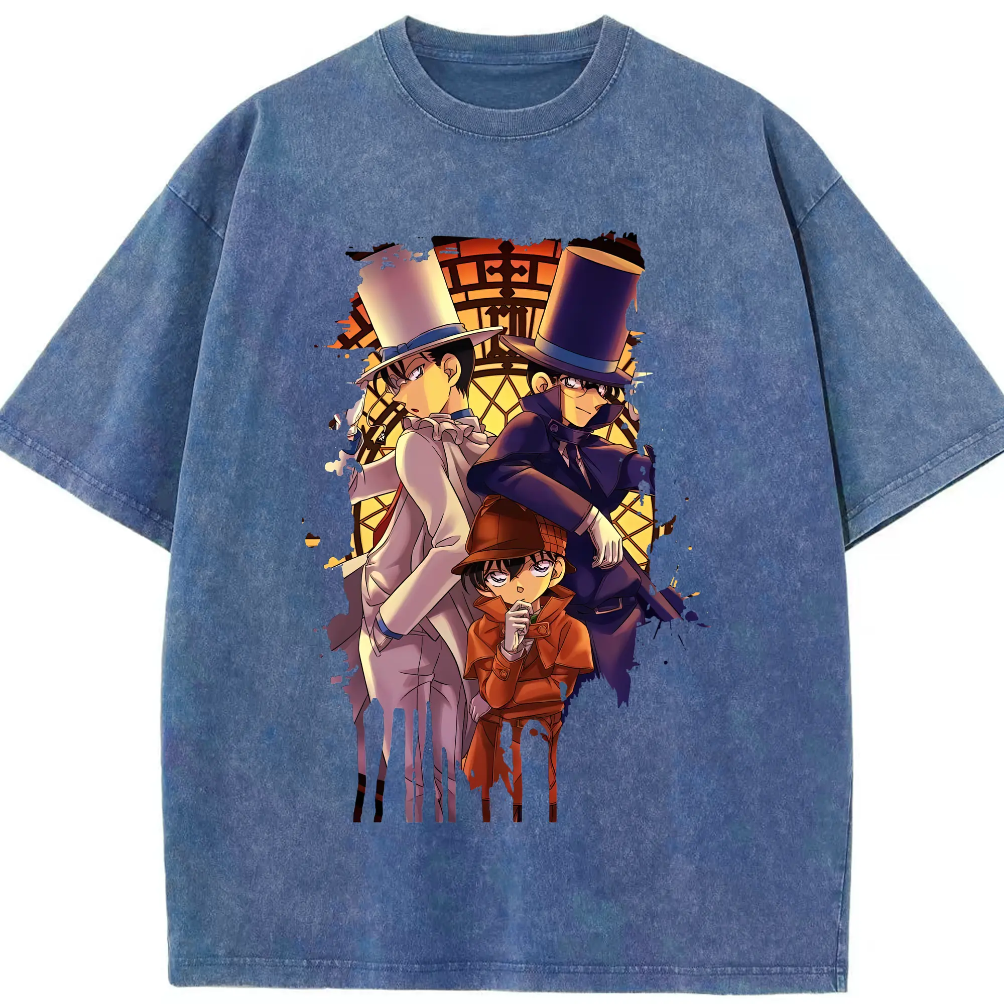 名探偵コナン グッズ 江戸川 コナン - 綿100% ヴィンテージ風 半袖Tシャツ ・ 背面プリント ・ 柔らか肌触り ・ 通気性 快適 ・ スポーツ カジュアル 外出用