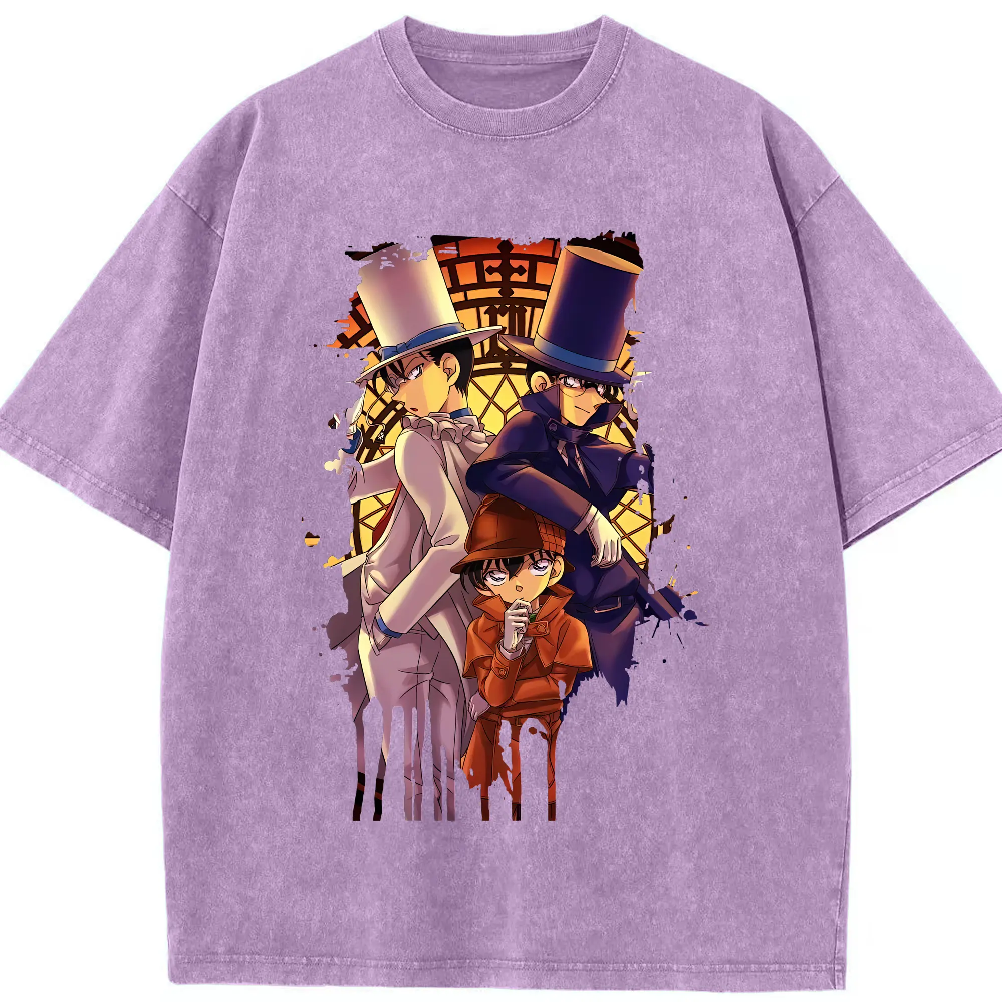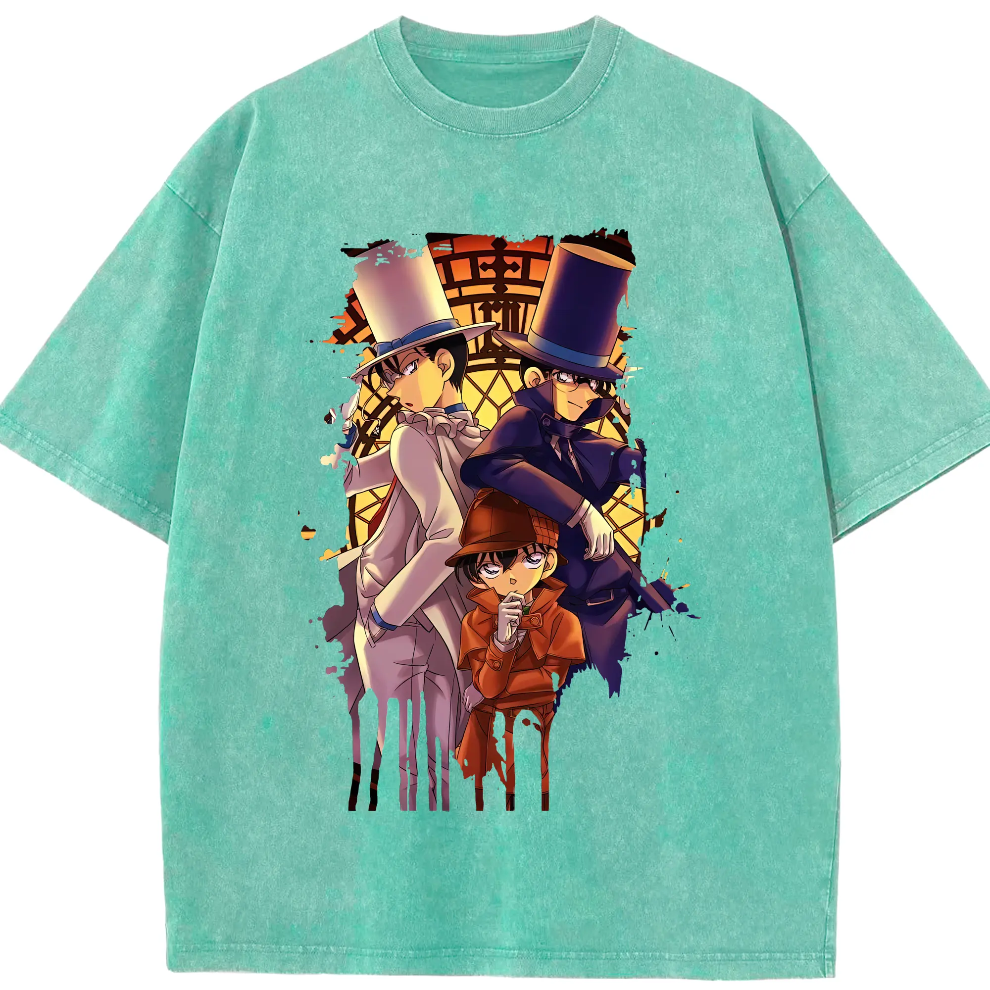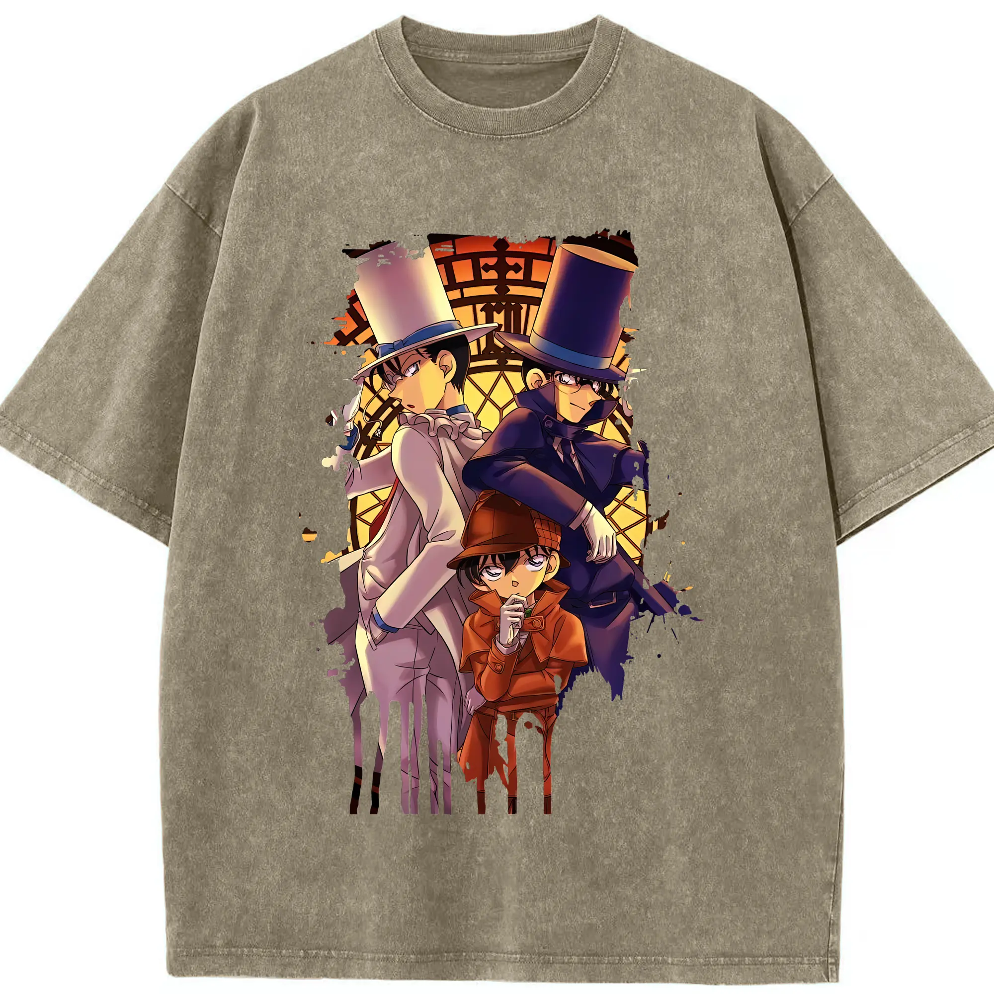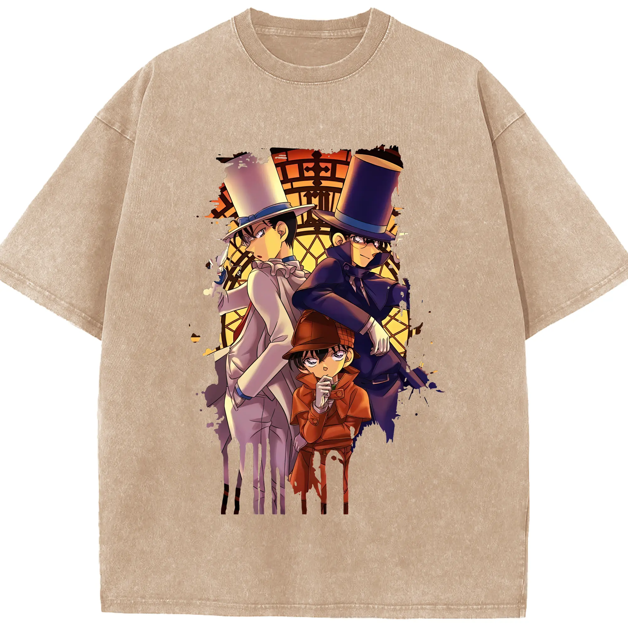 名探偵コナン グッズ 江戸川 コナン - 綿100% ヴィンテージ風 半袖Tシャツ ・ 背面プリント ・ 柔らか肌触り ・ 通気性 快適 ・ スポーツ カジュアル 外出用