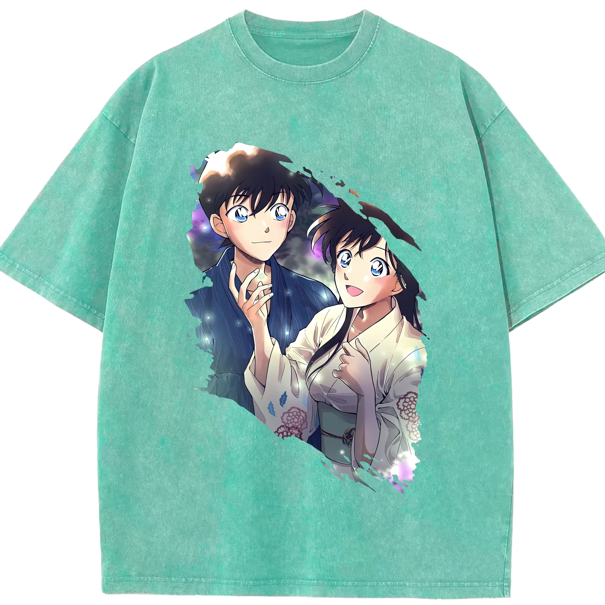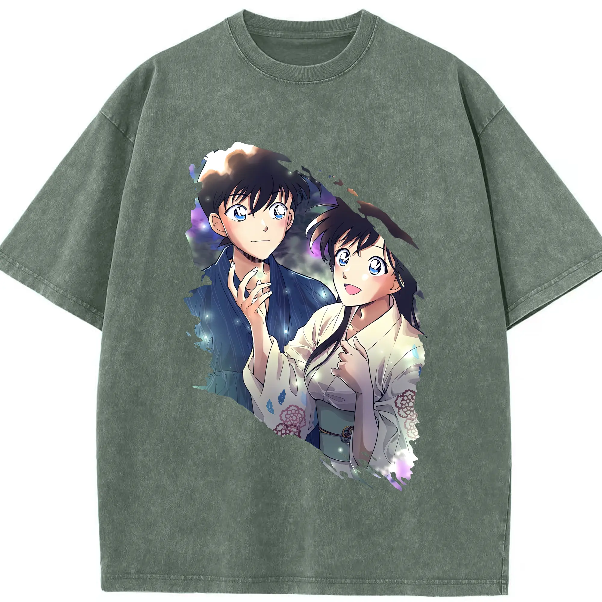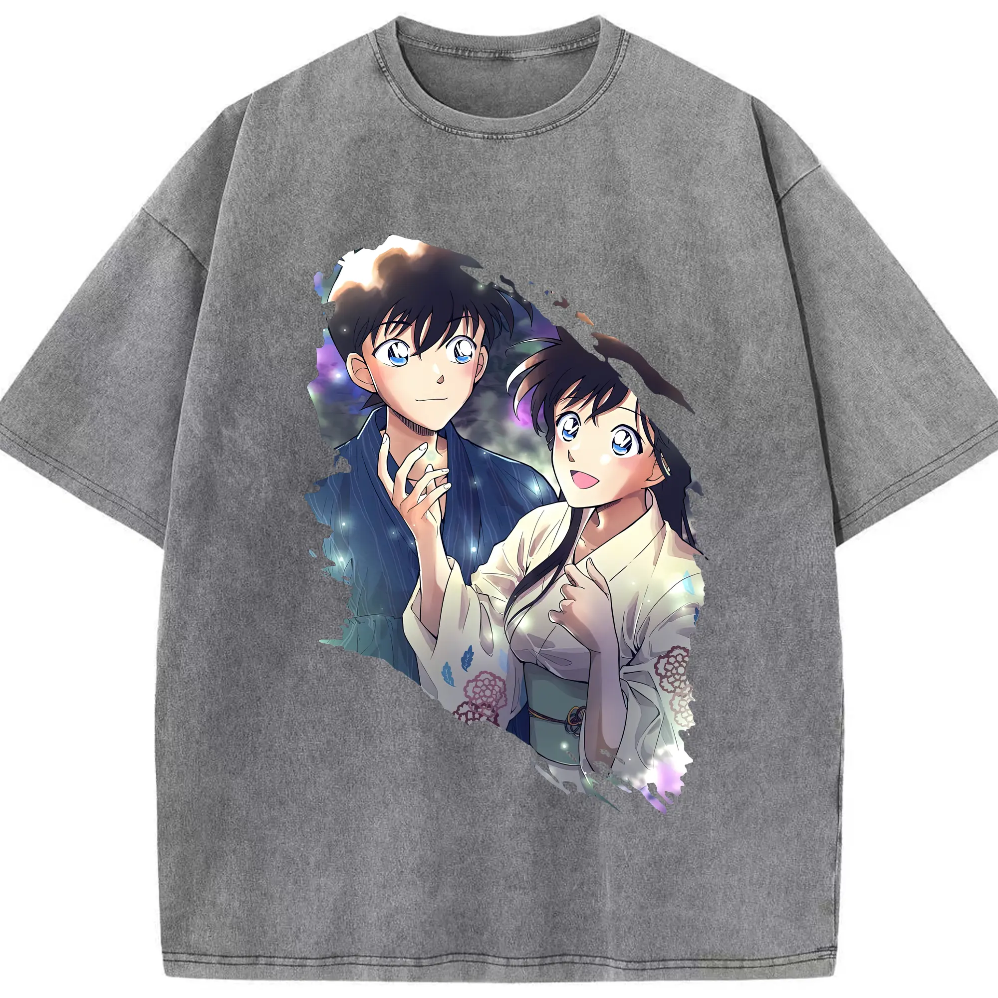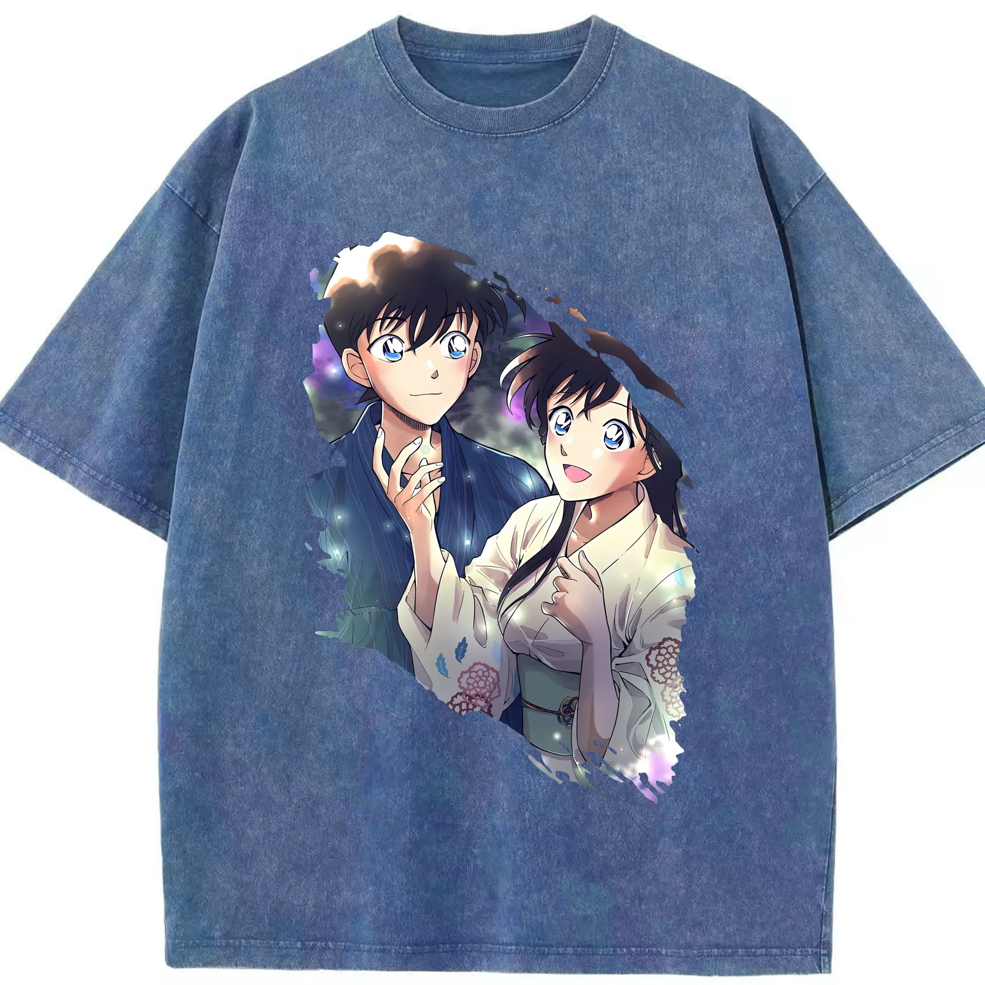 名探偵コナン グッズ 江戸川 コナン - 綿100% ヴィンテージ風 半袖Tシャツ ・ 背面プリント ・ 柔らか肌触り ・ 通気性 快適 ・ スポーツ カジュアル 外出用