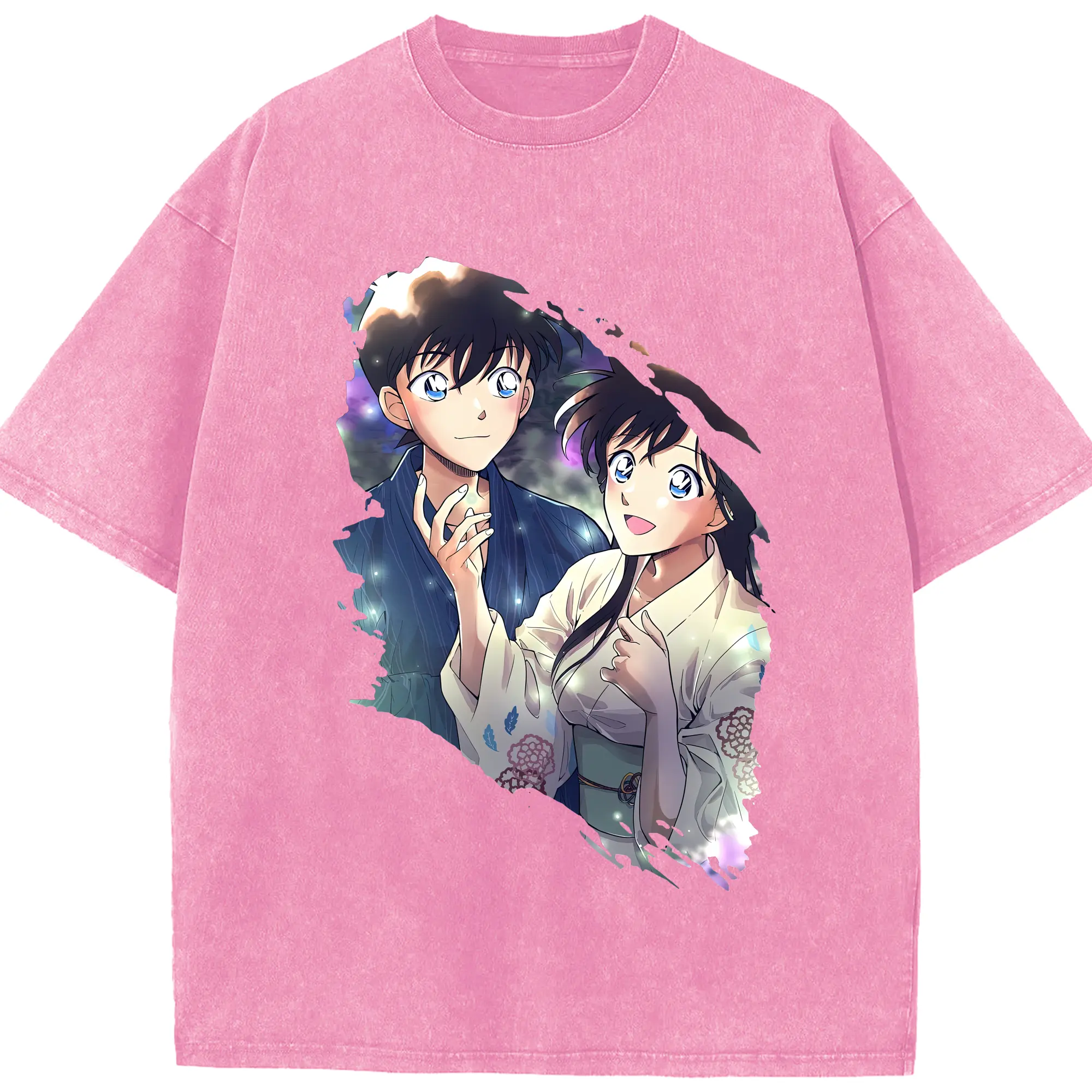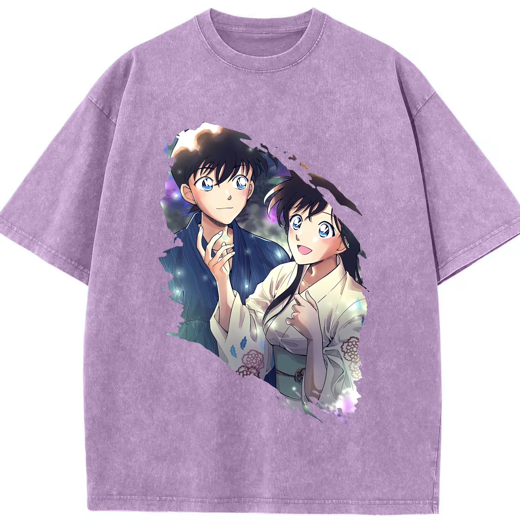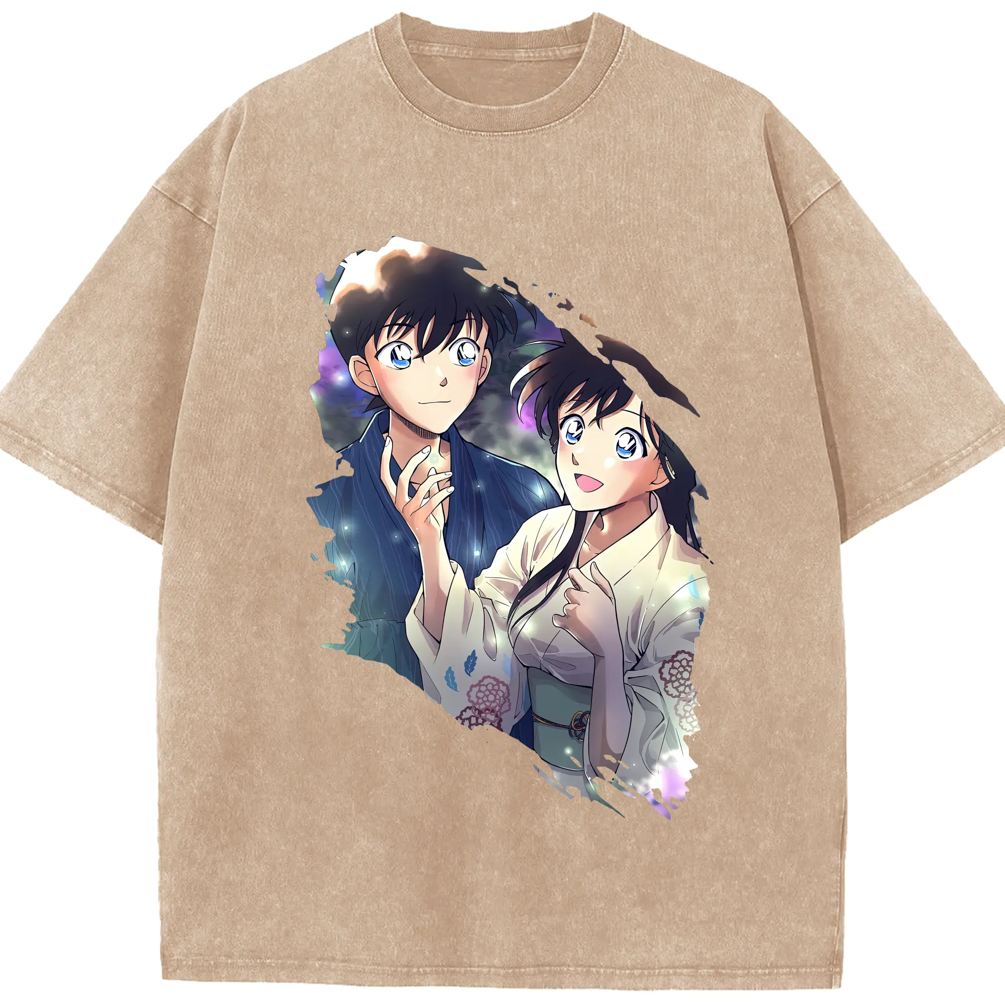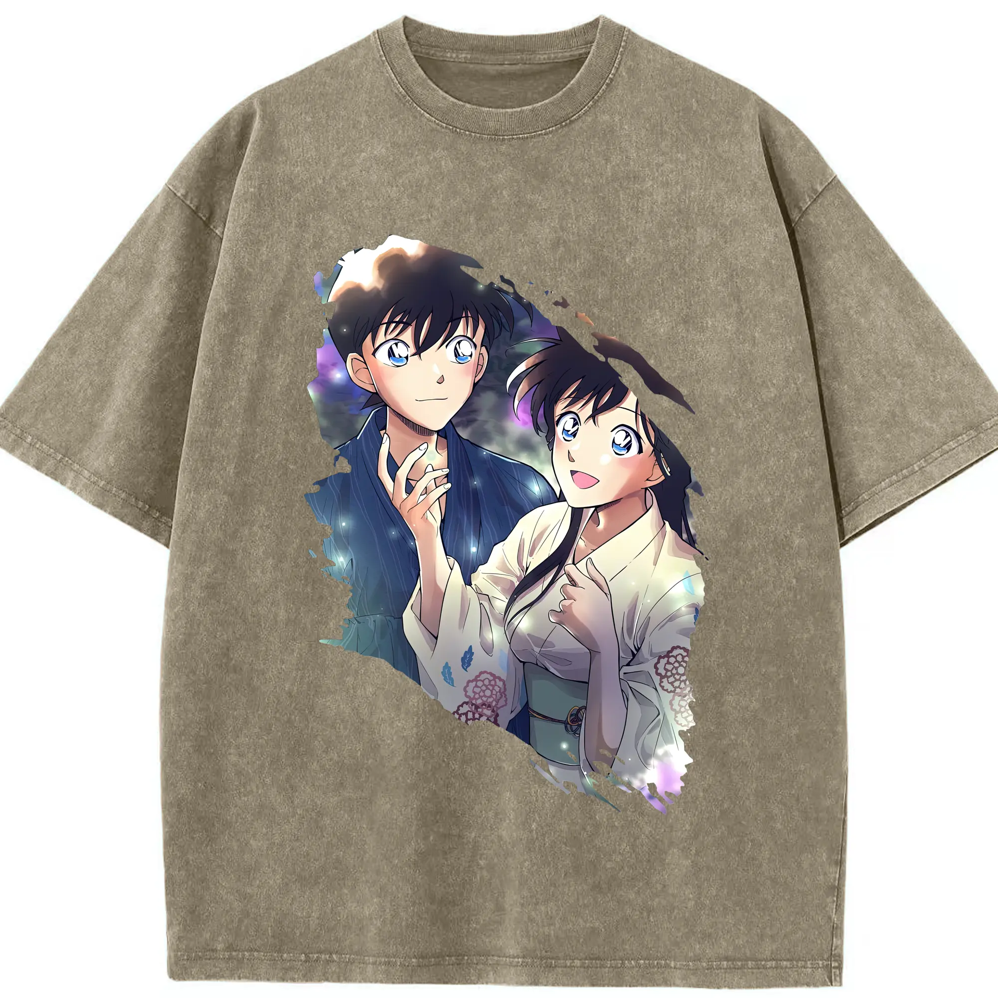 名探偵コナン グッズ 江戸川 コナン - 綿100% ヴィンテージ風 半袖Tシャツ ・ 背面プリント ・ 柔らか肌触り ・ 通気性 快適 ・ スポーツ カジュアル 外出用
