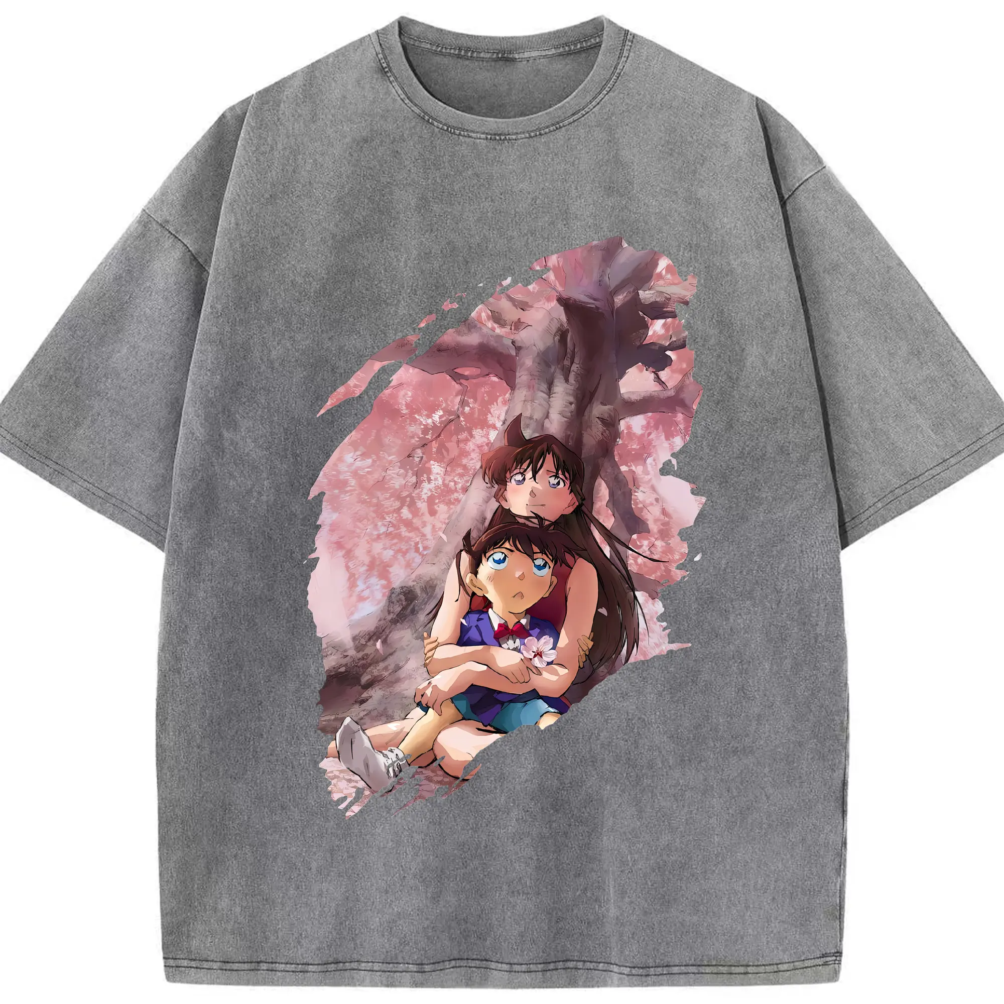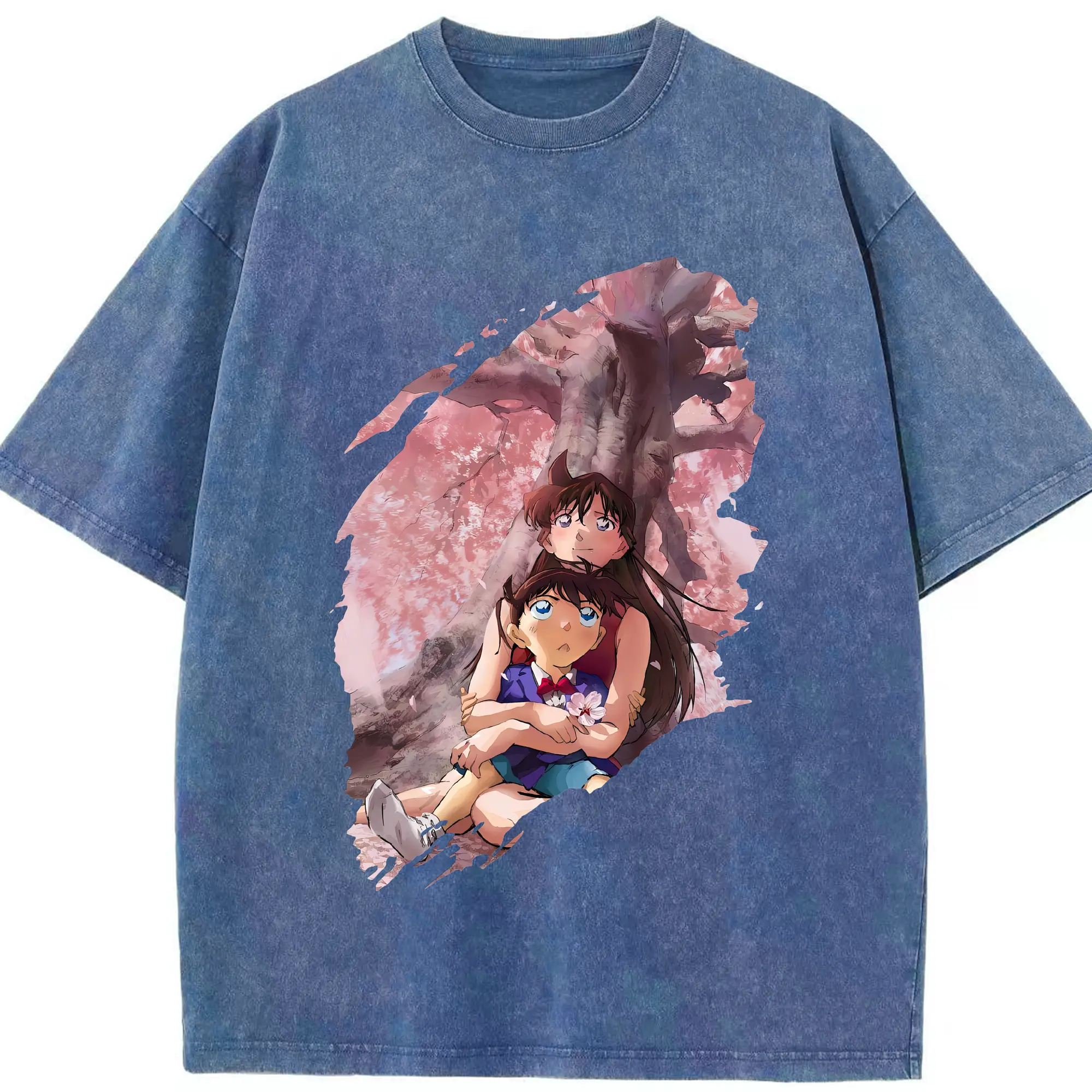 名探偵コナン グッズ 江戸川 コナン - 綿100% ヴィンテージ風 半袖Tシャツ ・ 背面プリント ・ 柔らか肌触り ・ 通気性 快適 ・ スポーツ カジュアル 外出用