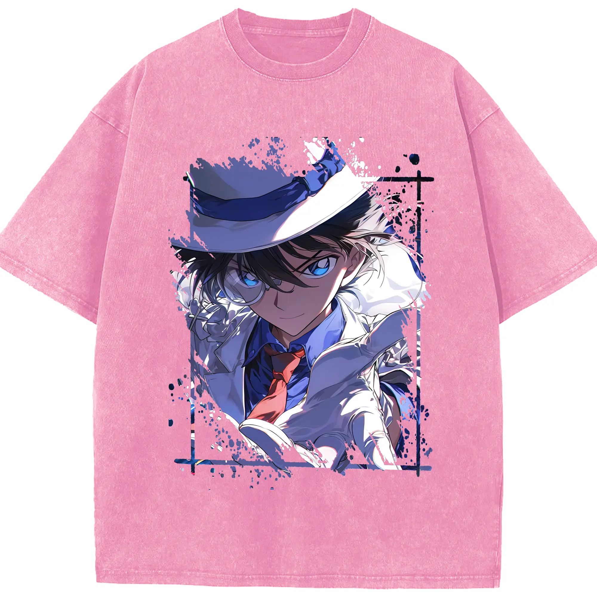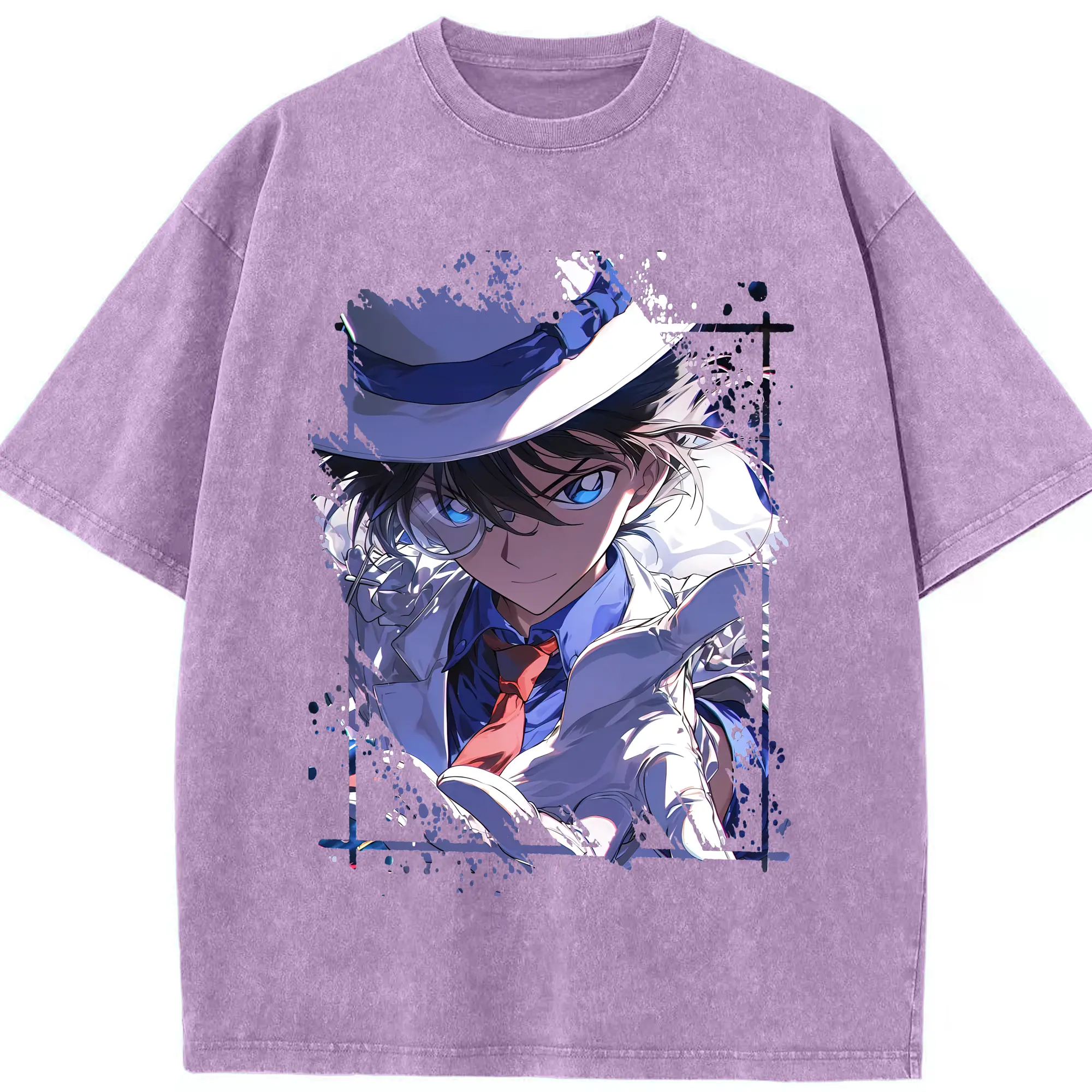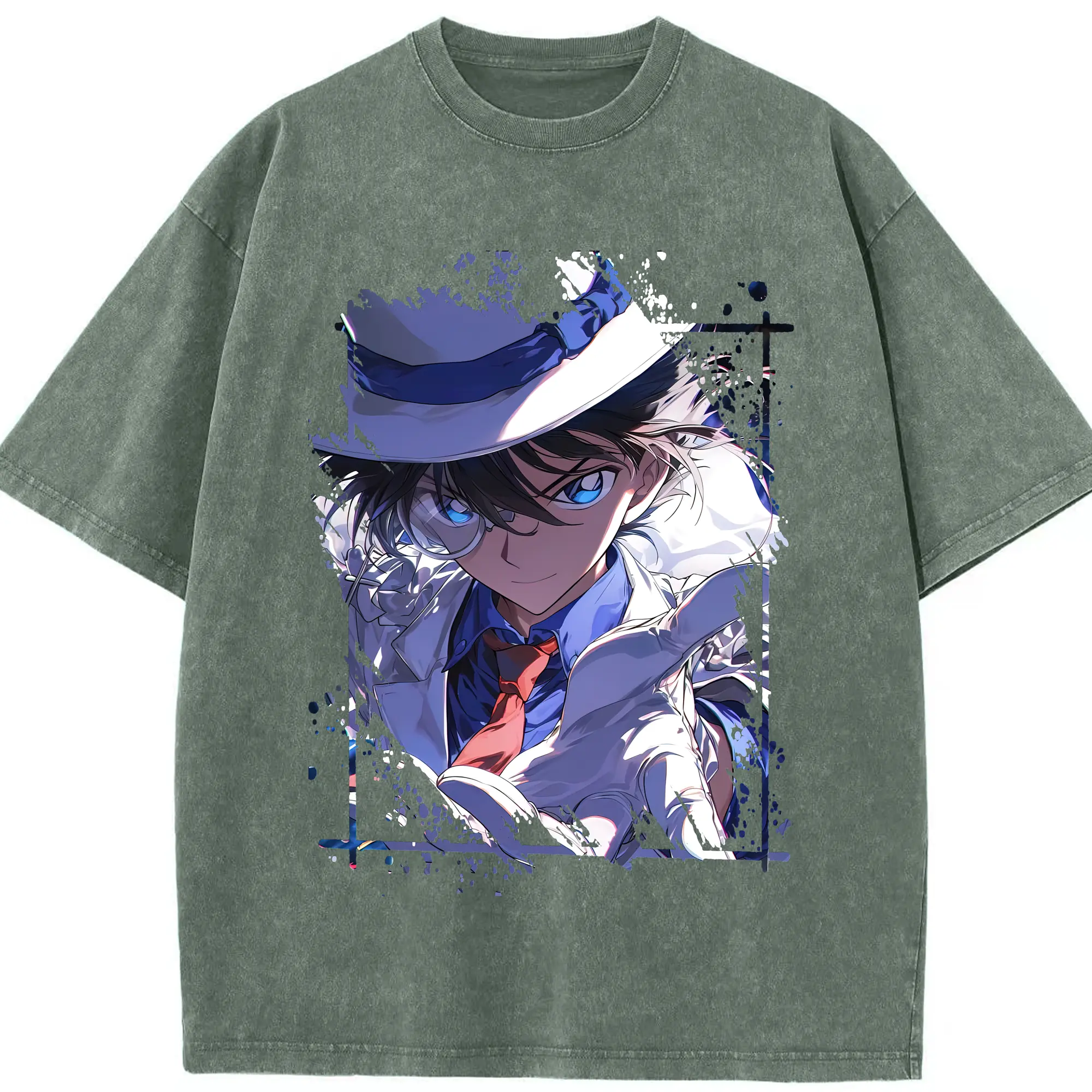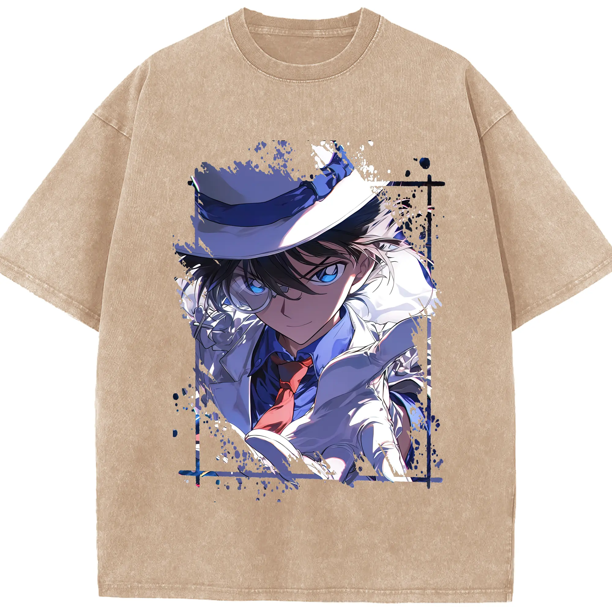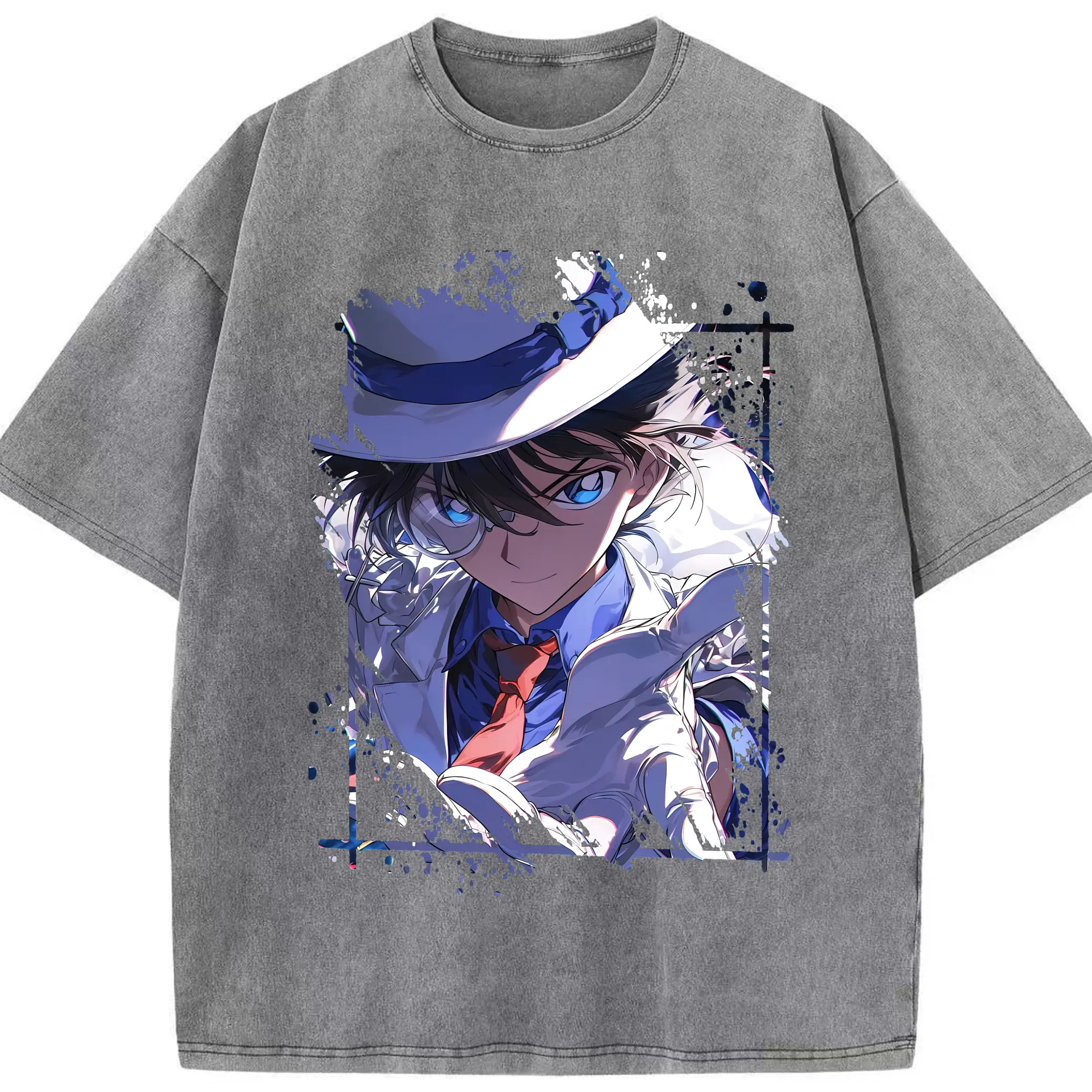 名探偵コナン グッズ 江戸川 コナン - 綿100% ヴィンテージ風 半袖Tシャツ ・ 背面プリント ・ 柔らか肌触り ・ 通気性 快適 ・ スポーツ カジュアル 外出用