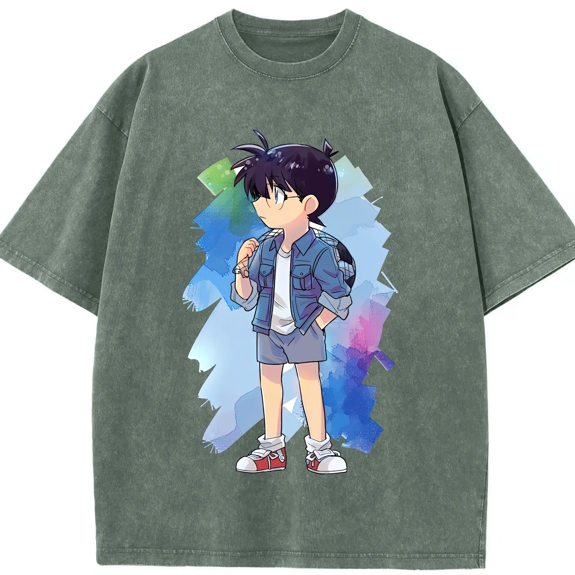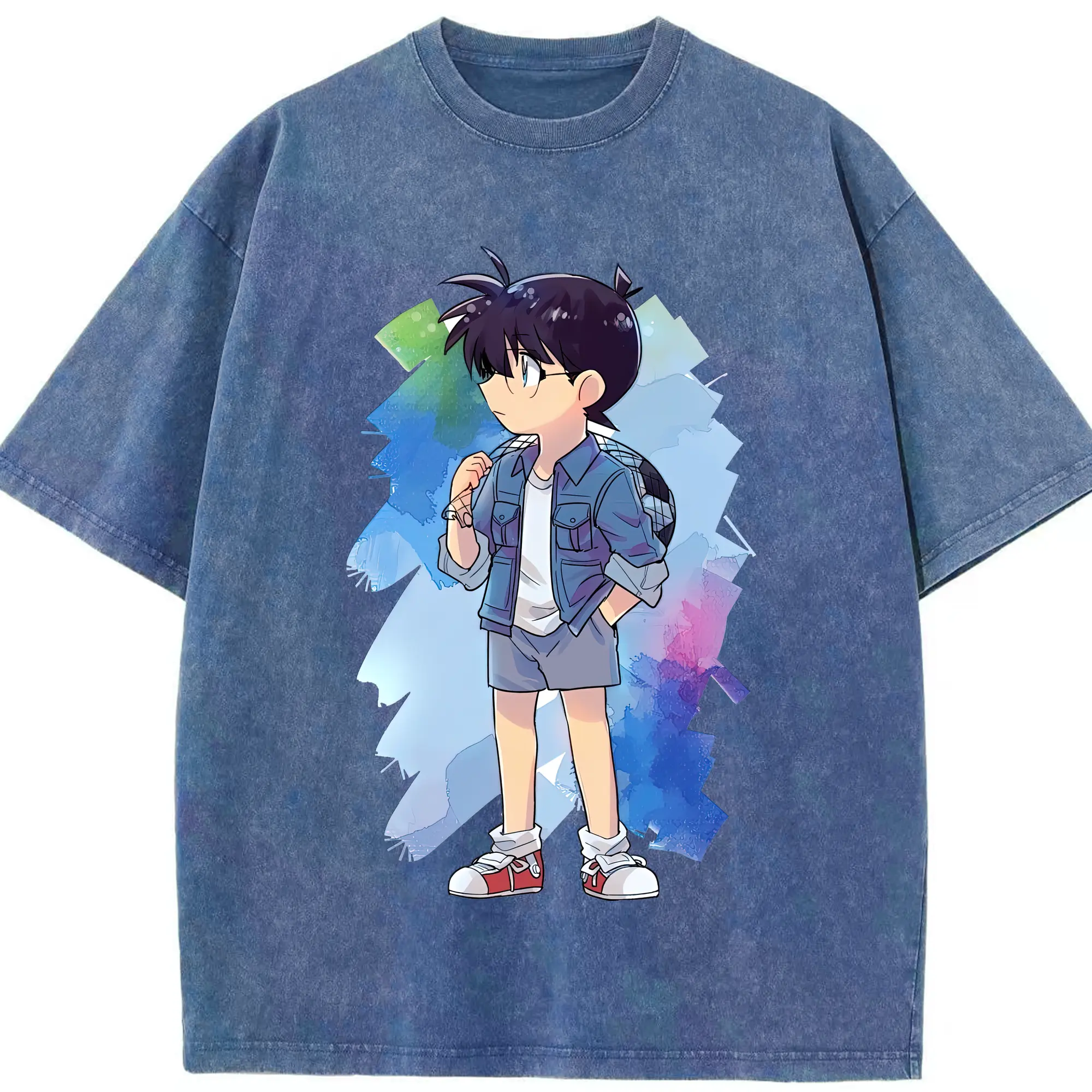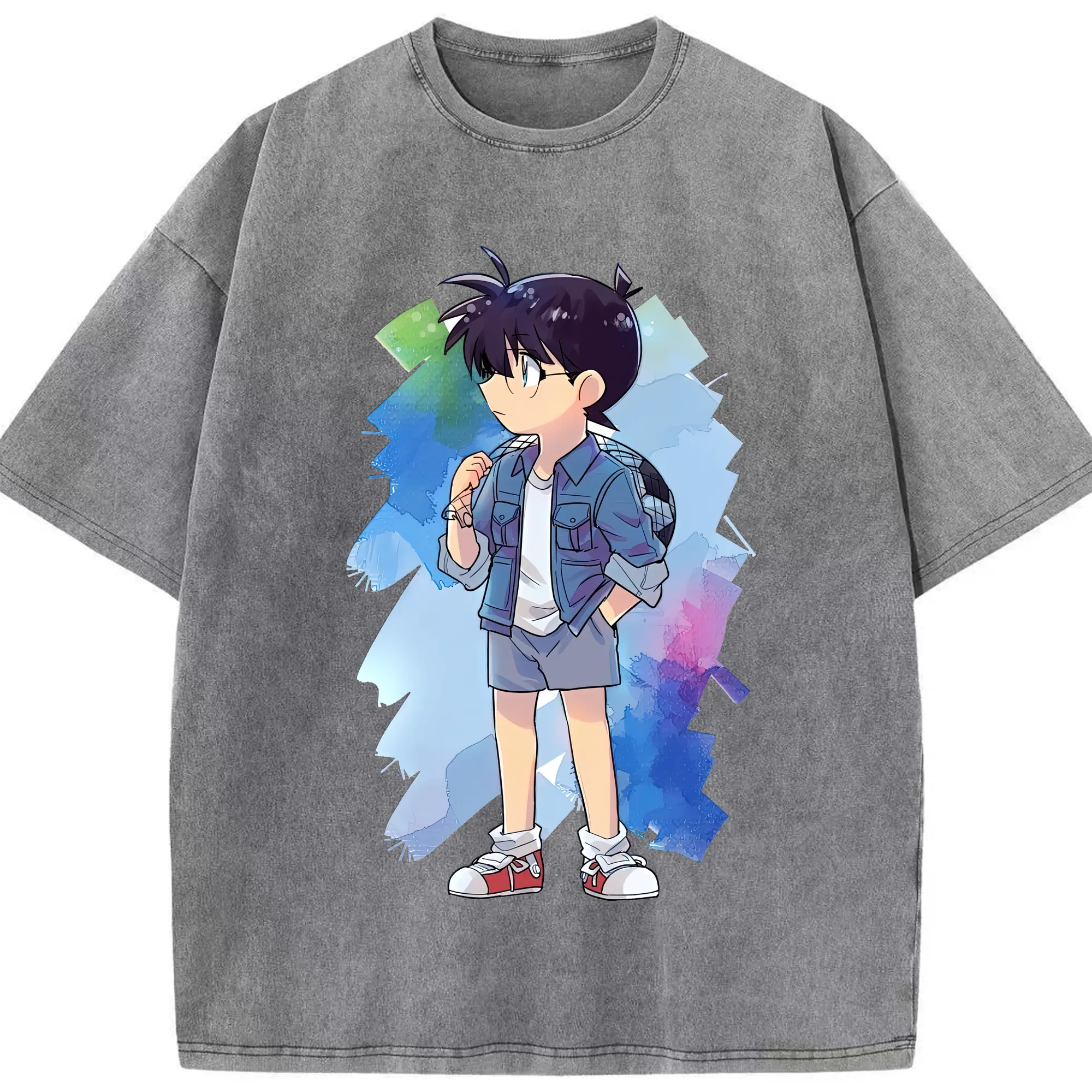 名探偵コナン グッズ 江戸川 コナン - 綿100% ヴィンテージ風 半袖Tシャツ ・ 背面プリント ・ 柔らか肌触り ・ 通気性 快適 ・ スポーツ カジュアル 外出用