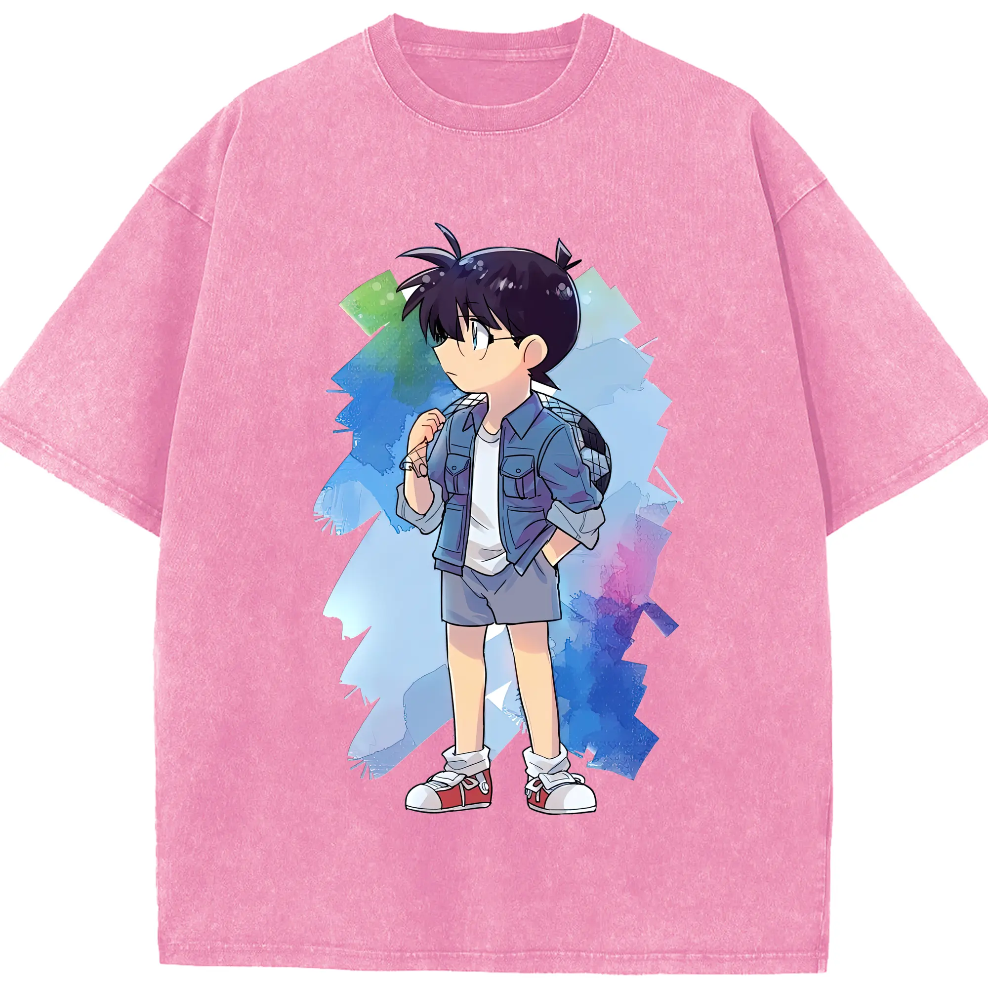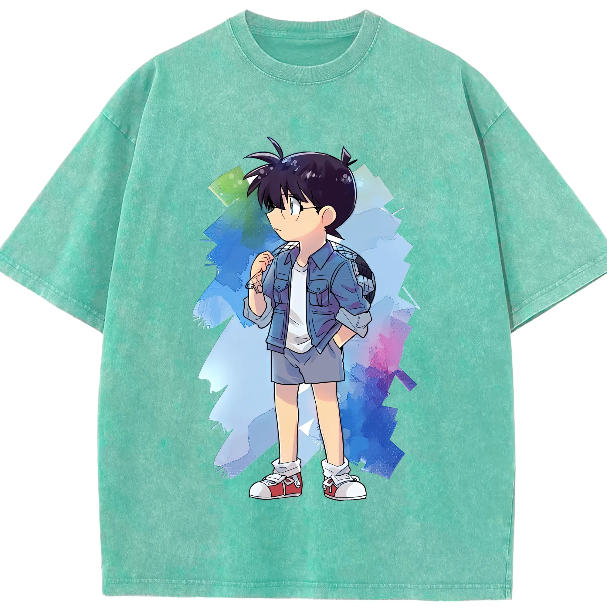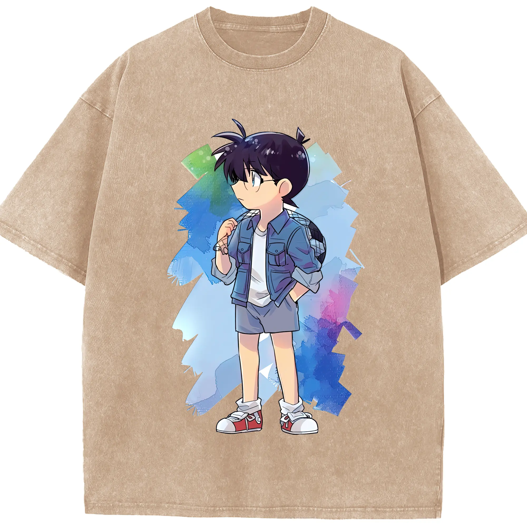 名探偵コナン グッズ 江戸川 コナン - 綿100% ヴィンテージ風 半袖Tシャツ ・ 背面プリント ・ 柔らか肌触り ・ 通気性 快適 ・ スポーツ カジュアル 外出用