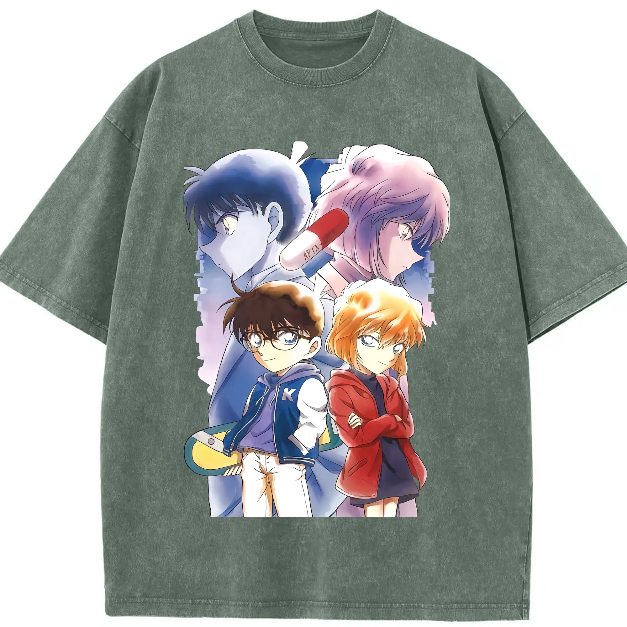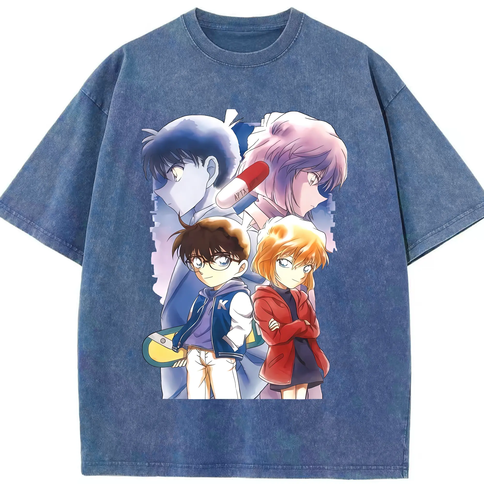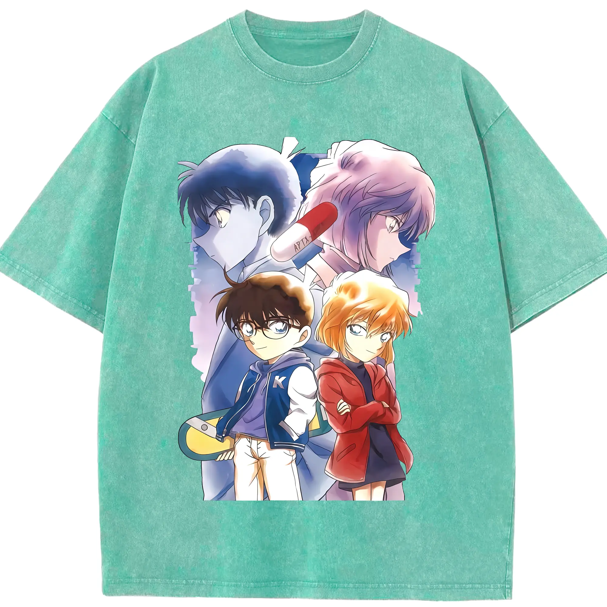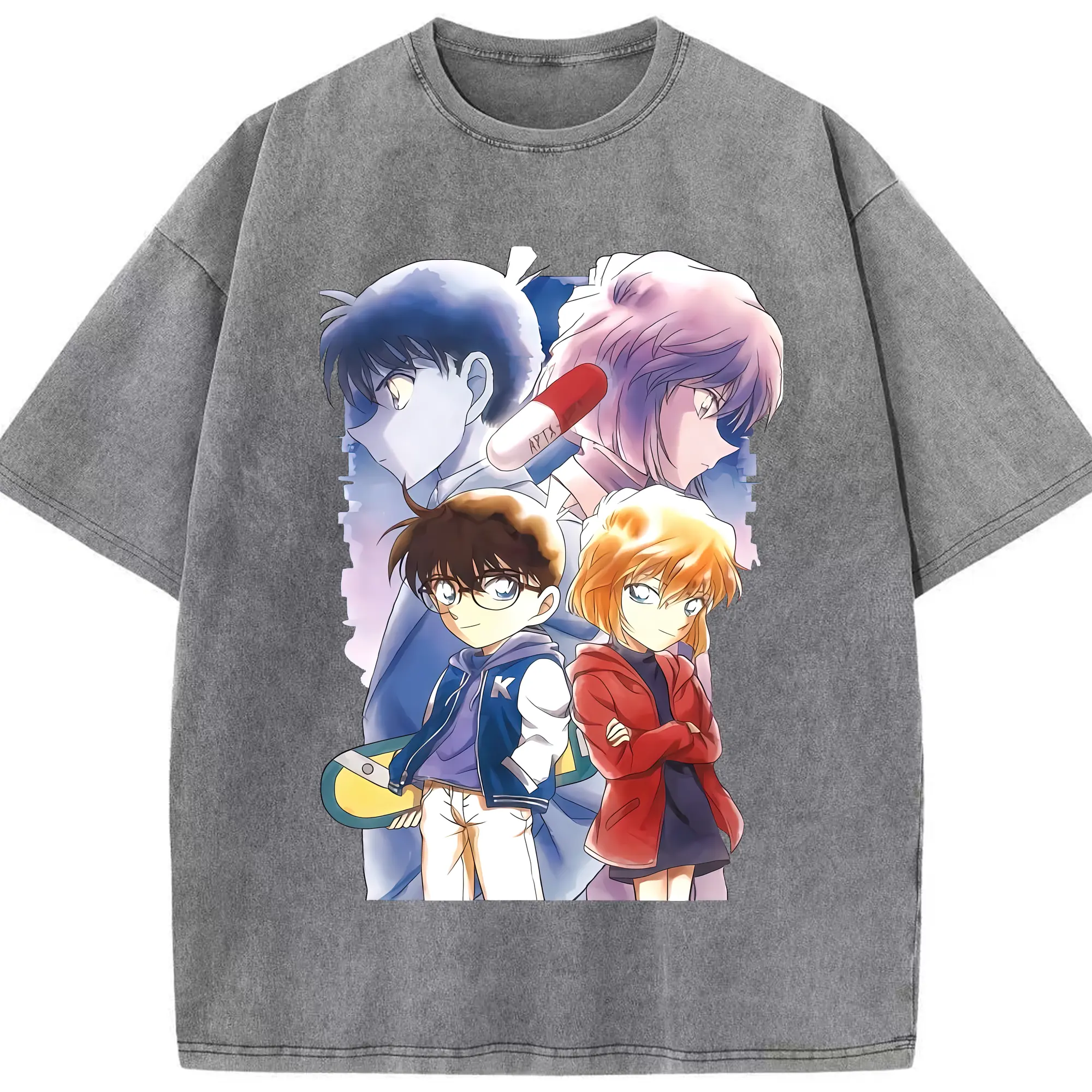 名探偵コナン グッズ 江戸川 コナン - 綿100% ヴィンテージ風 半袖Tシャツ ・ 背面プリント ・ 柔らか肌触り ・ 通気性 快適 ・ スポーツ カジュアル 外出用