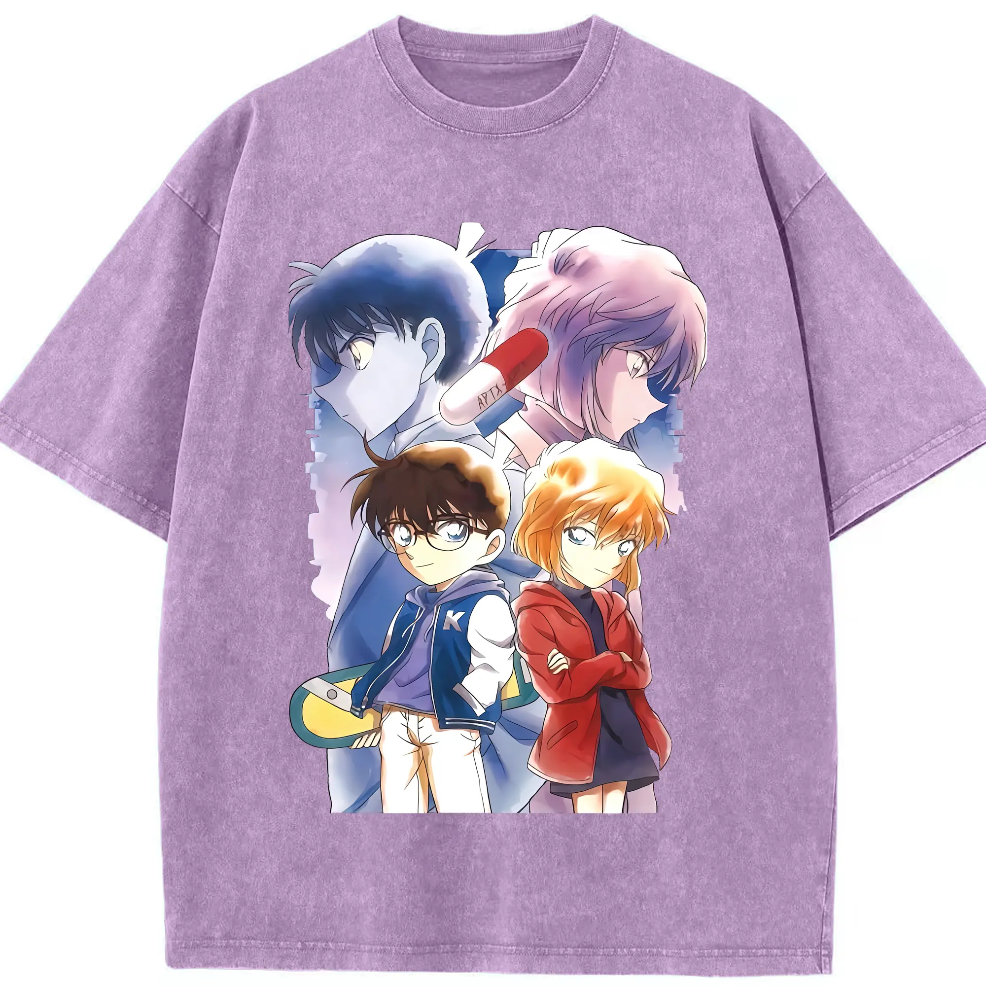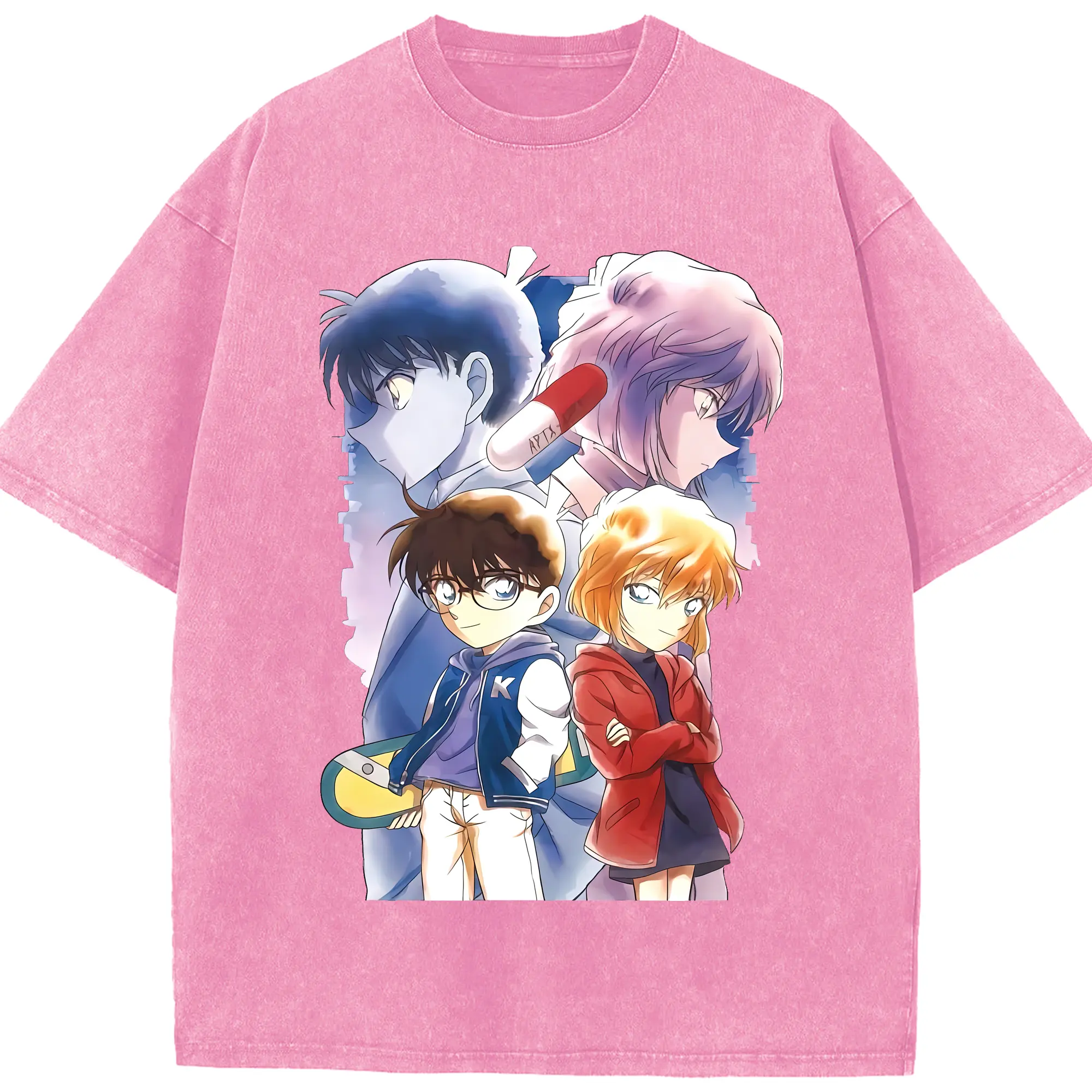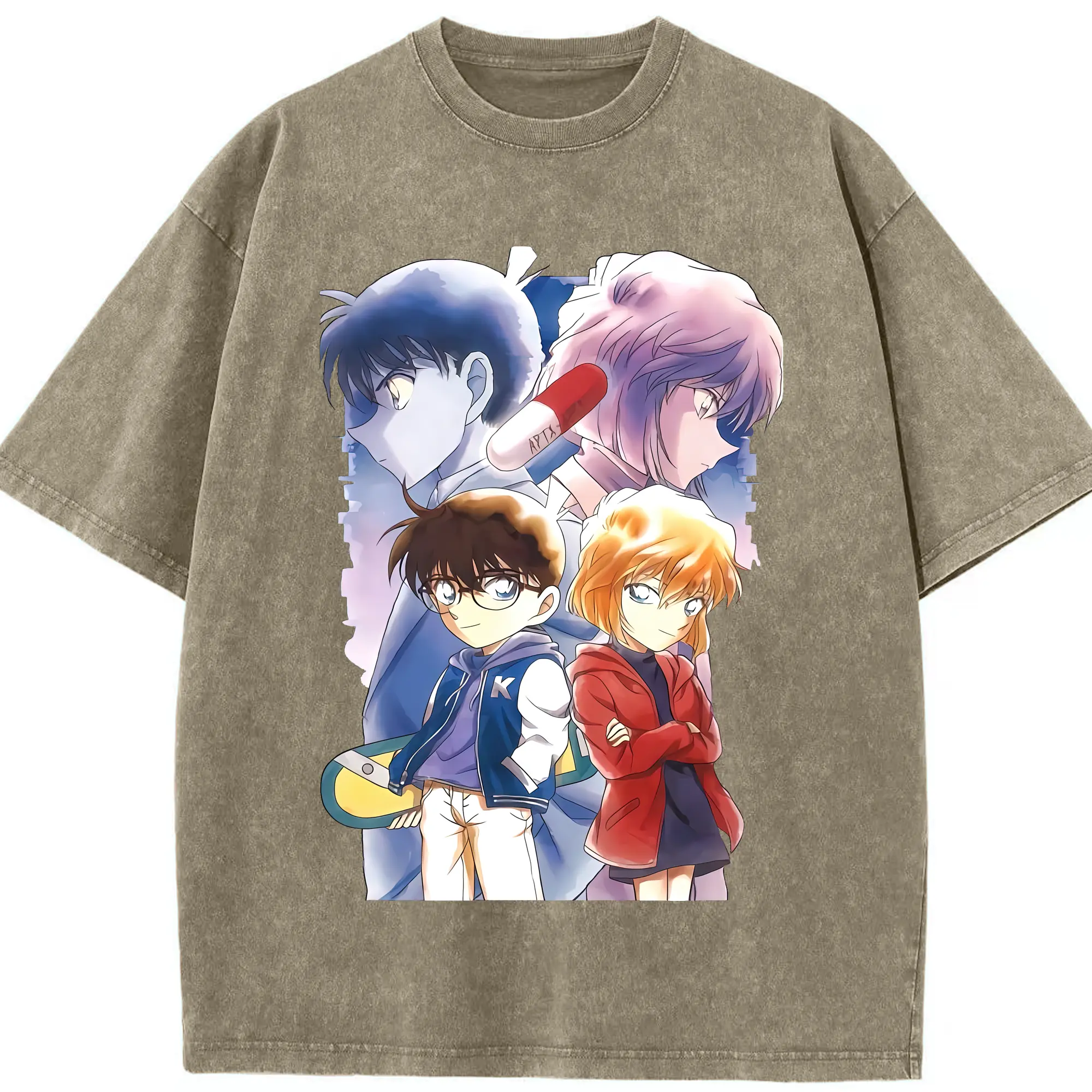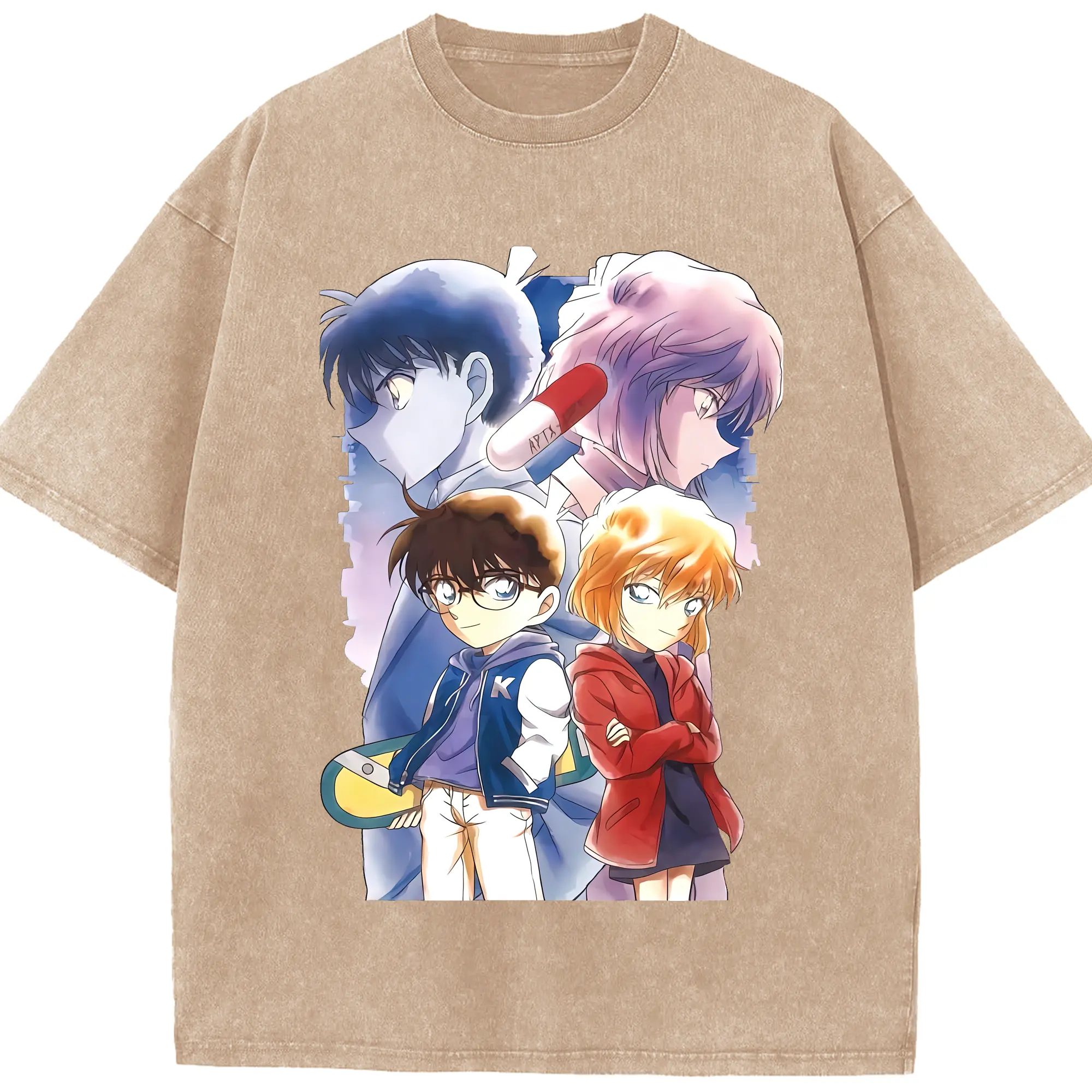 名探偵コナン グッズ 江戸川 コナン - 綿100% ヴィンテージ風 半袖Tシャツ ・ 背面プリント ・ 柔らか肌触り ・ 通気性 快適 ・ スポーツ カジュアル 外出用