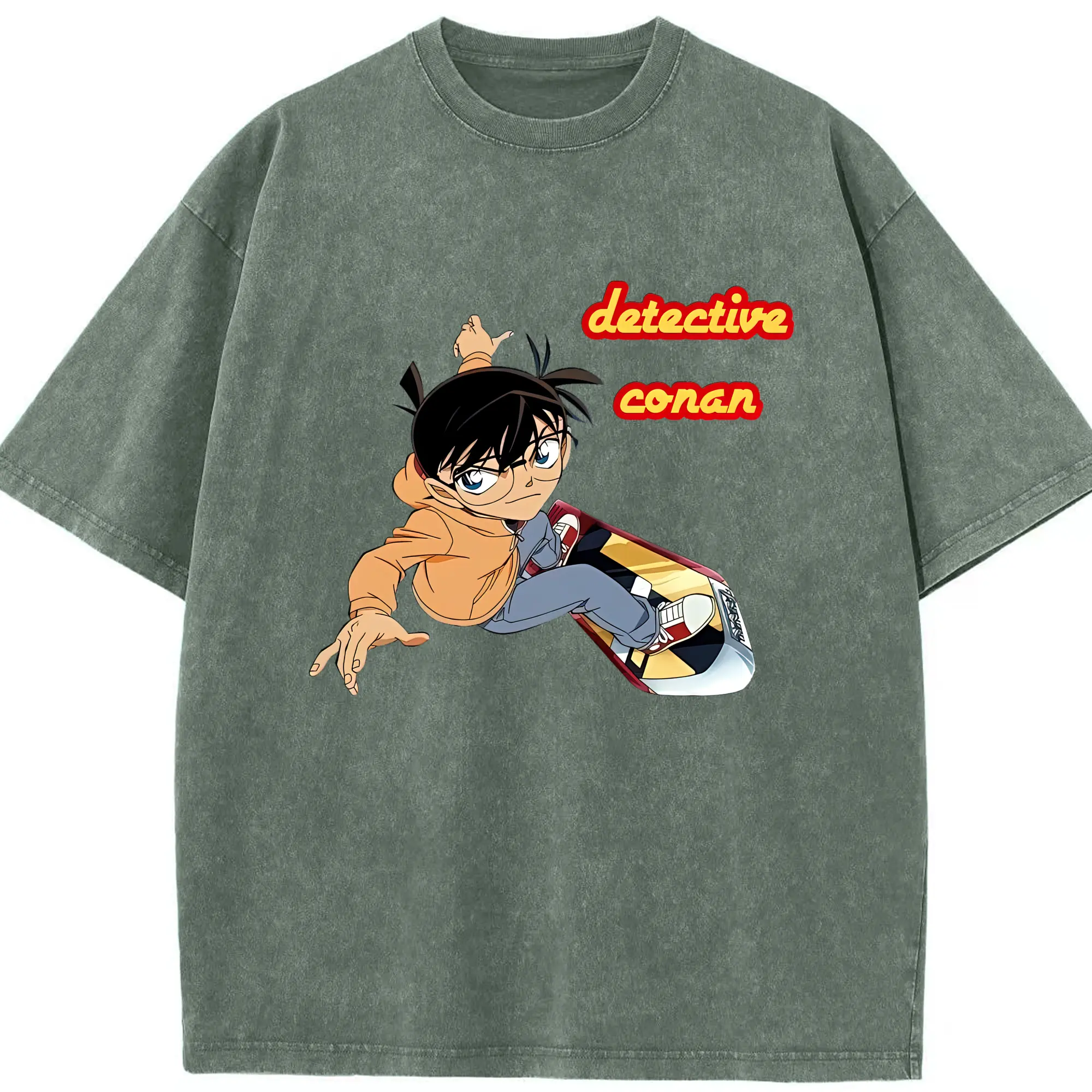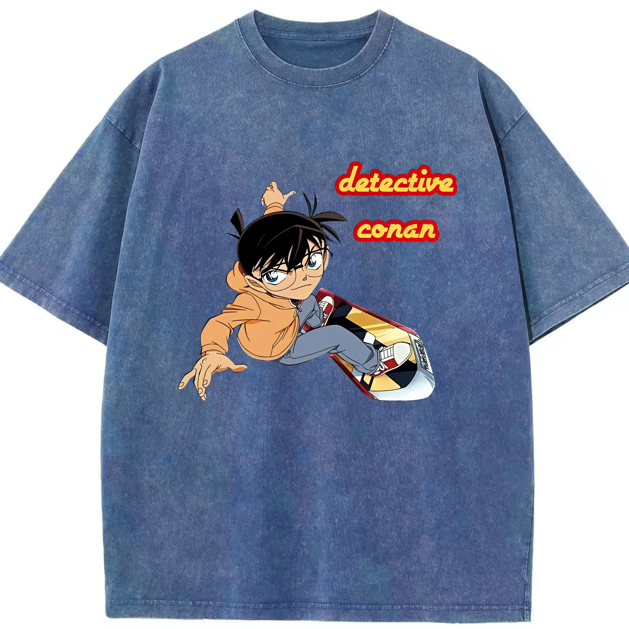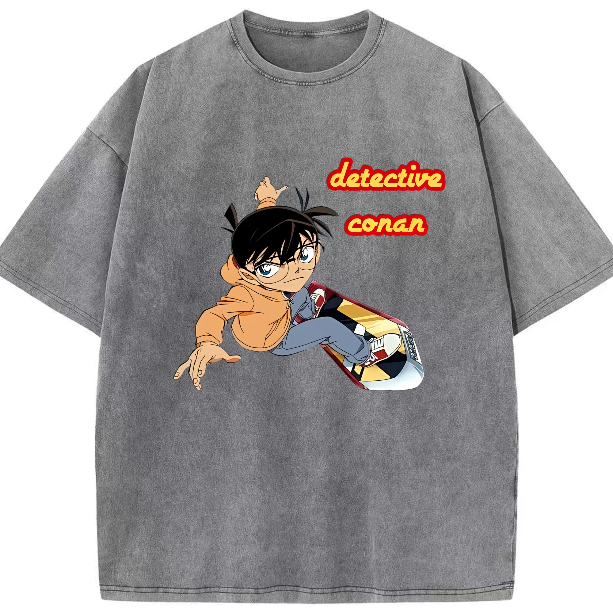 名探偵コナン グッズ 江戸川 コナン - 綿100% ヴィンテージ風 半袖Tシャツ ・ 背面プリント ・ 柔らか肌触り ・ 通気性 快適 ・ スポーツ カジュアル 外出用