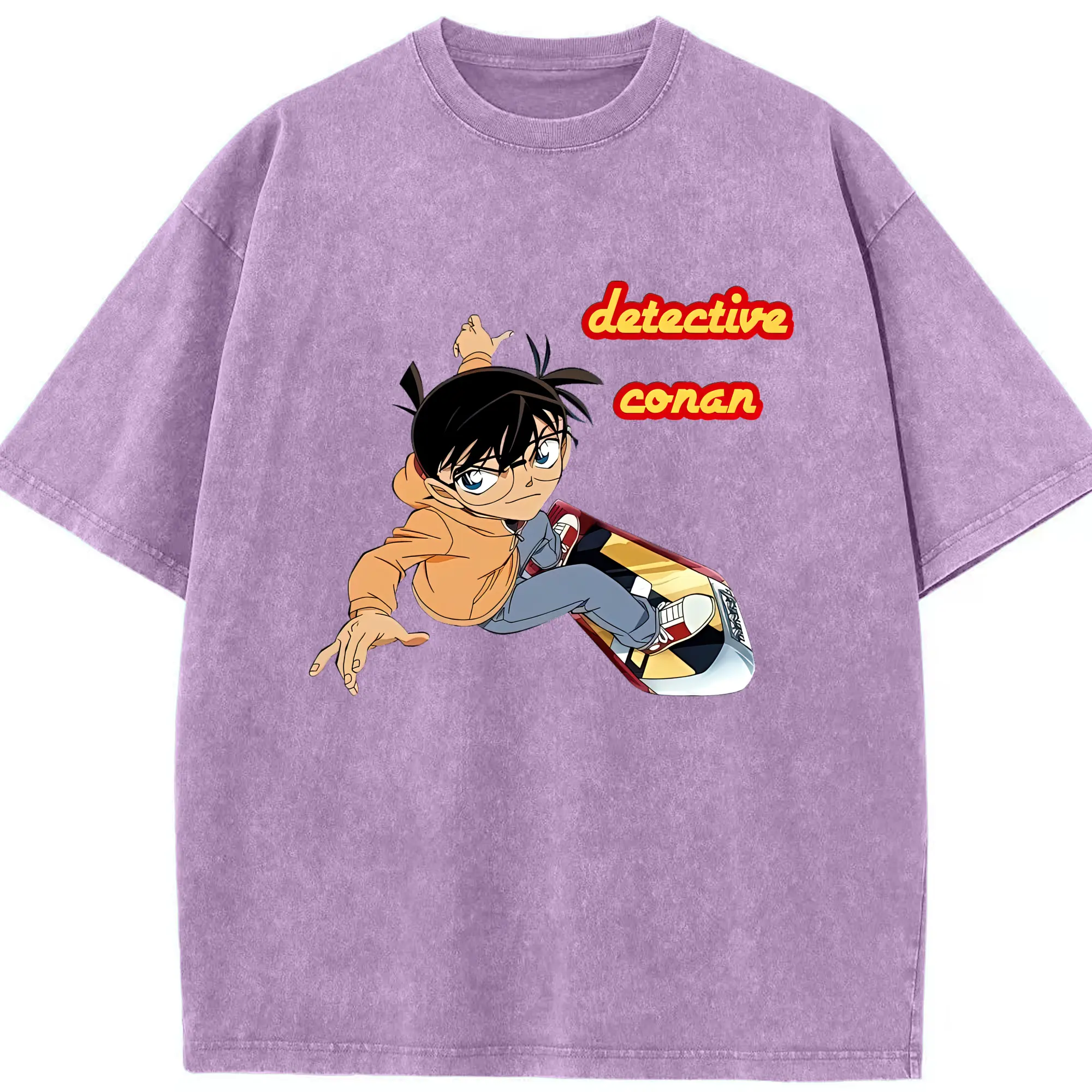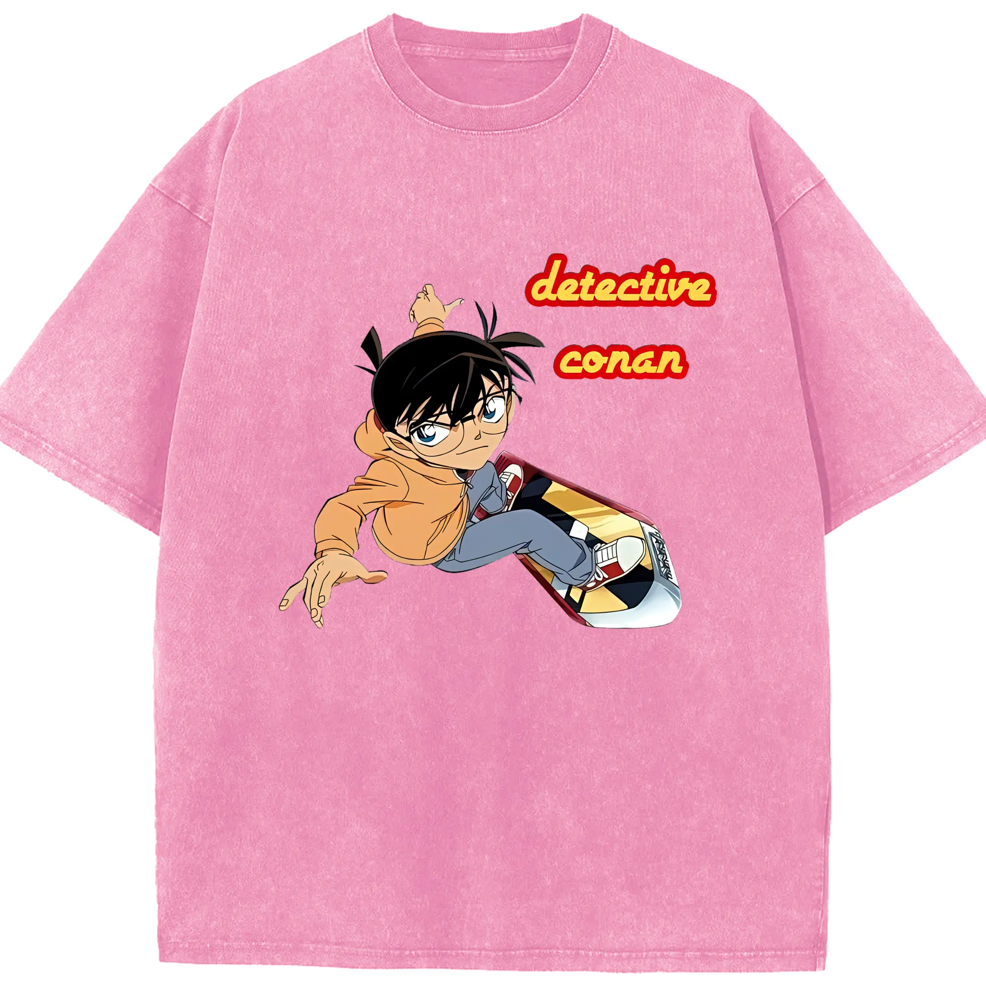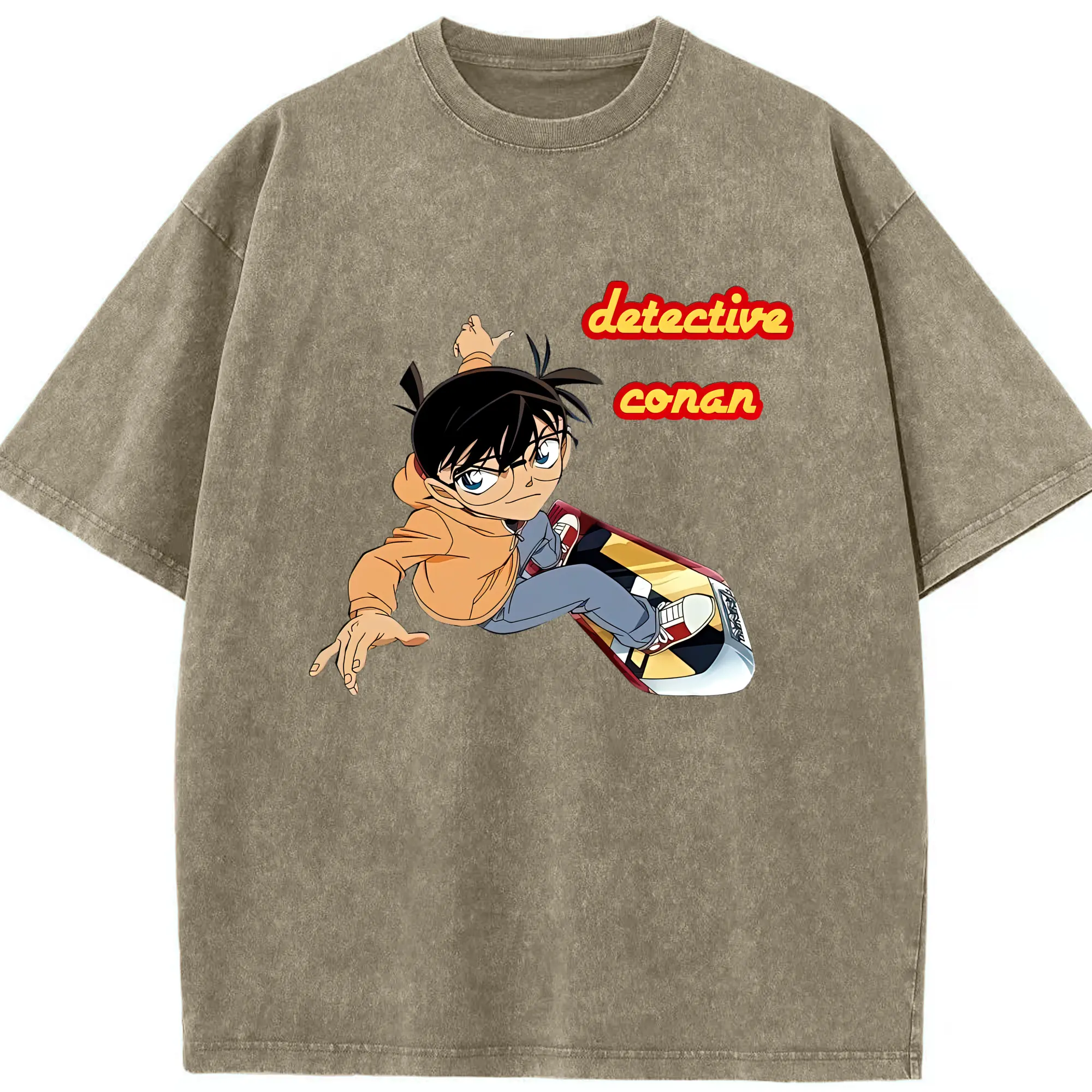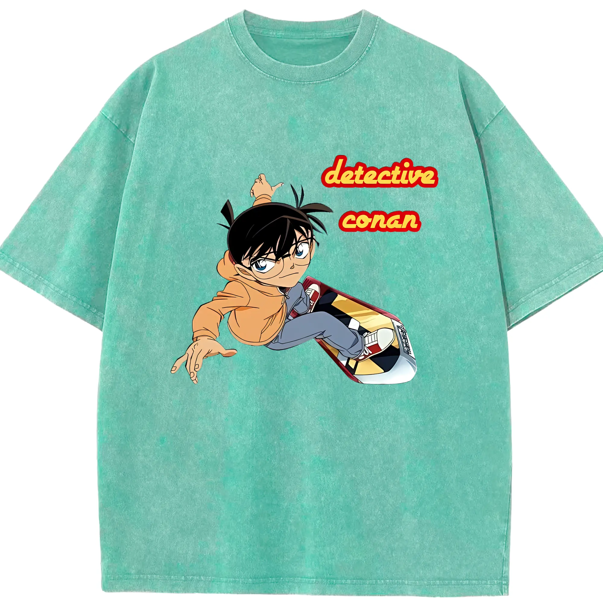 名探偵コナン グッズ 江戸川 コナン - 綿100% ヴィンテージ風 半袖Tシャツ ・ 背面プリント ・ 柔らか肌触り ・ 通気性 快適 ・ スポーツ カジュアル 外出用