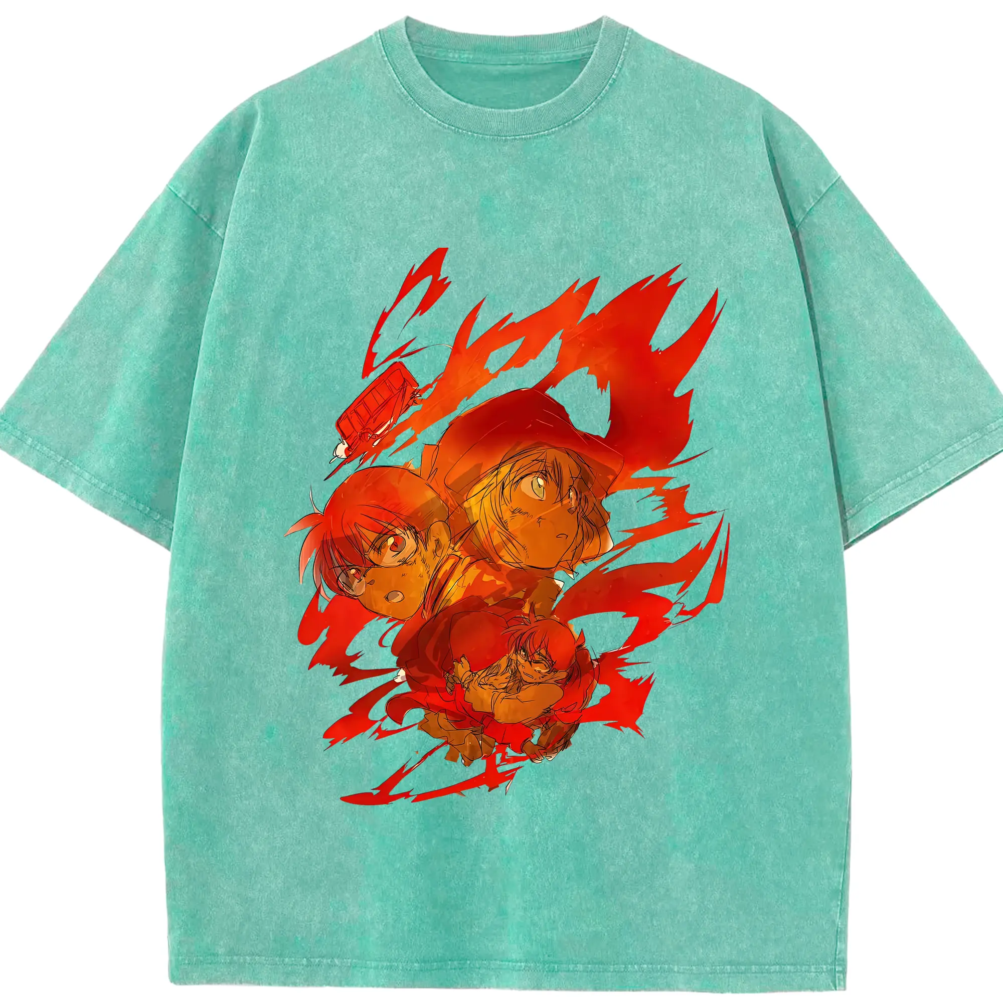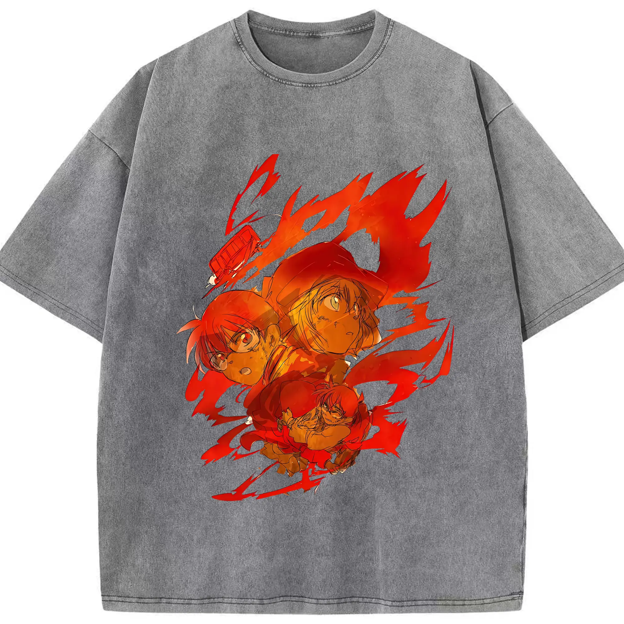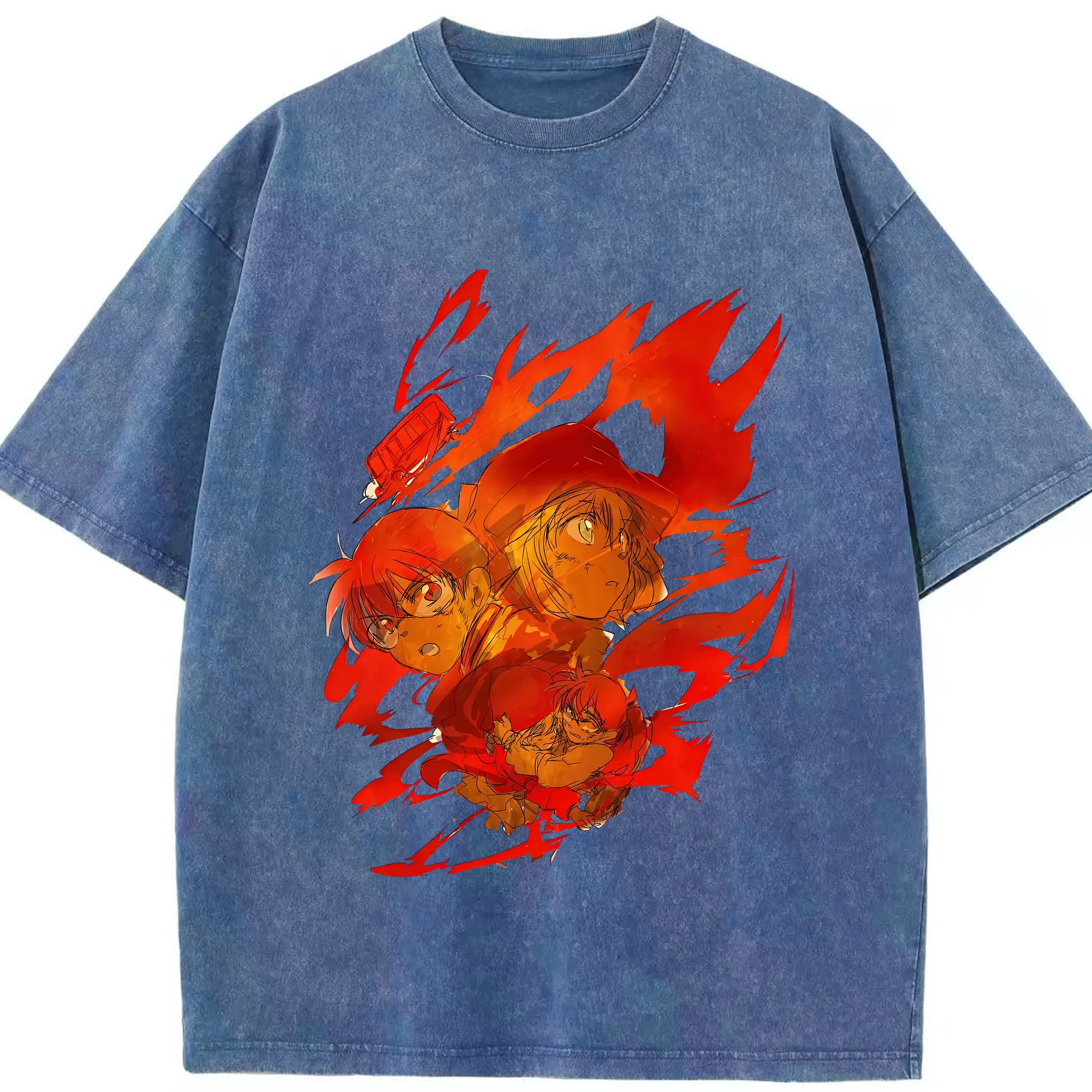 名探偵コナン グッズ 江戸川 コナン - 綿100% ヴィンテージ風 半袖Tシャツ ・ 背面プリント ・ 柔らか肌触り ・ 通気性 快適 ・ スポーツ カジュアル 外出用