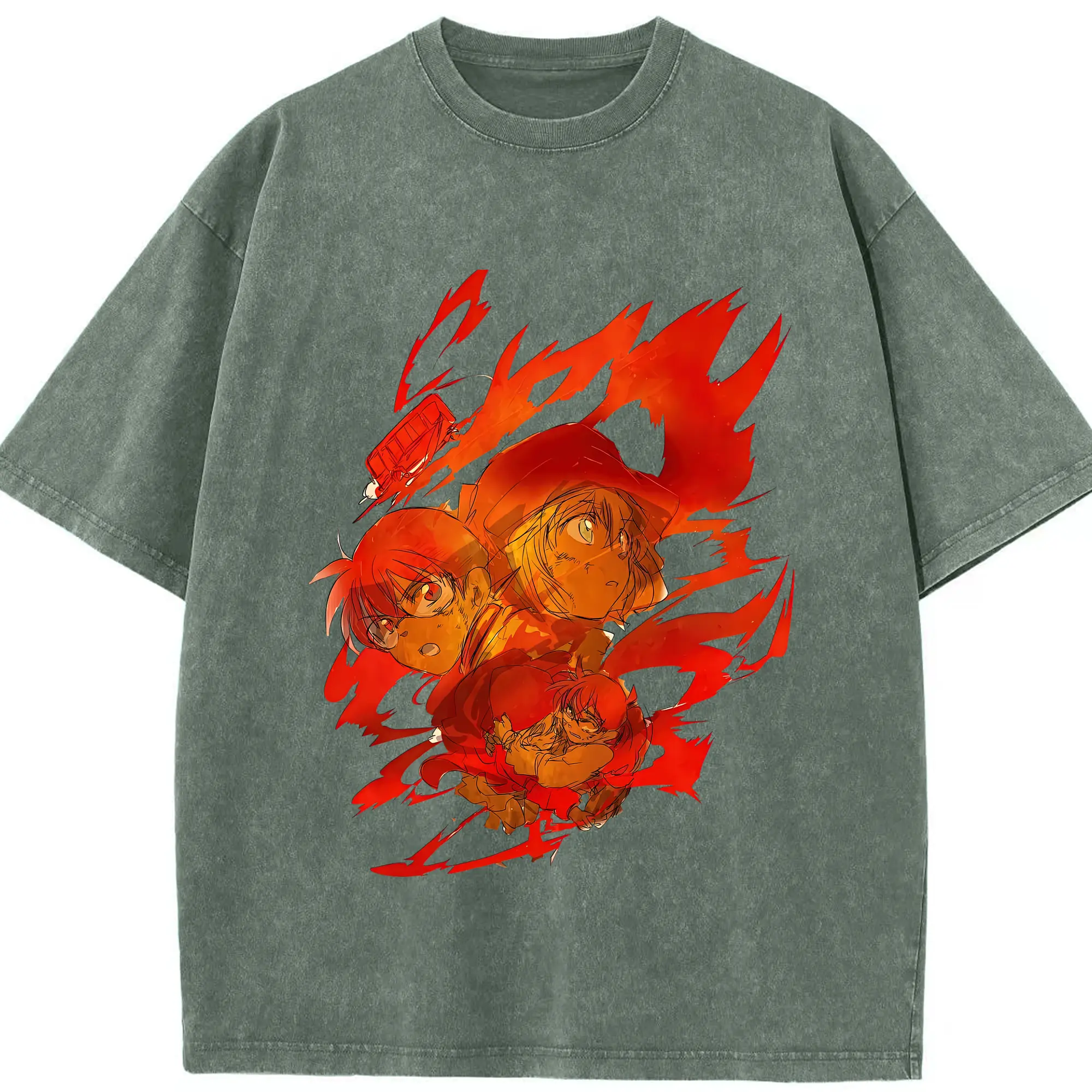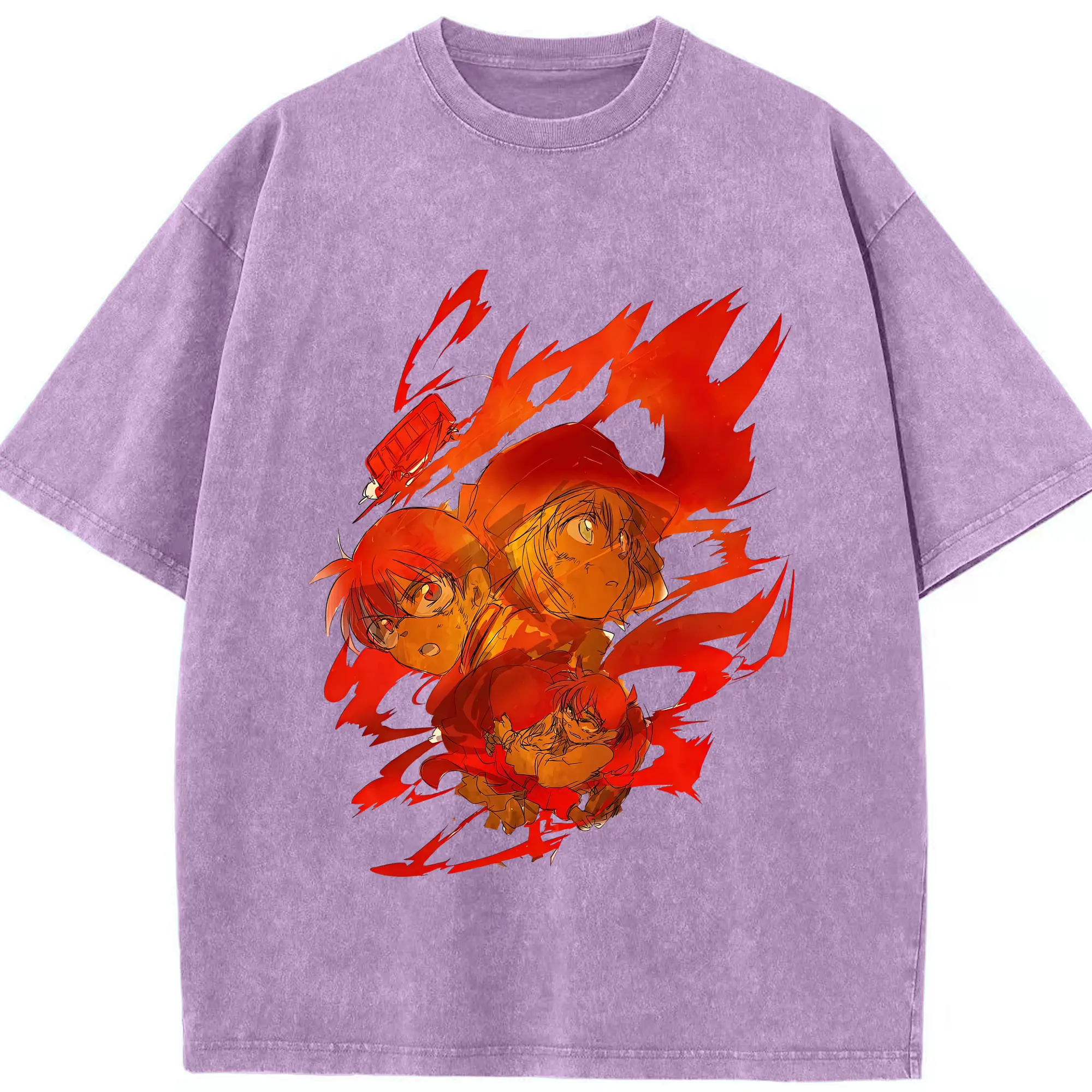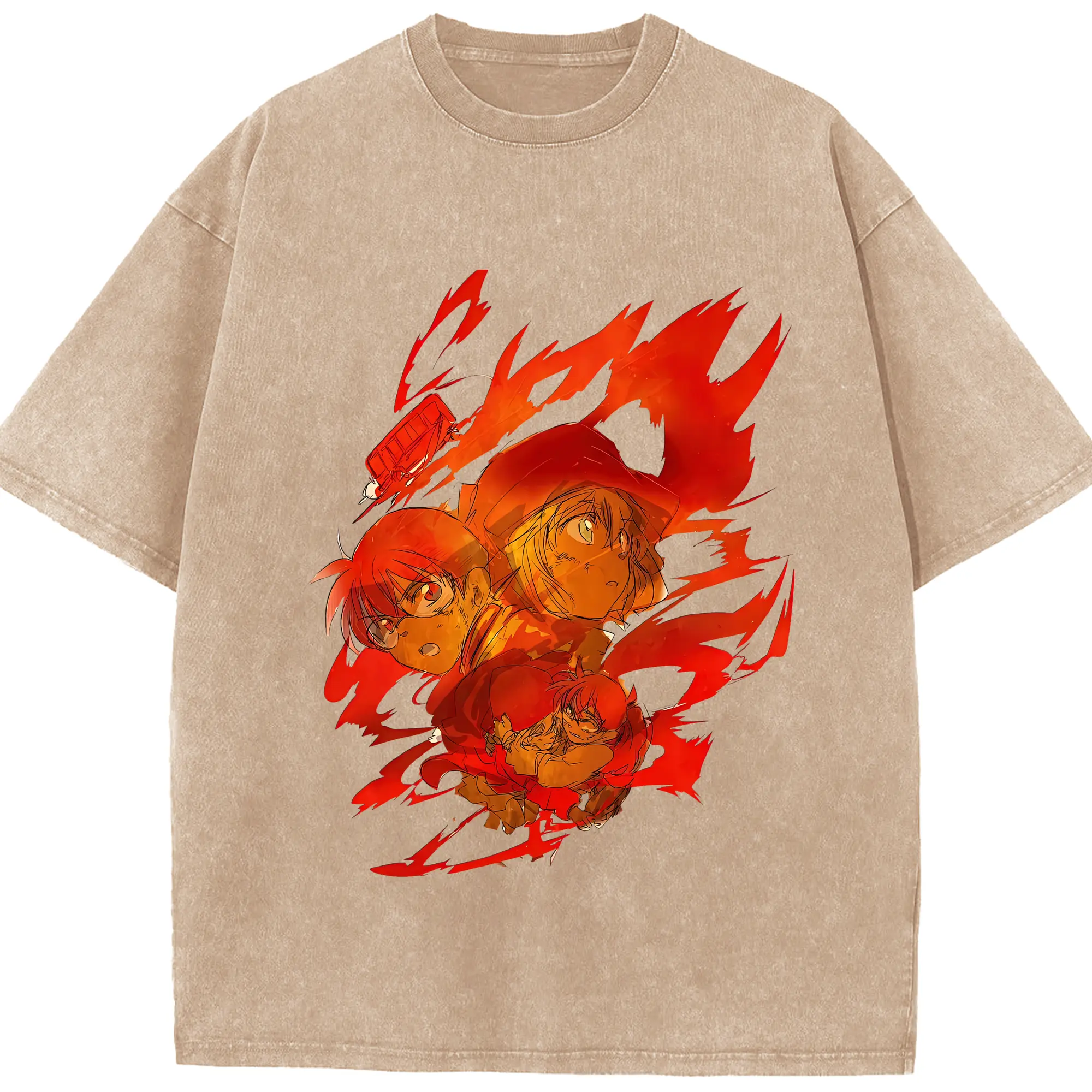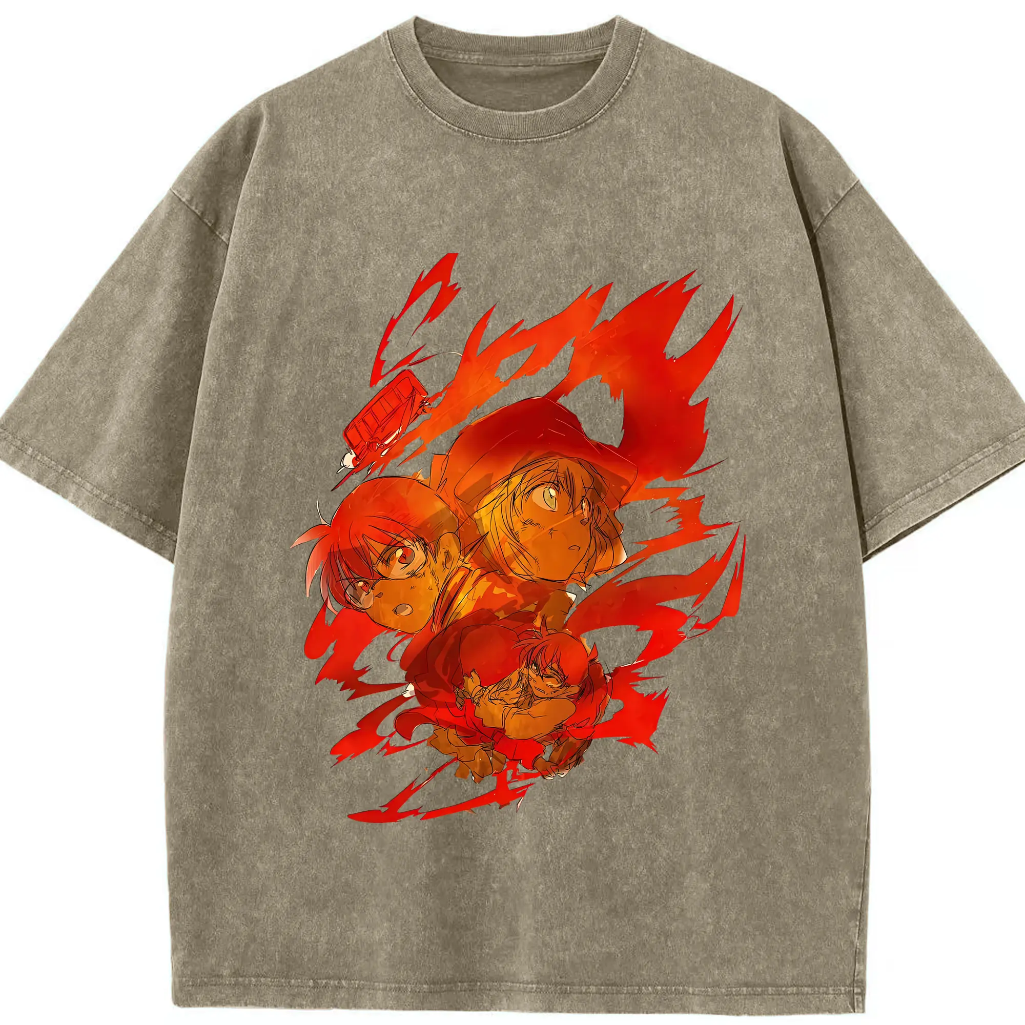 名探偵コナン グッズ 江戸川 コナン - 綿100% ヴィンテージ風 半袖Tシャツ ・ 背面プリント ・ 柔らか肌触り ・ 通気性 快適 ・ スポーツ カジュアル 外出用